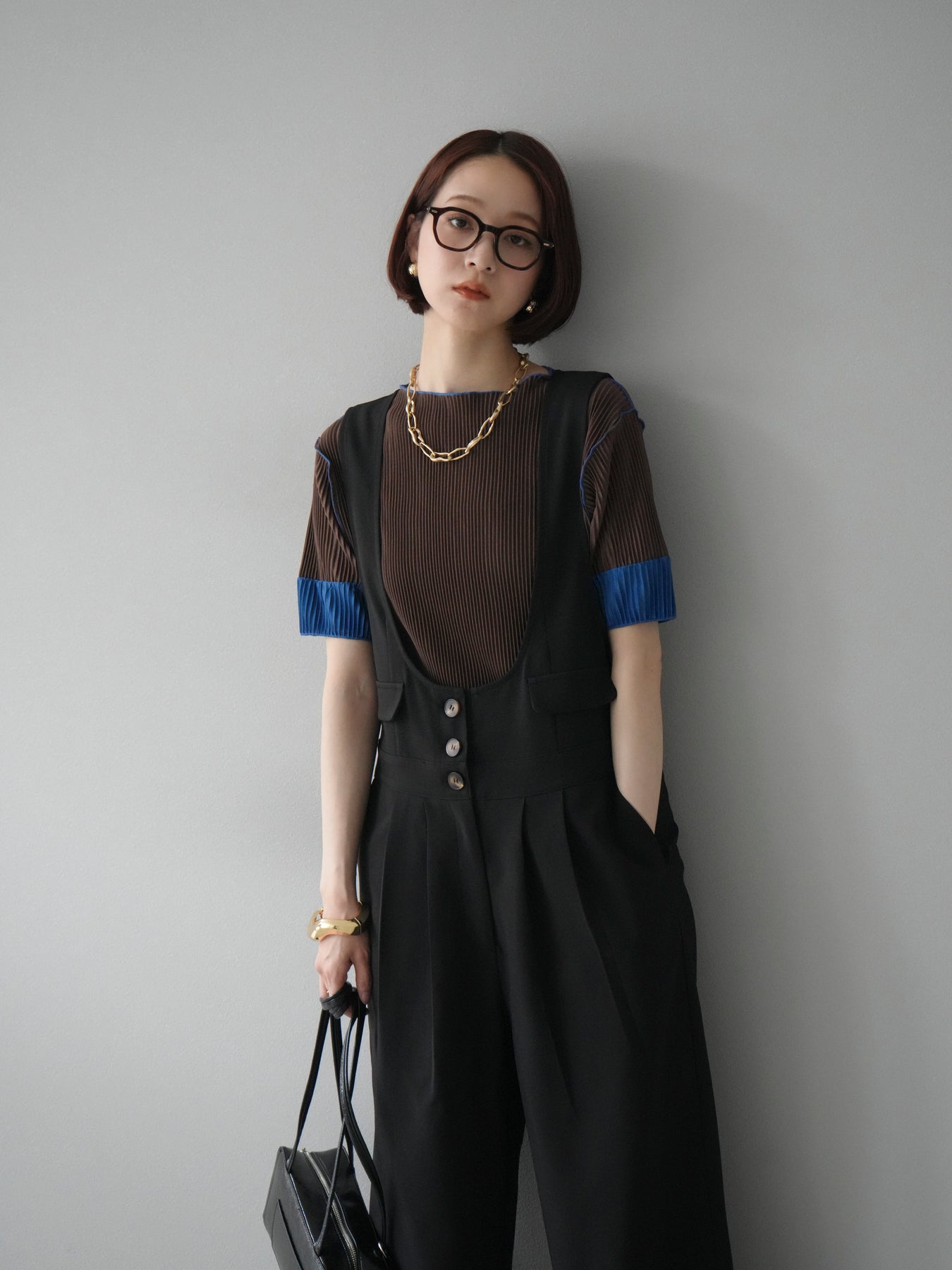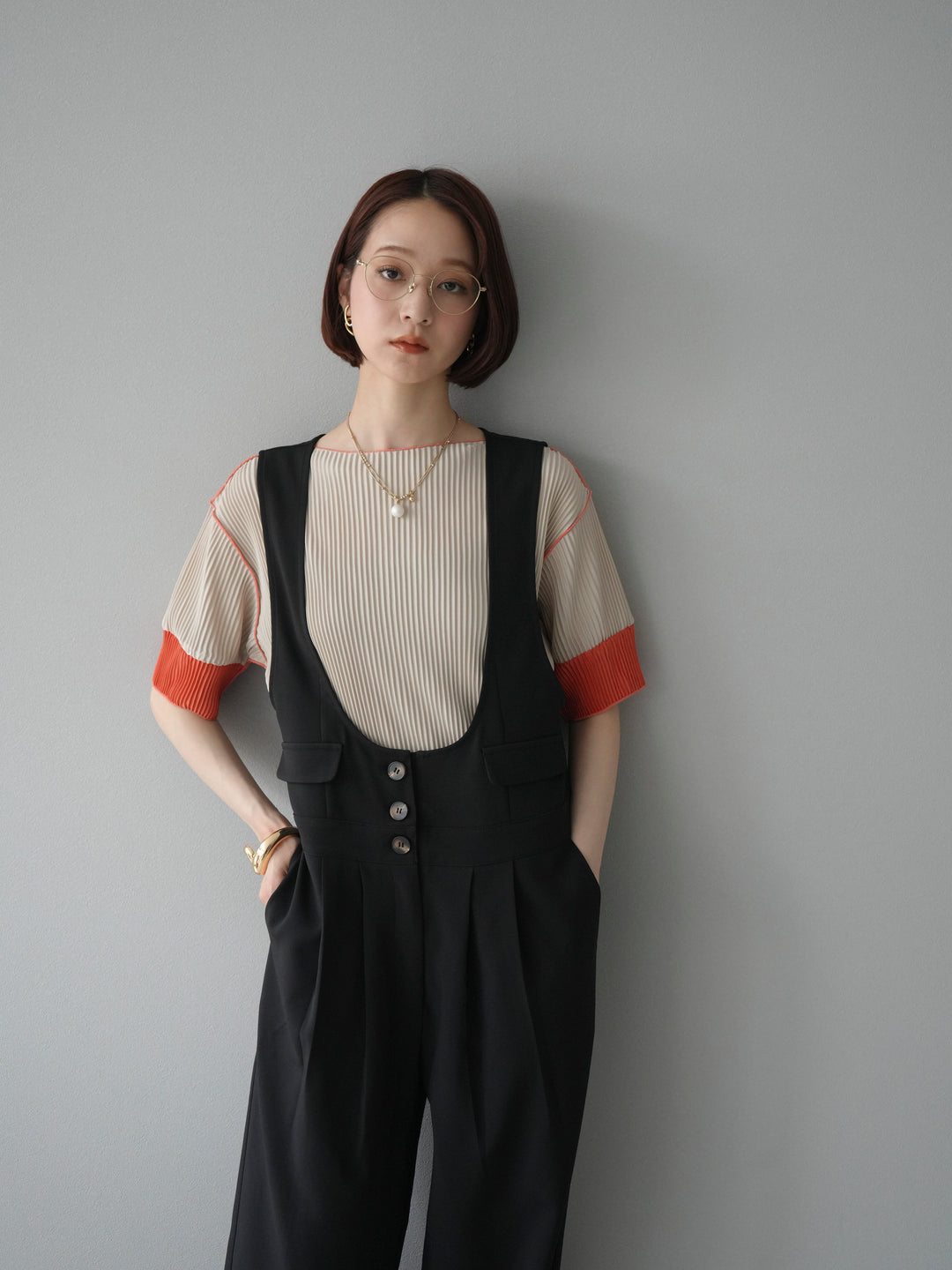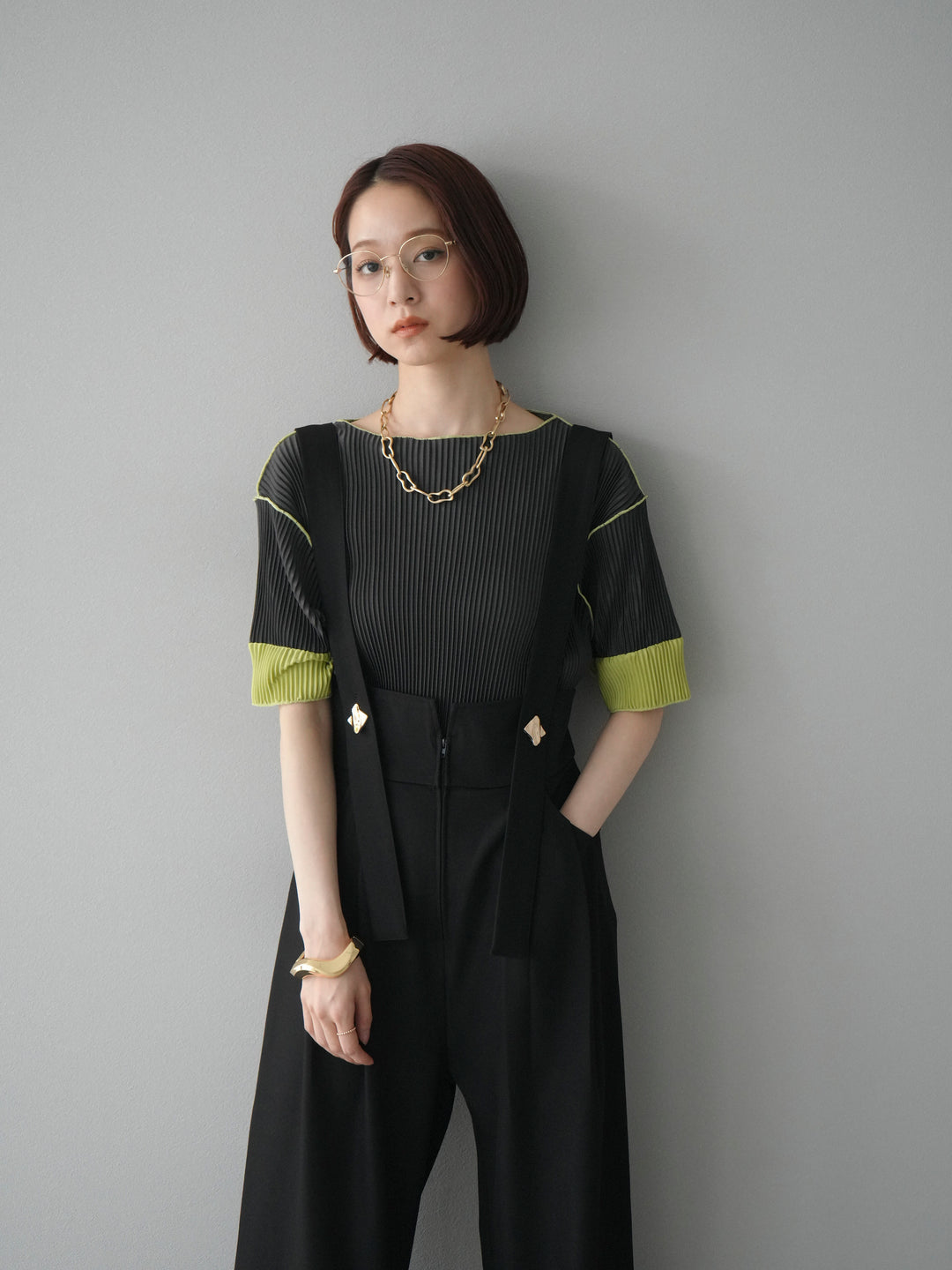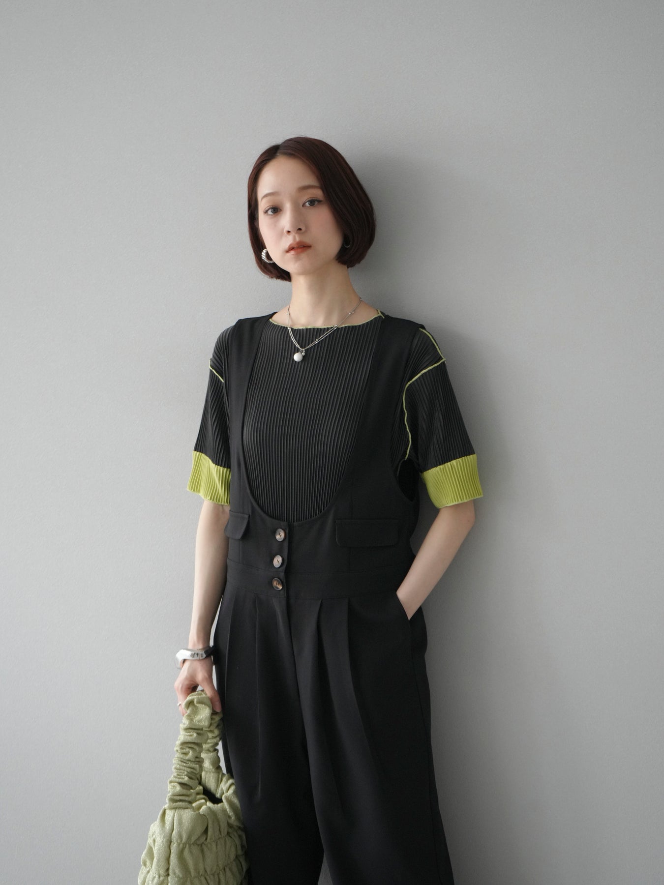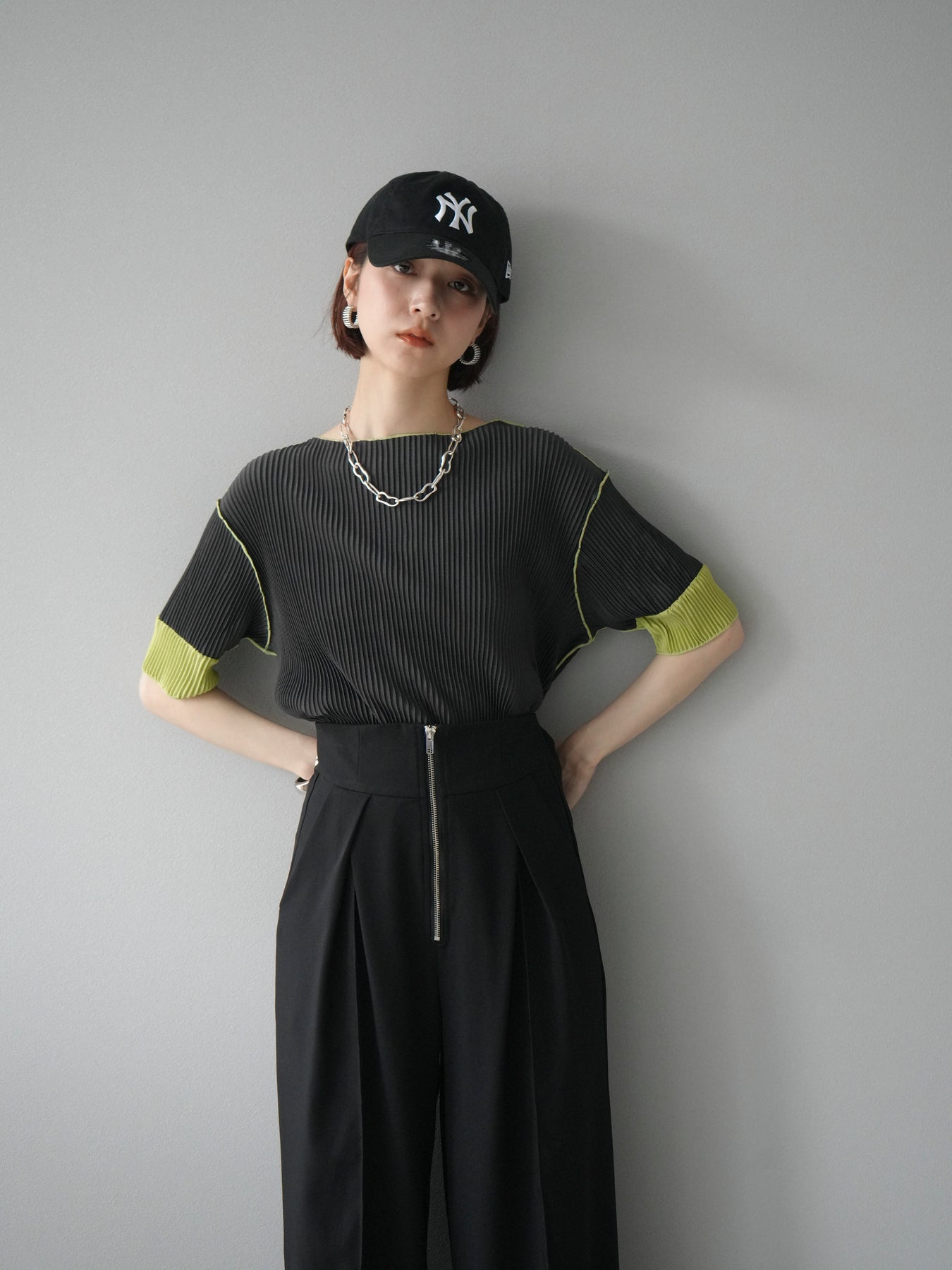 [予約]配色プリーツハーフスリーブトップス + [予約]配色プリーツハーフスリーブトップス