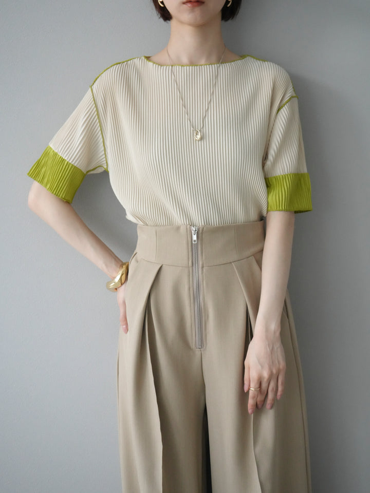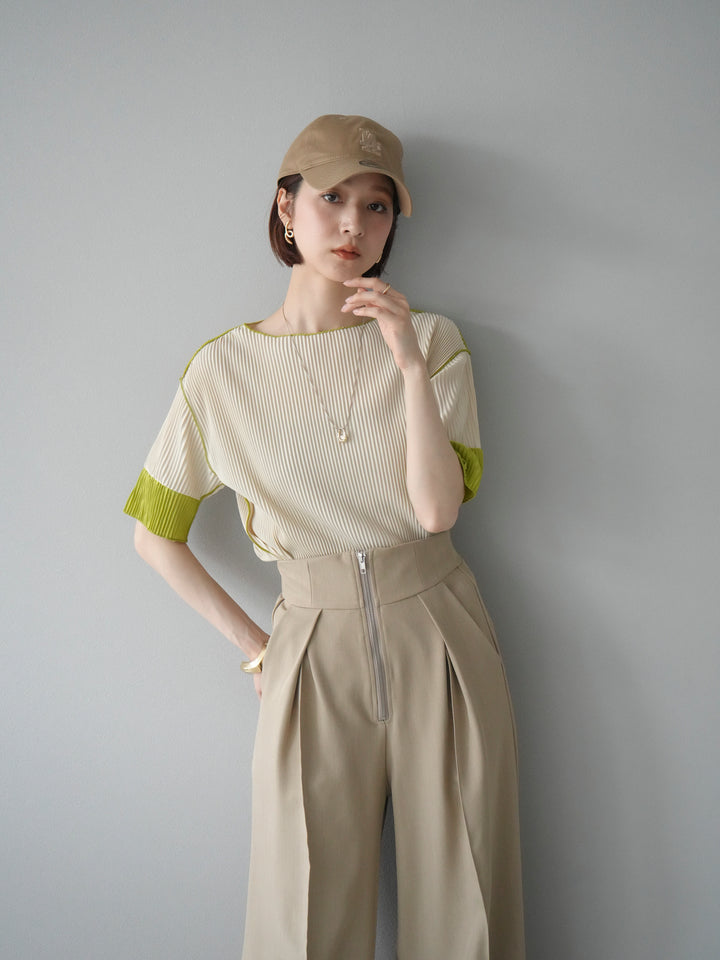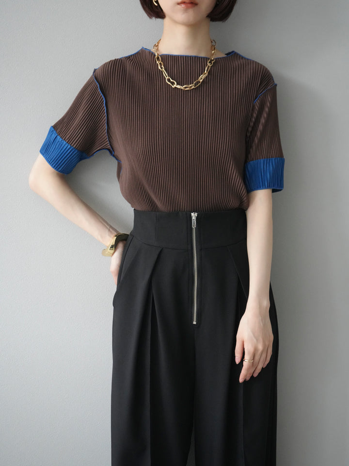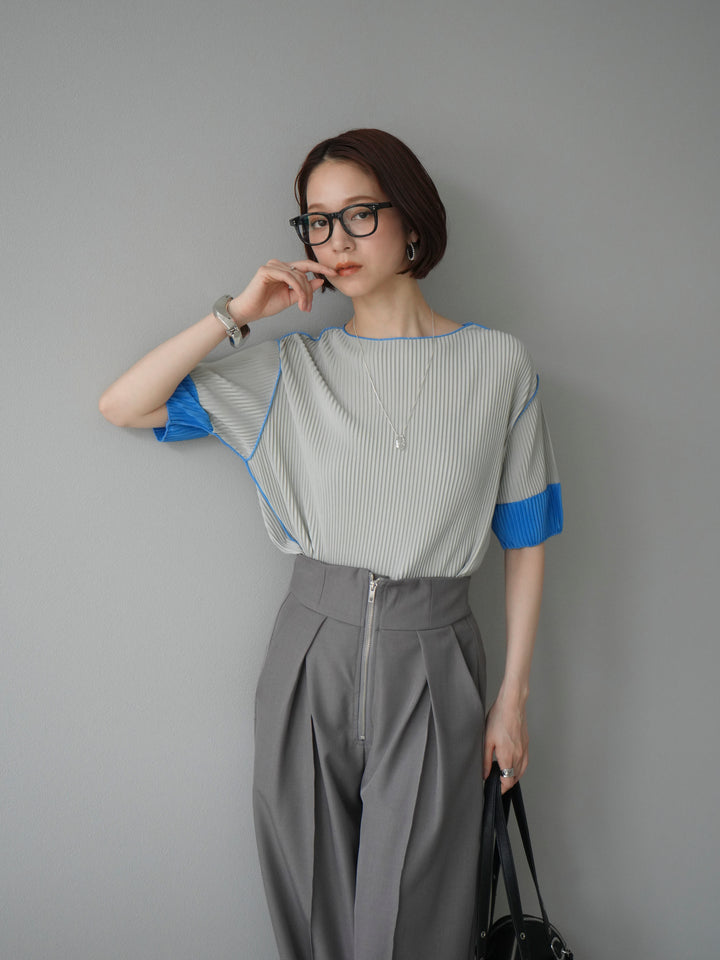 ◆ [予約]配色プリーツハーフスリーブトップス