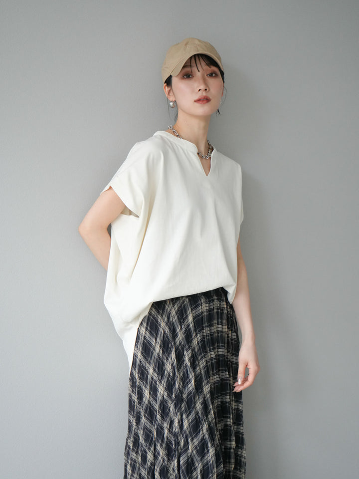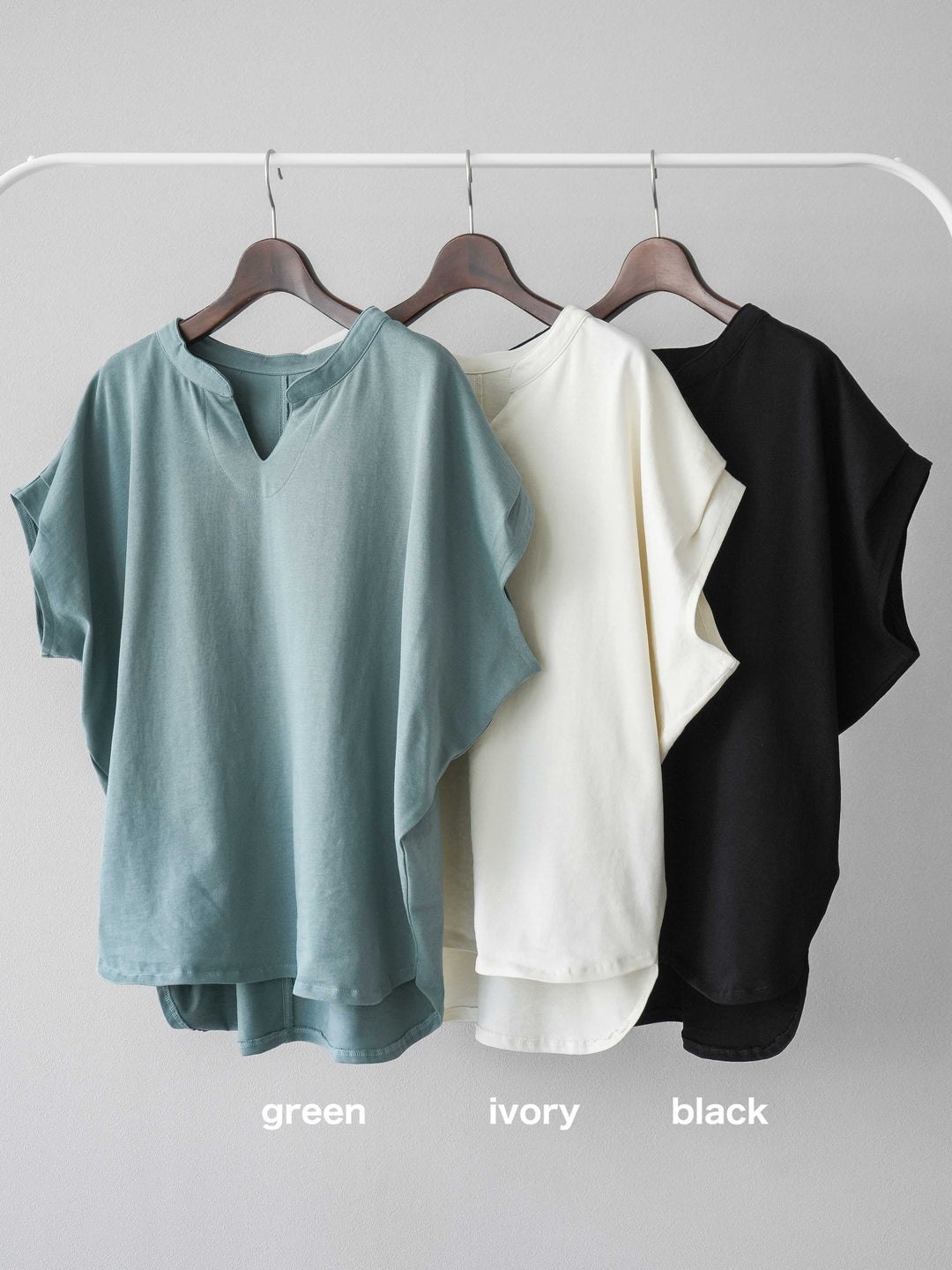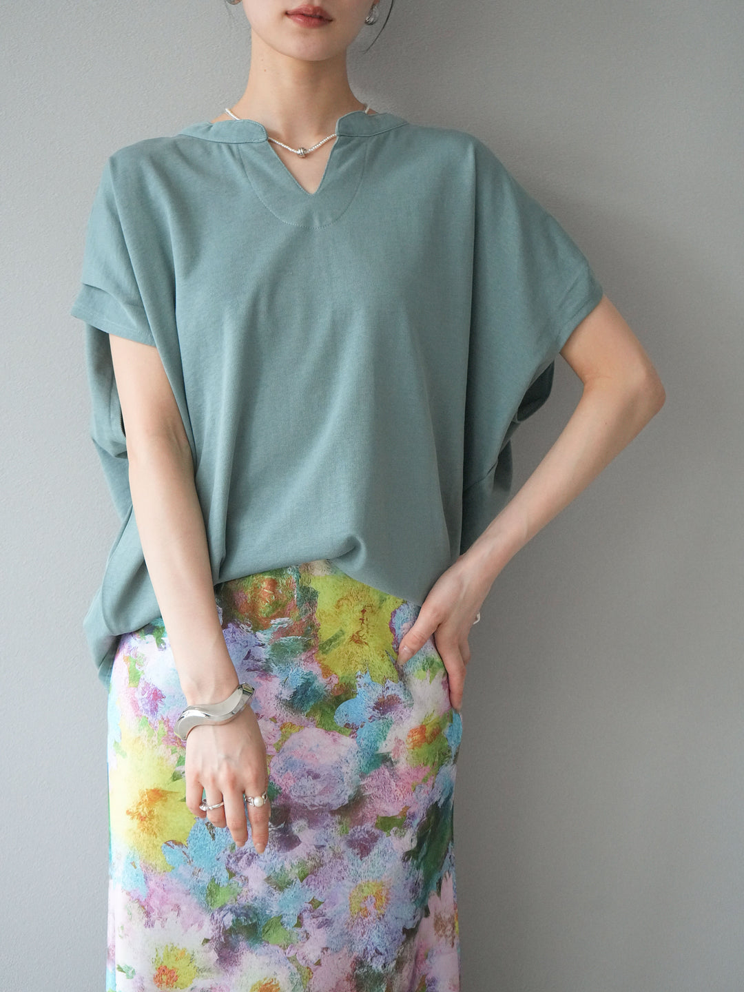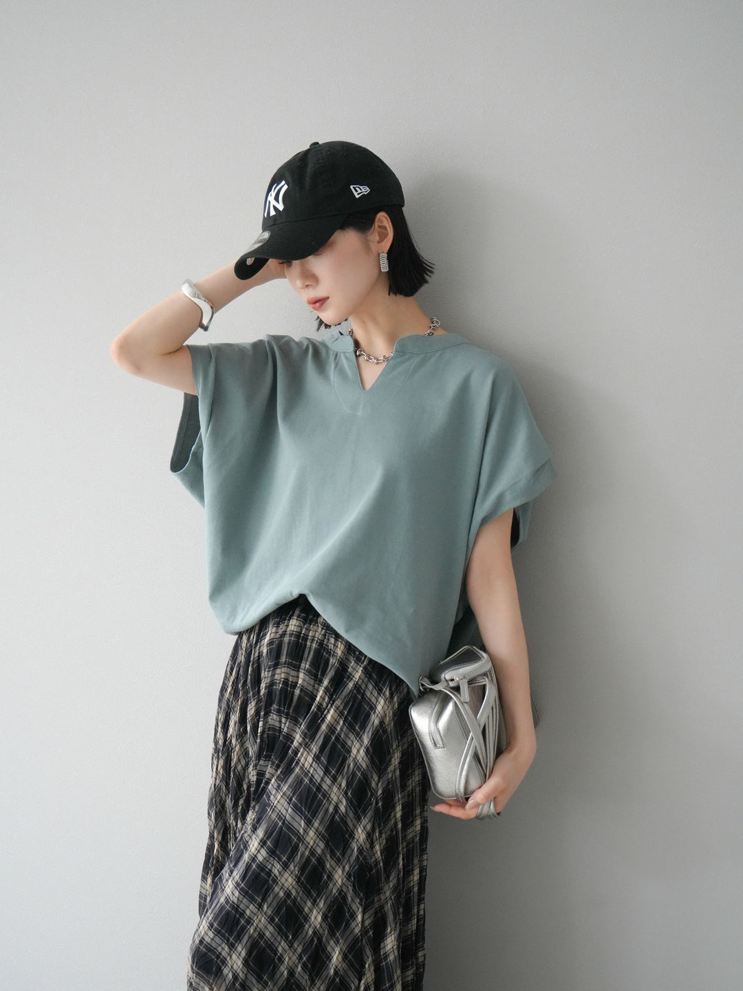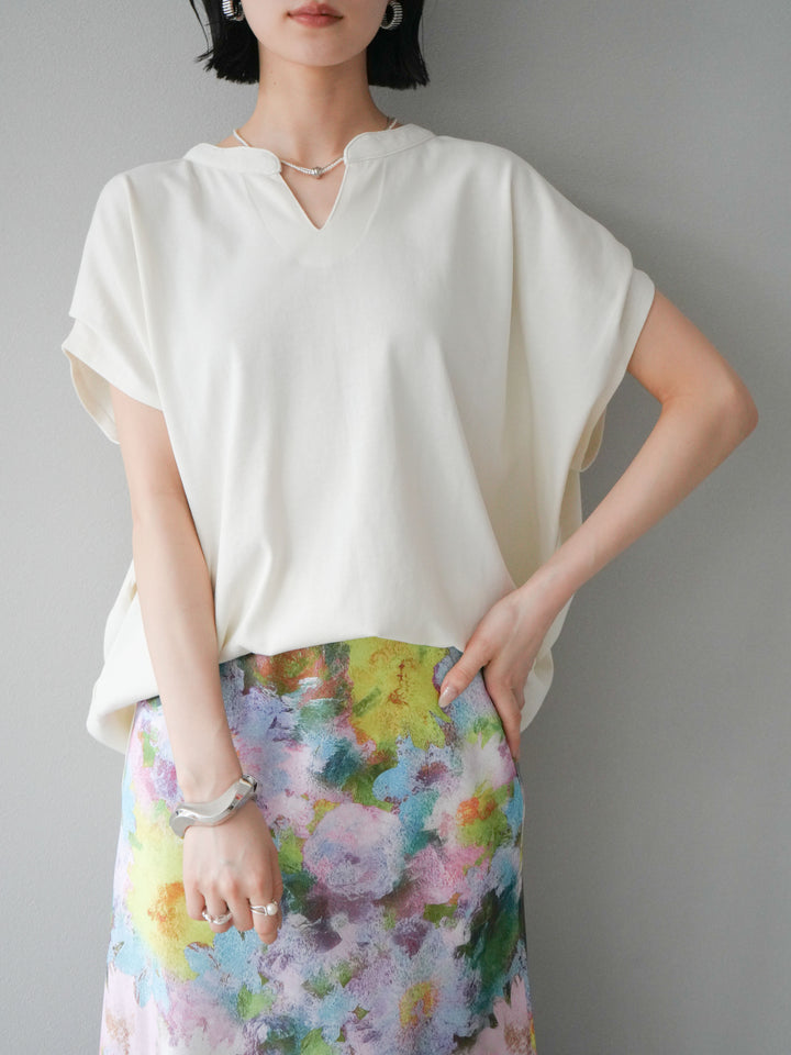 ◆ [予約]キーネックドルマンルーズコットンTシャツ