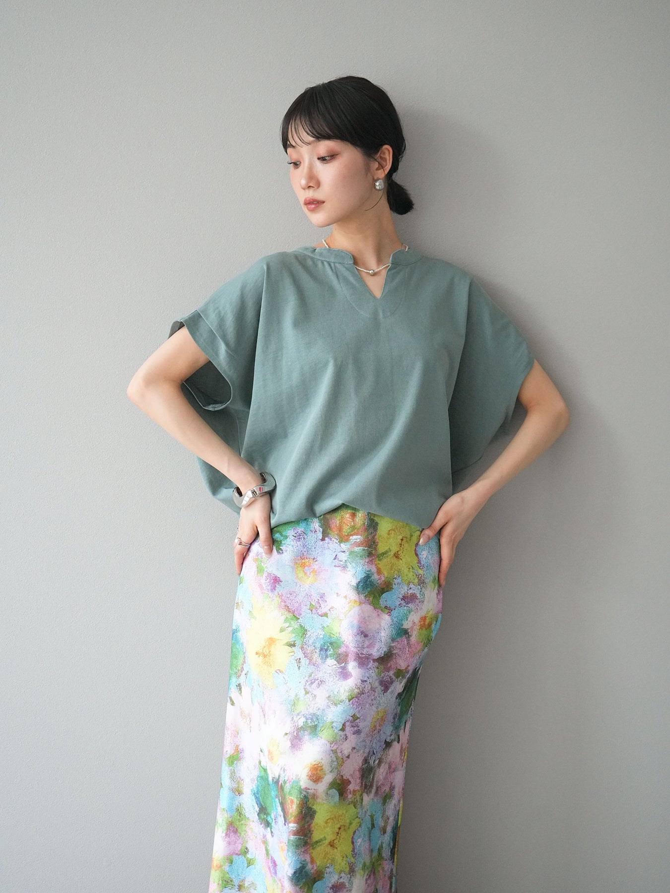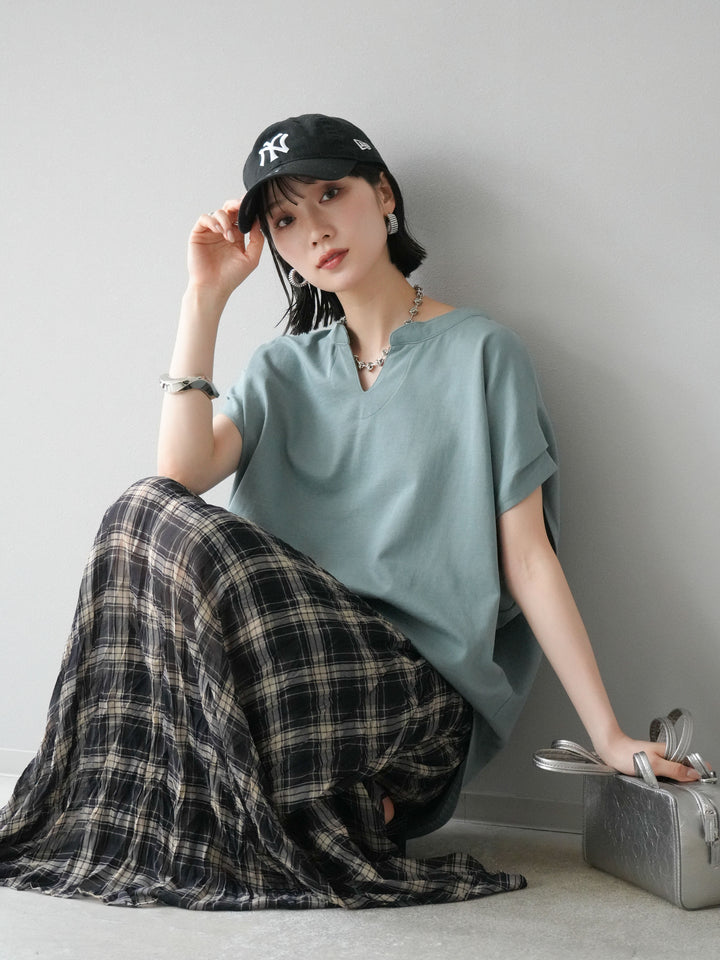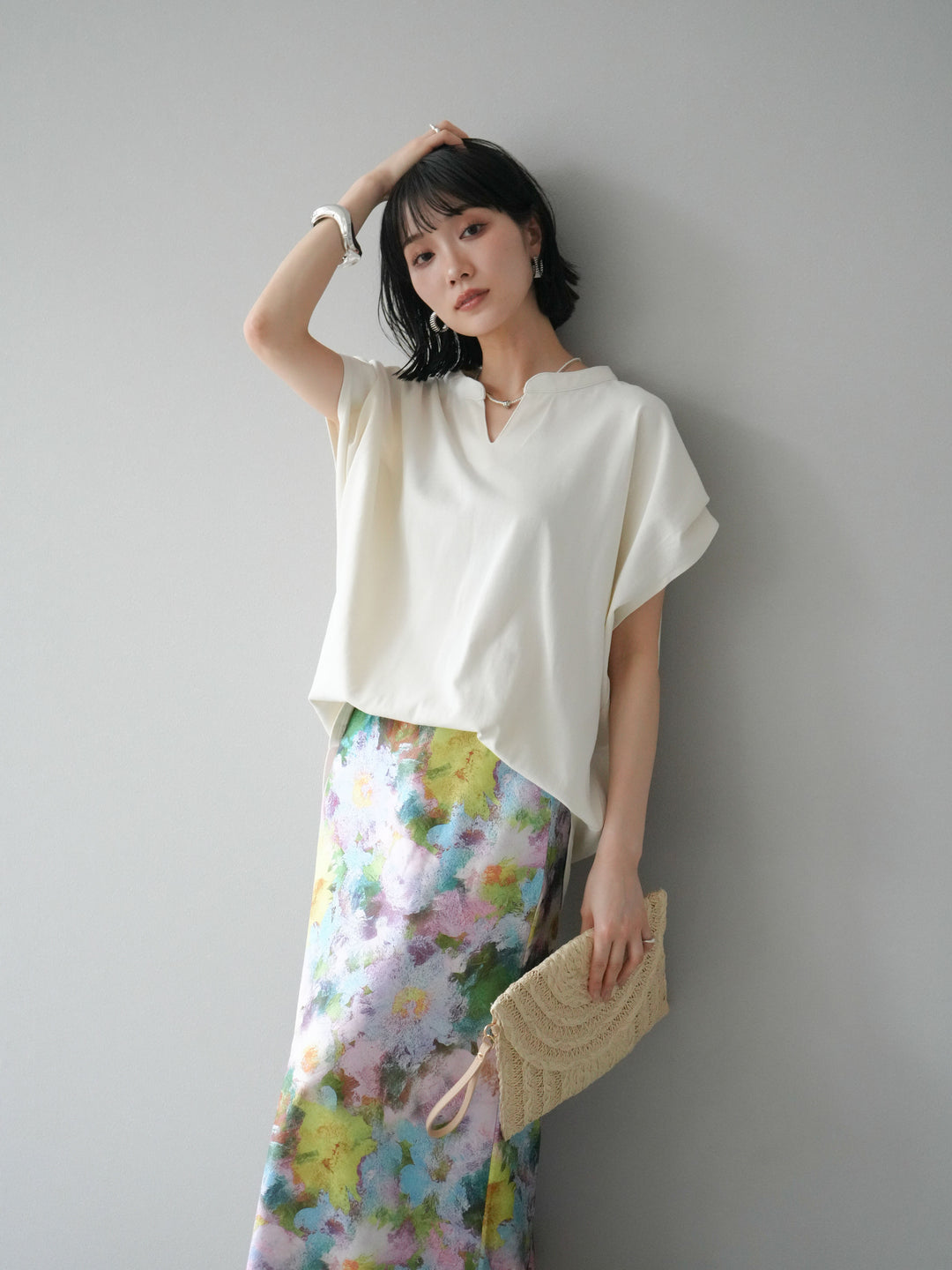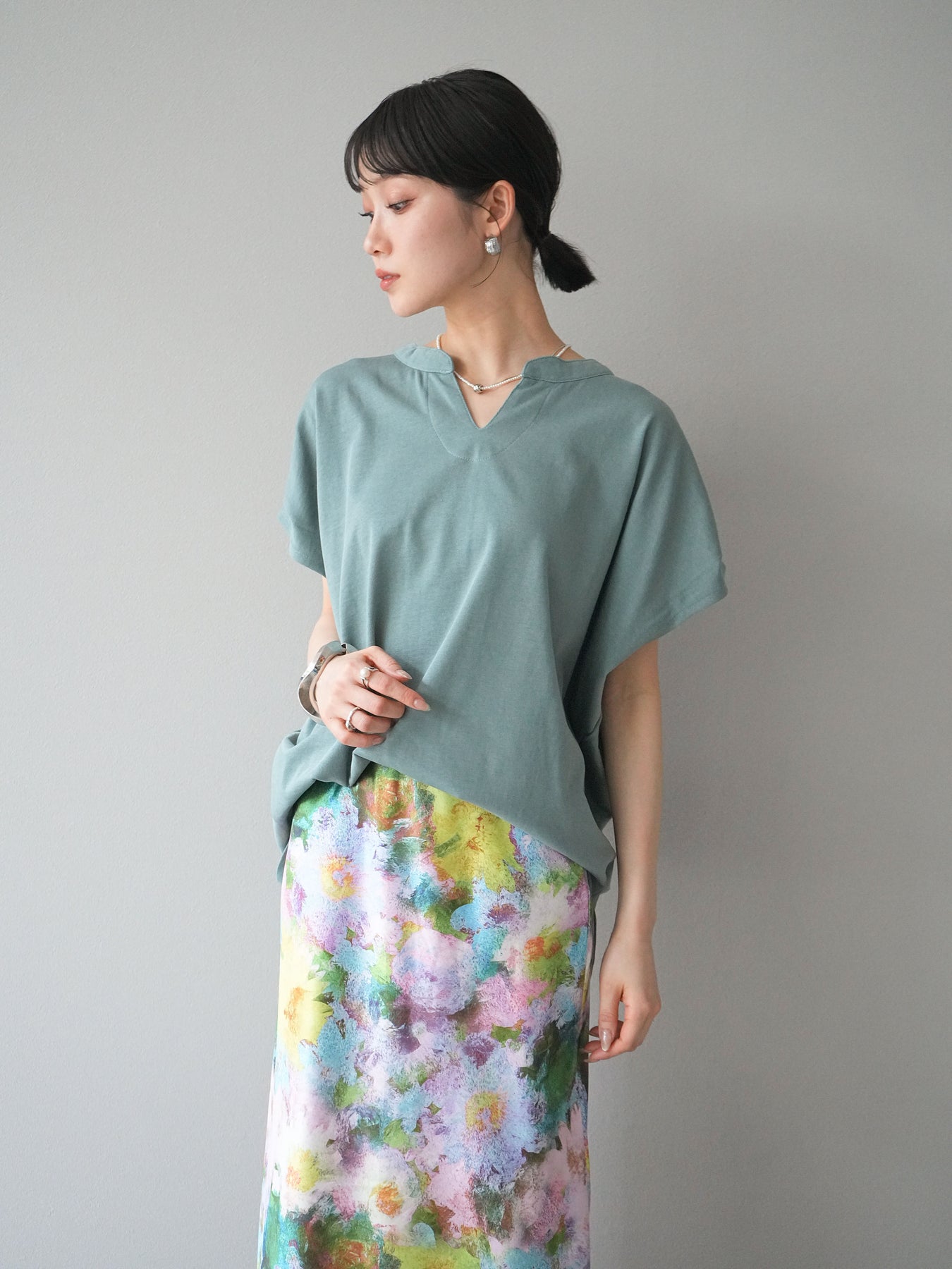 ◆ [予約]キーネックドルマンルーズコットンTシャツ