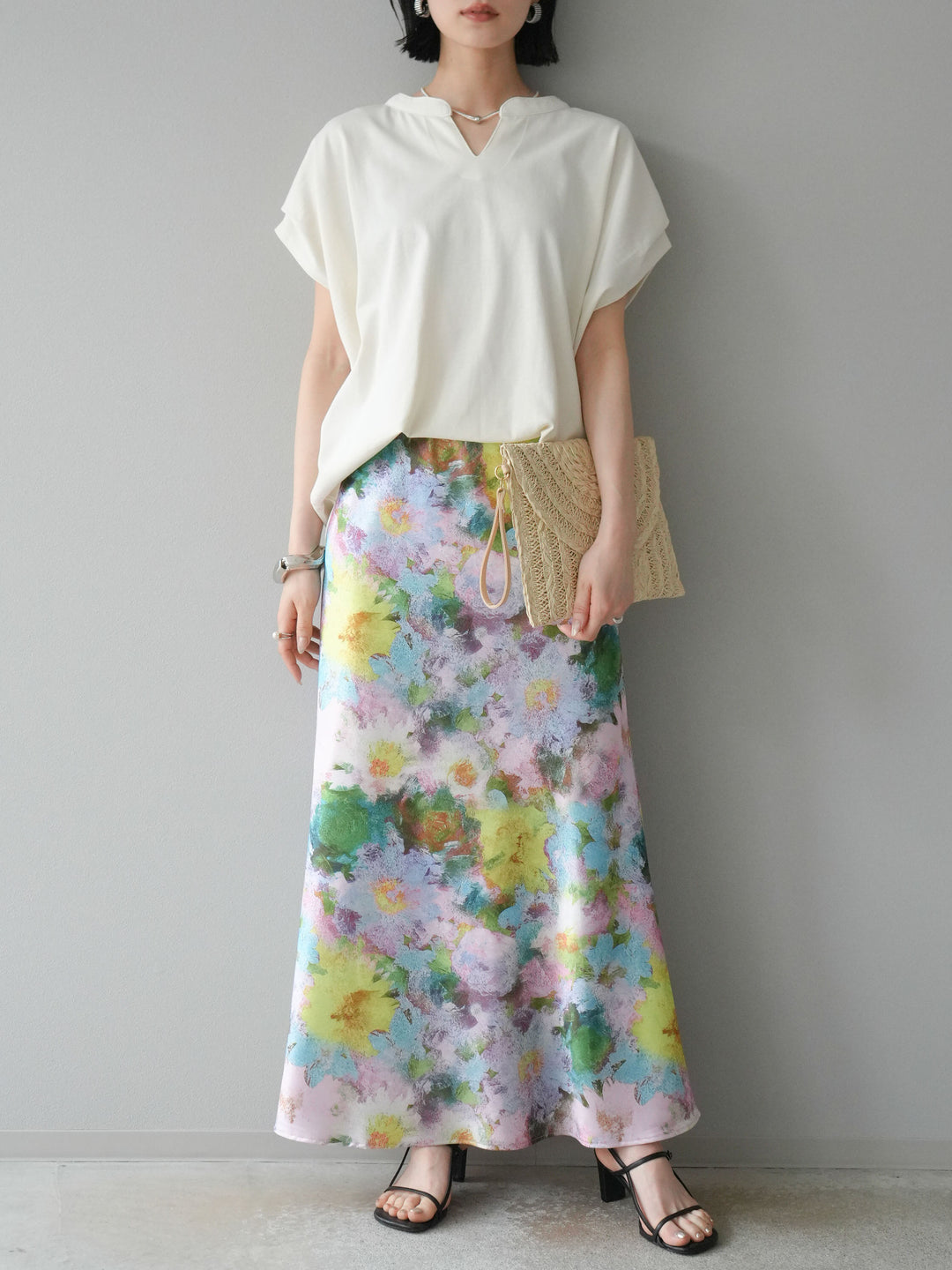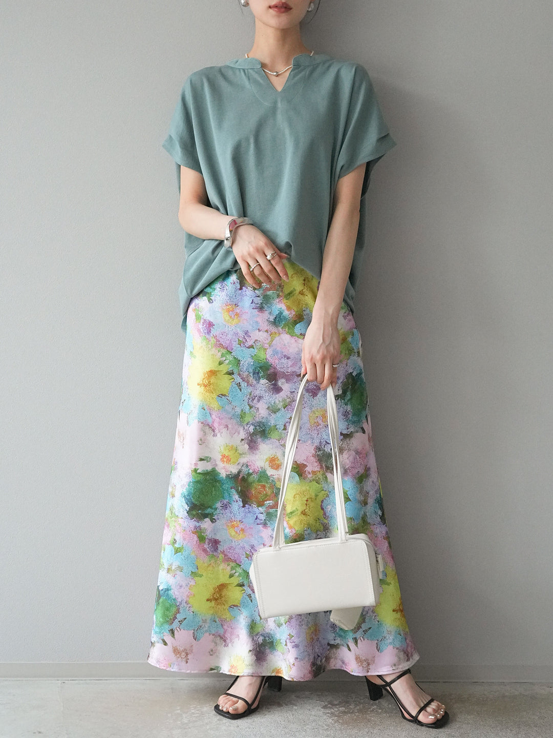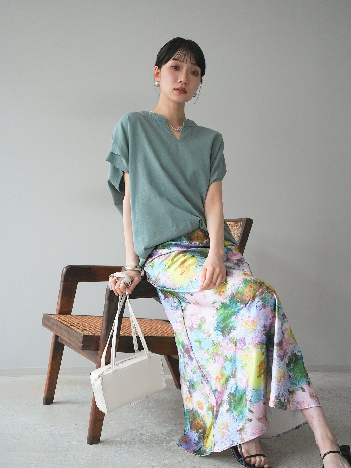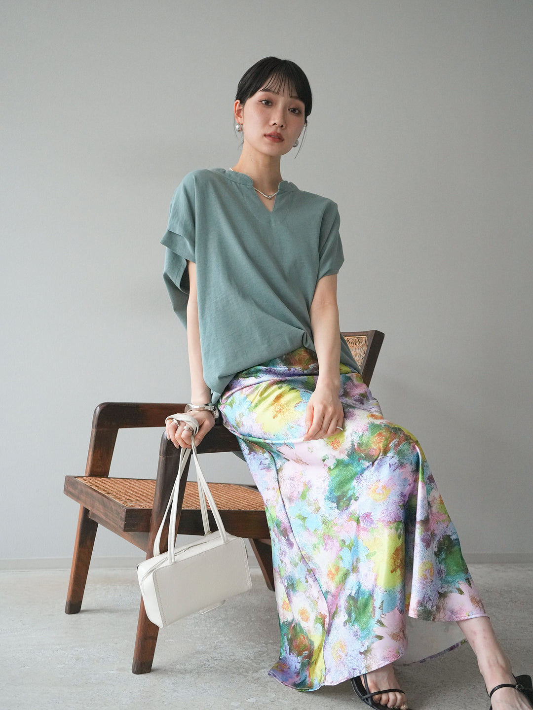 ◆ [予約]キーネックドルマンルーズコットンTシャツ