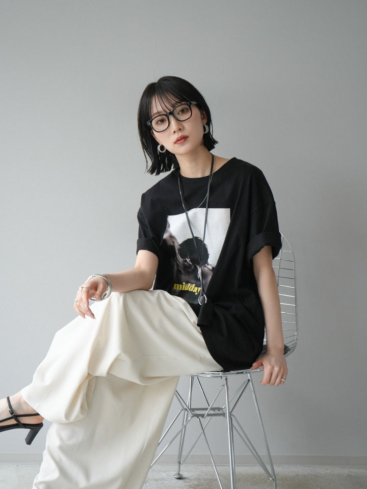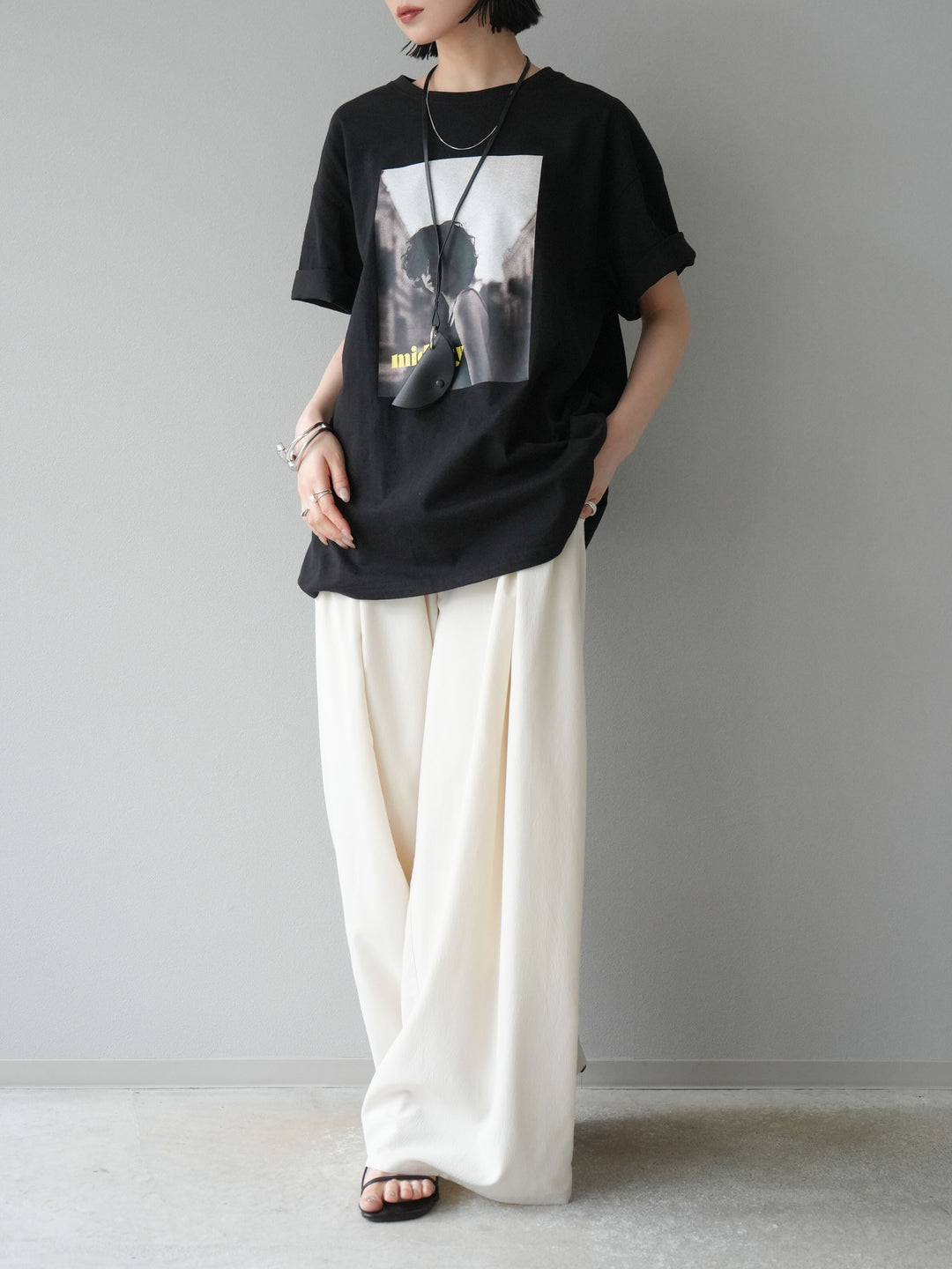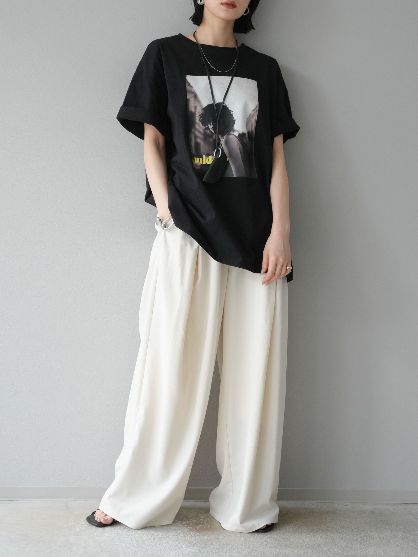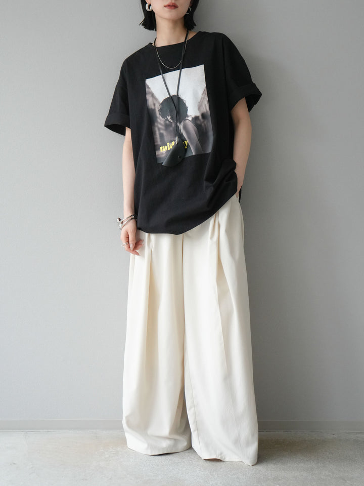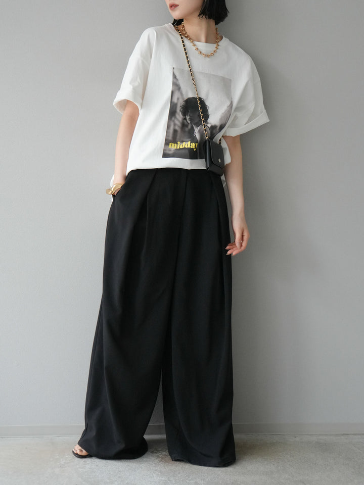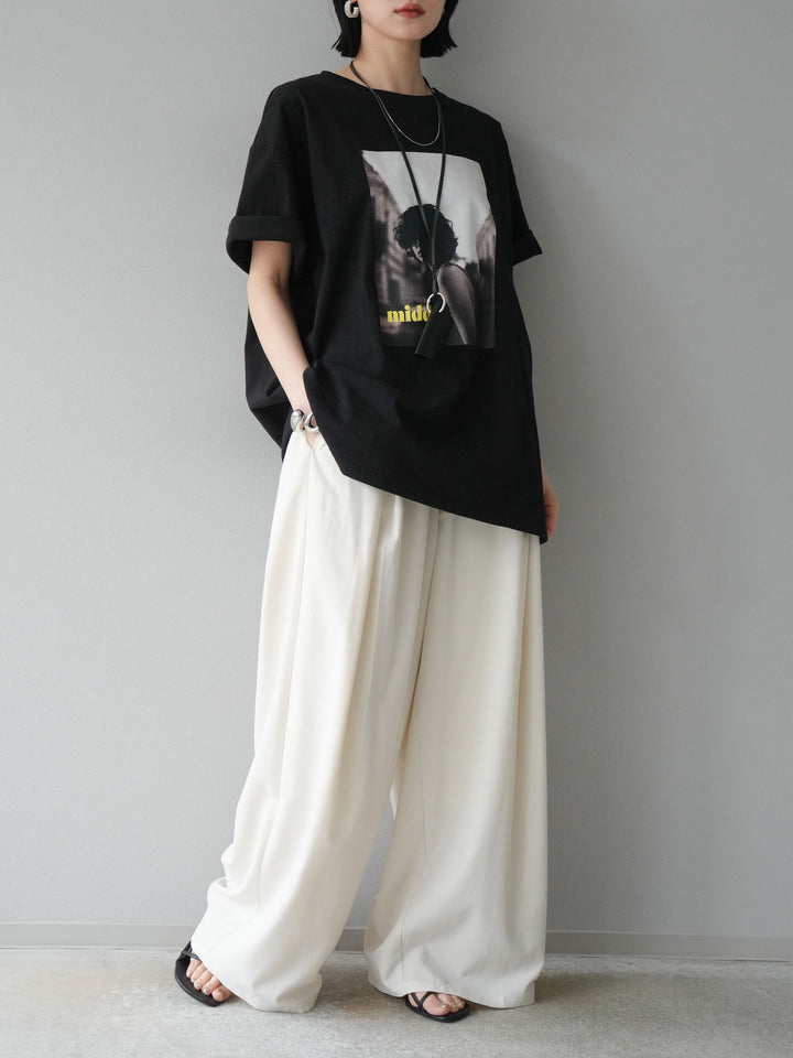 [SET]ネオンロゴフォトプリントBIG Tシャツ+クレープシフォンタックワイドパンツ(2set)
