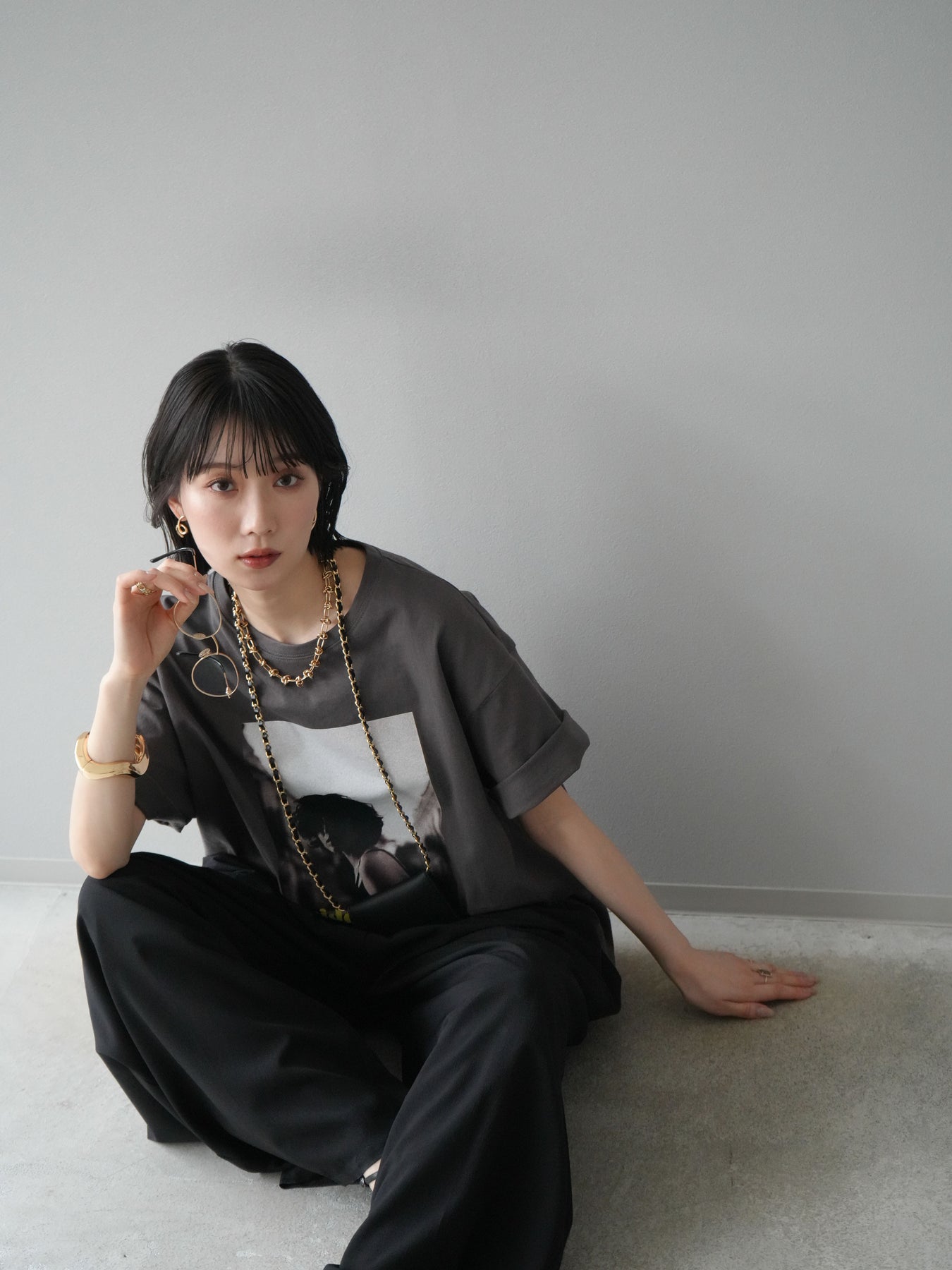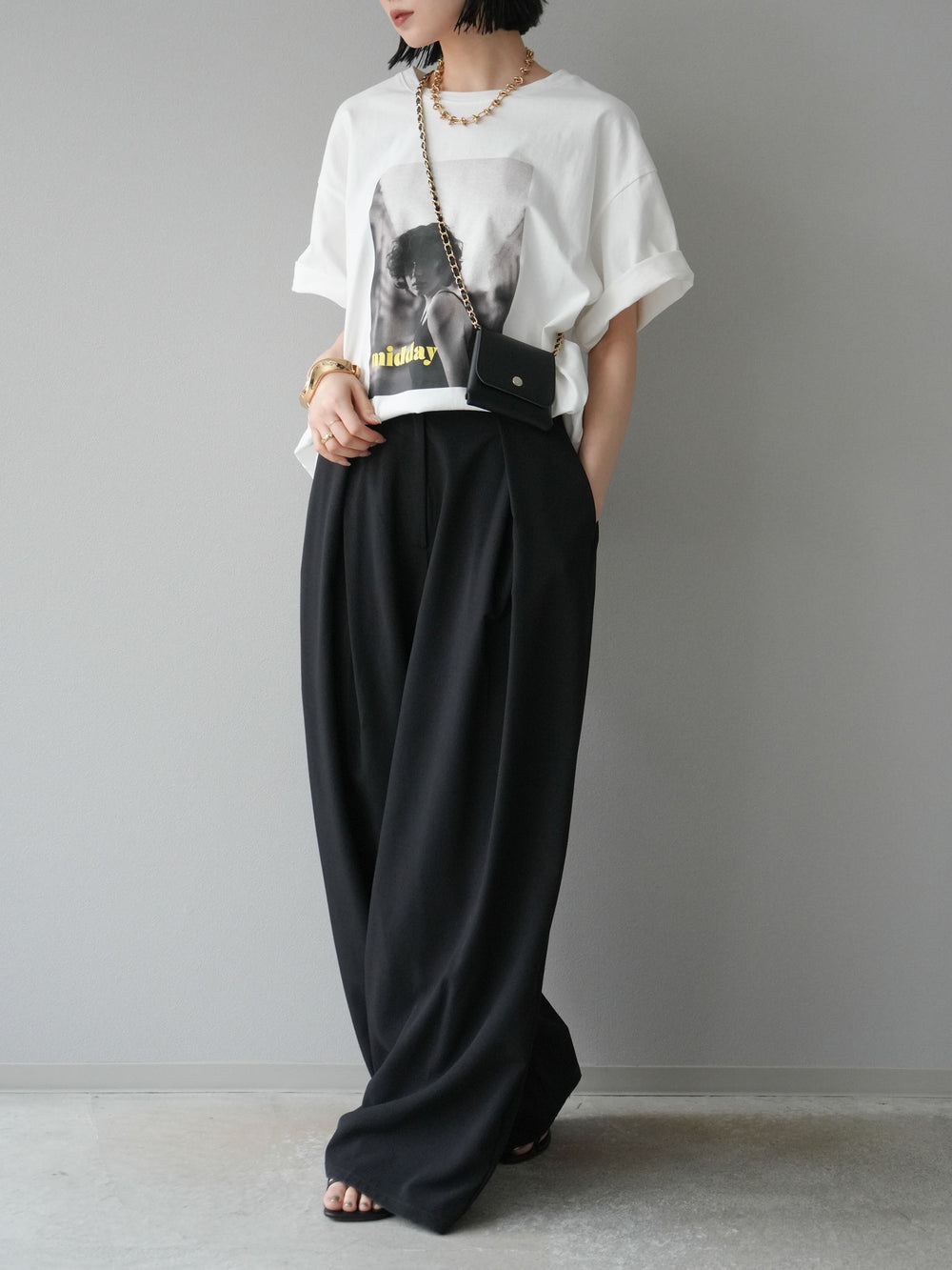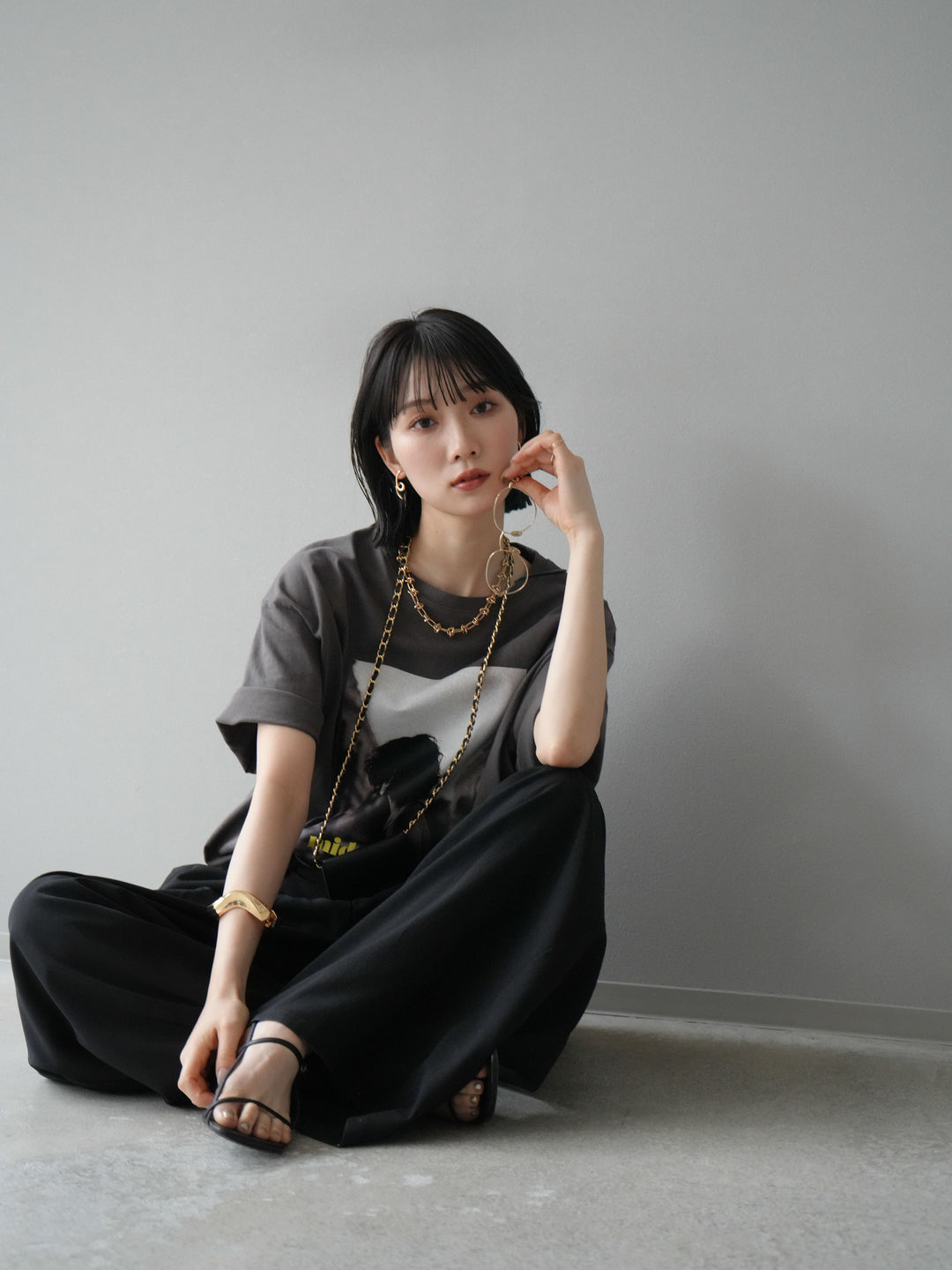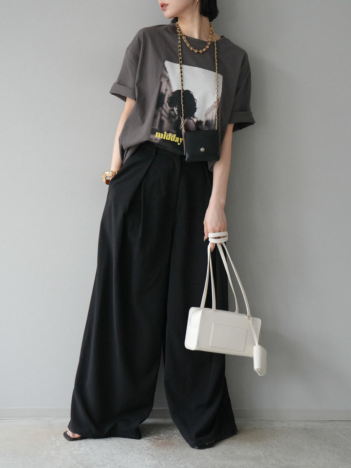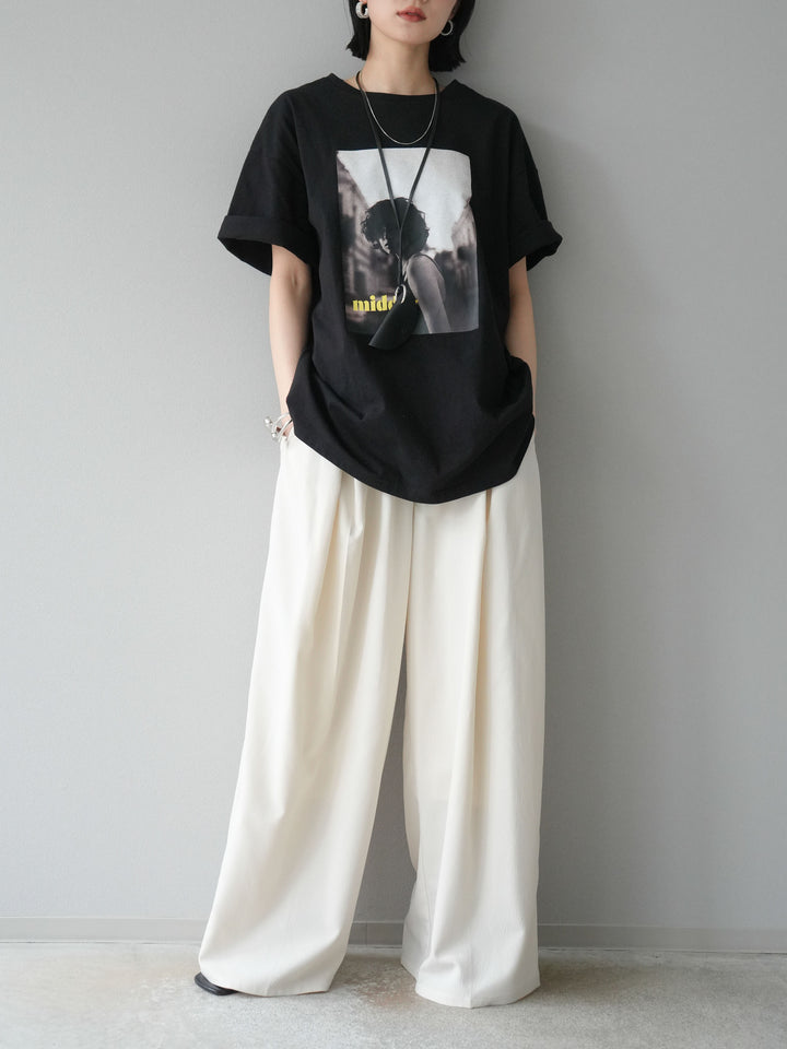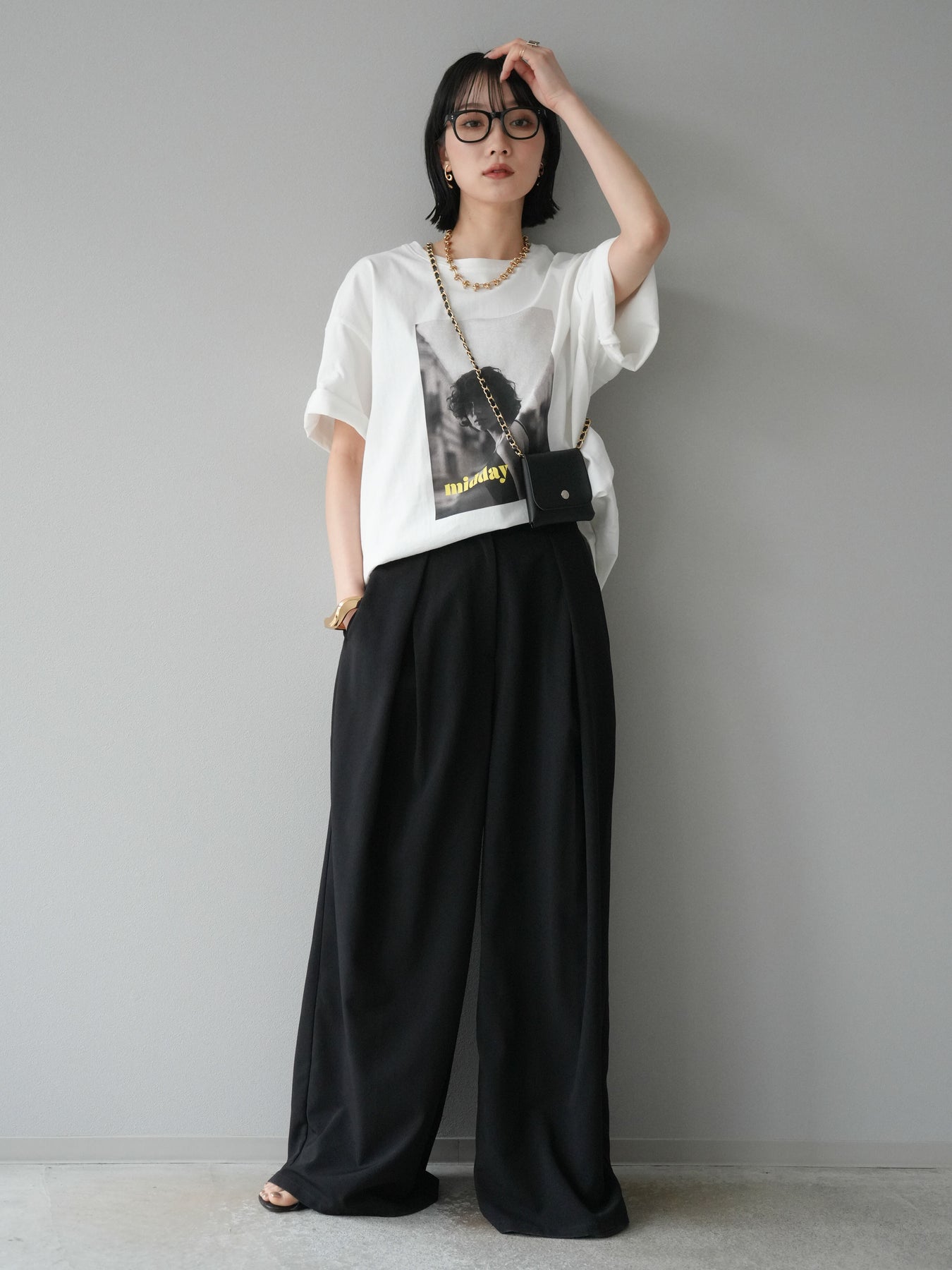 [SET]ネオンロゴフォトプリントBIG Tシャツ+クレープシフォンタックワイドパンツ(2set)