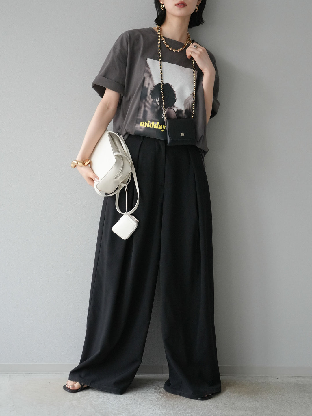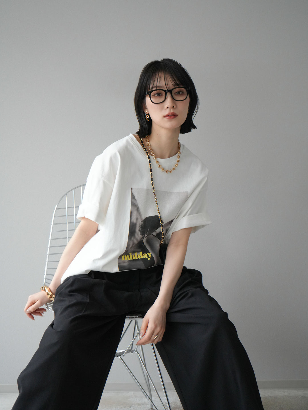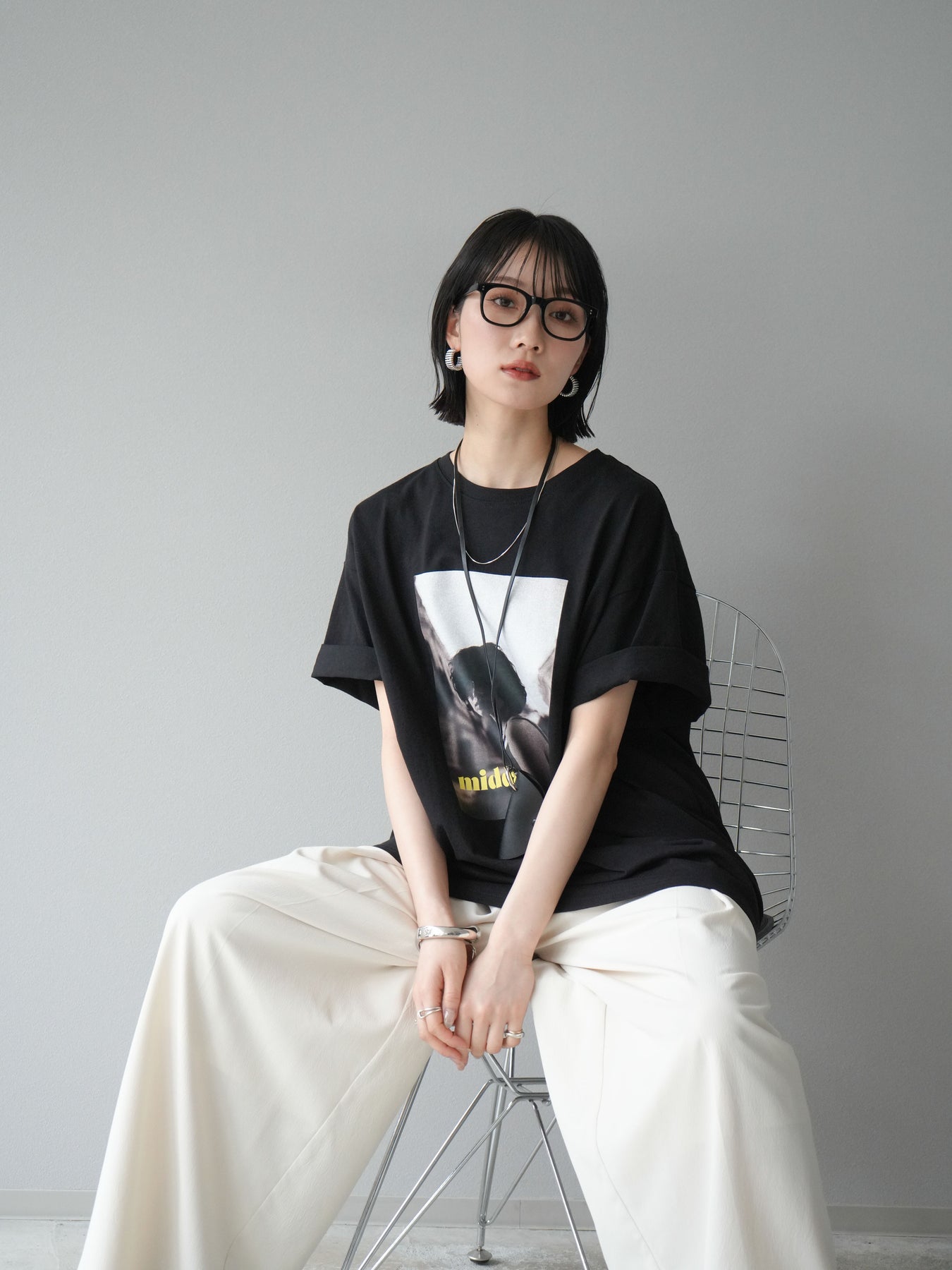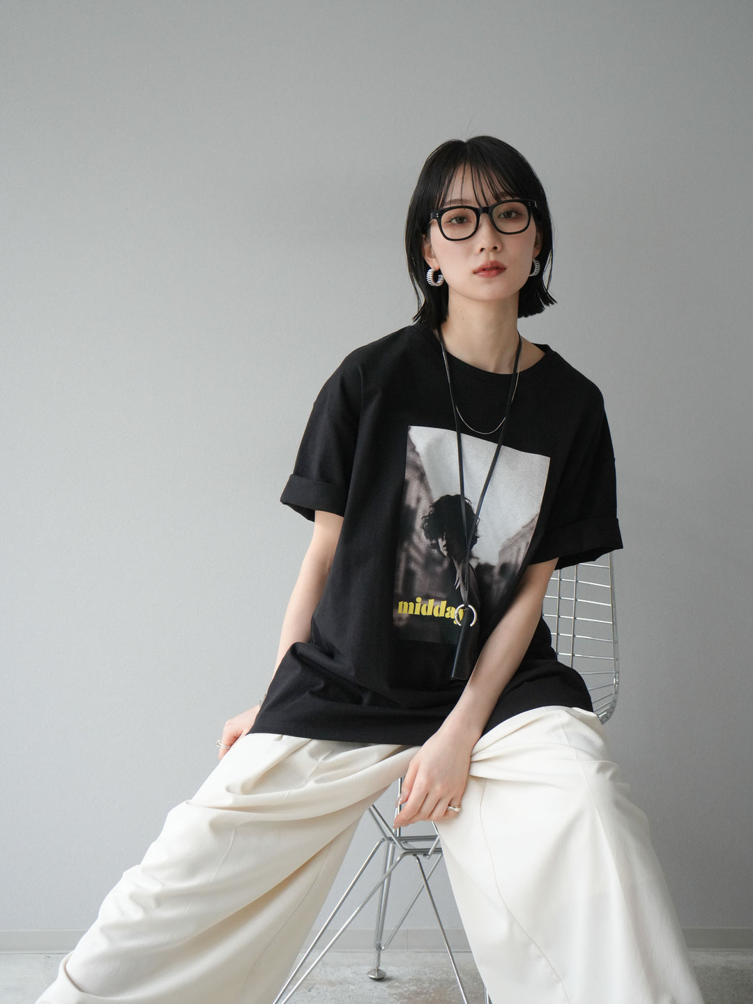 [SET]ネオンロゴフォトプリントBIG Tシャツ+クレープシフォンタックワイドパンツ(2set)