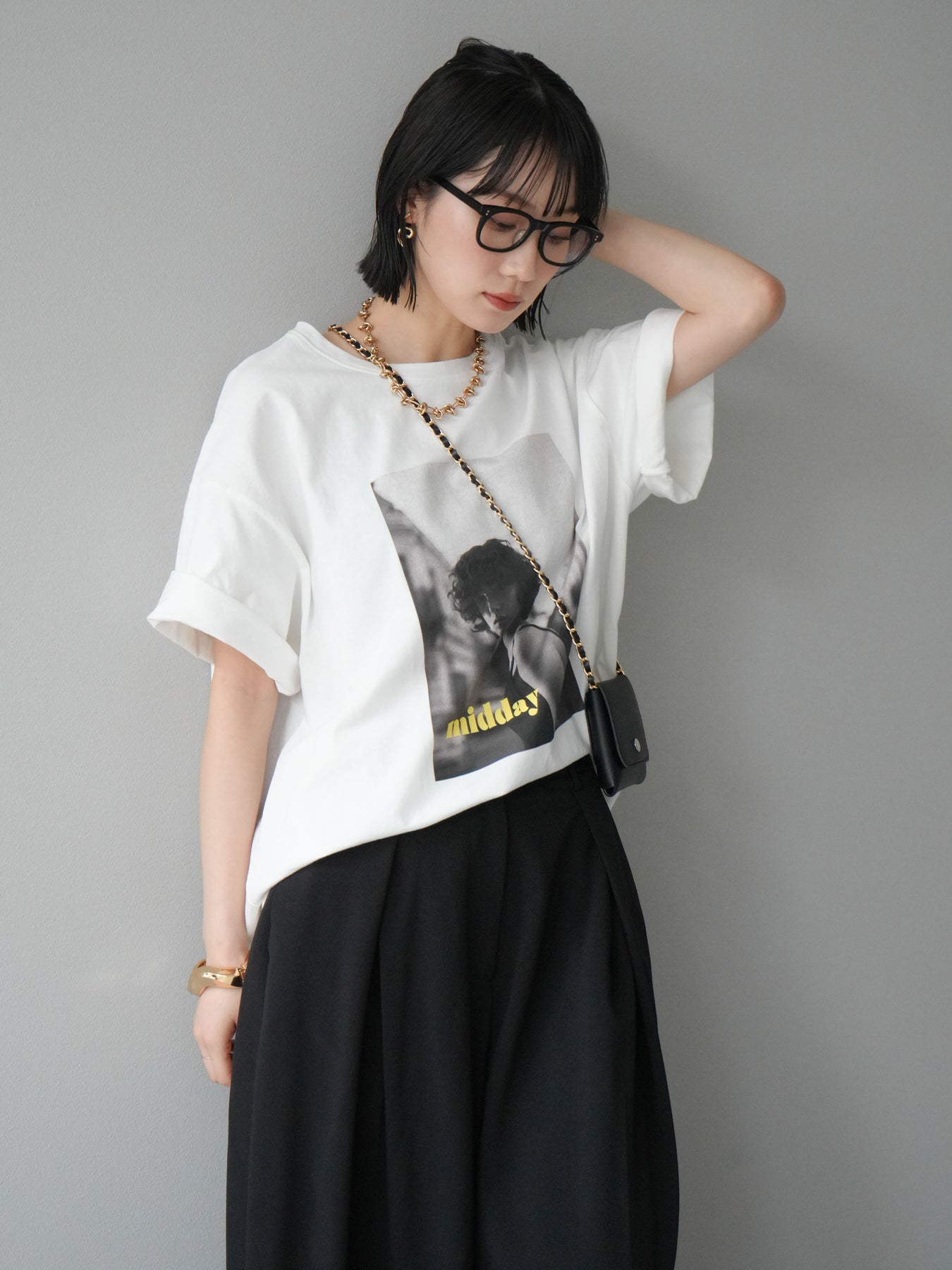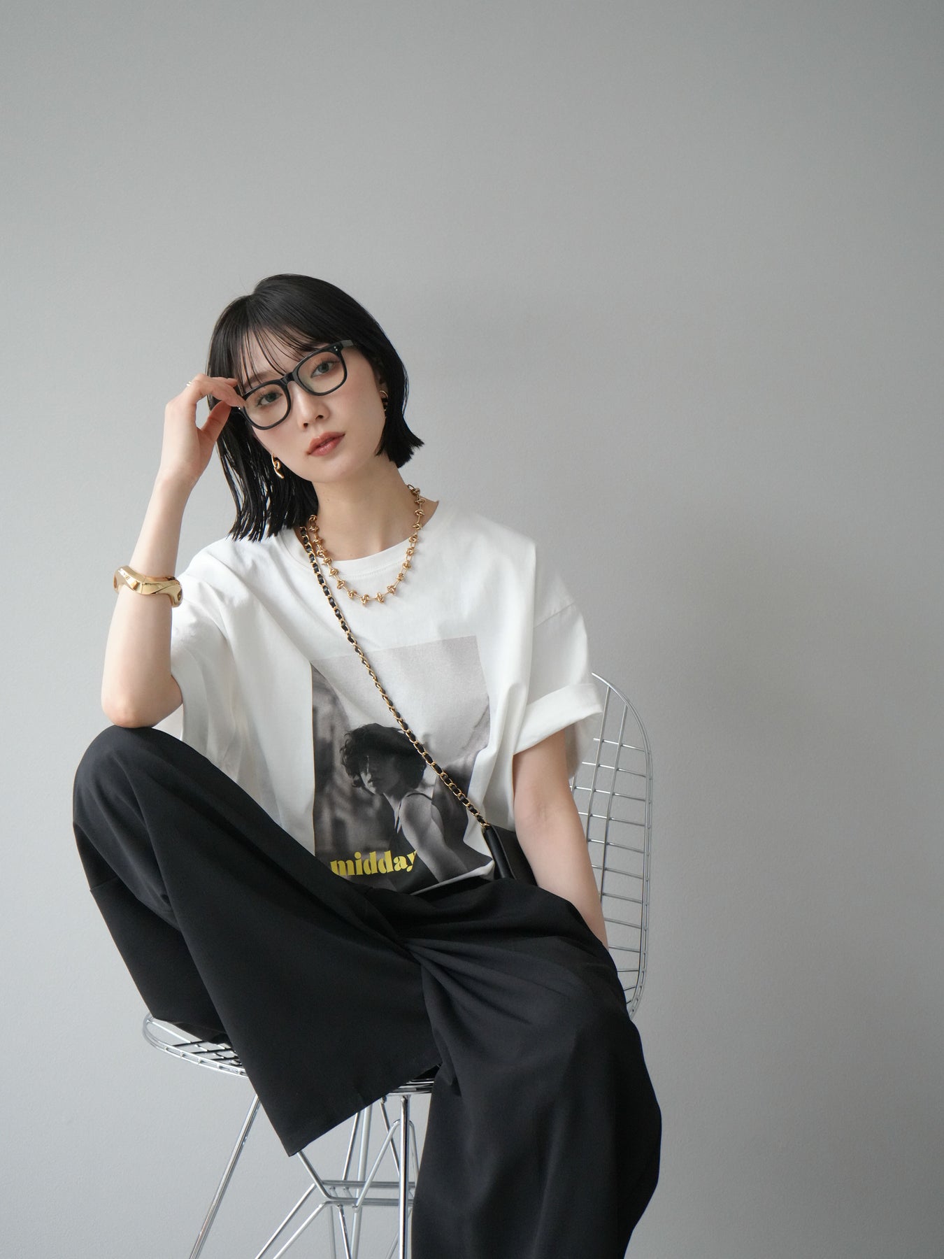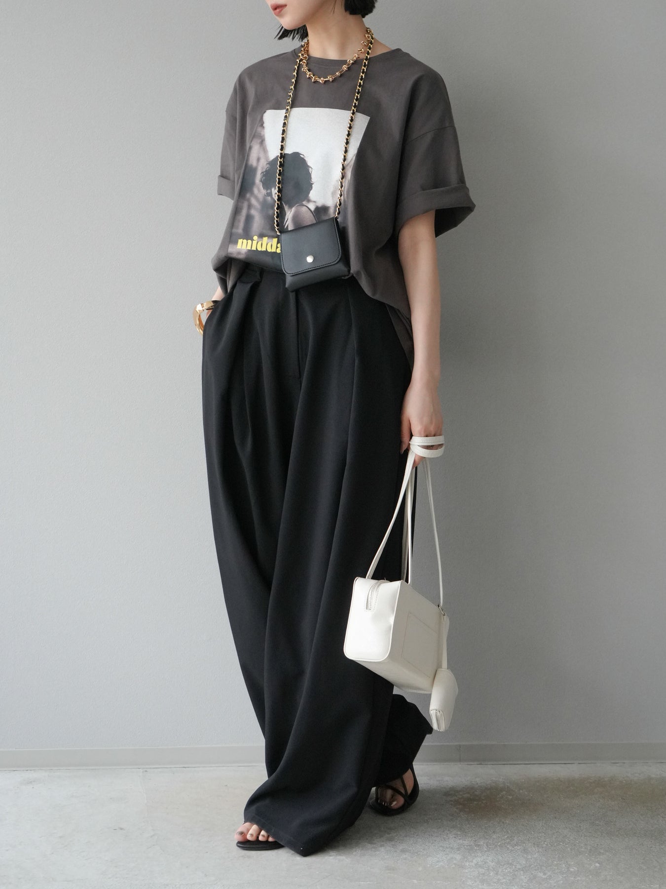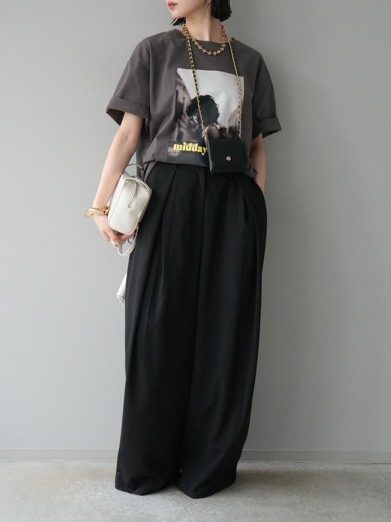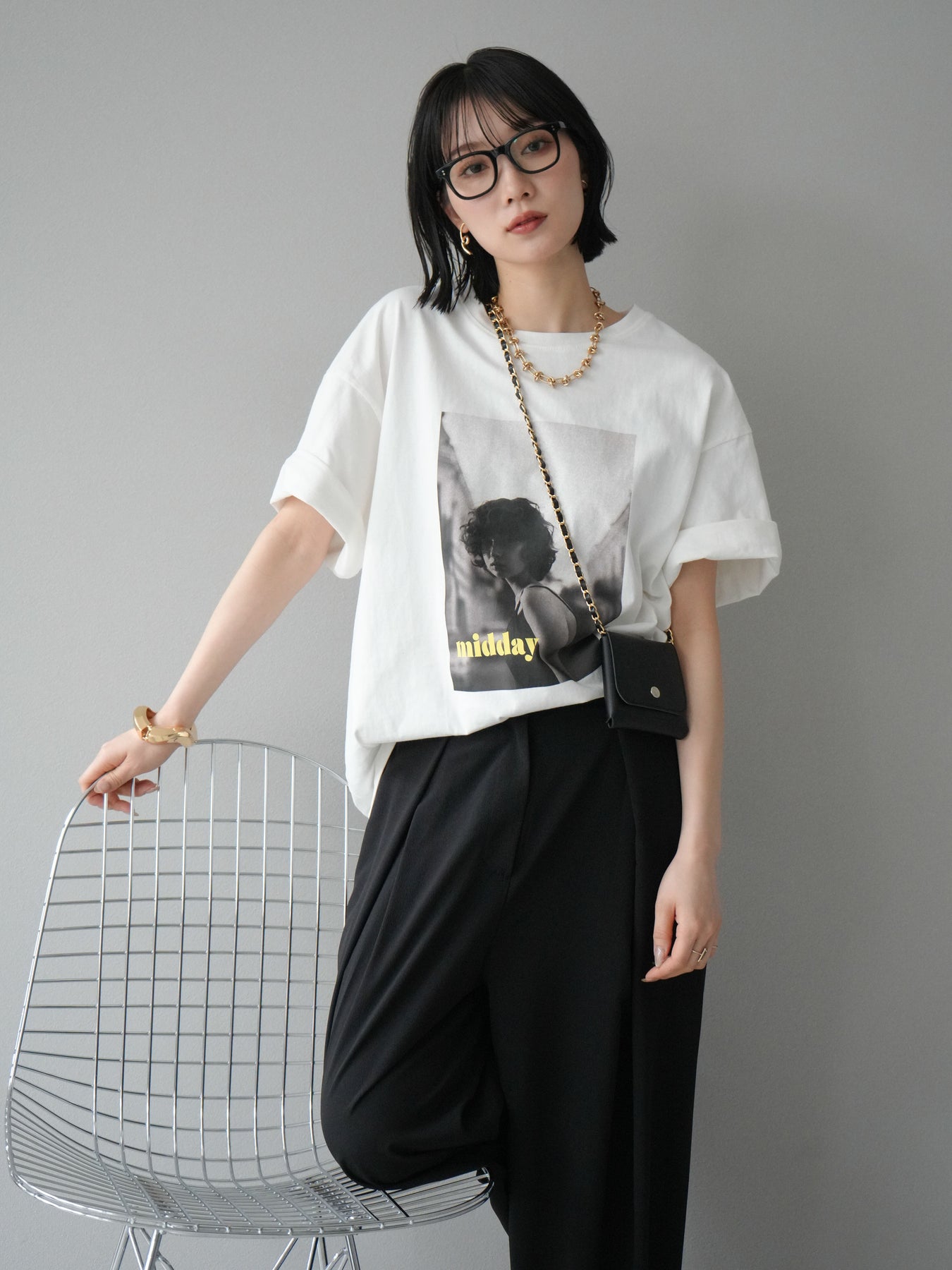 [SET]ネオンロゴフォトプリントBIG Tシャツ+クレープシフォンタックワイドパンツ(2set)