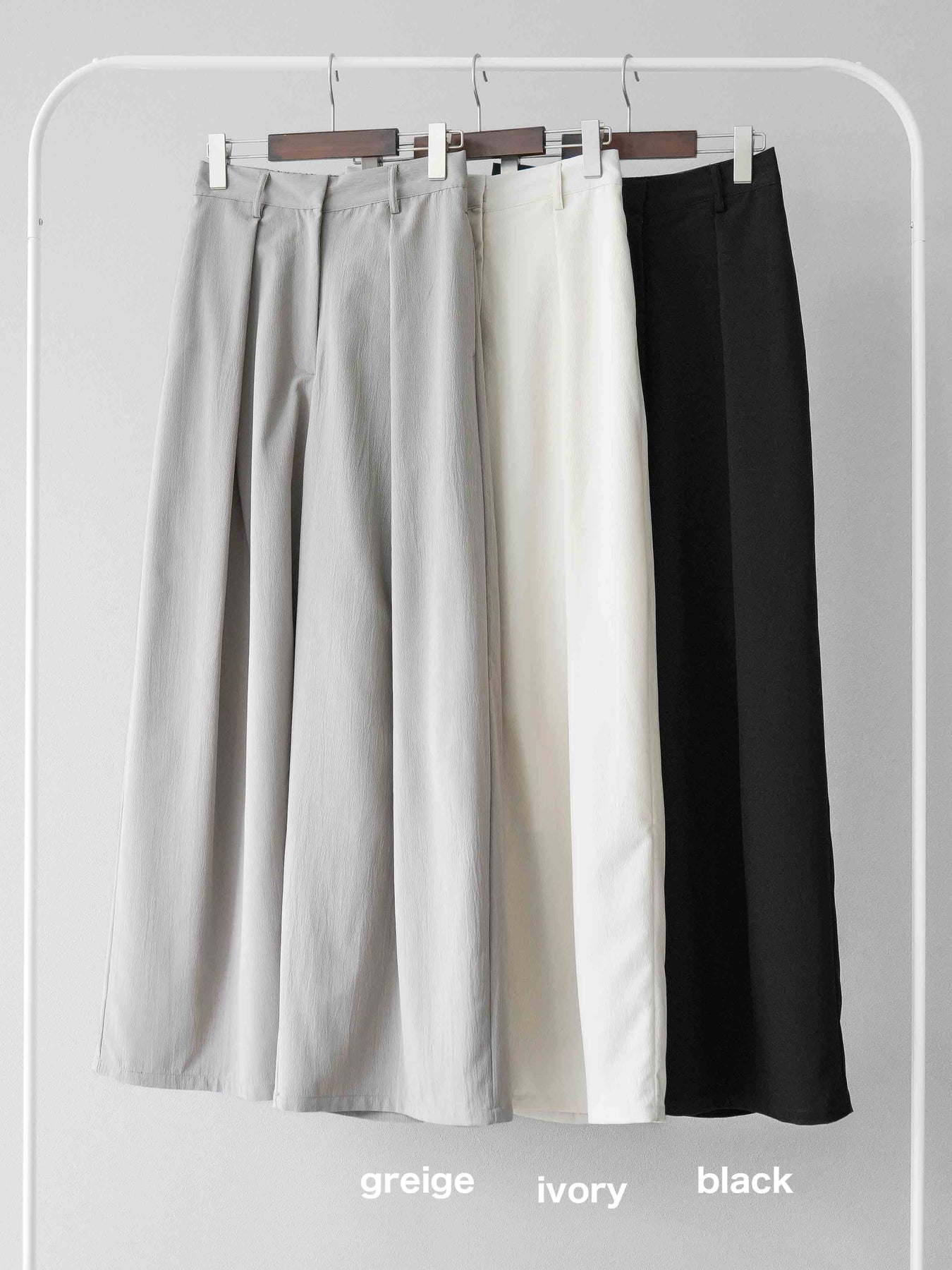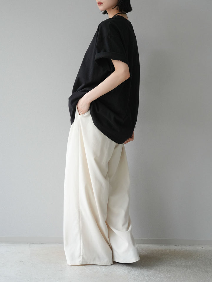 軽やかなクレープシフォン素材が魅力のワイドパンツ。タックを効かせた立体的なシルエットで、動くたびに優雅な揺れ感を演出します。ウエストはゴム仕様でストレスフリーな穿き心地。シンプルなトップスを合わせるだけで、上品でトレンド感のあるコーディネートが完成する一枚です。 ※ボトムス、キャミソール(インナー)以外の商品は一律でインナーは付属していません