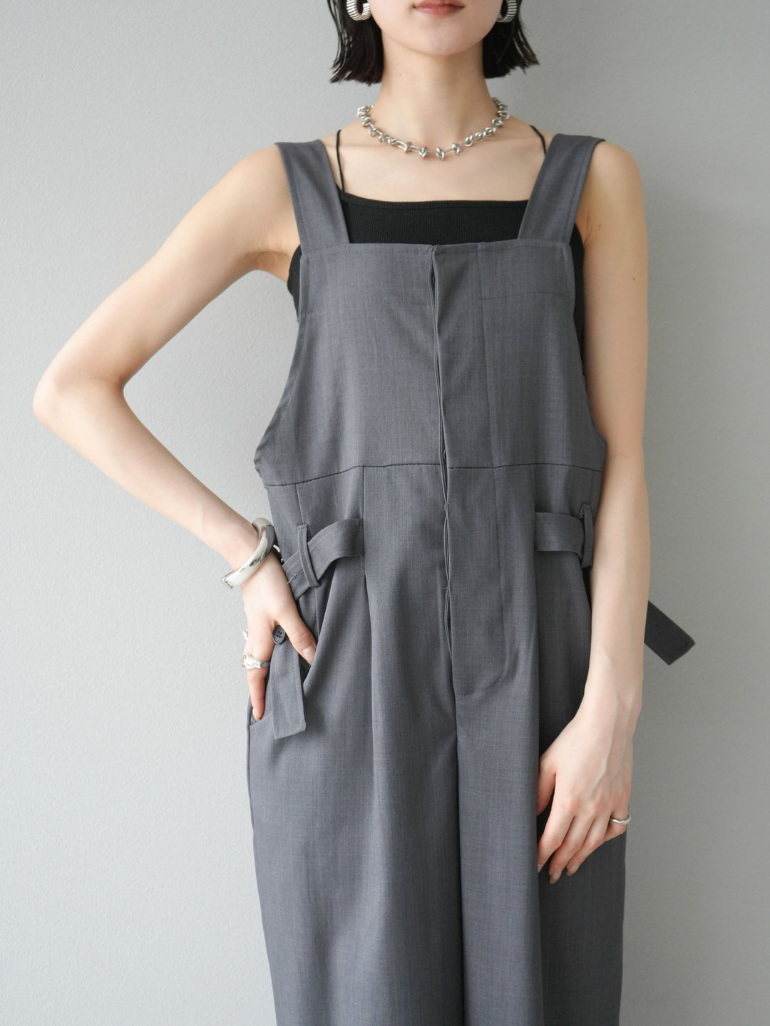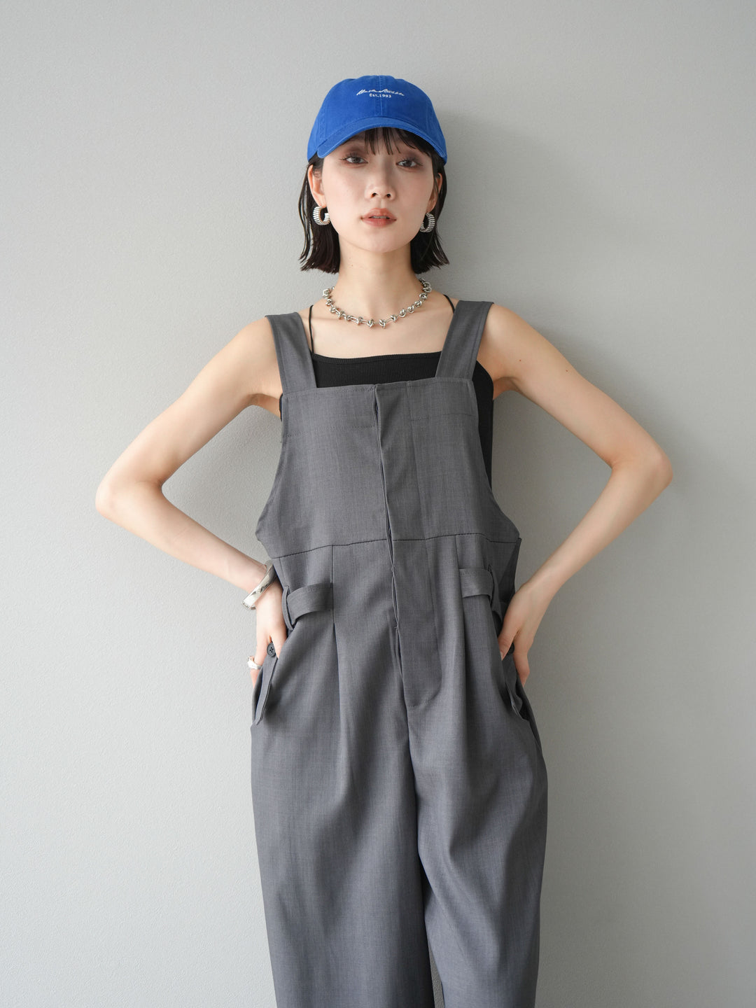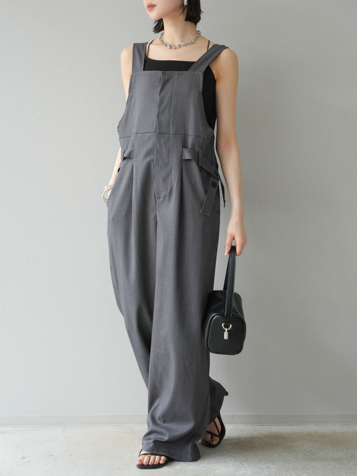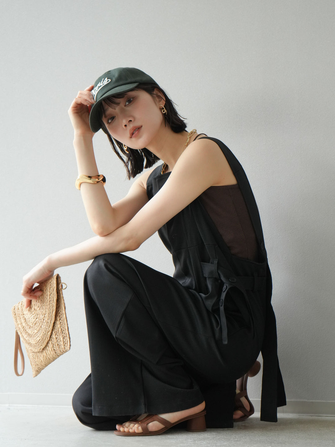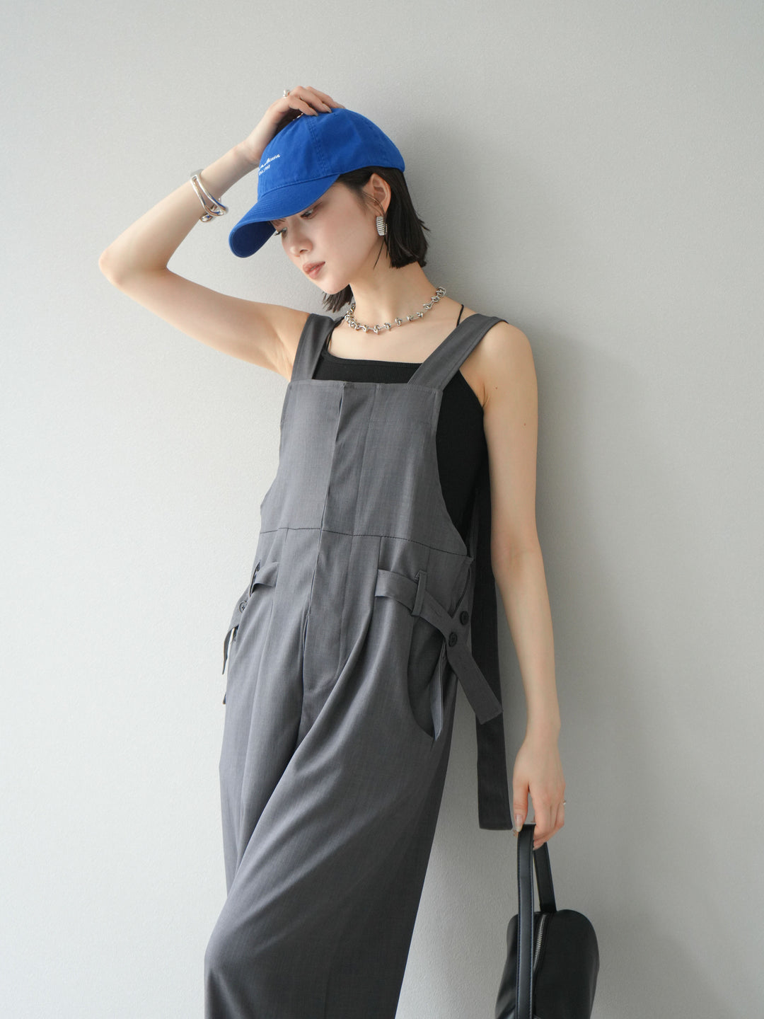 ベルト付きのデザインが特徴的なサロペット。シンプルながらもディテールにこだわり、ウエストのベルトがアクセントとなり、スタイルを引き立てます。ストレートなシルエットと軽やかな素材感で、カジュアルながらも洗練された印象を与える一枚です。ブラック、グレー、ストライプのバリエーションで、様々なスタイルに合わせやすいアイテムです。 ※ボトムス、キャミソール(インナー)以外の商品は一律でインナーは付属していません