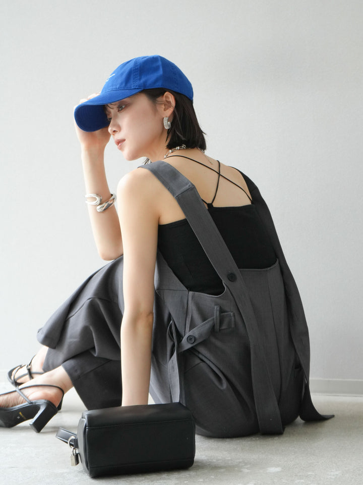 [SET]ベルトデザインサロペット+カップ付きバッククロスキャミソール(2set)