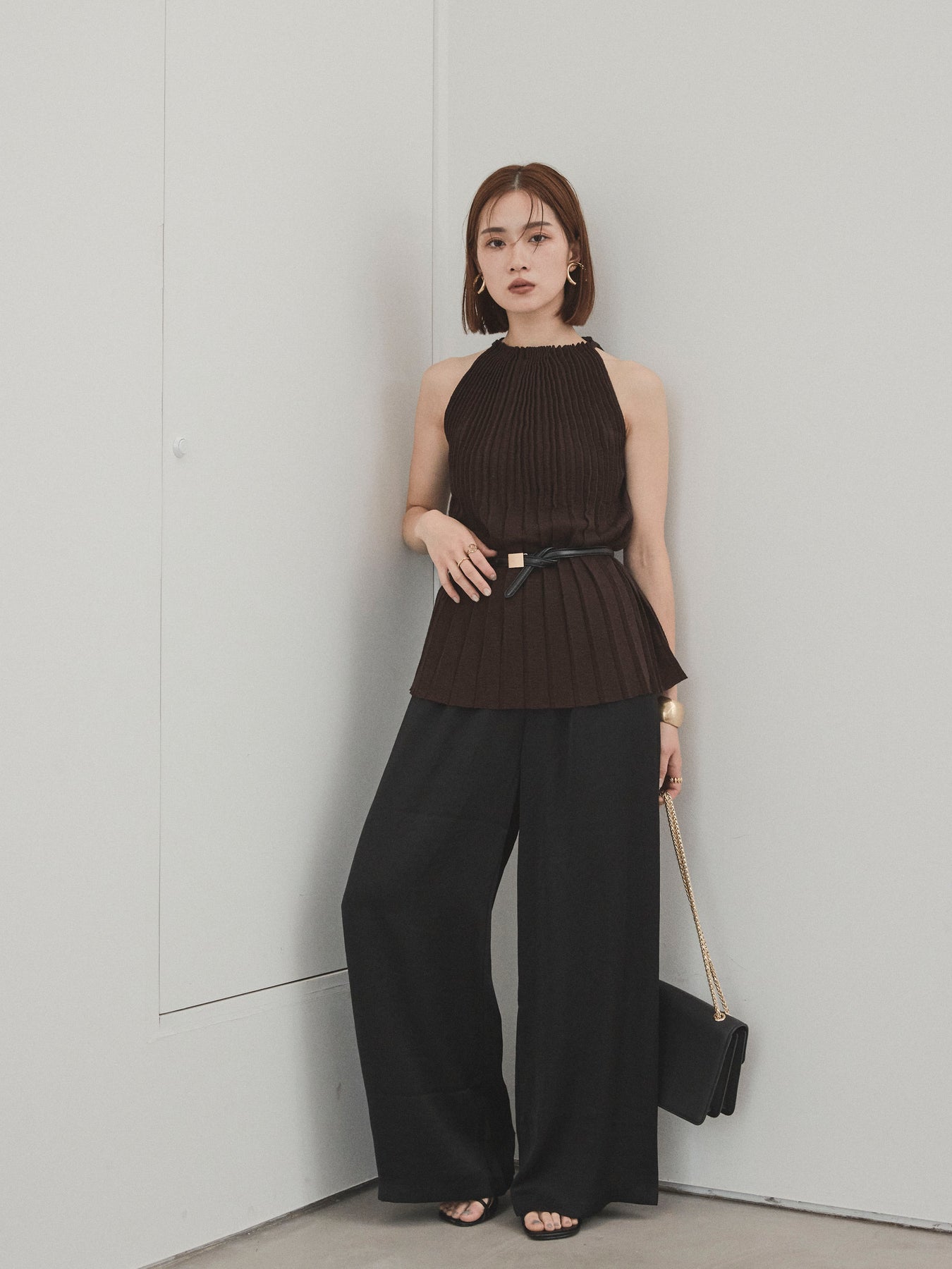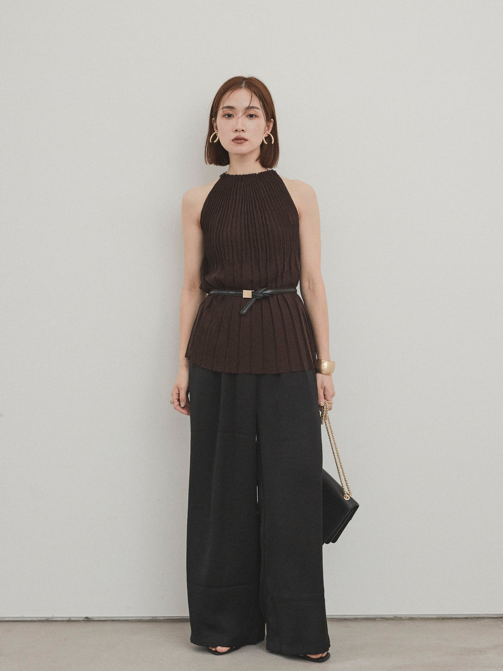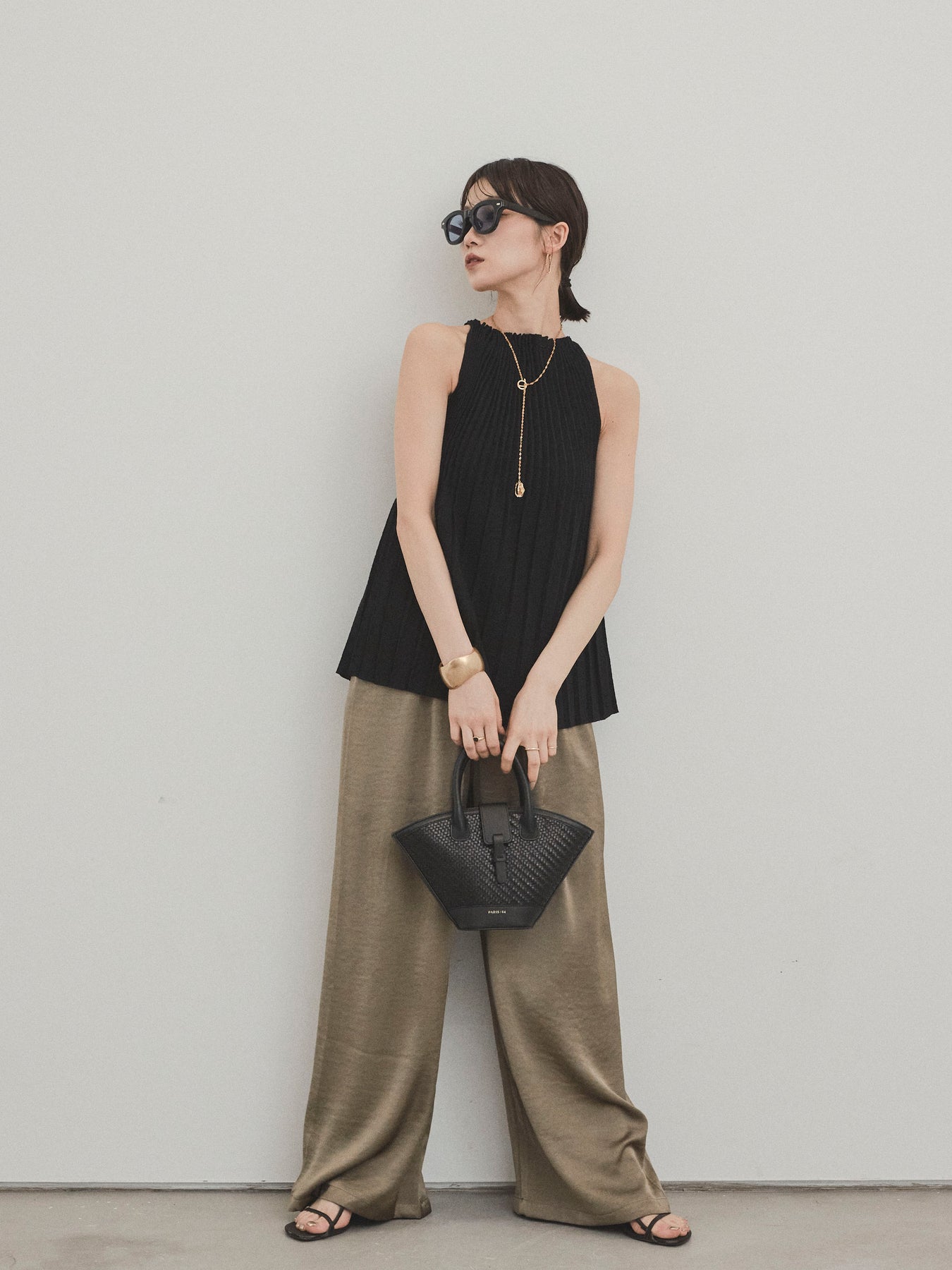 [SET]プリーツニットキャミソール+サテンイージーパンツ(2set)