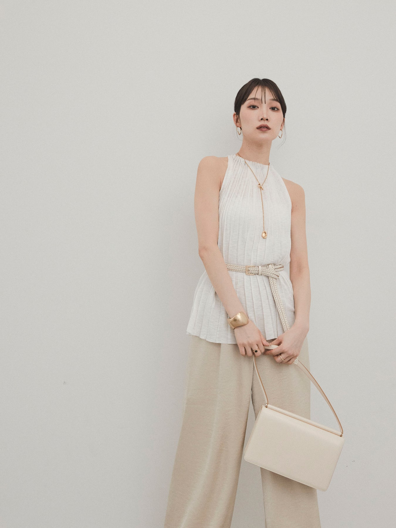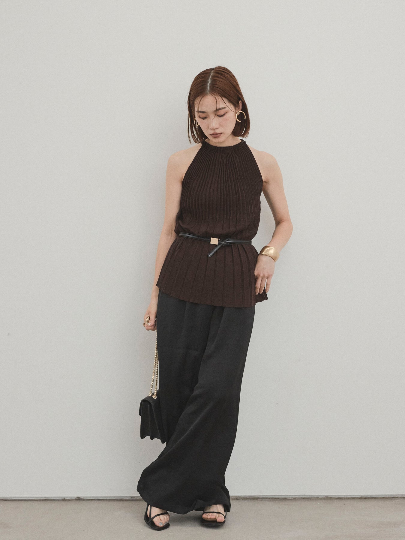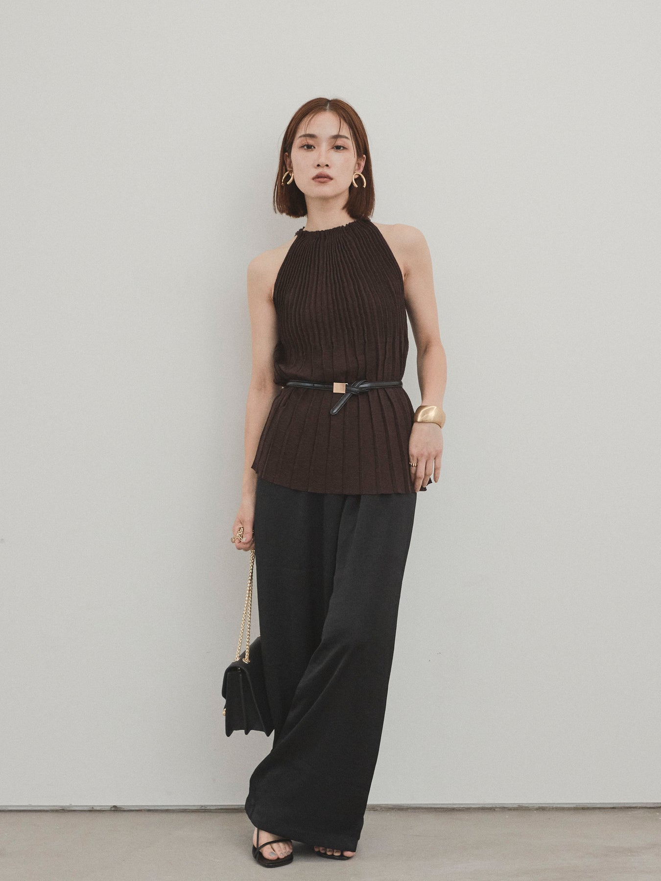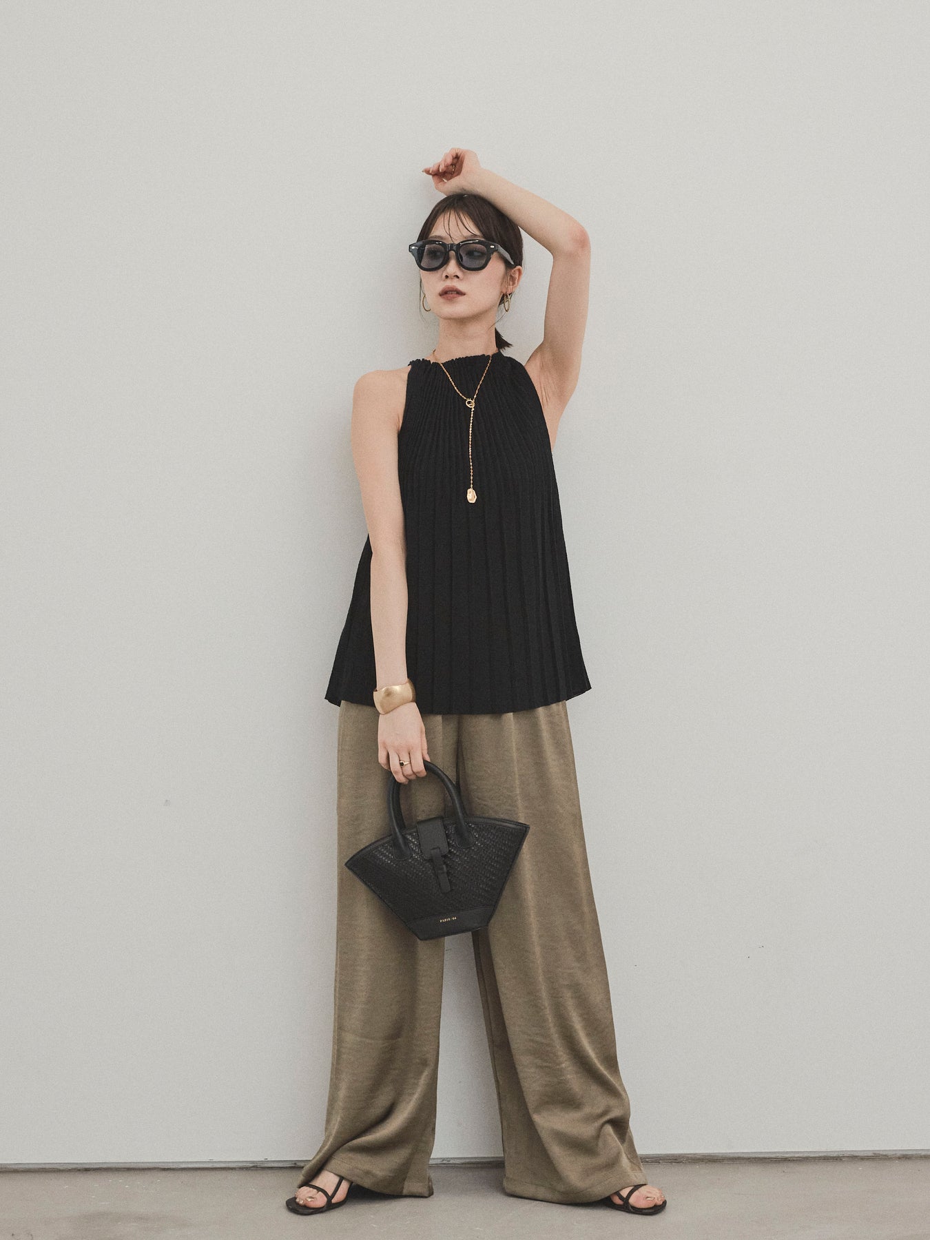[SET]プリーツニットキャミソール+サテンイージーパンツ(2set)