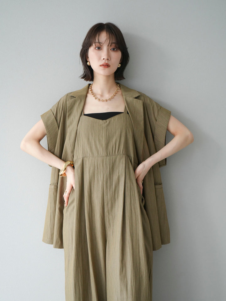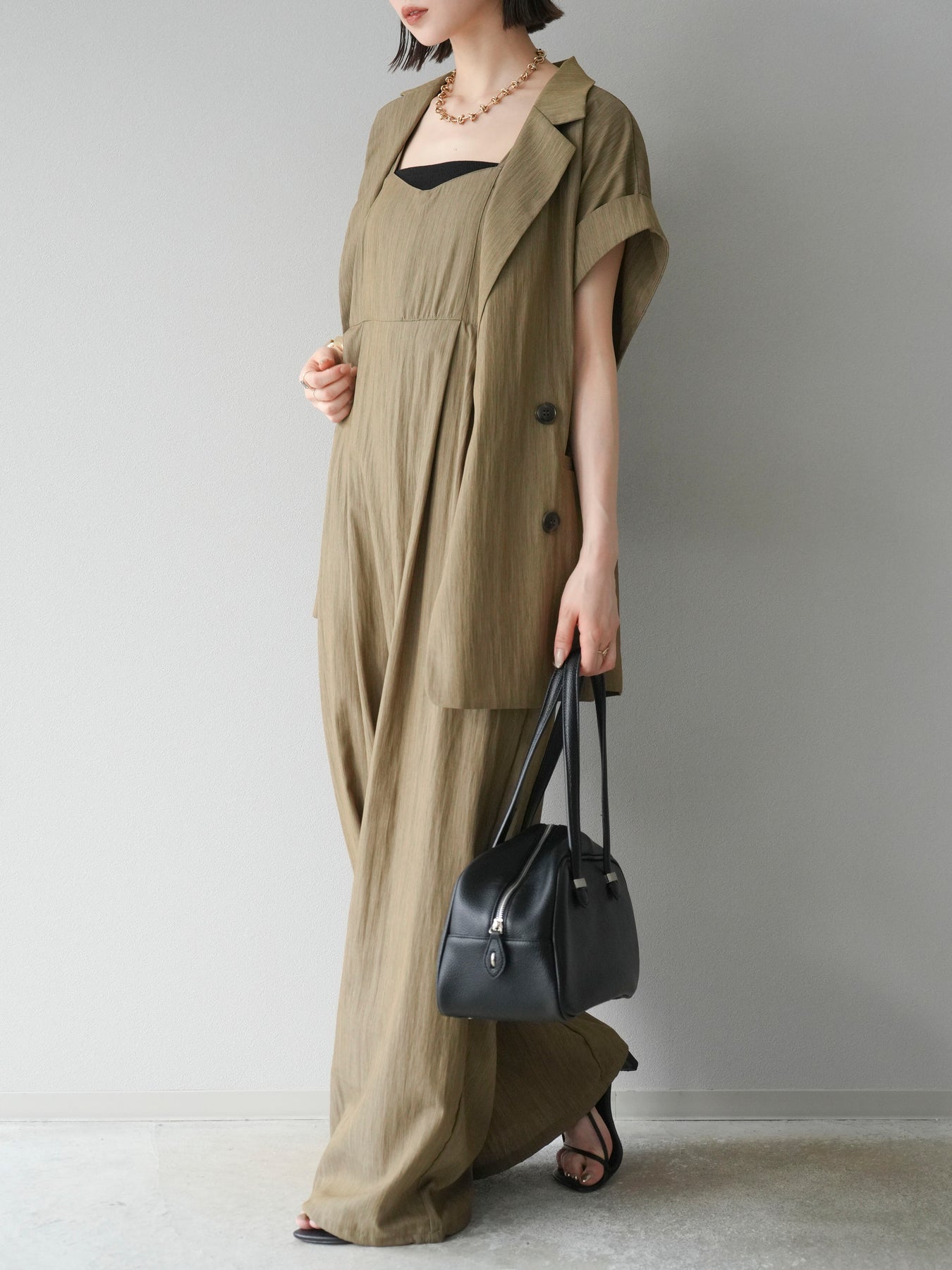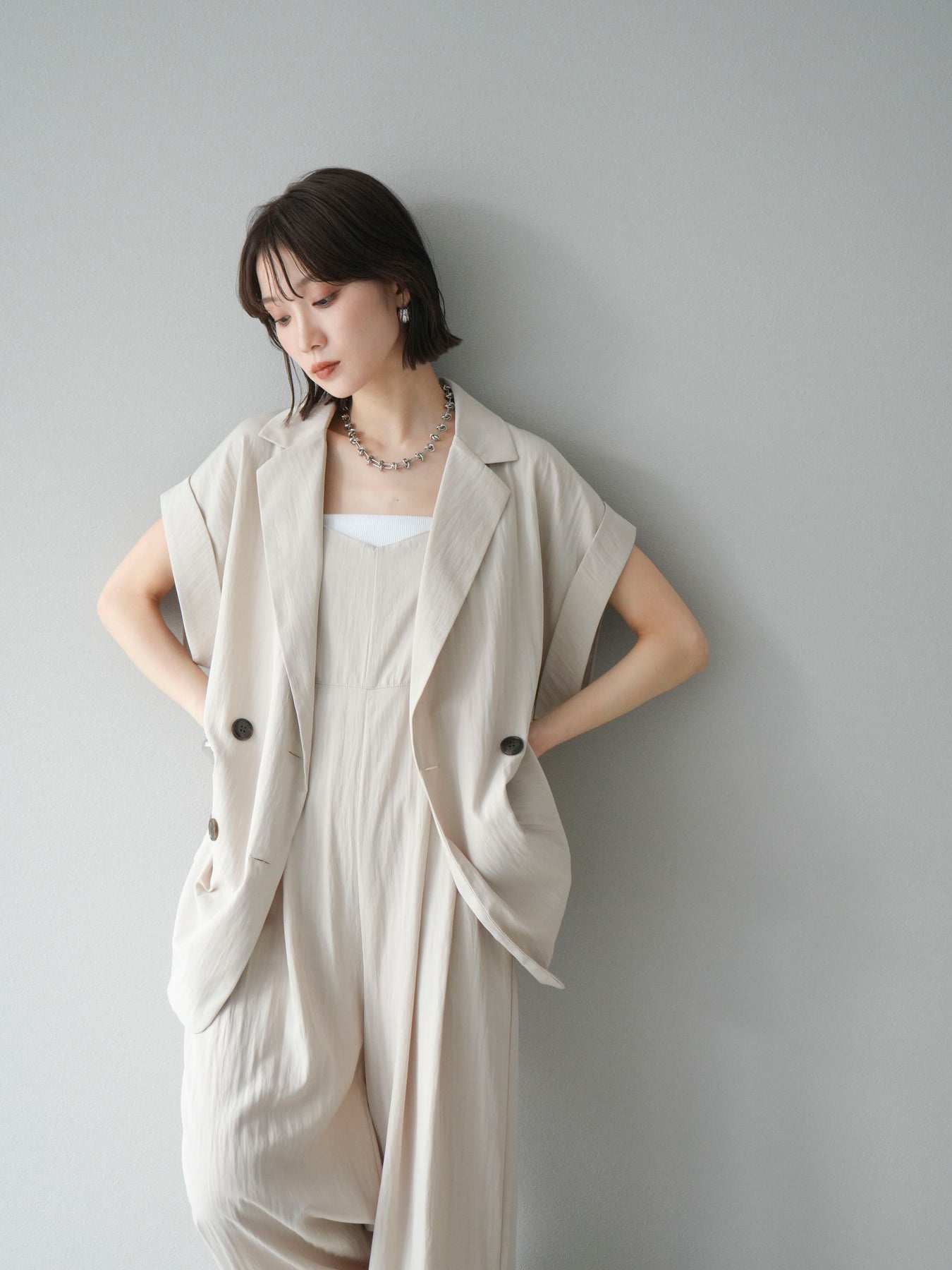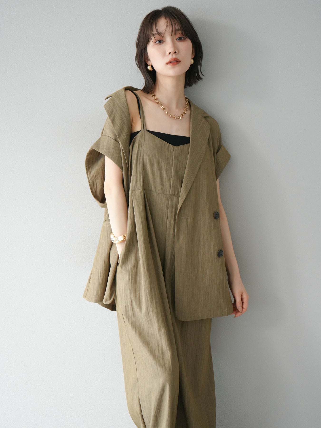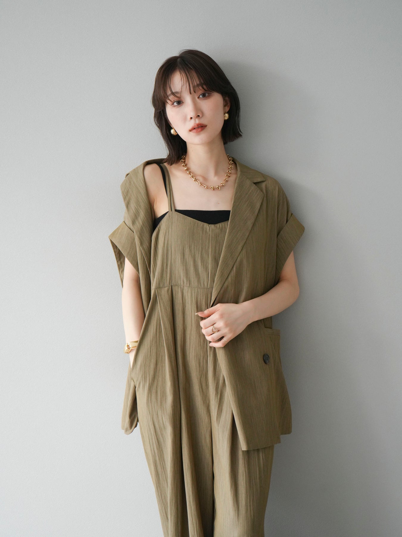 [SET]リネンライクビスチェデザインサロペット+リネンライクノースリーブダブルジレ(2set)