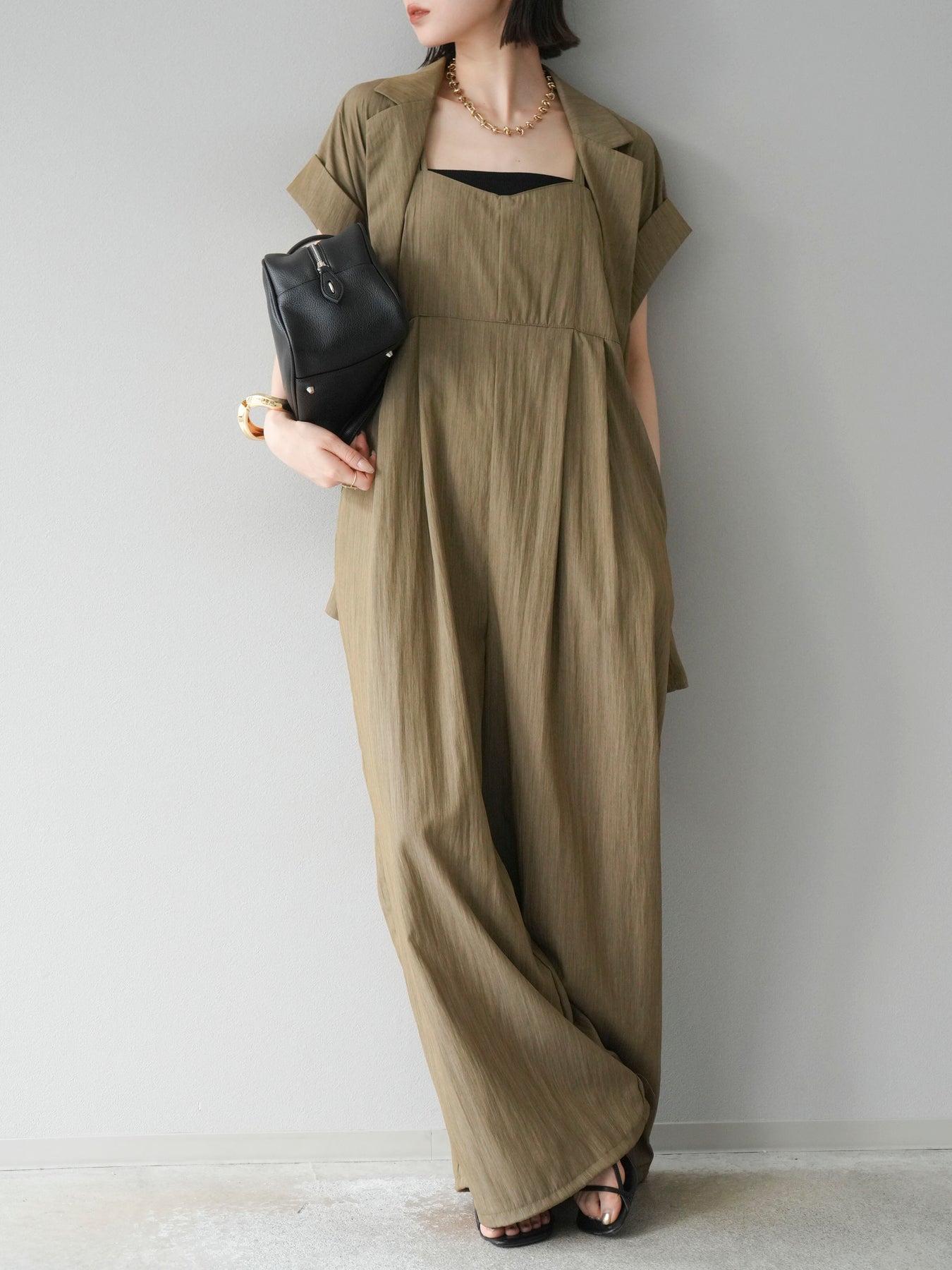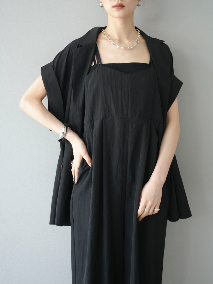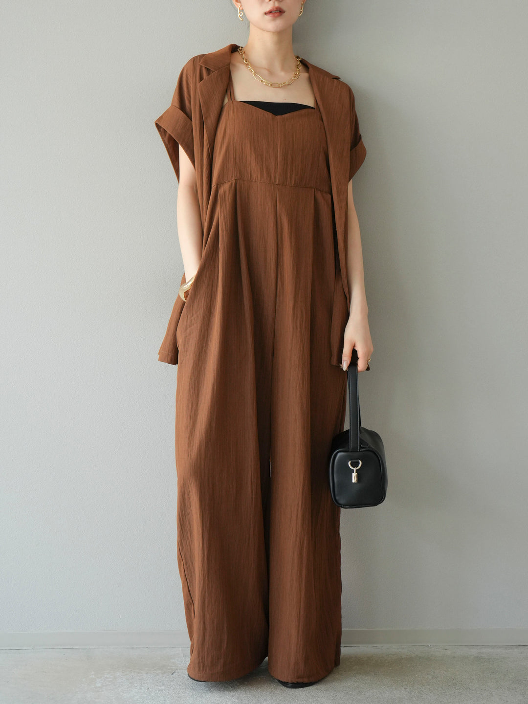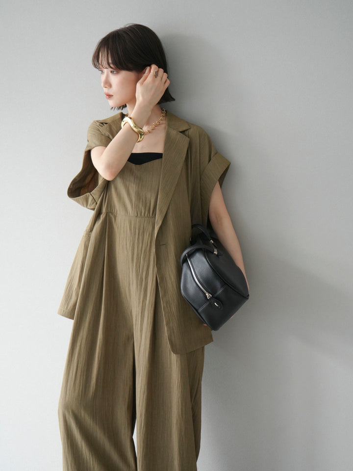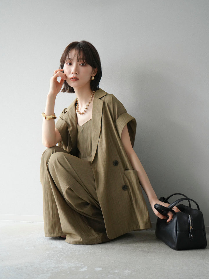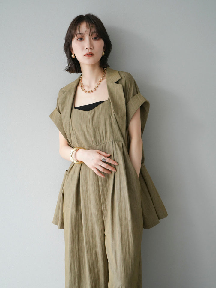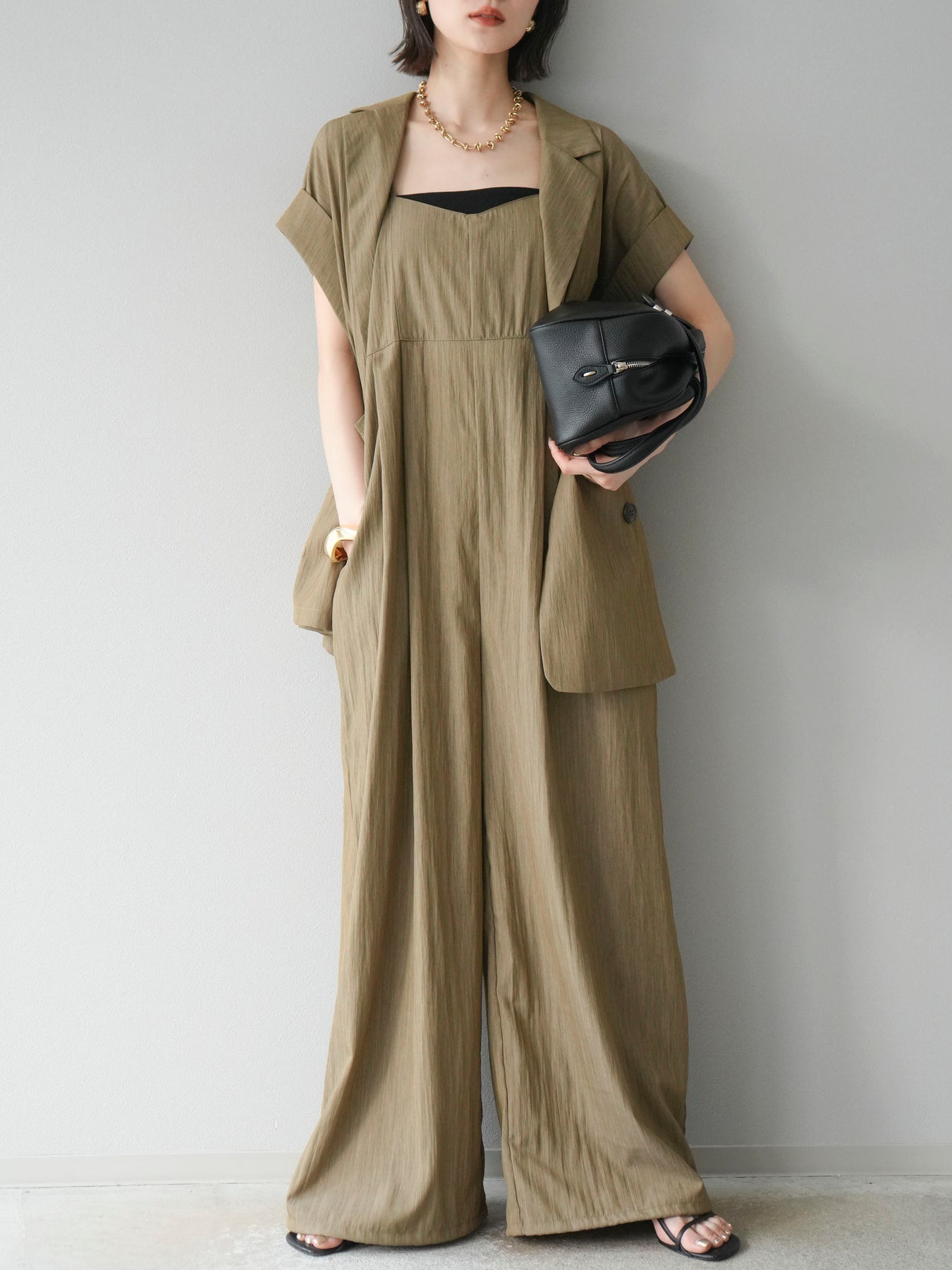 [SET]リネンライクビスチェデザインサロペット+リネンライクノースリーブダブルジレ(2set)