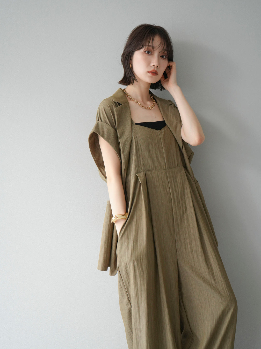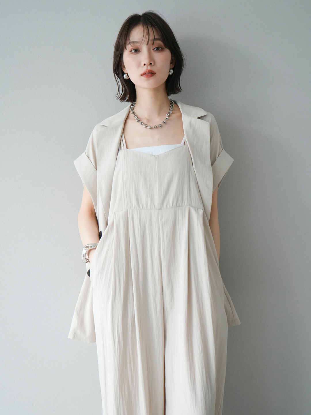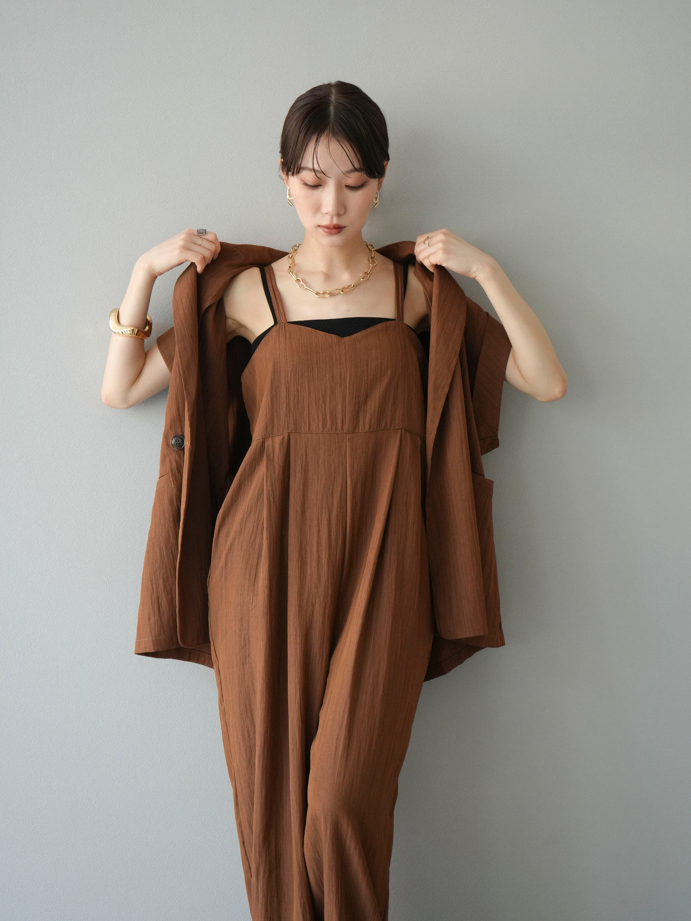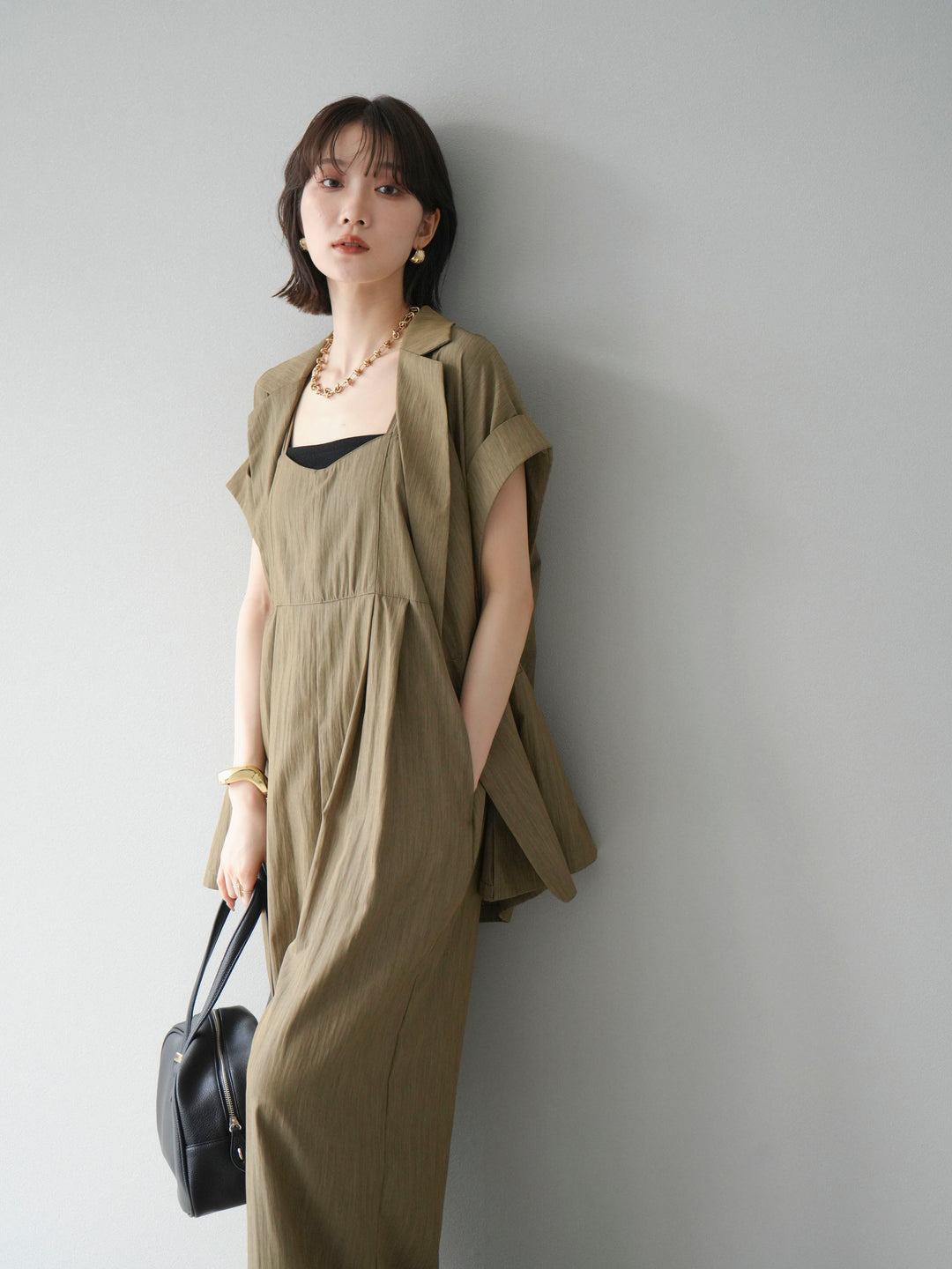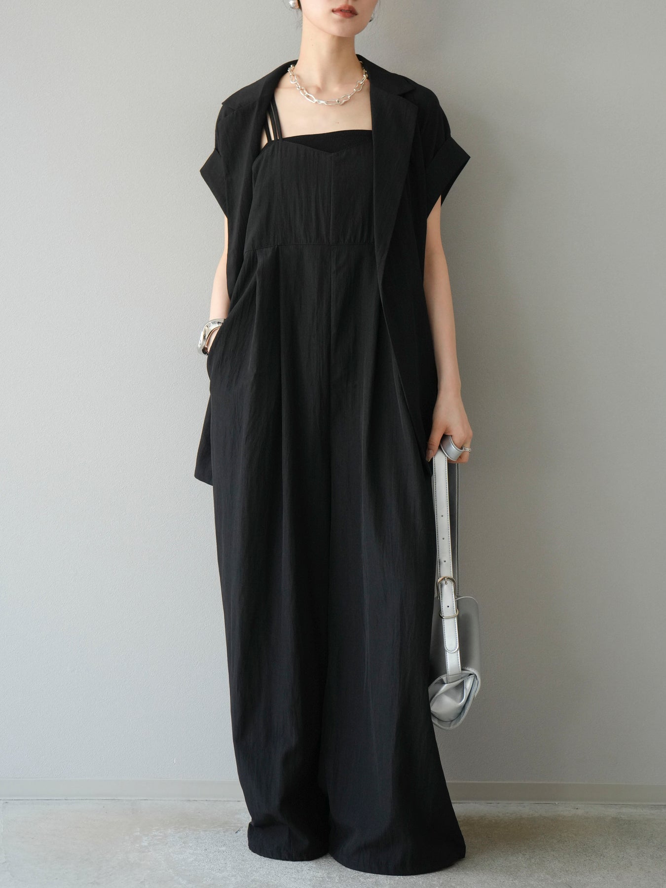 [SET]リネンライクビスチェデザインサロペット+リネンライクノースリーブダブルジレ(2set)