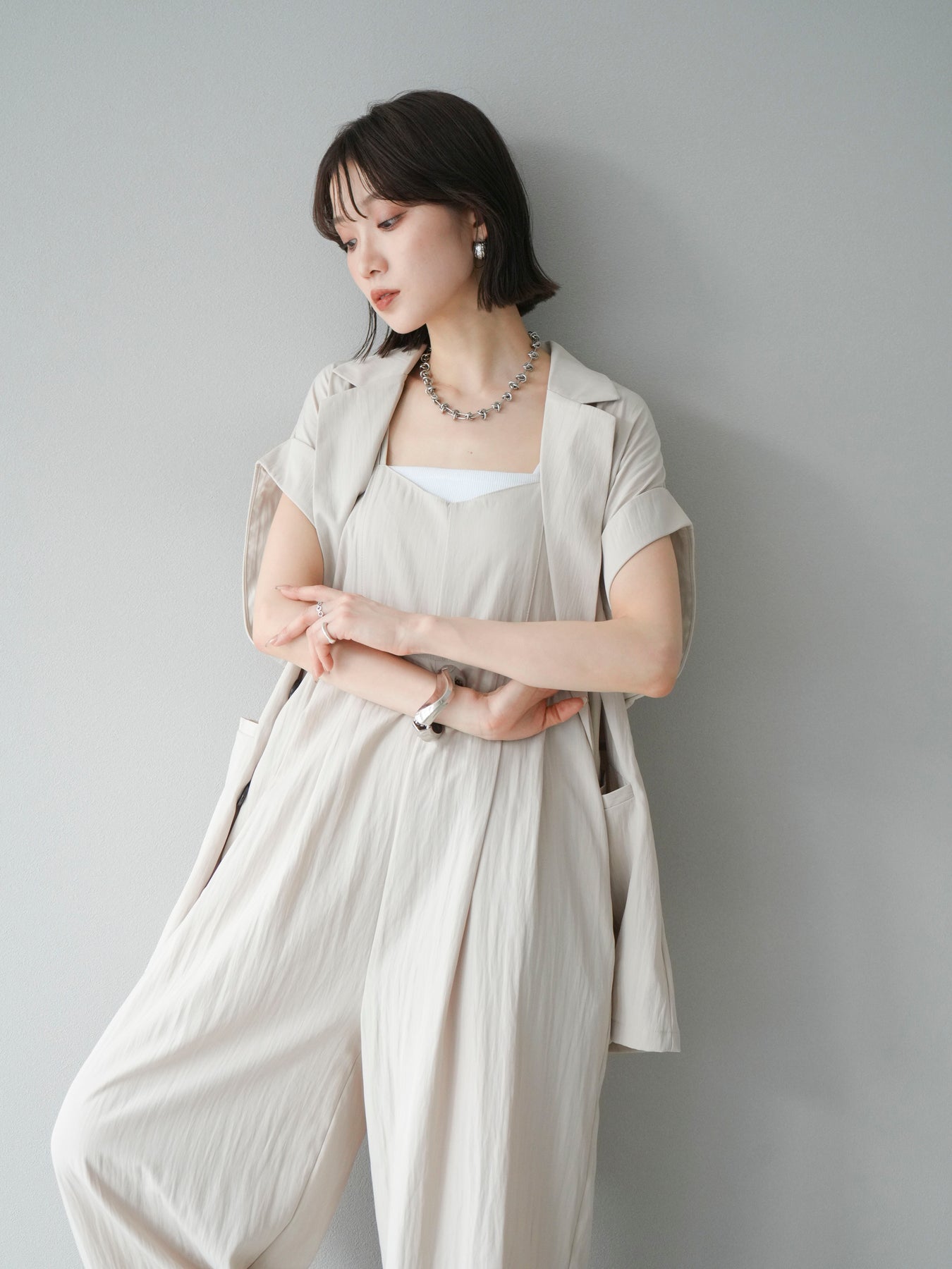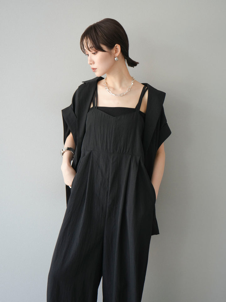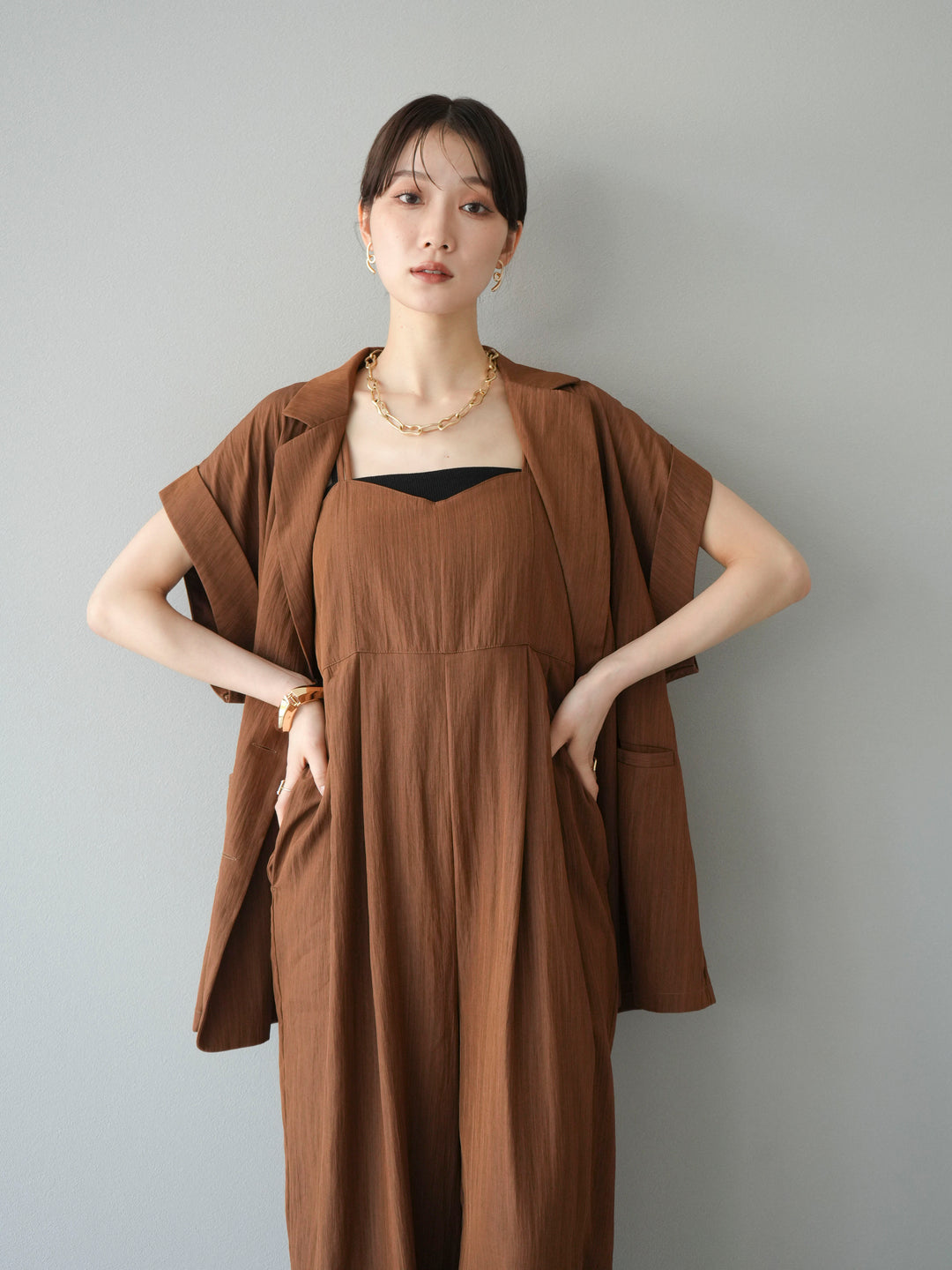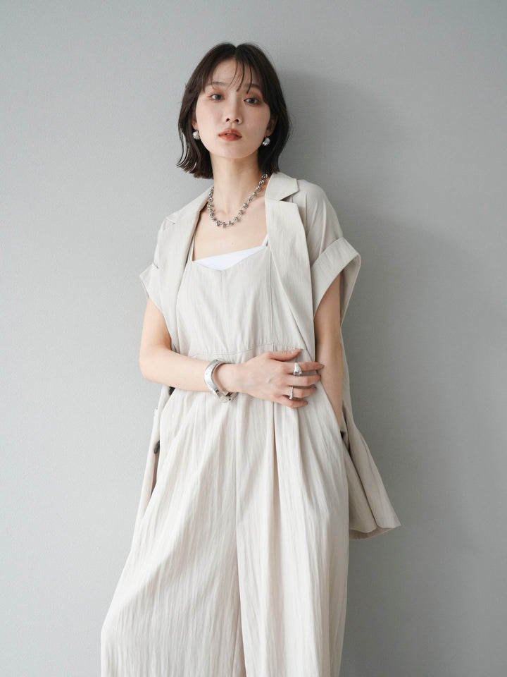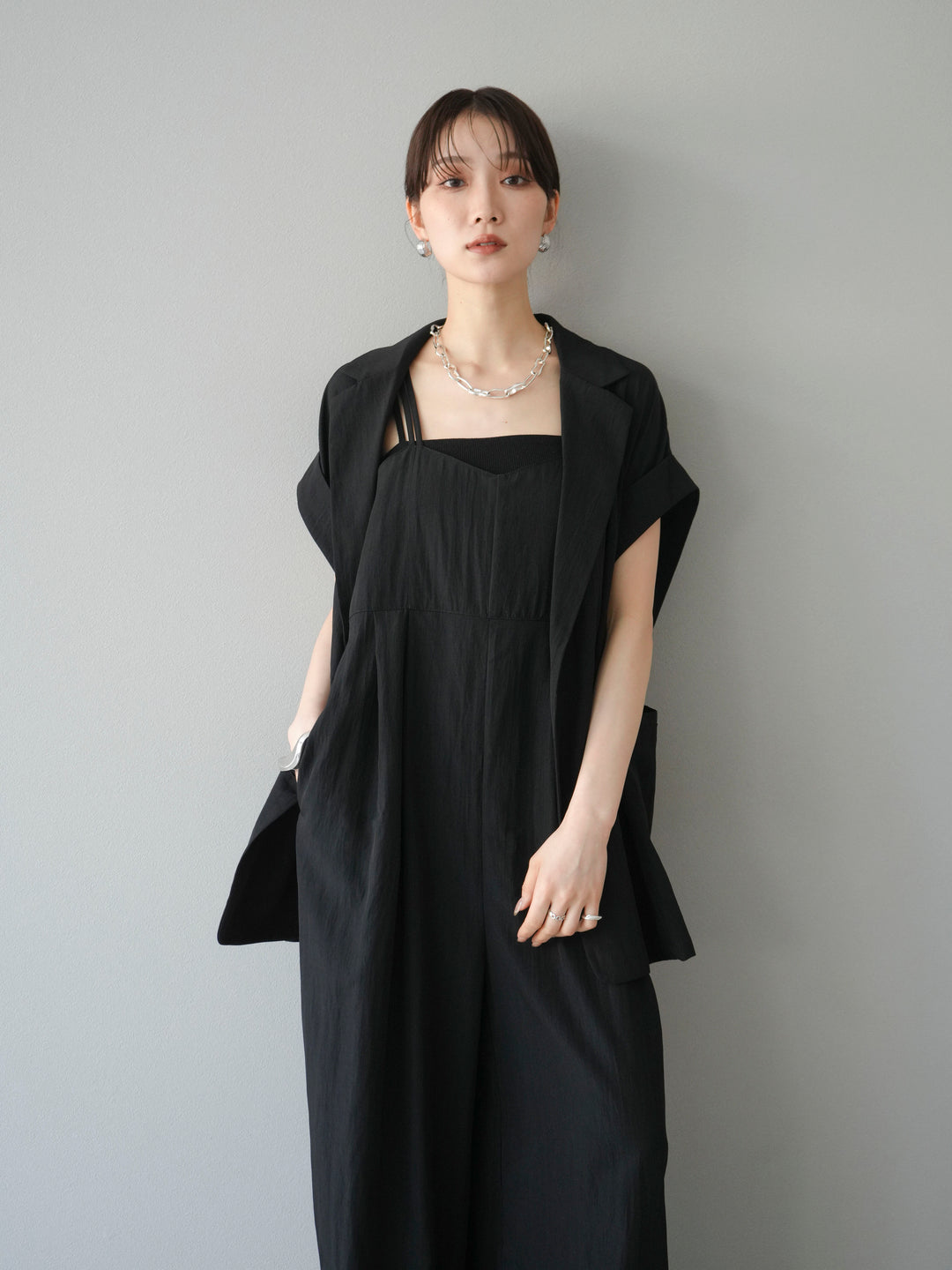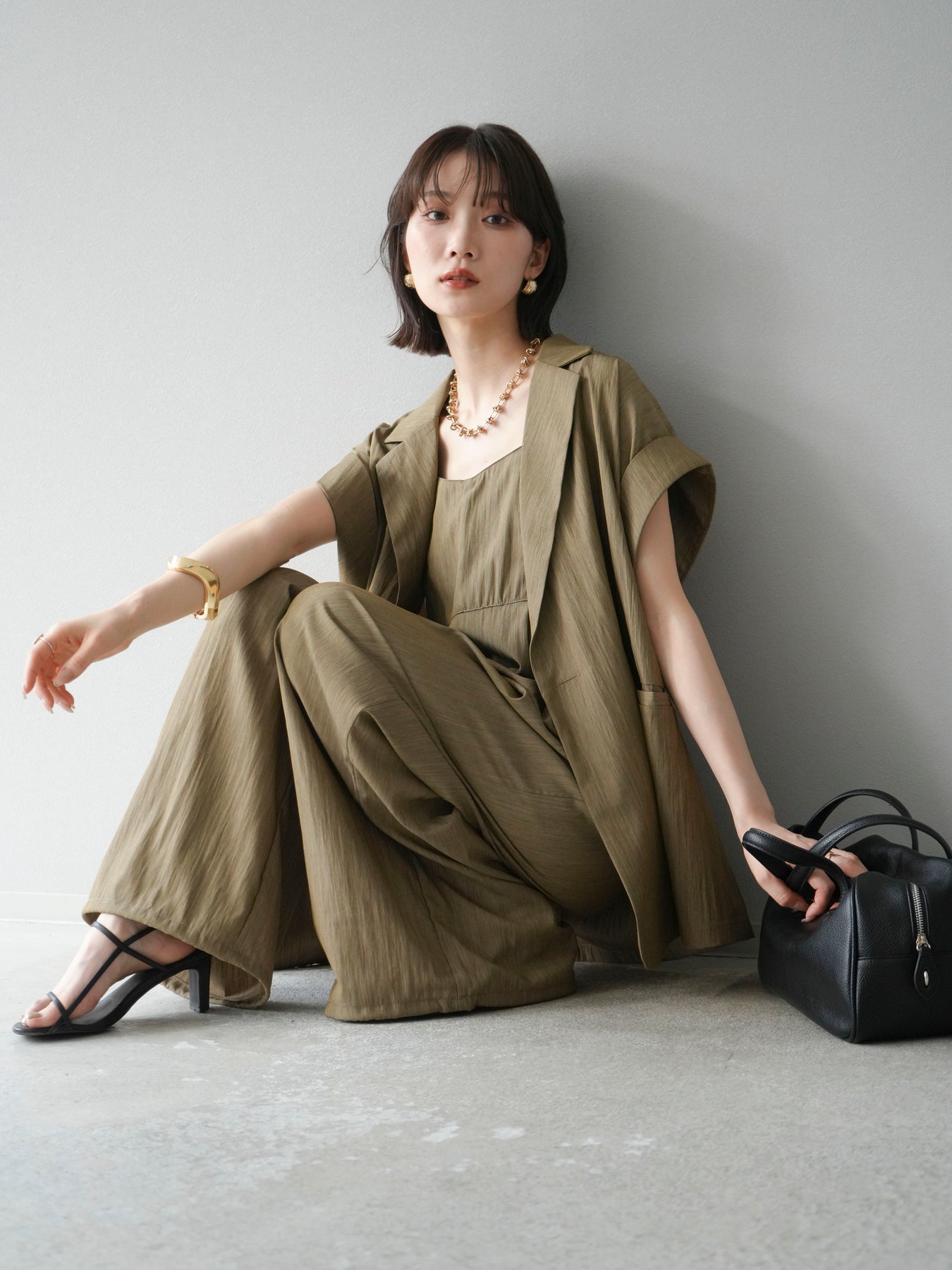 [SET]リネンライクビスチェデザインサロペット+リネンライクノースリーブダブルジレ(2set)
