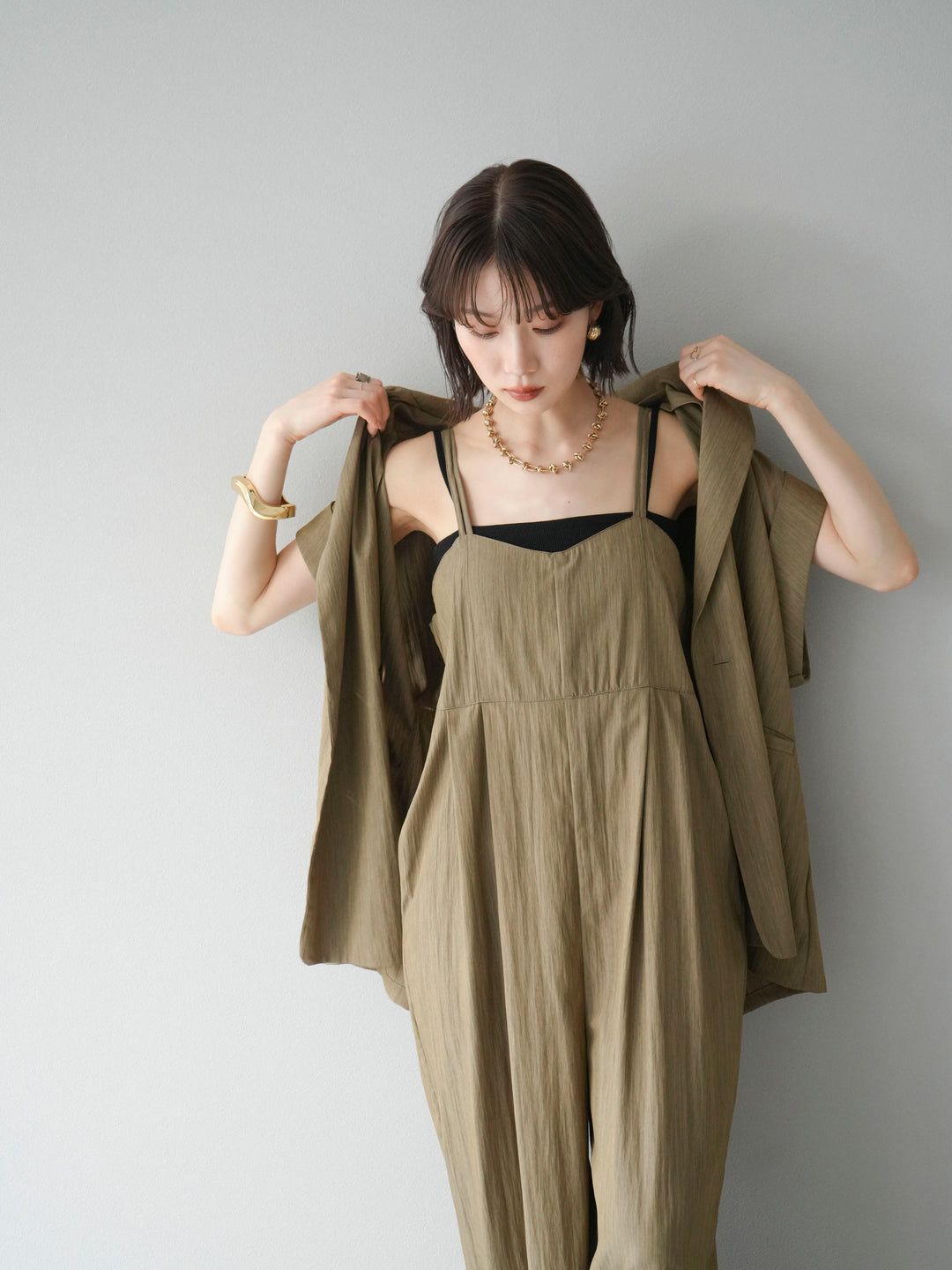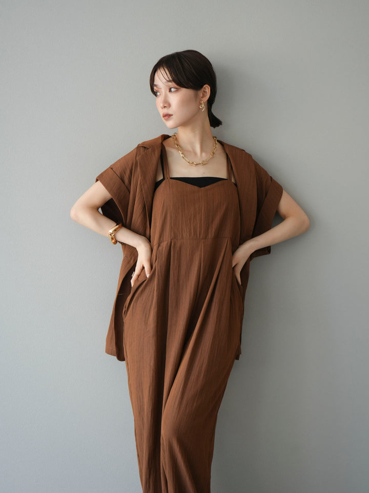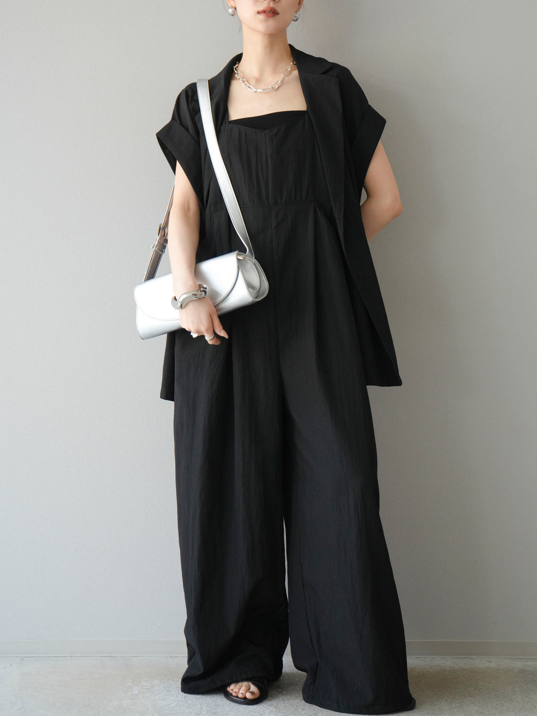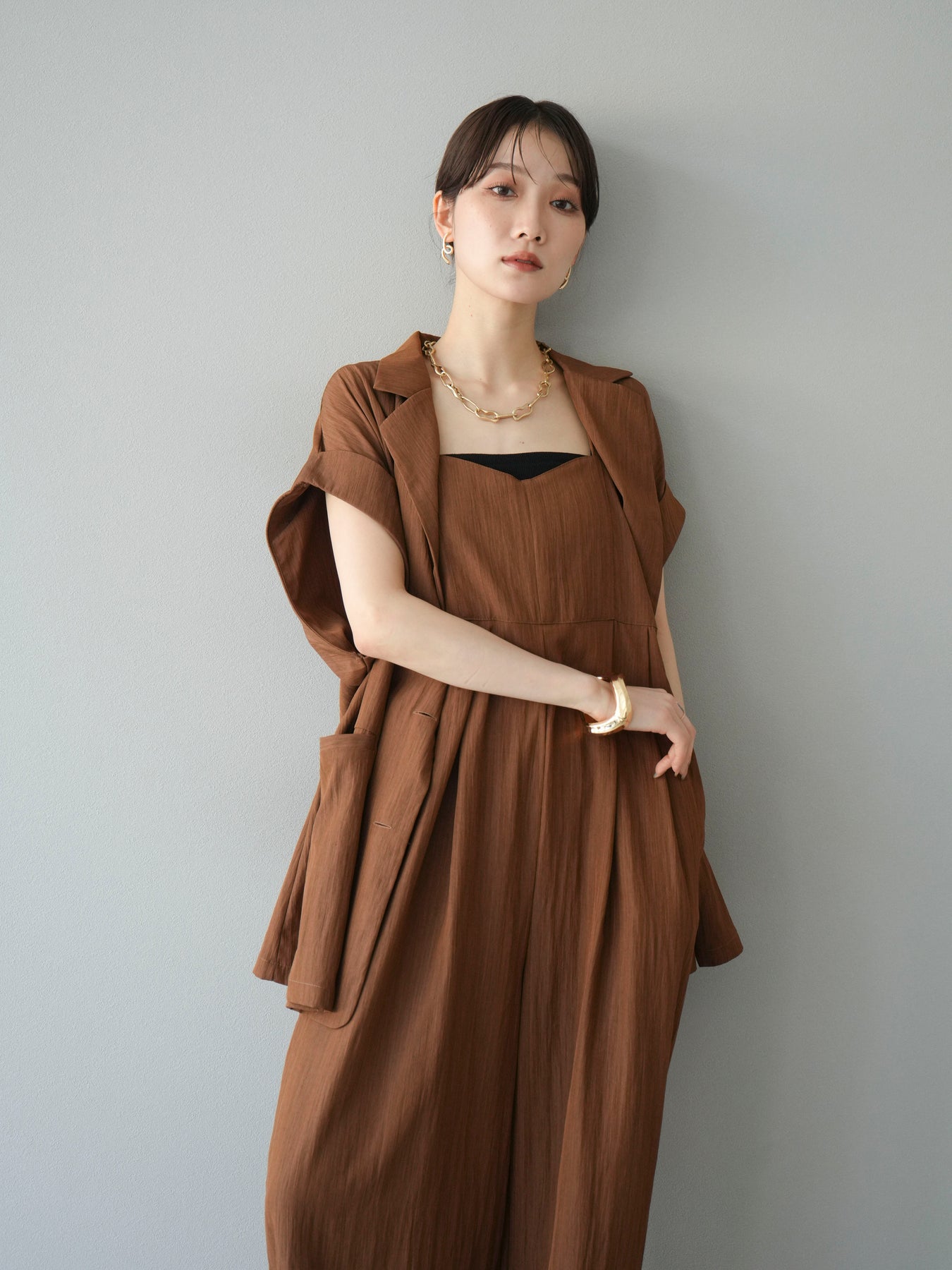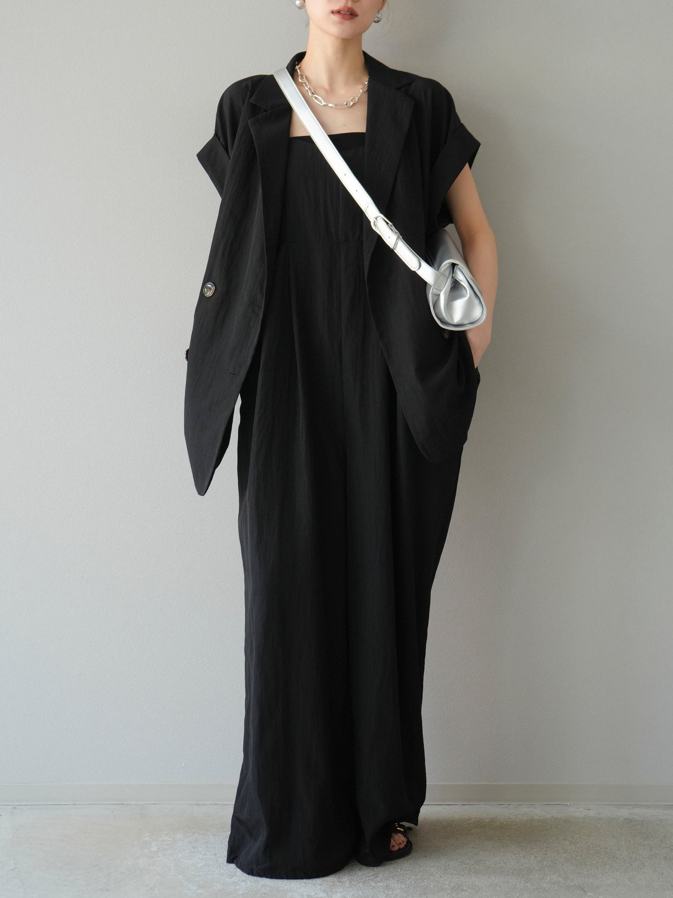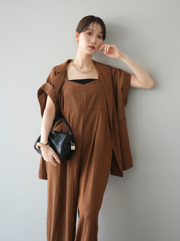 [SET]リネンライクビスチェデザインサロペット+リネンライクノースリーブダブルジレ(2set)