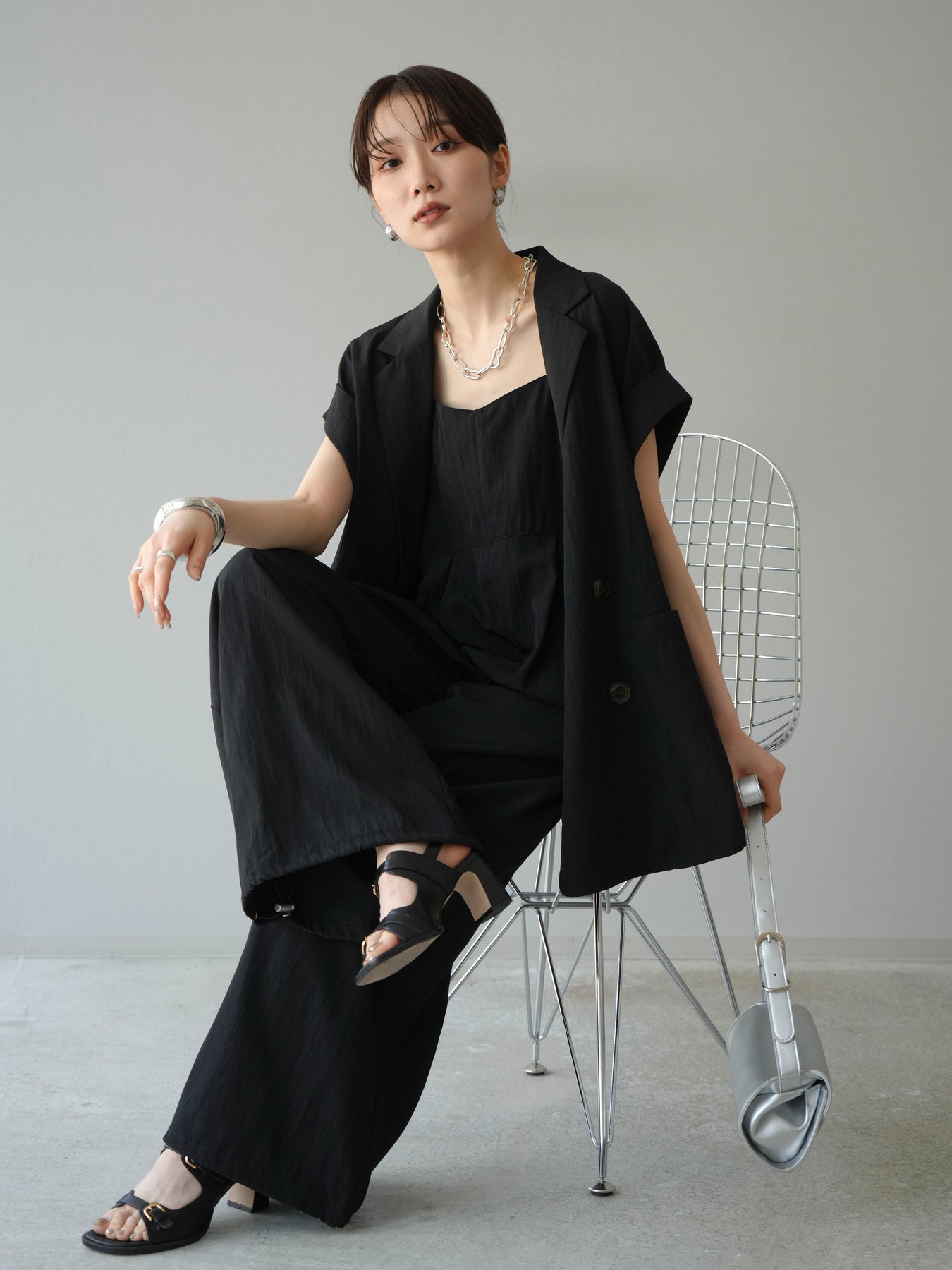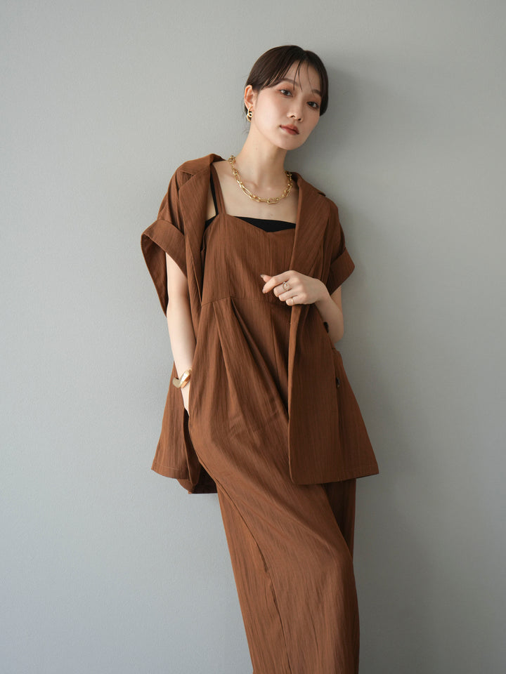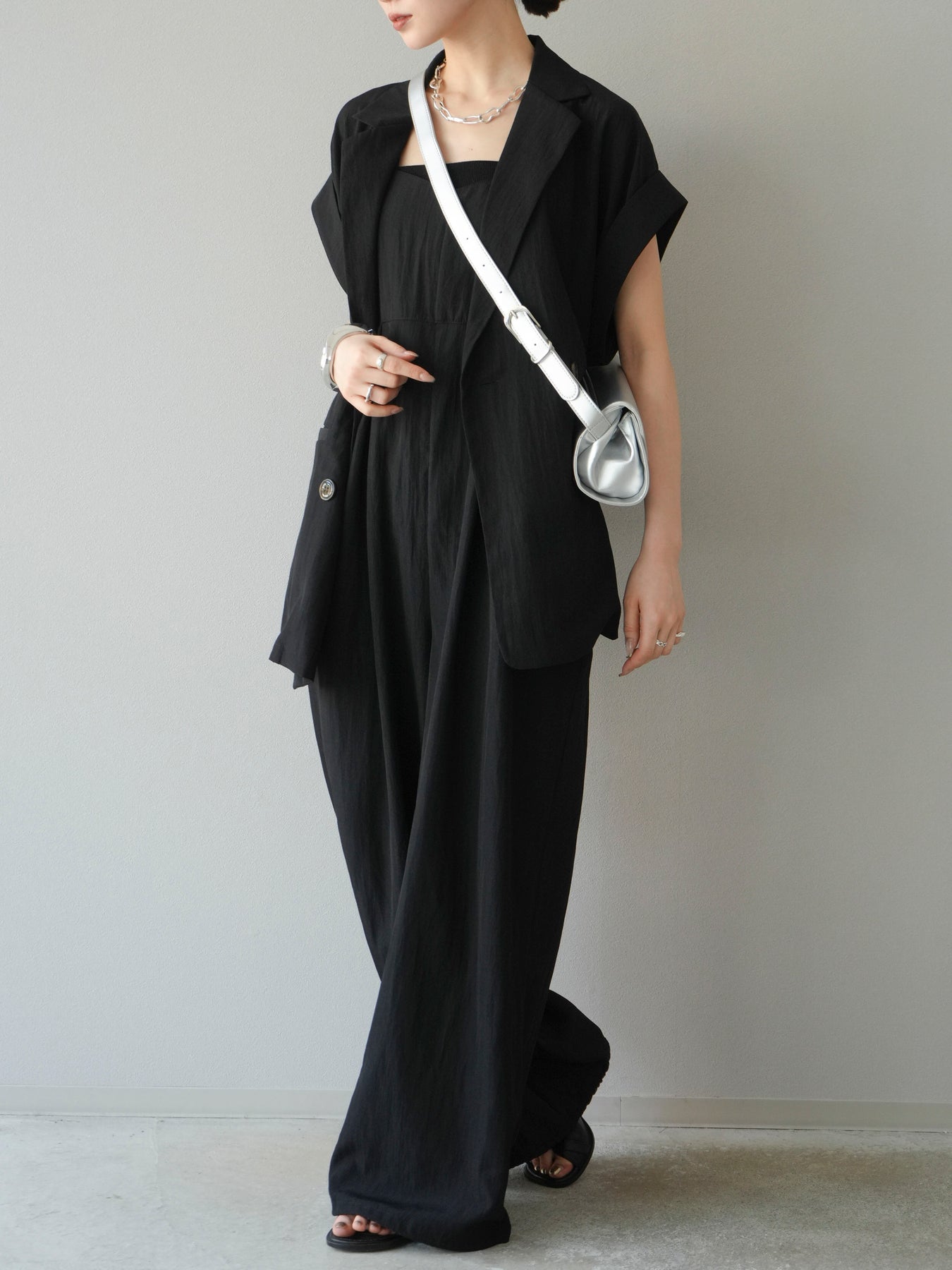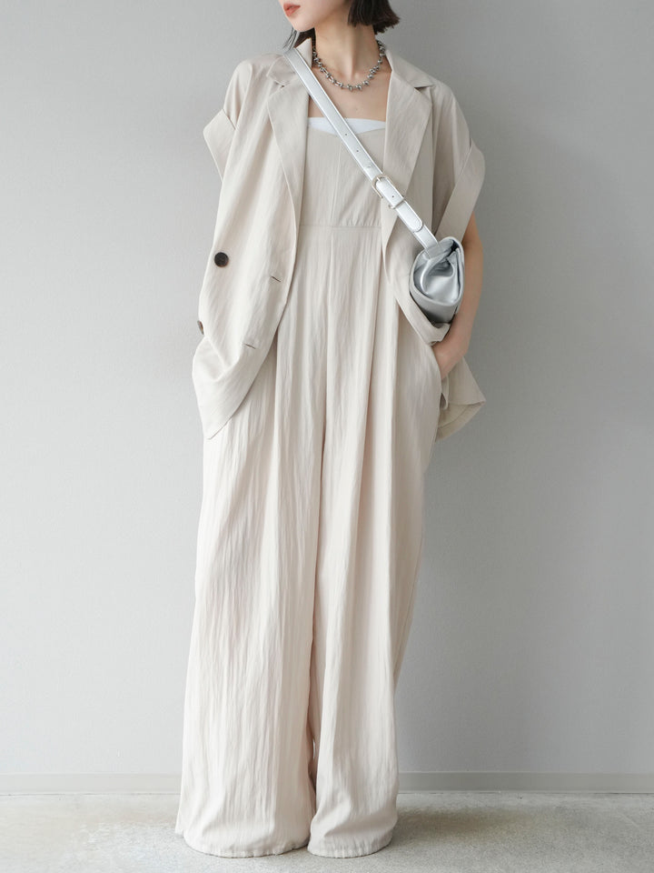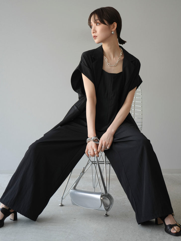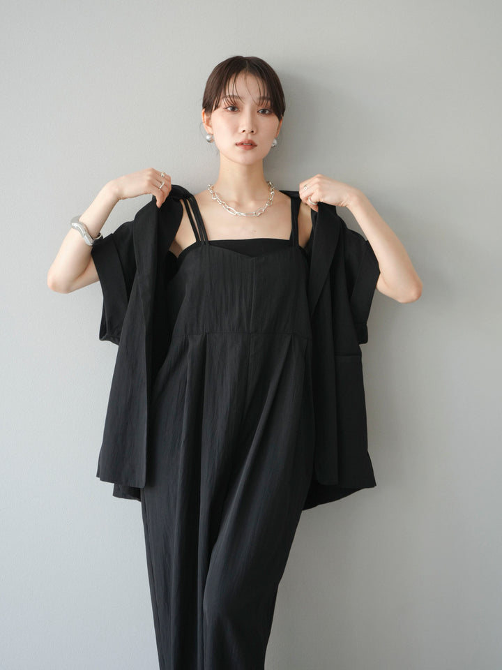 [SET]リネンライクビスチェデザインサロペット+リネンライクノースリーブダブルジレ(2set)
