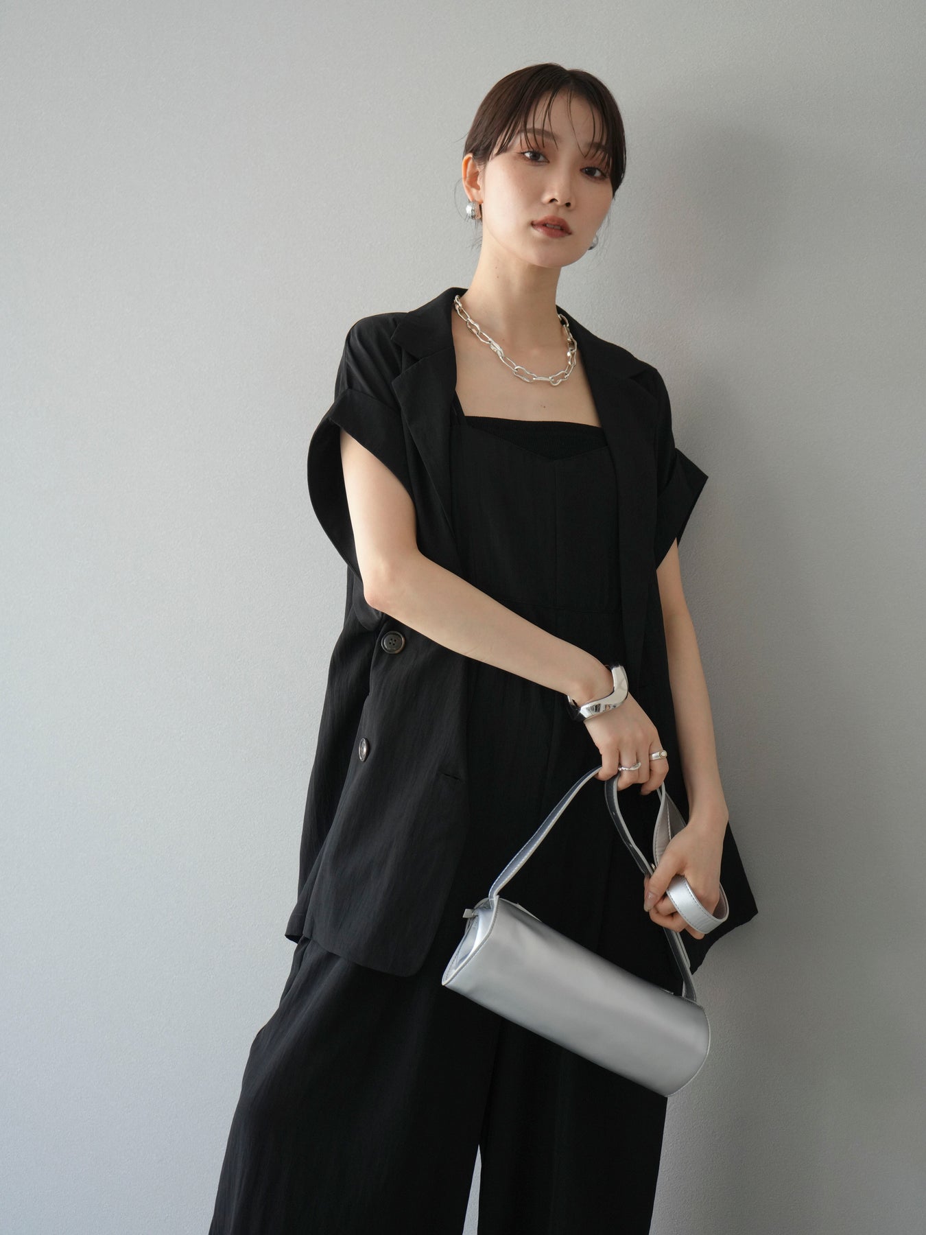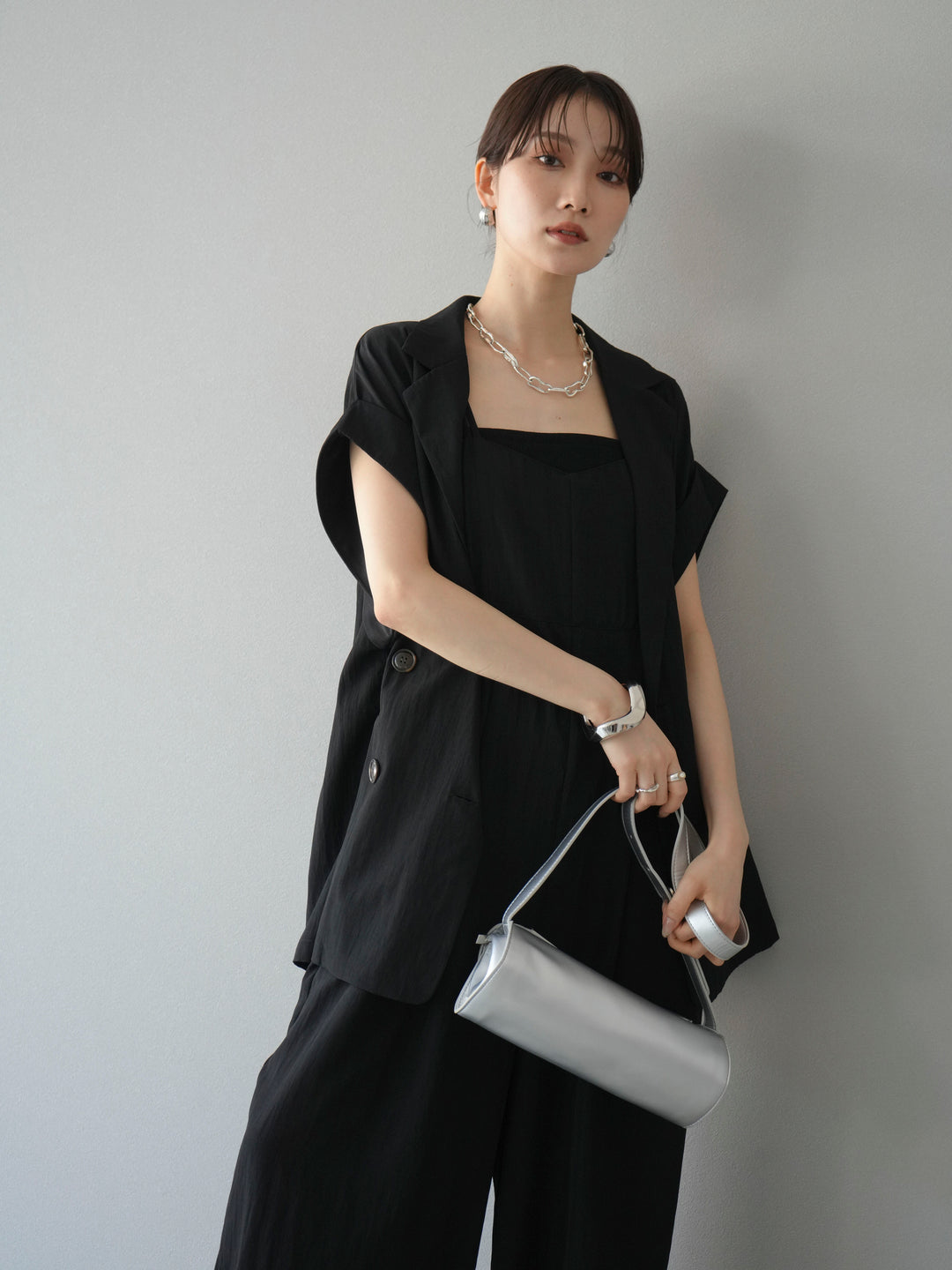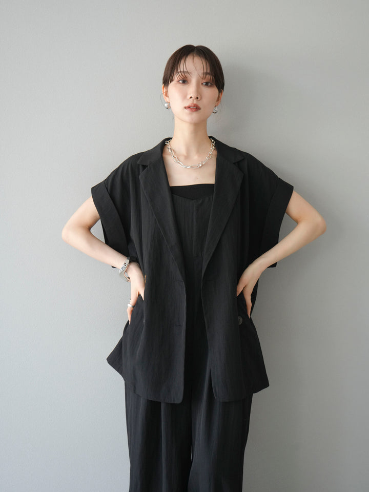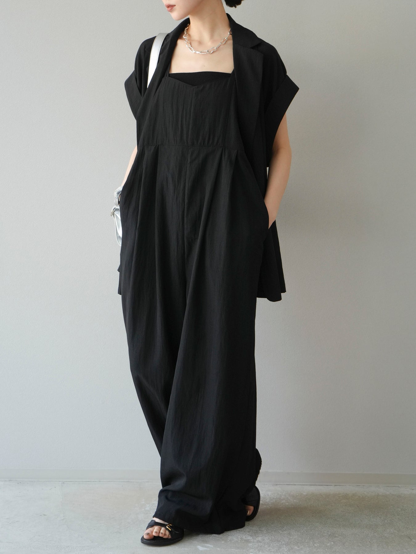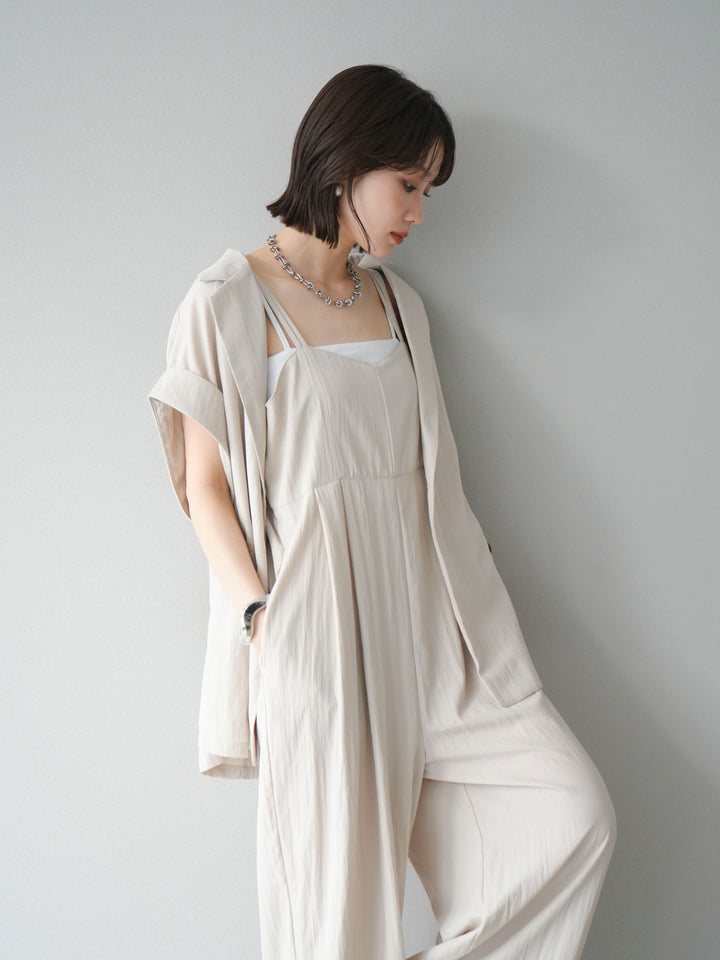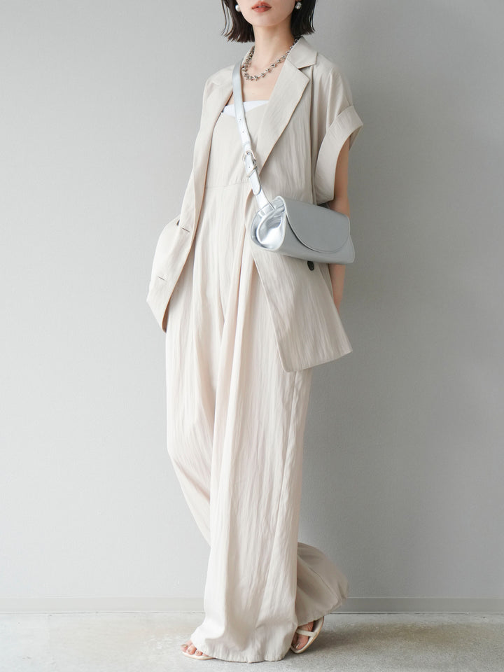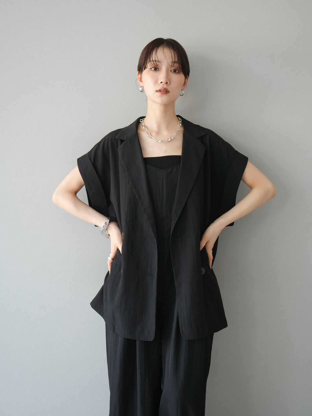 [SET]リネンライクビスチェデザインサロペット+リネンライクノースリーブダブルジレ(2set)