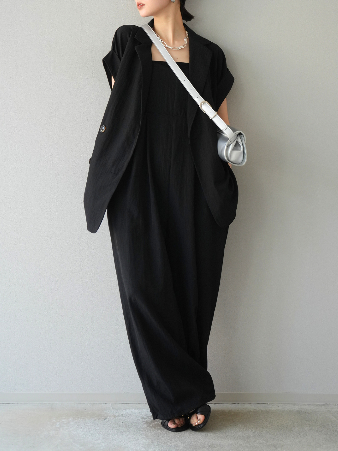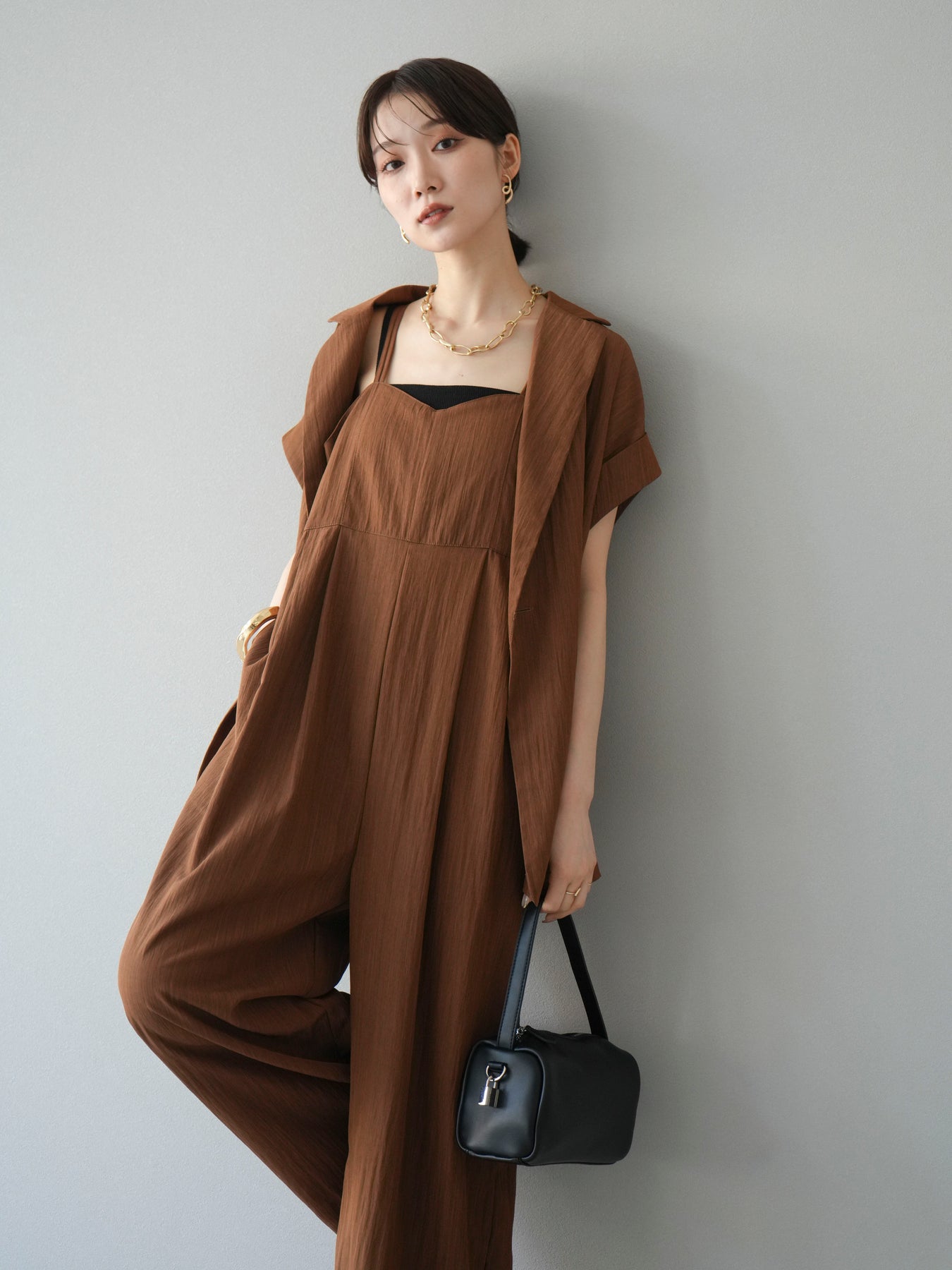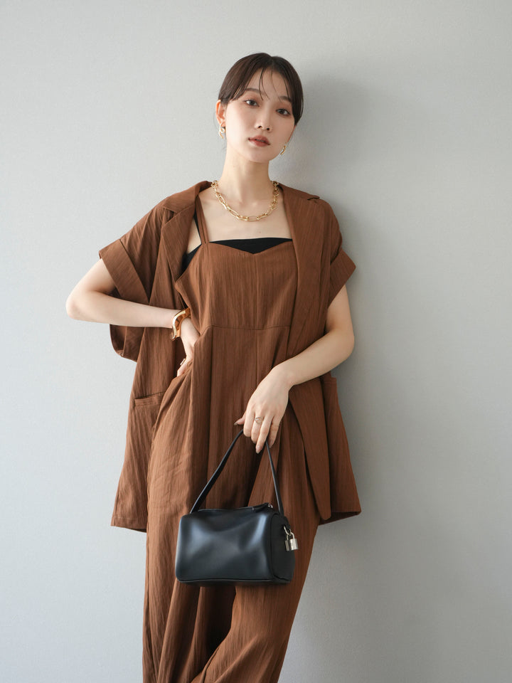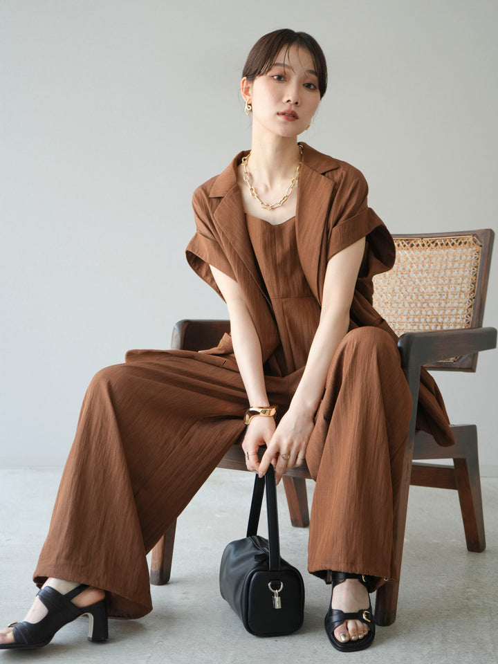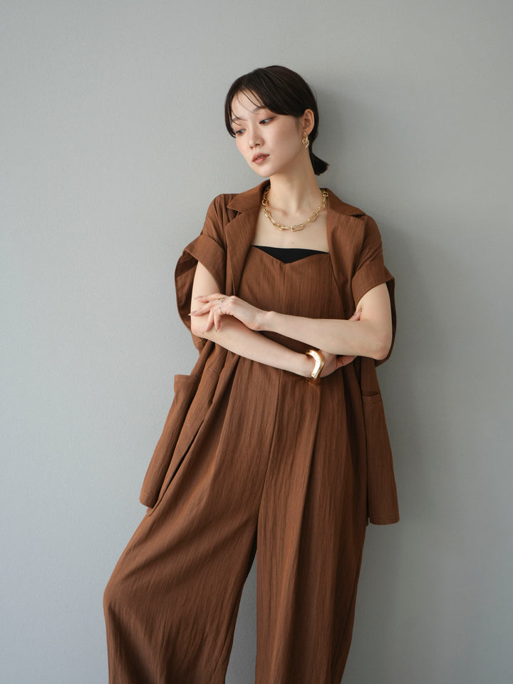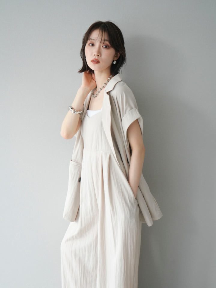 [SET]リネンライクビスチェデザインサロペット+リネンライクノースリーブダブルジレ(2set)