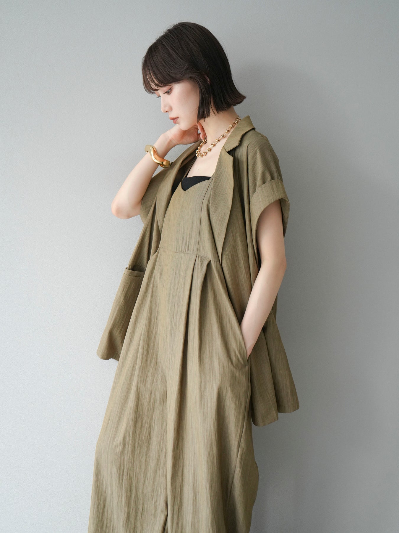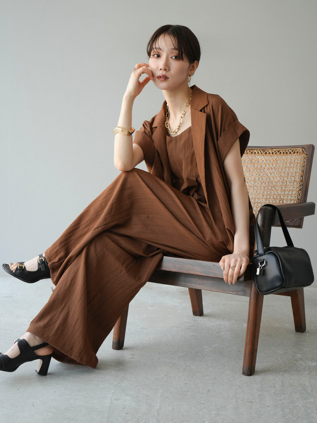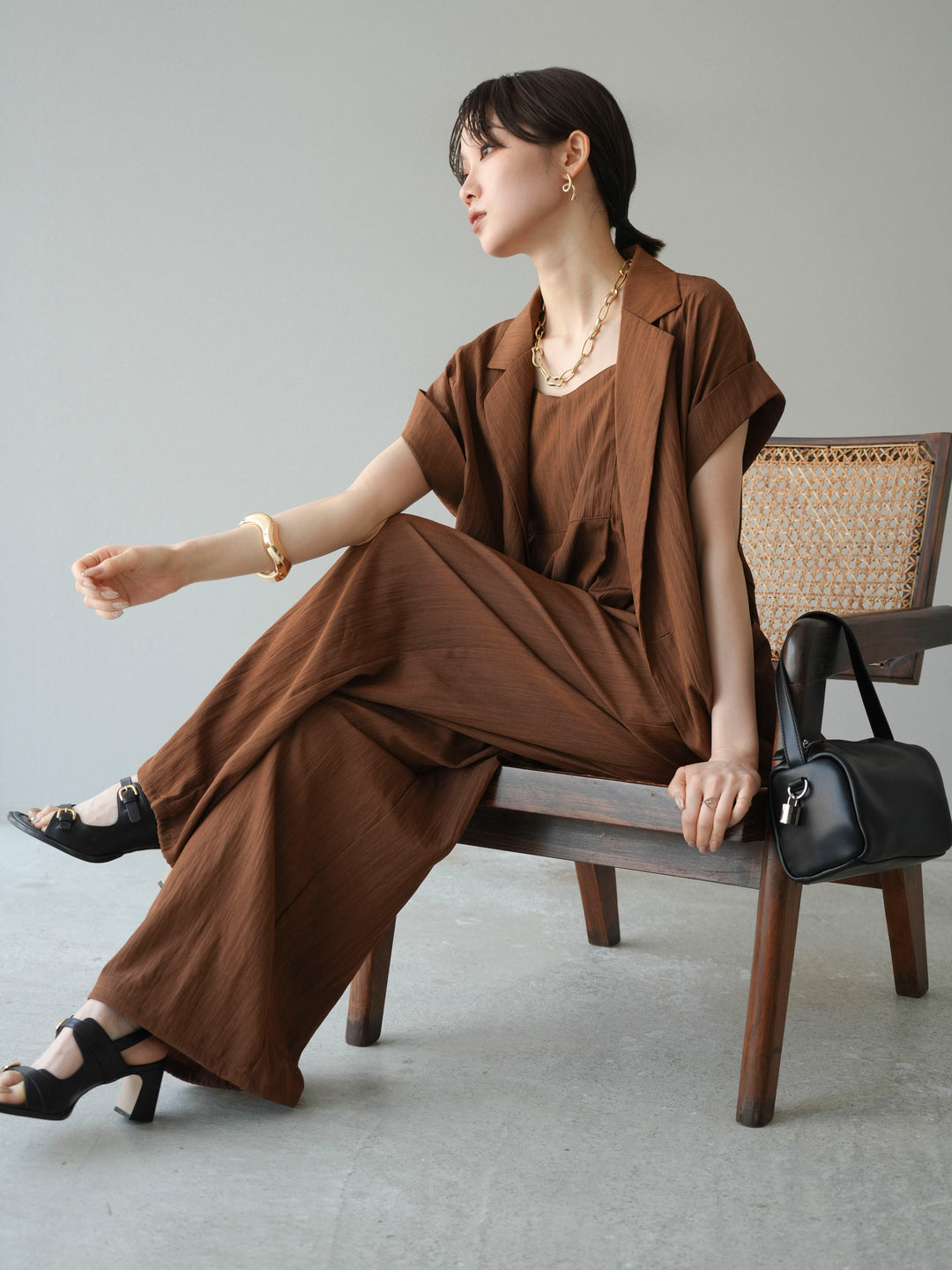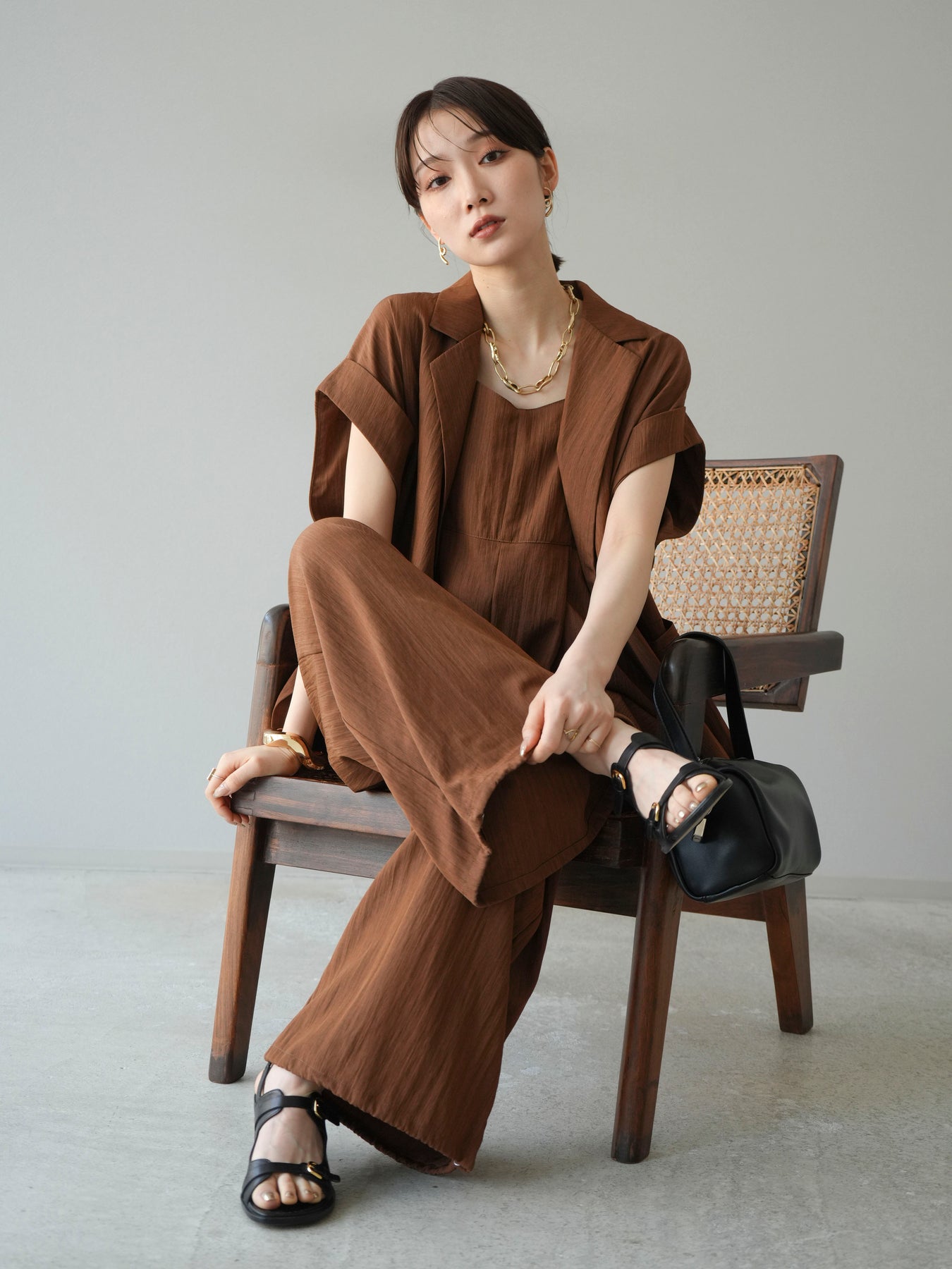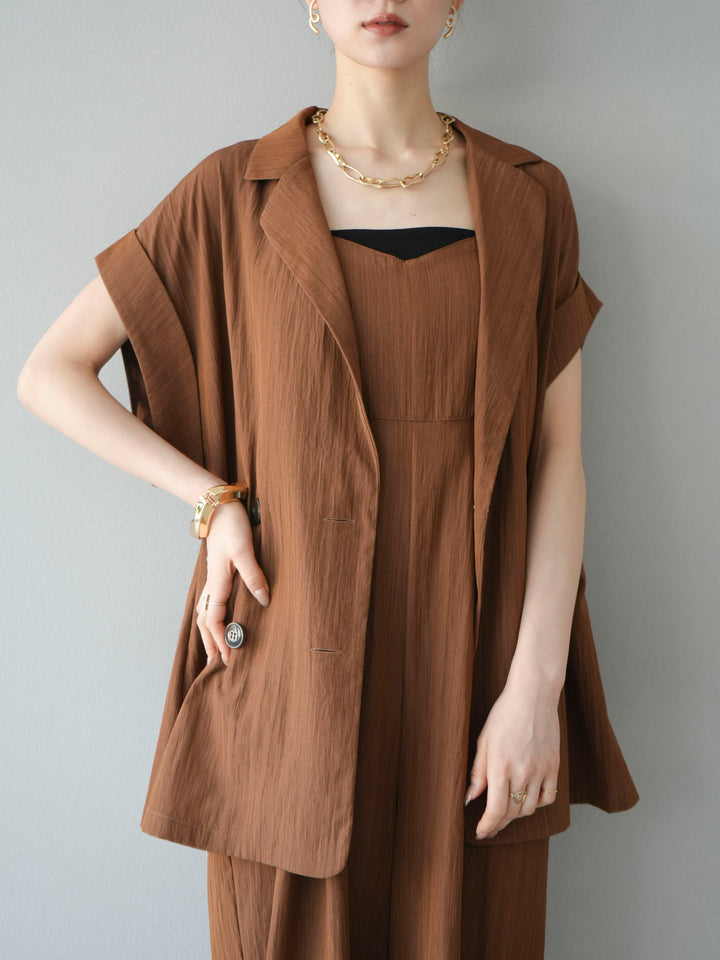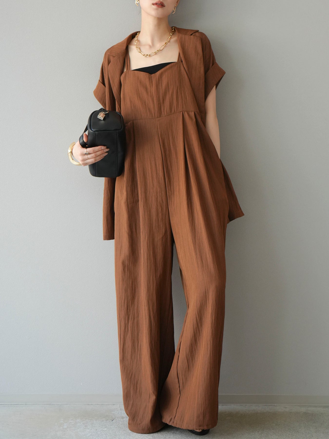 [SET]リネンライクビスチェデザインサロペット+リネンライクノースリーブダブルジレ(2set)