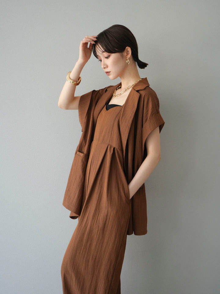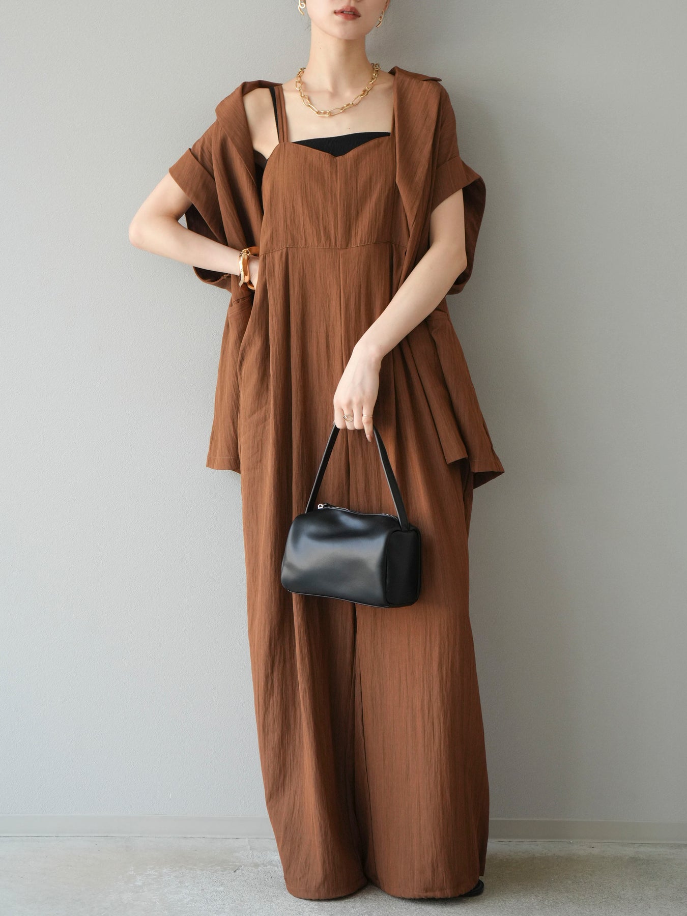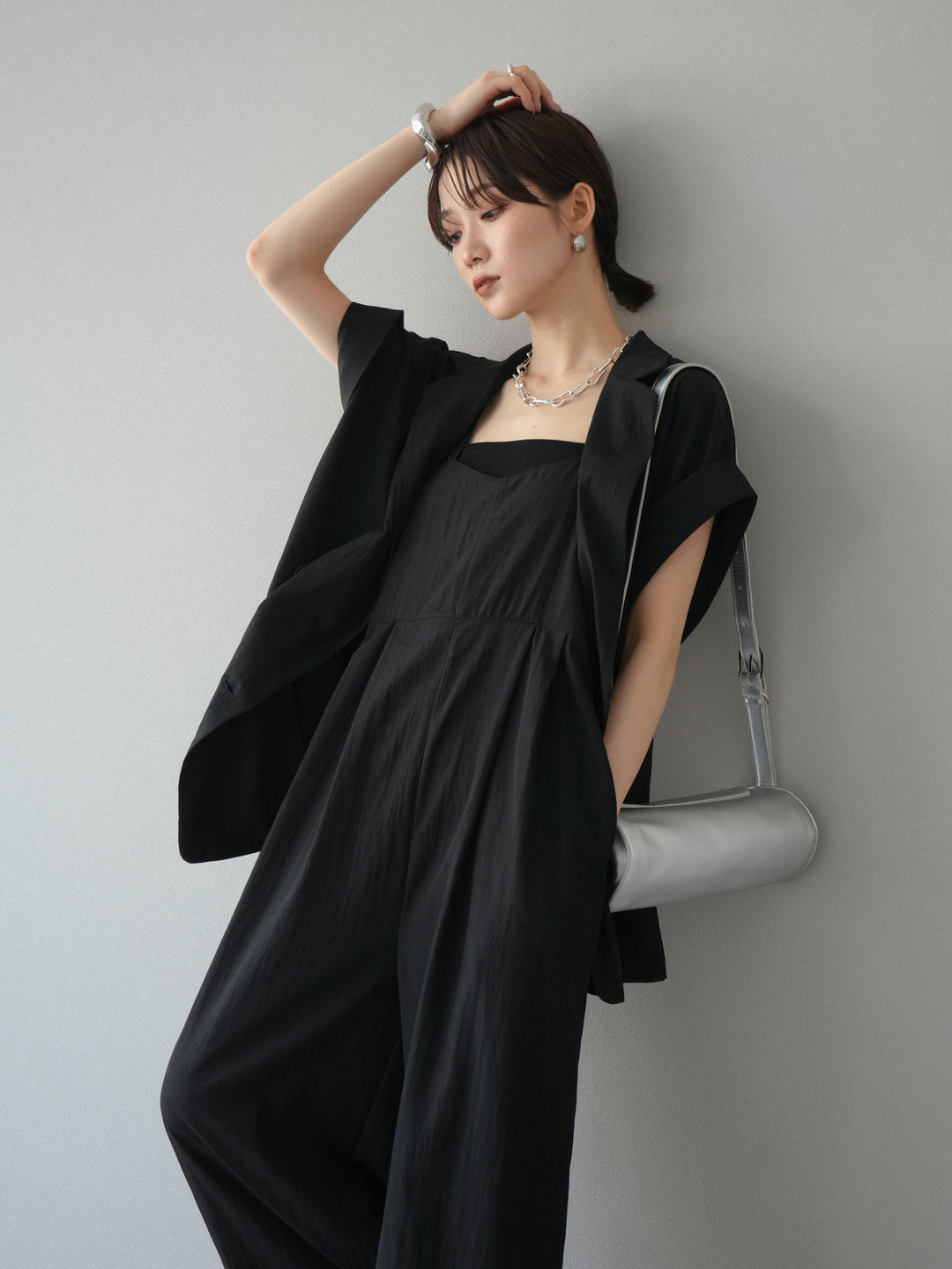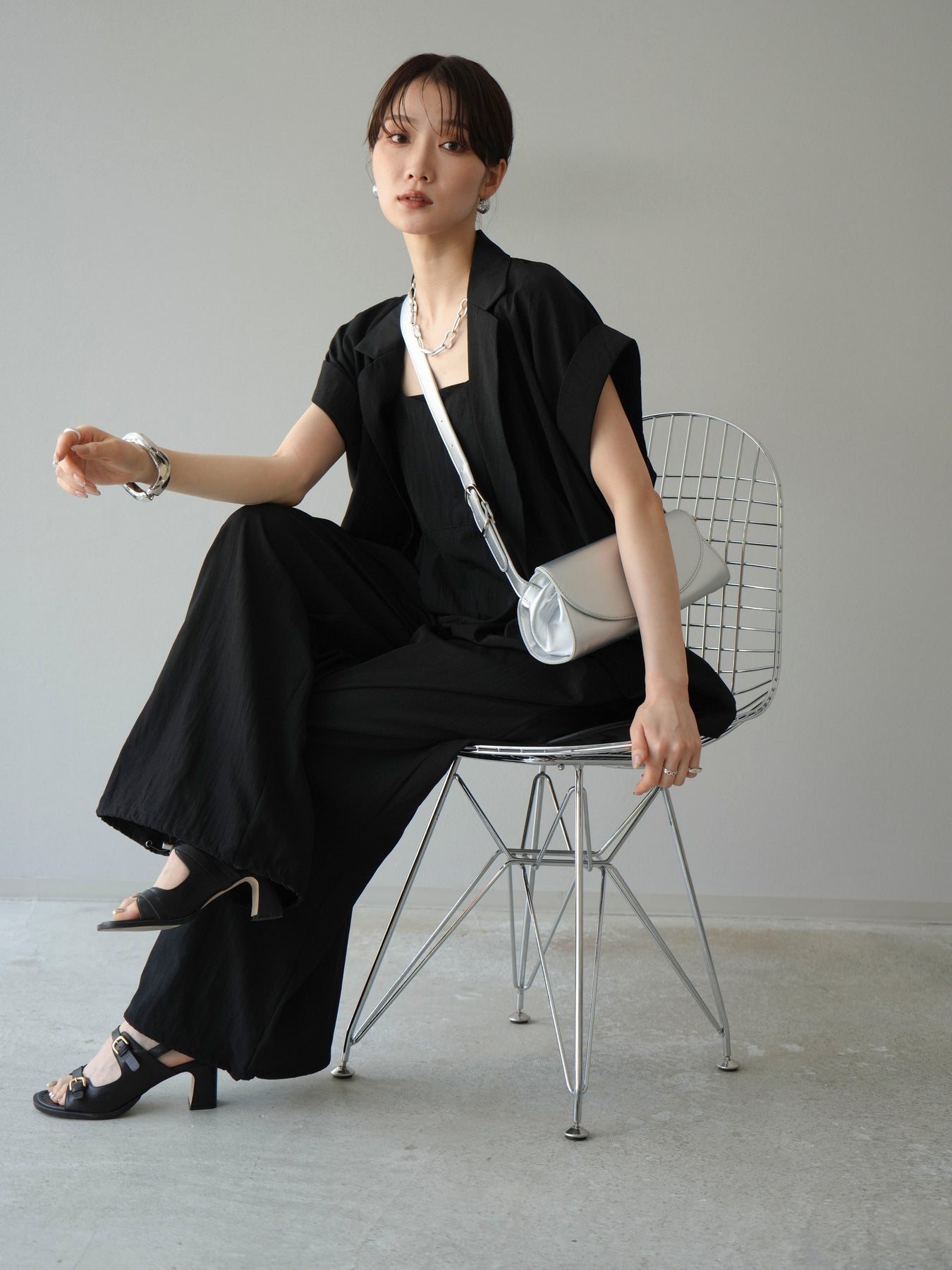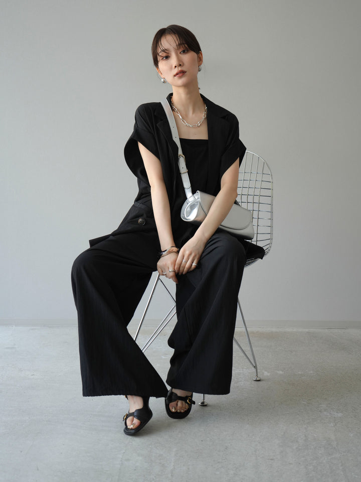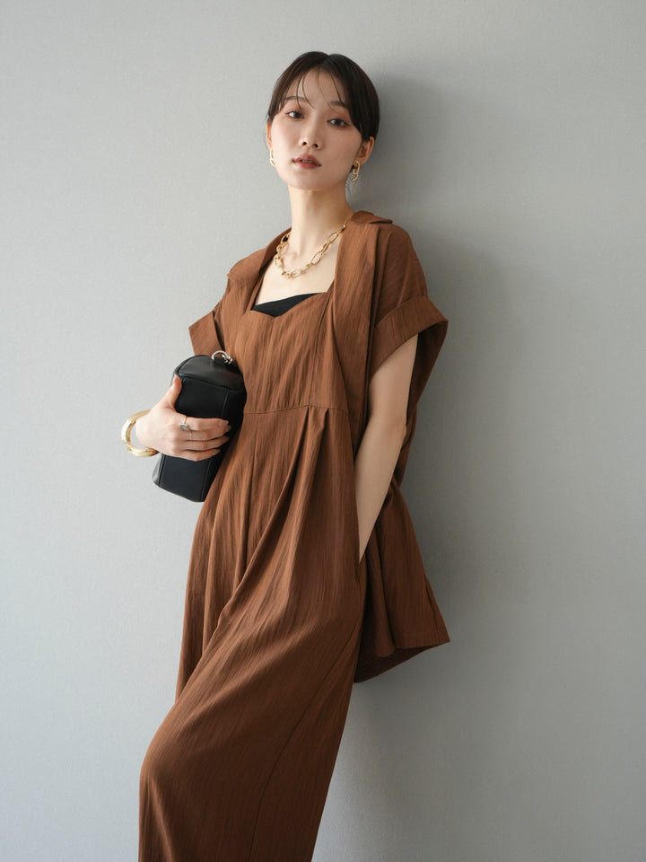 [SET]リネンライクビスチェデザインサロペット+リネンライクノースリーブダブルジレ(2set)
