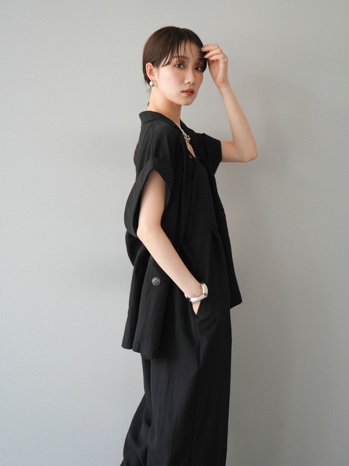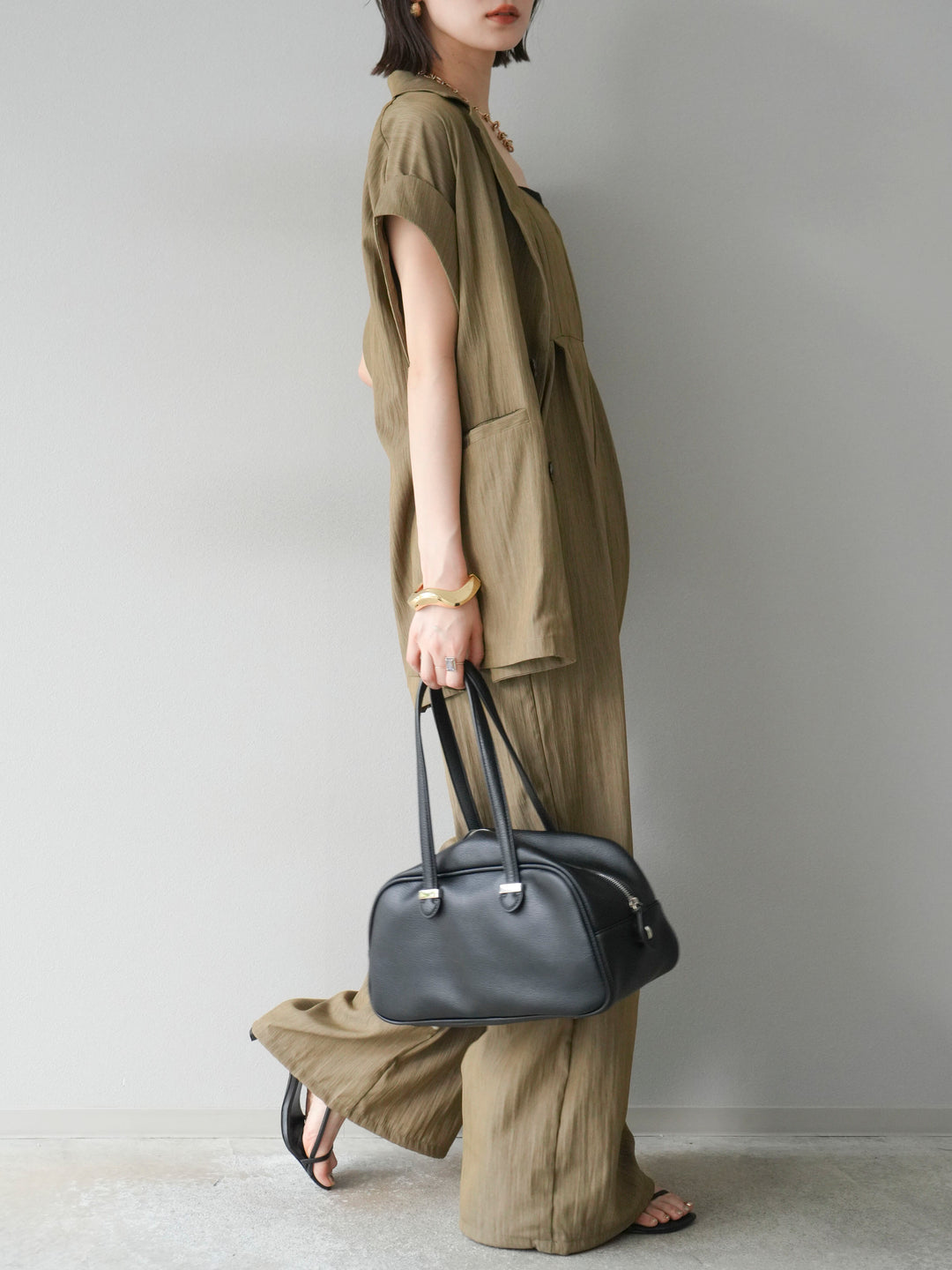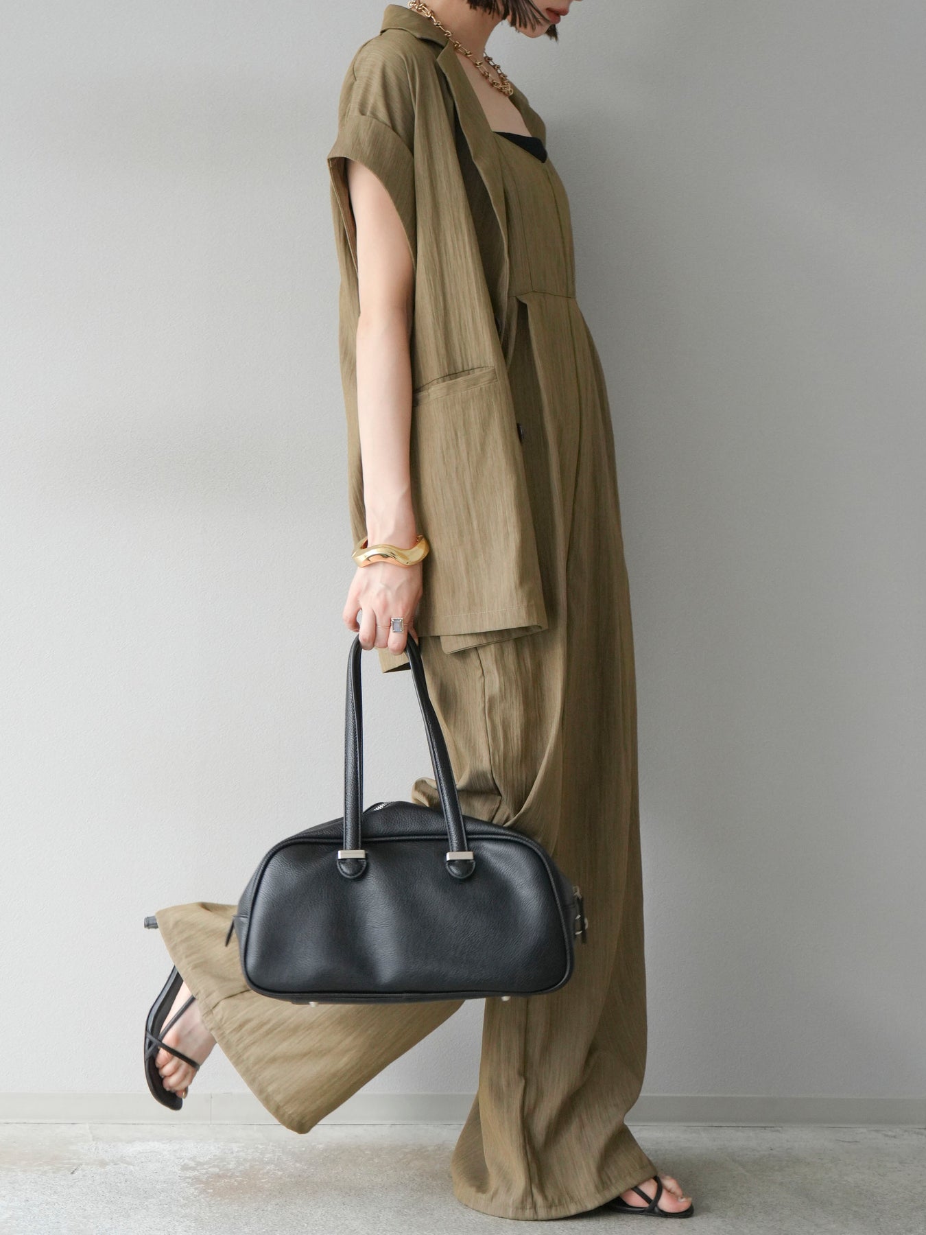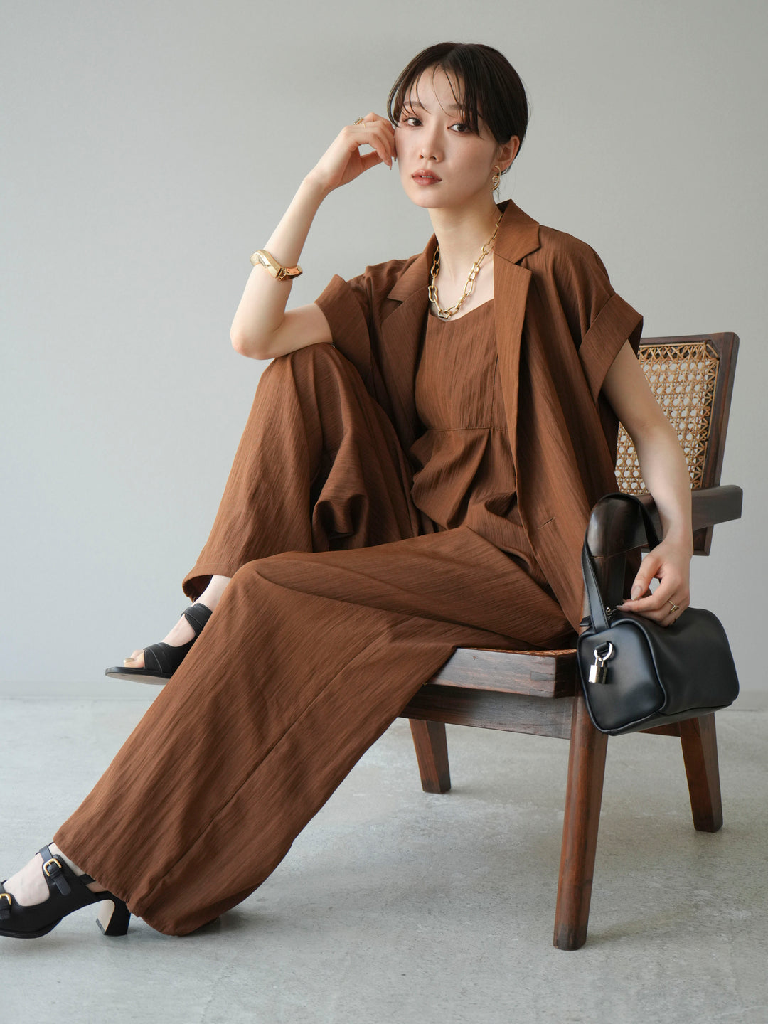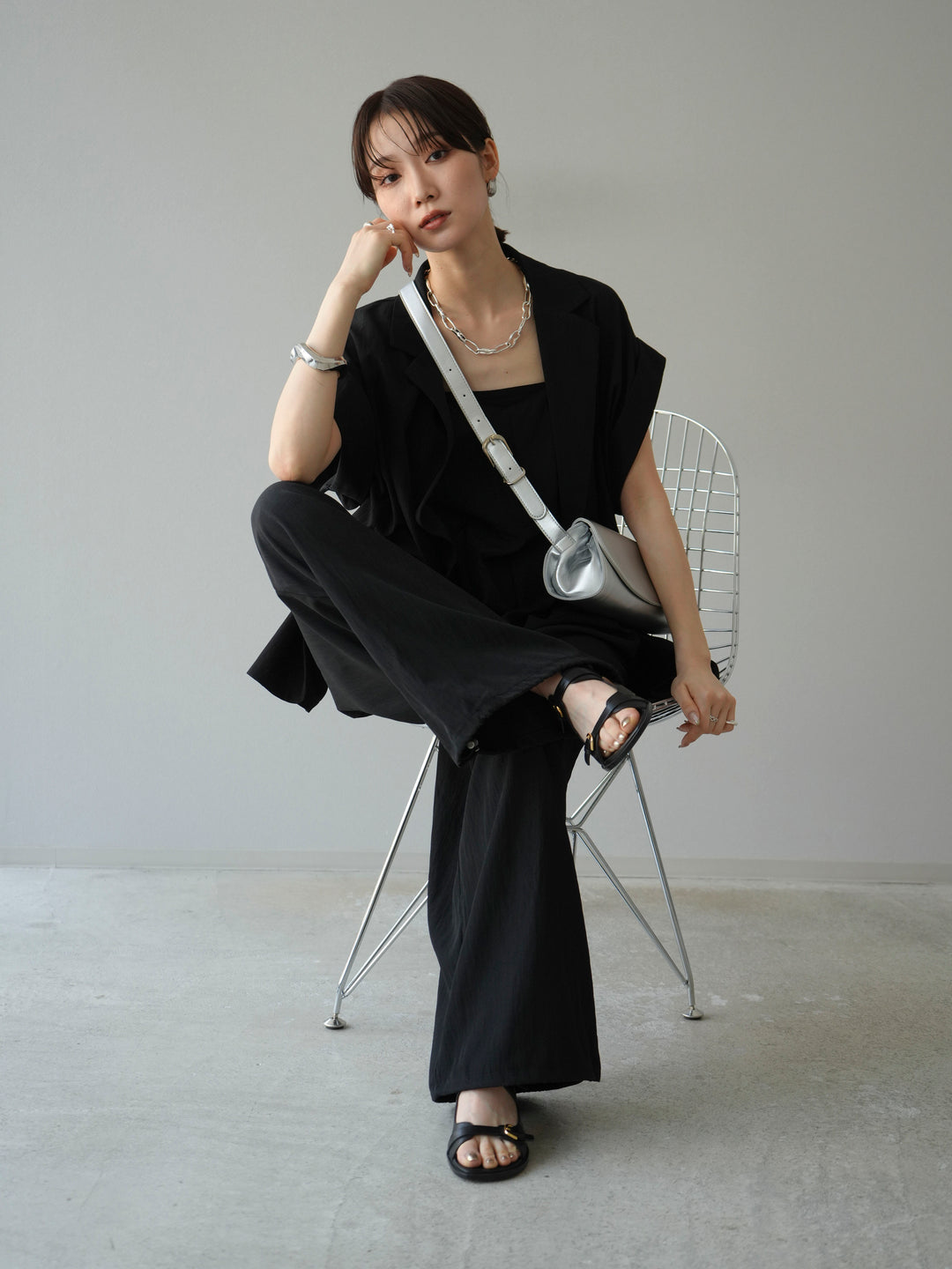 [SET]リネンライクビスチェデザインサロペット+リネンライクノースリーブダブルジレ(2set)