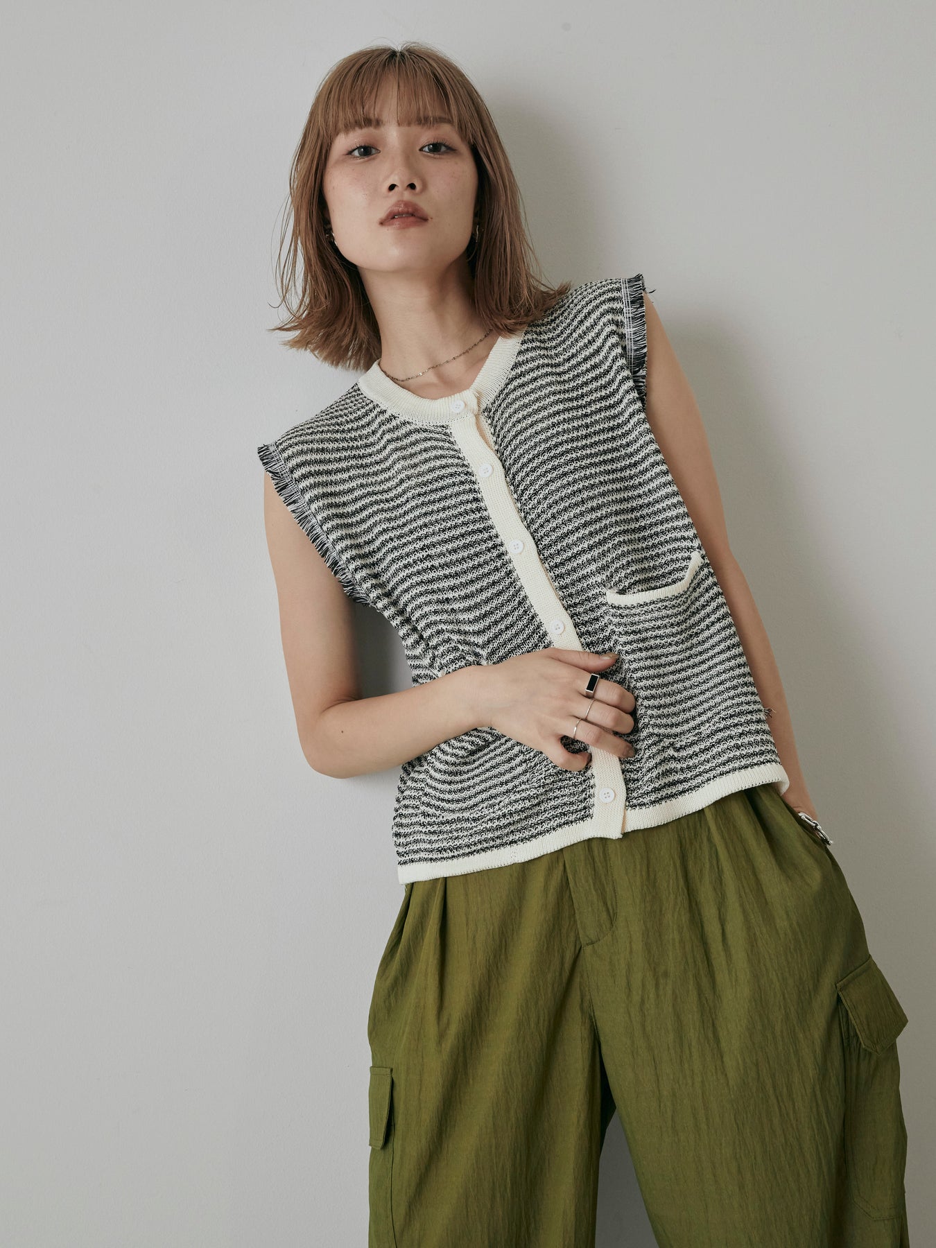 [予約]ボーダー袖フリンジニットベスト + [予約]ボーダー袖フリンジニットベスト