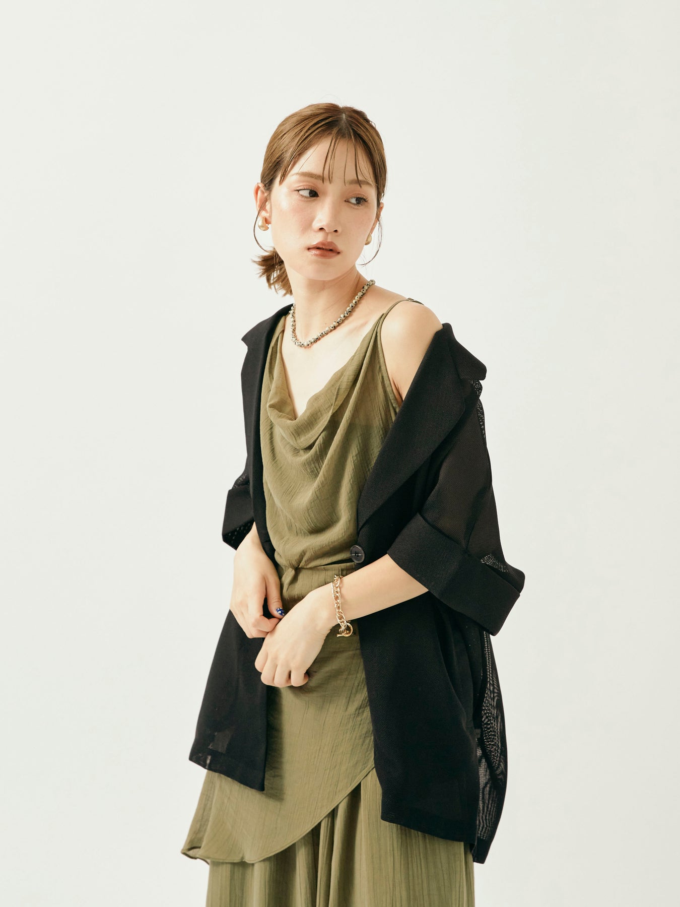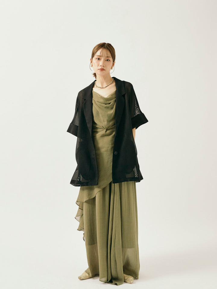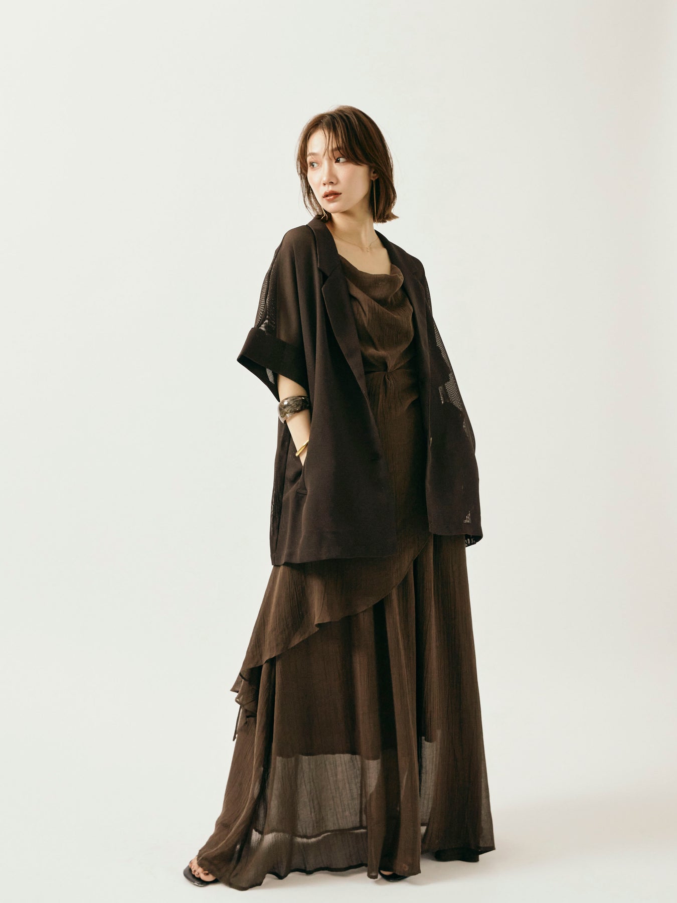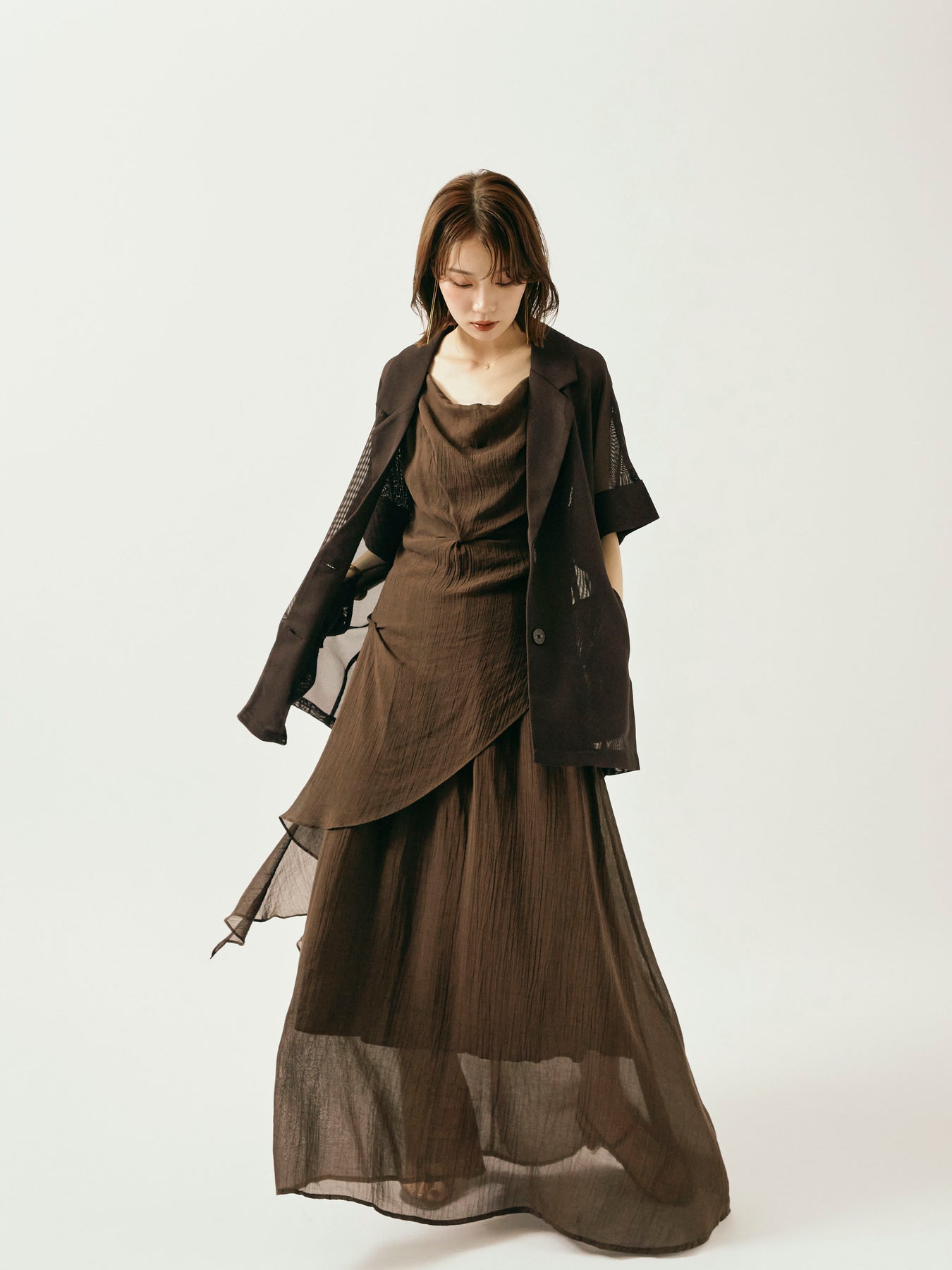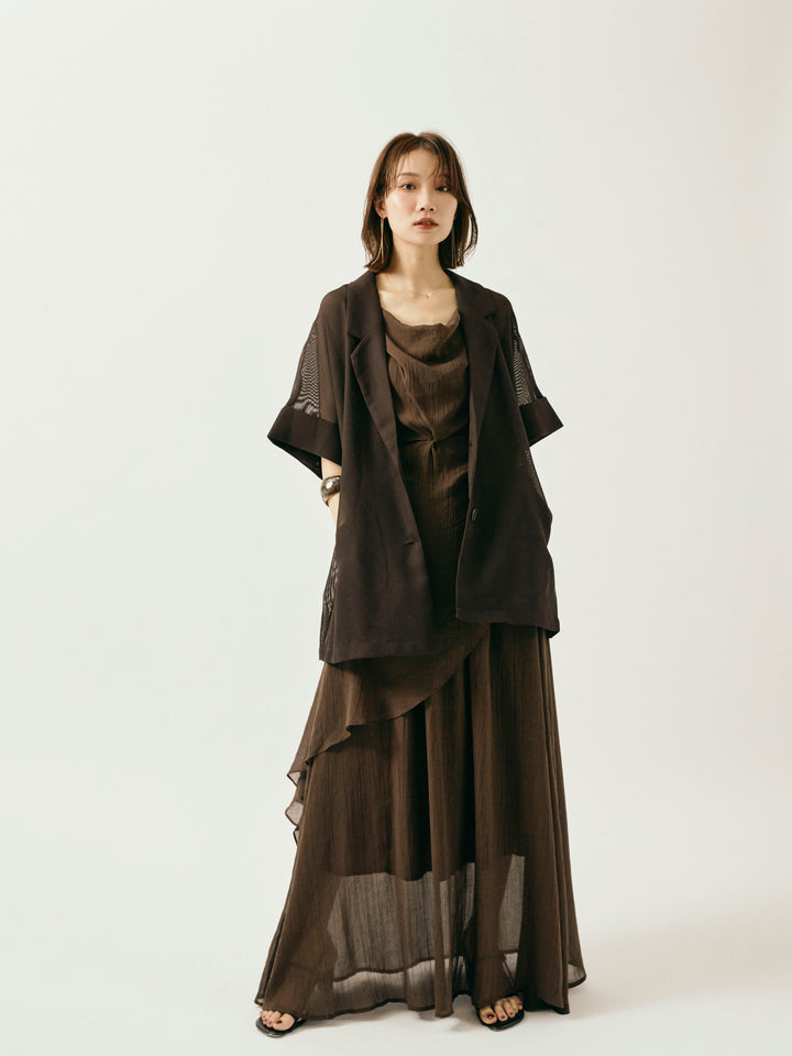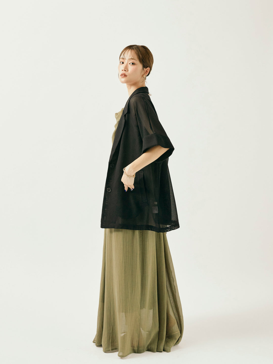 【Allure】[SET]シアーワッシャーラッフルキャミソール&マキシスカートSET UP +メッシュハーフテーラードジャケット(2set)