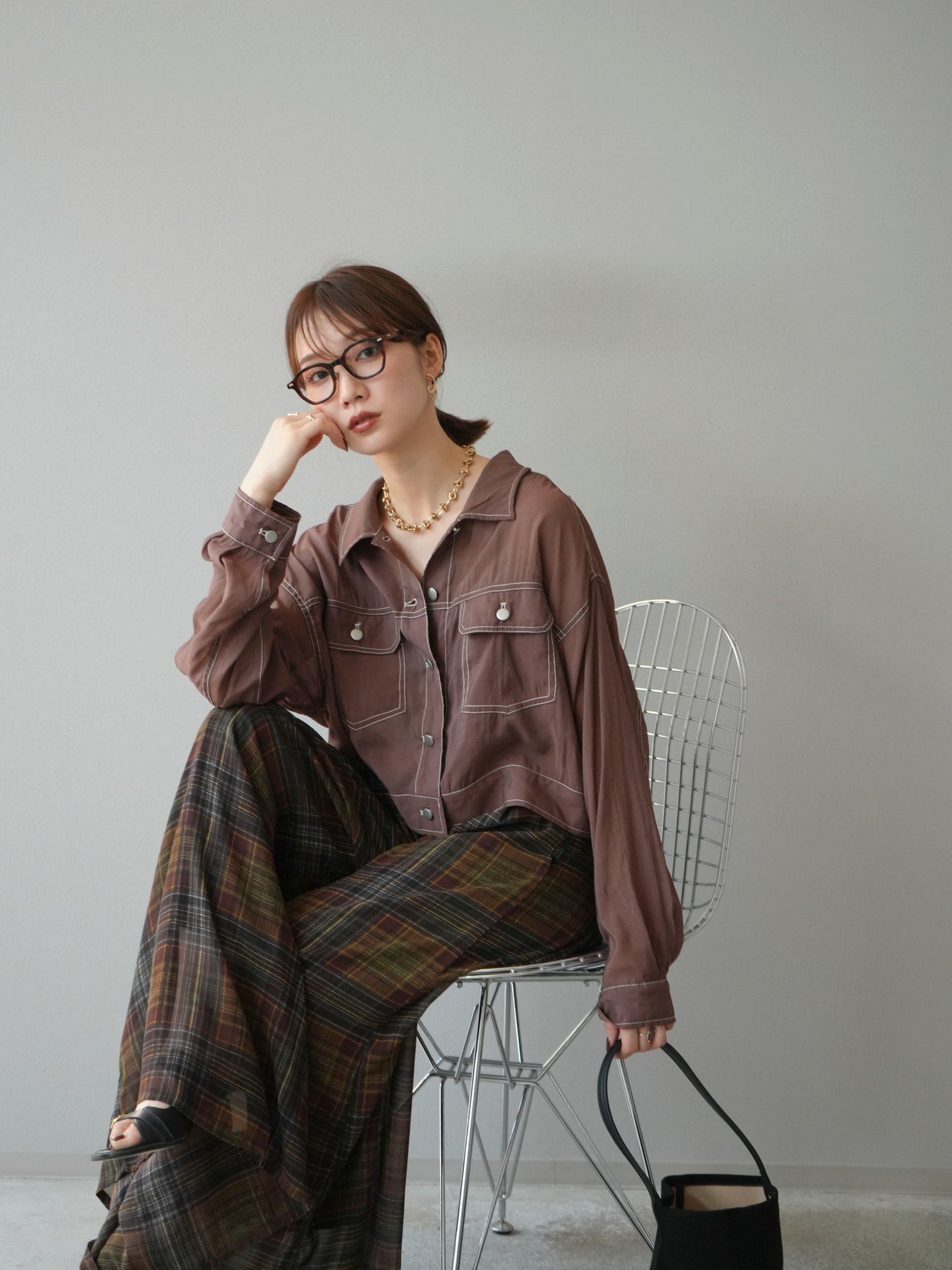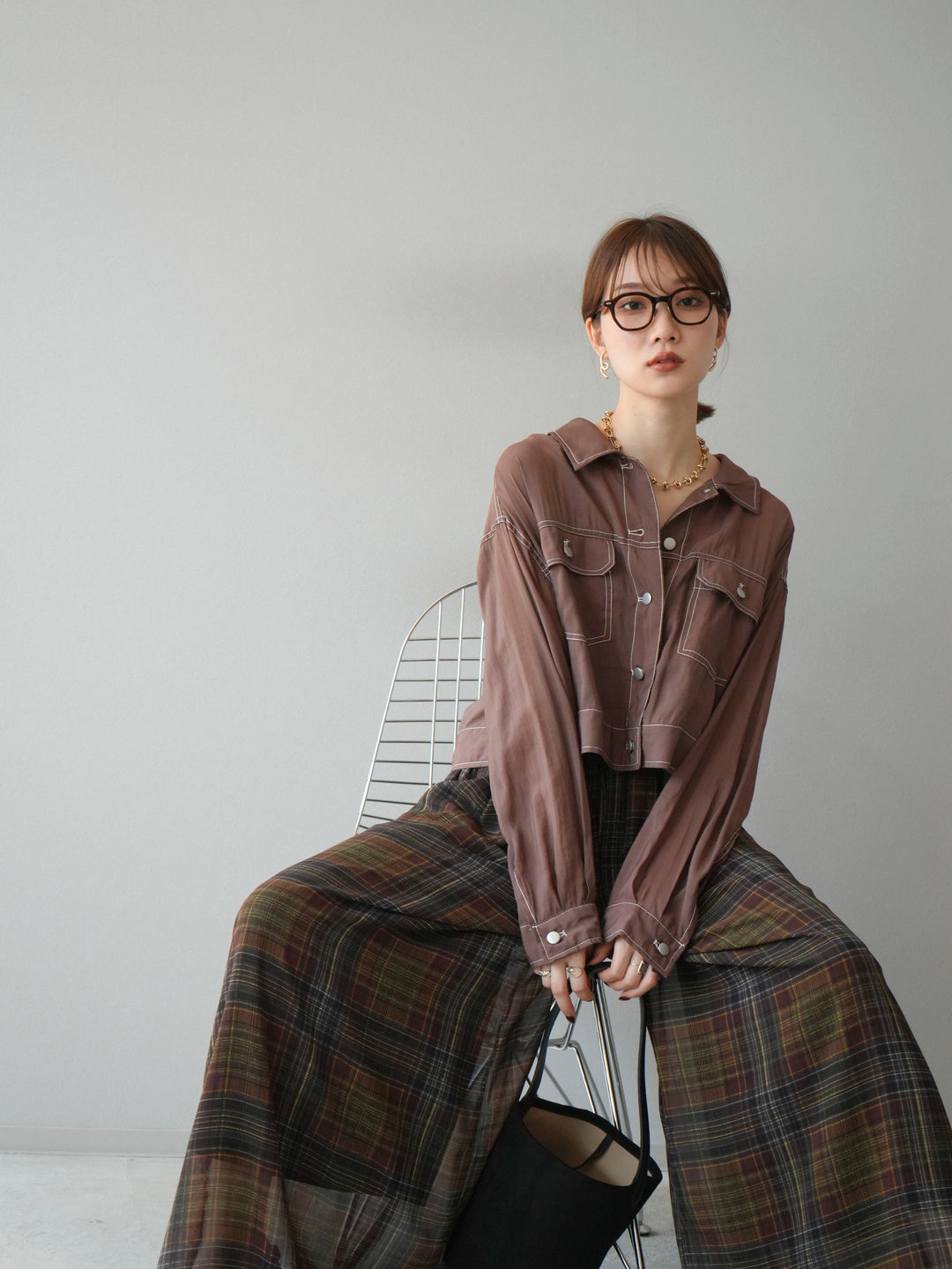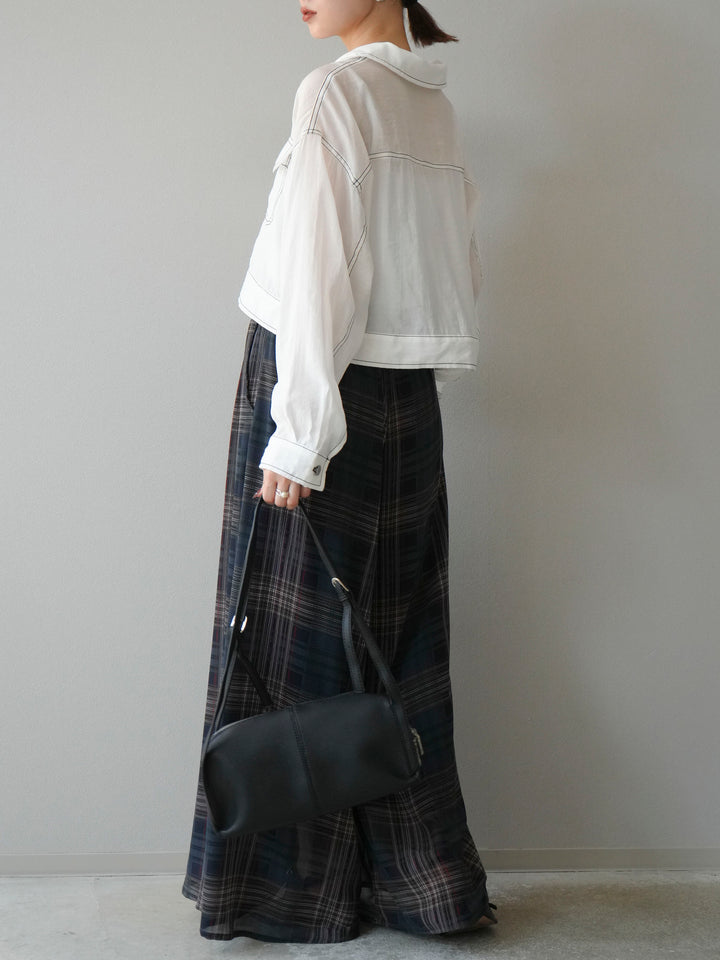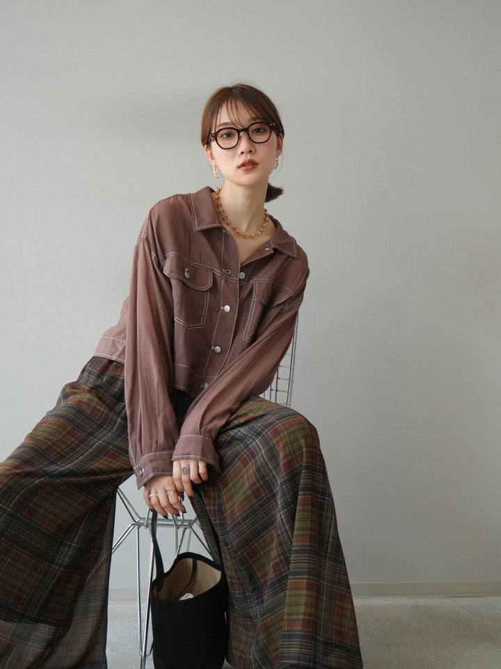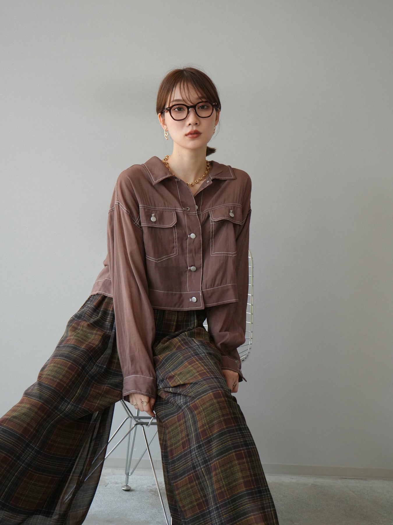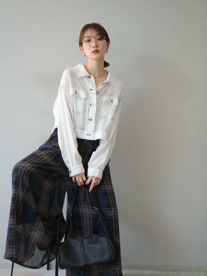 [SET]ステッチシアーショートジャケット+シアーチェックバギーパンツ(2set)