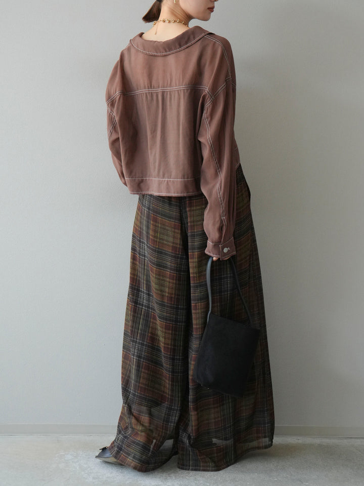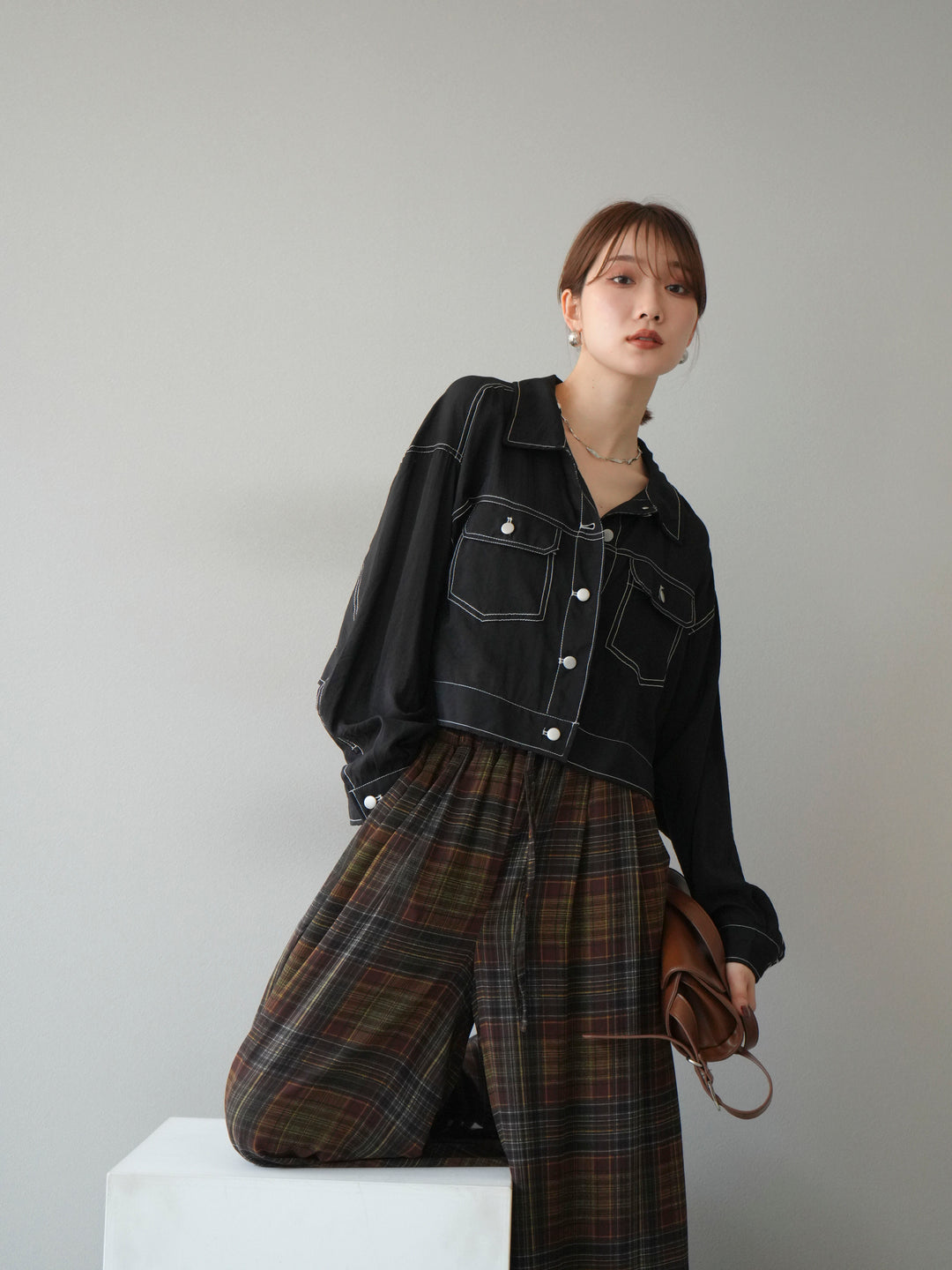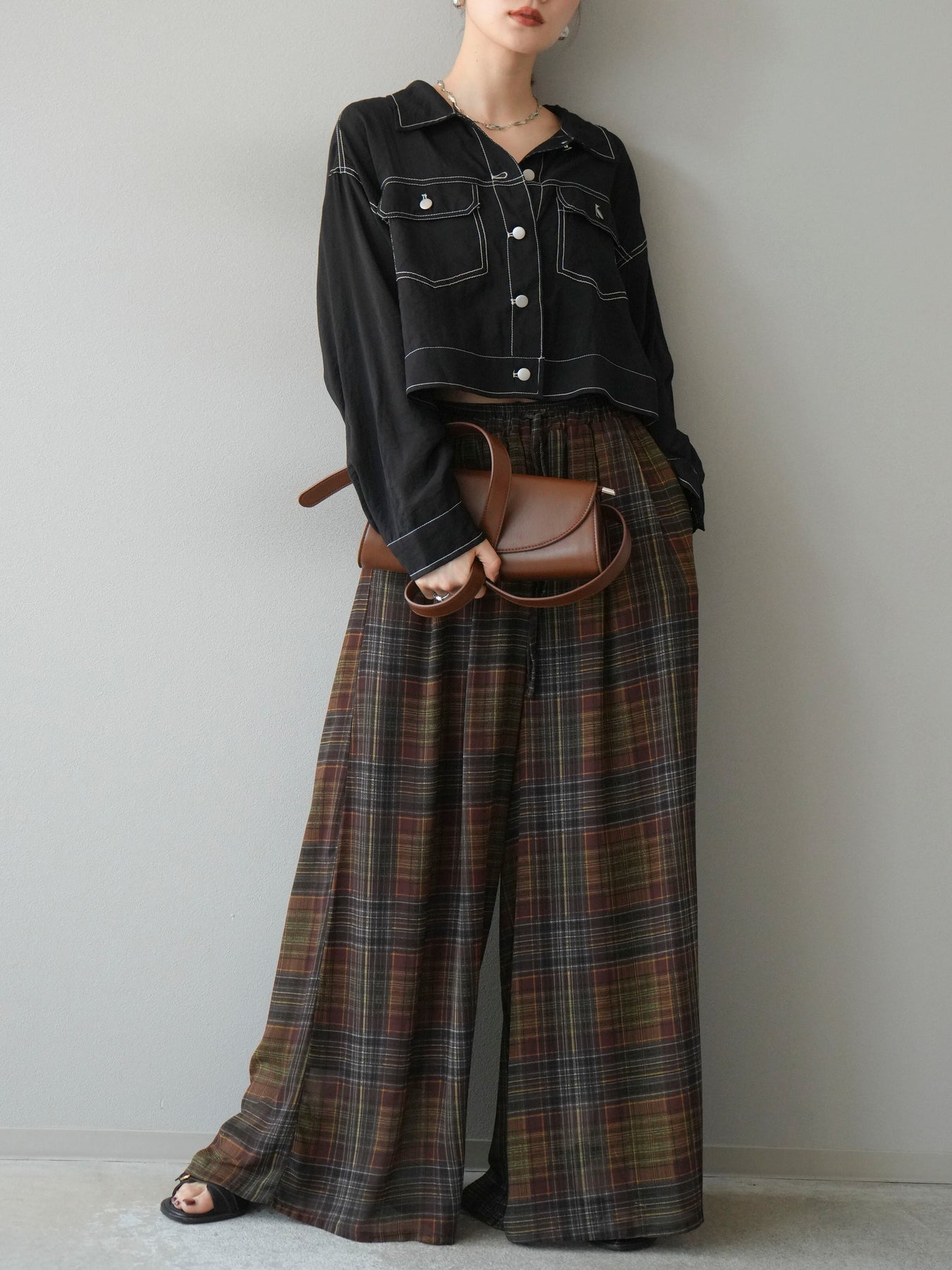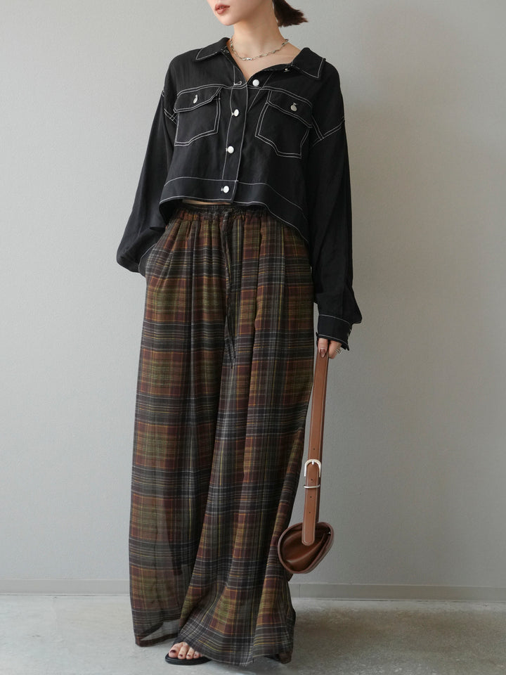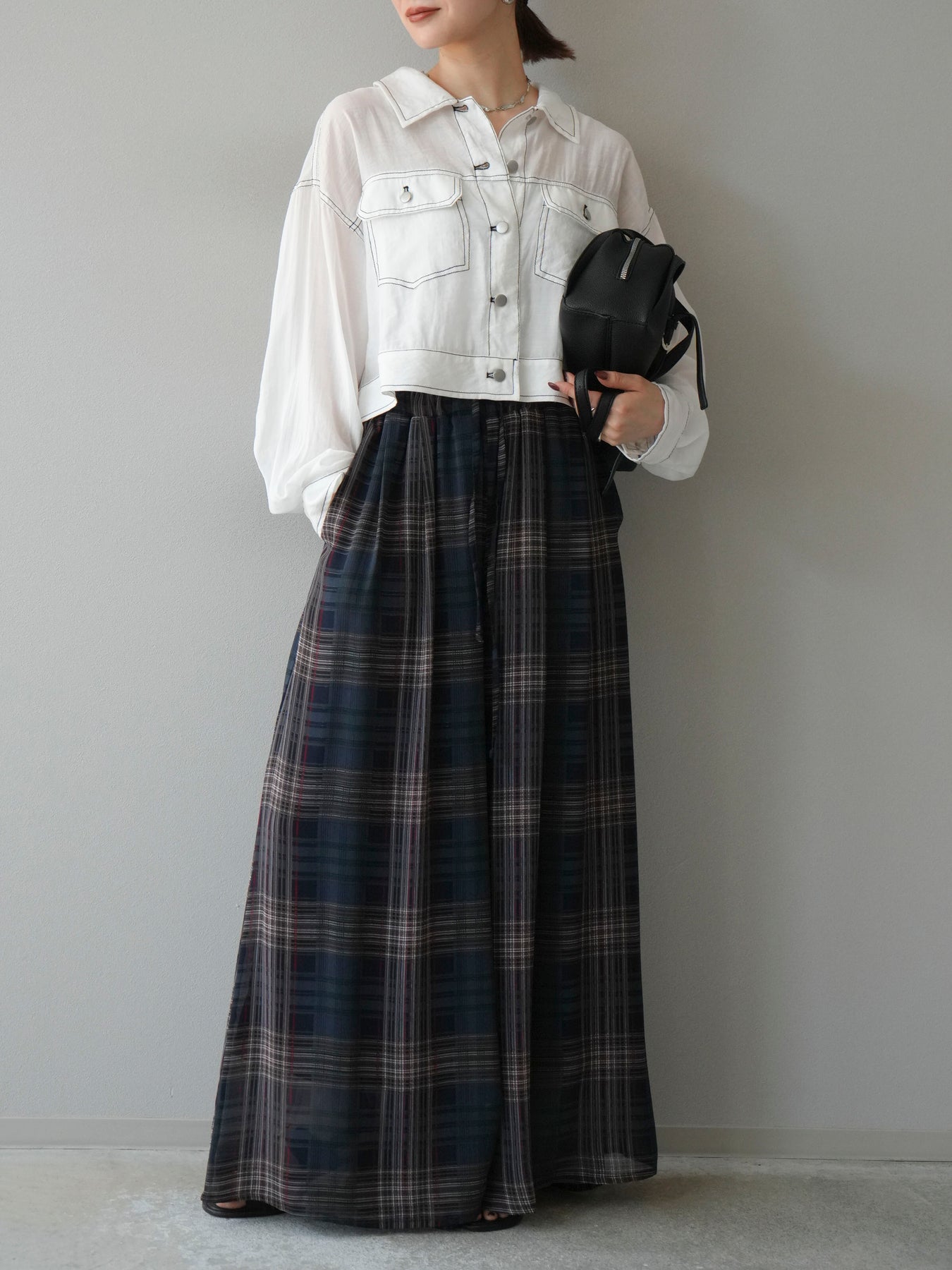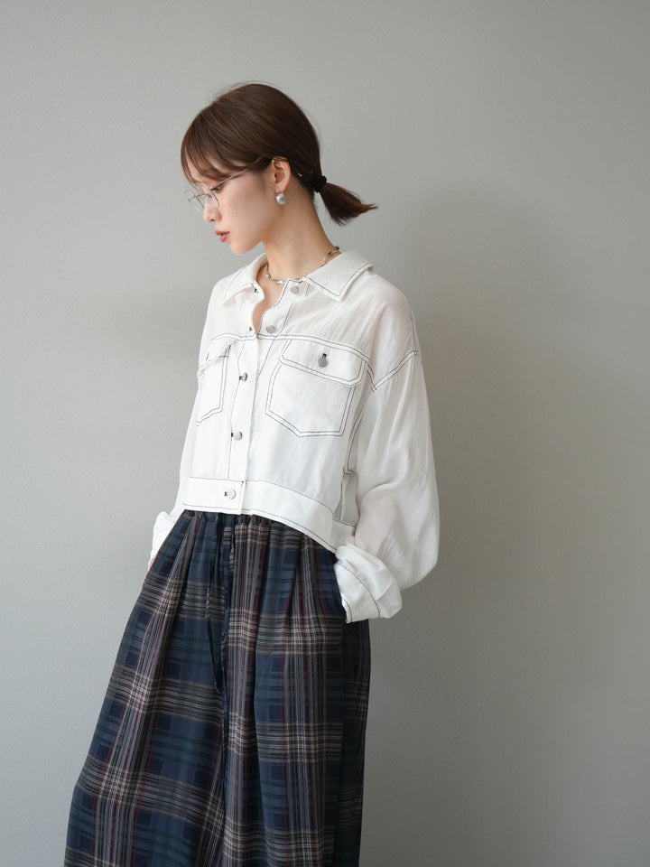 [SET]ステッチシアーショートジャケット+シアーチェックバギーパンツ(2set)