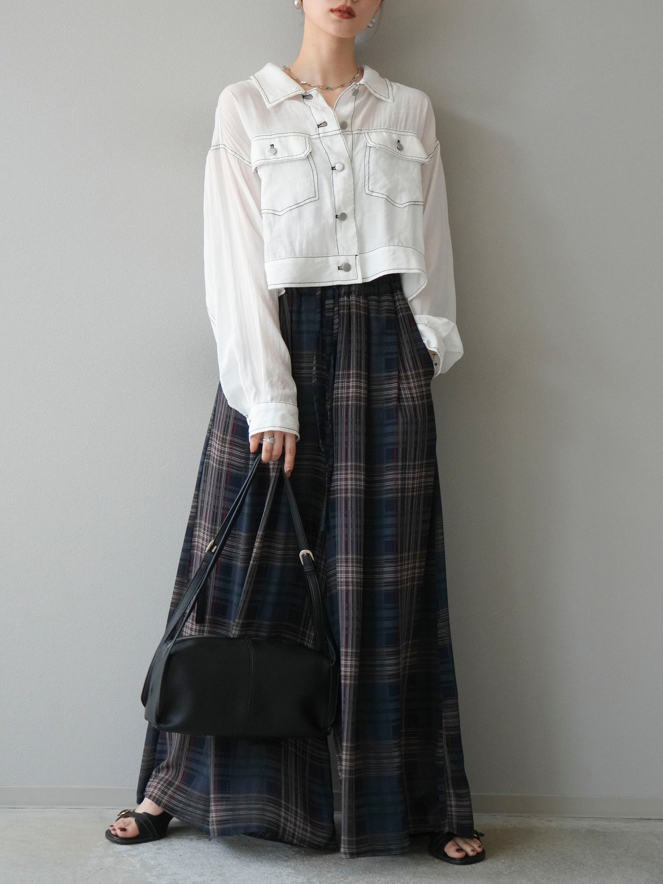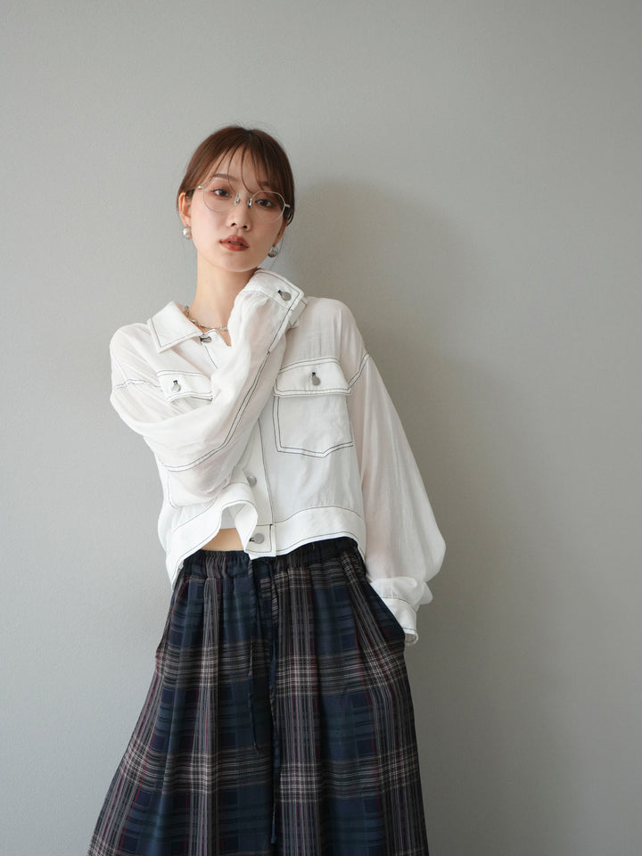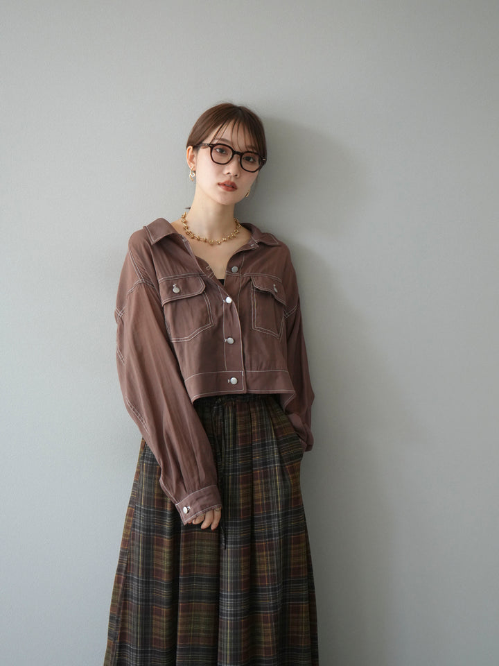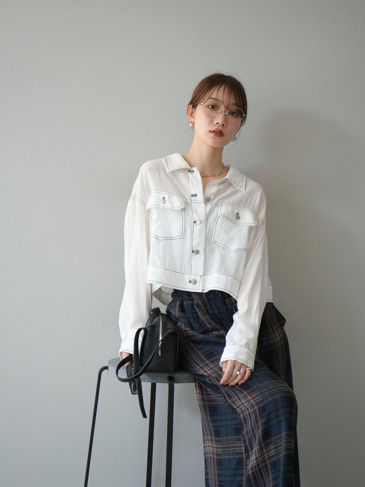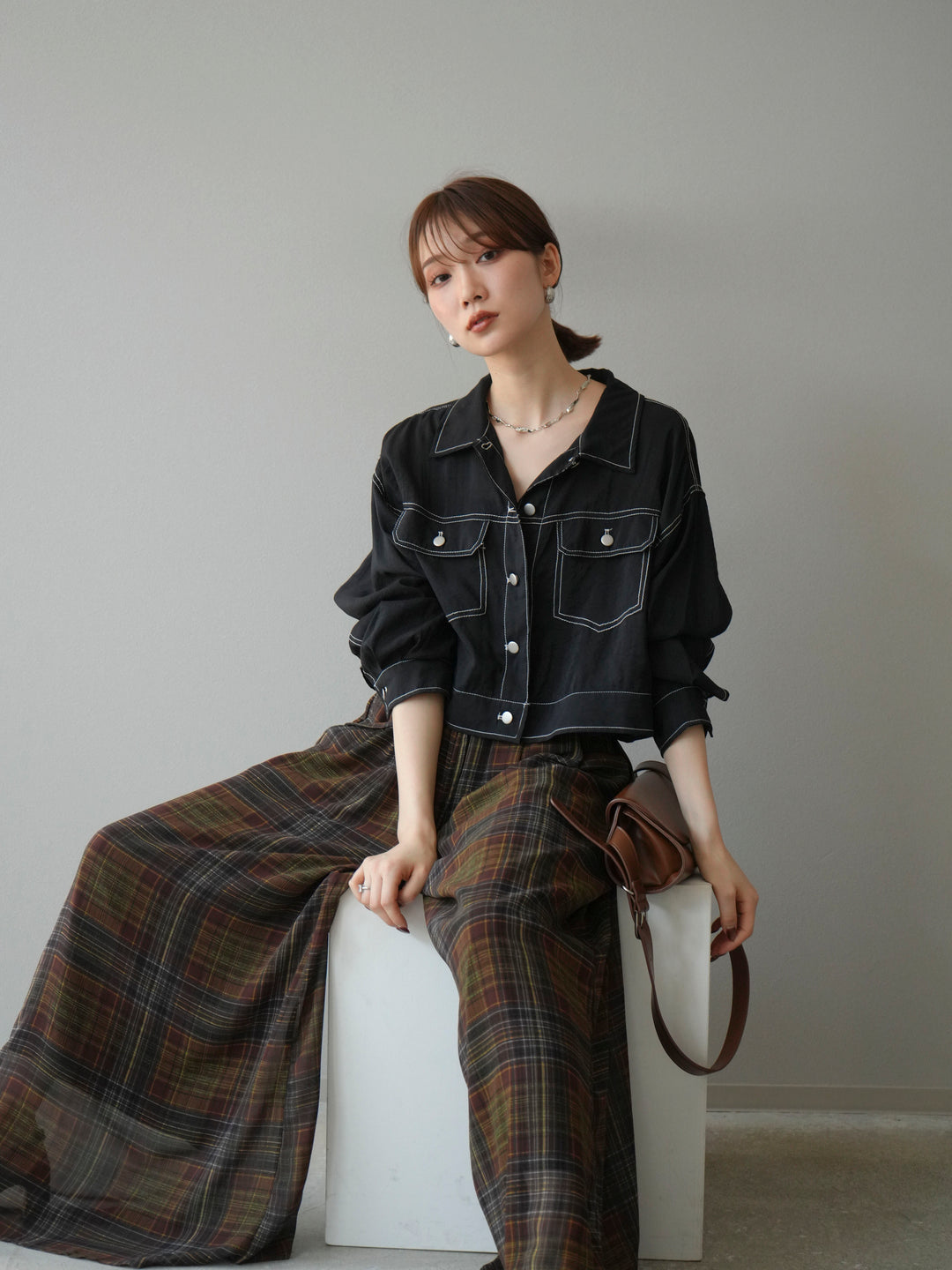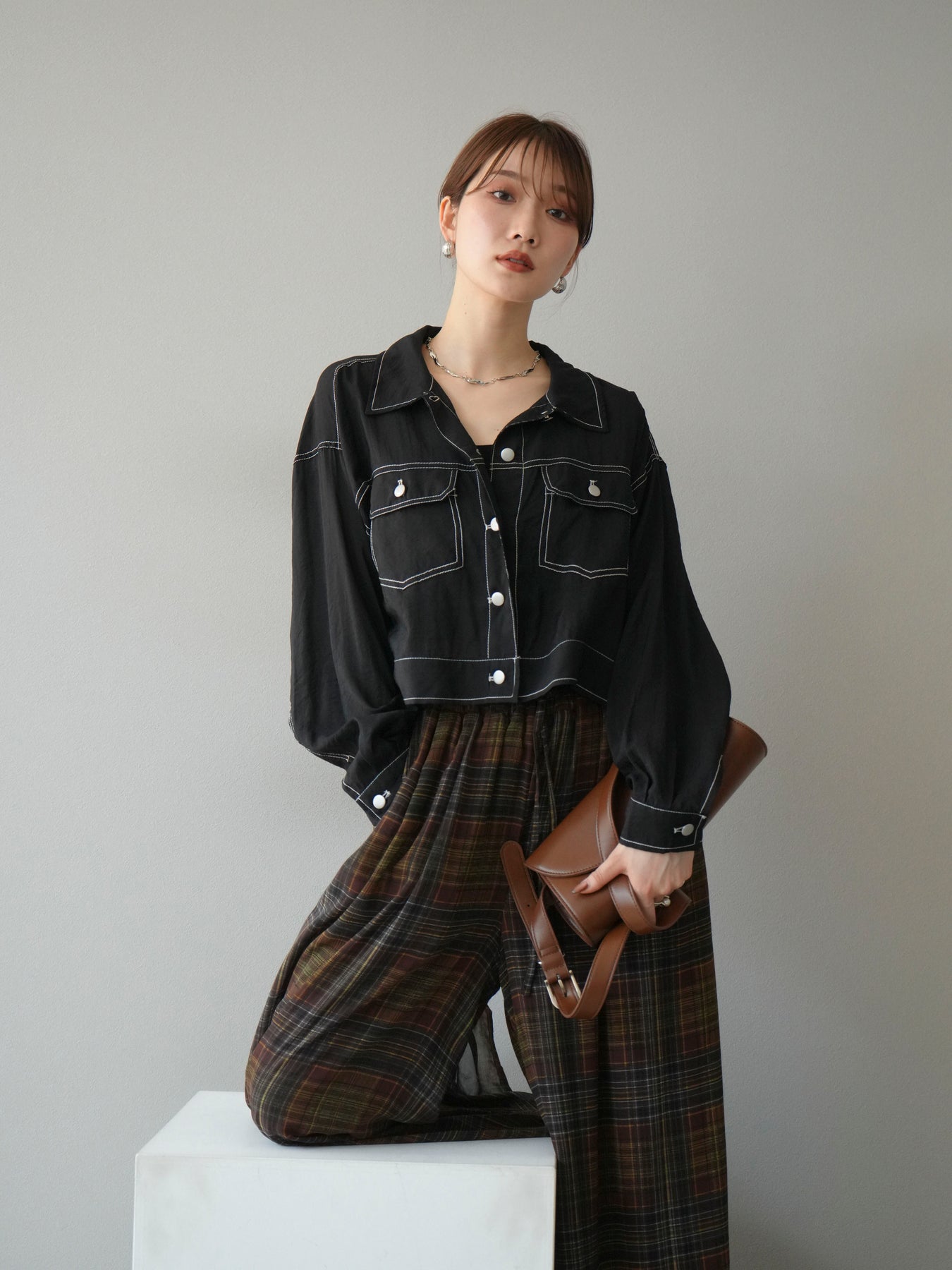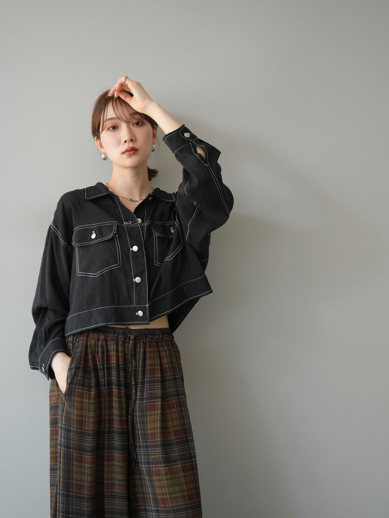 [SET]ステッチシアーショートジャケット+シアーチェックバギーパンツ(2set)