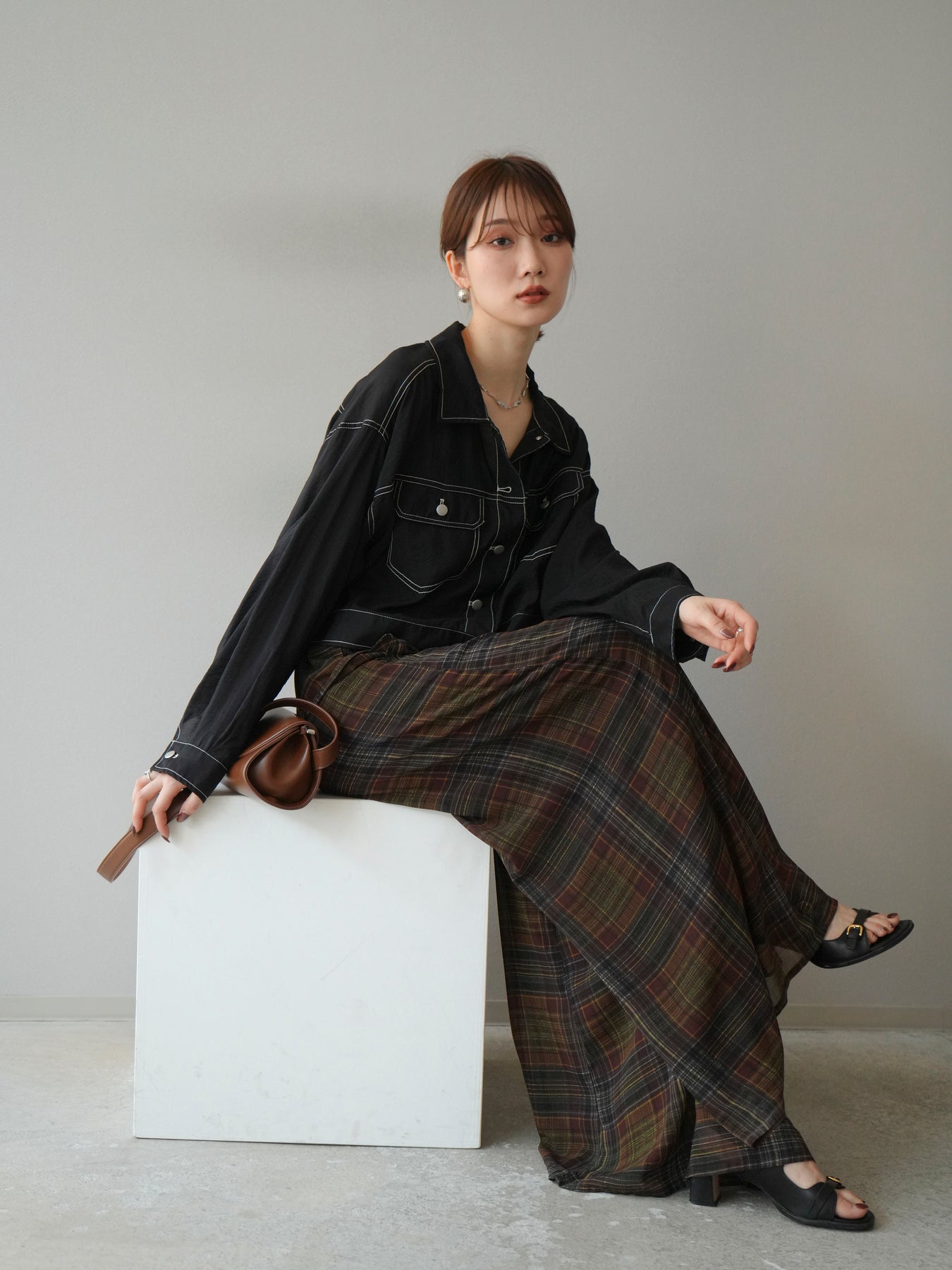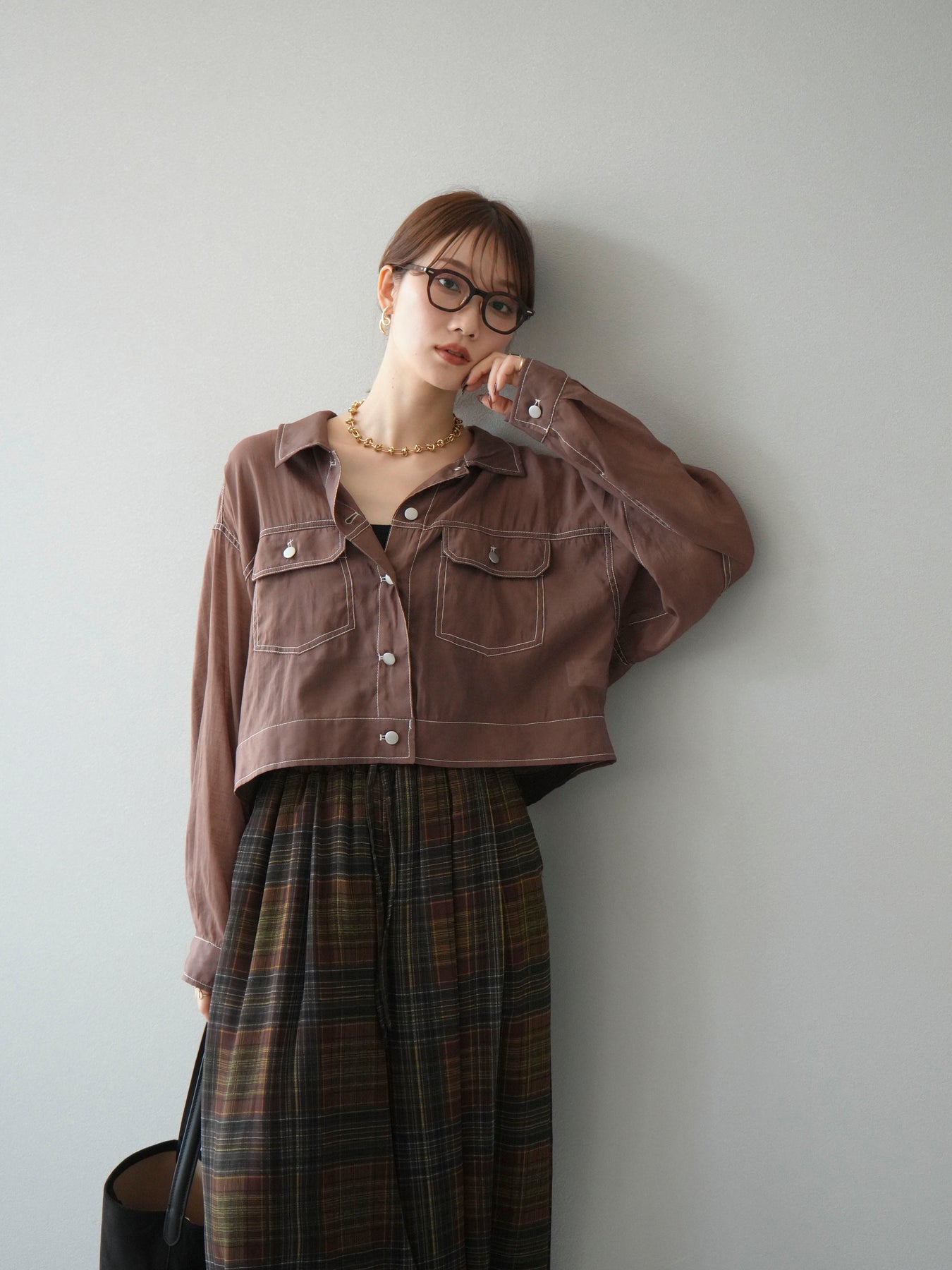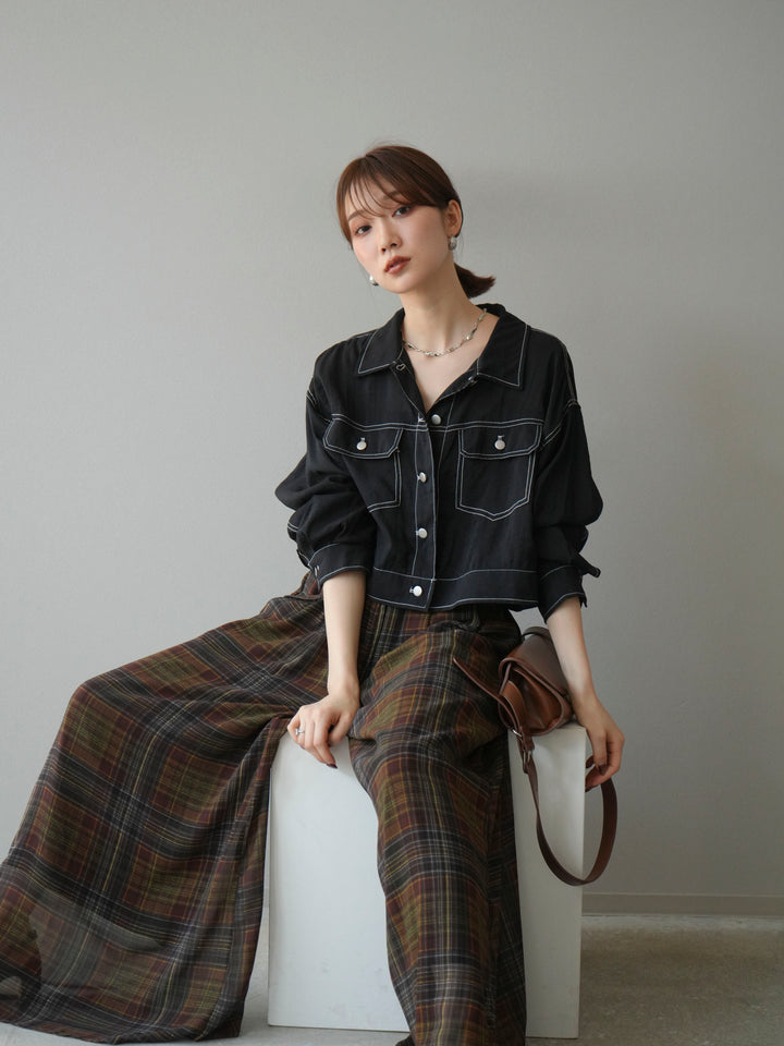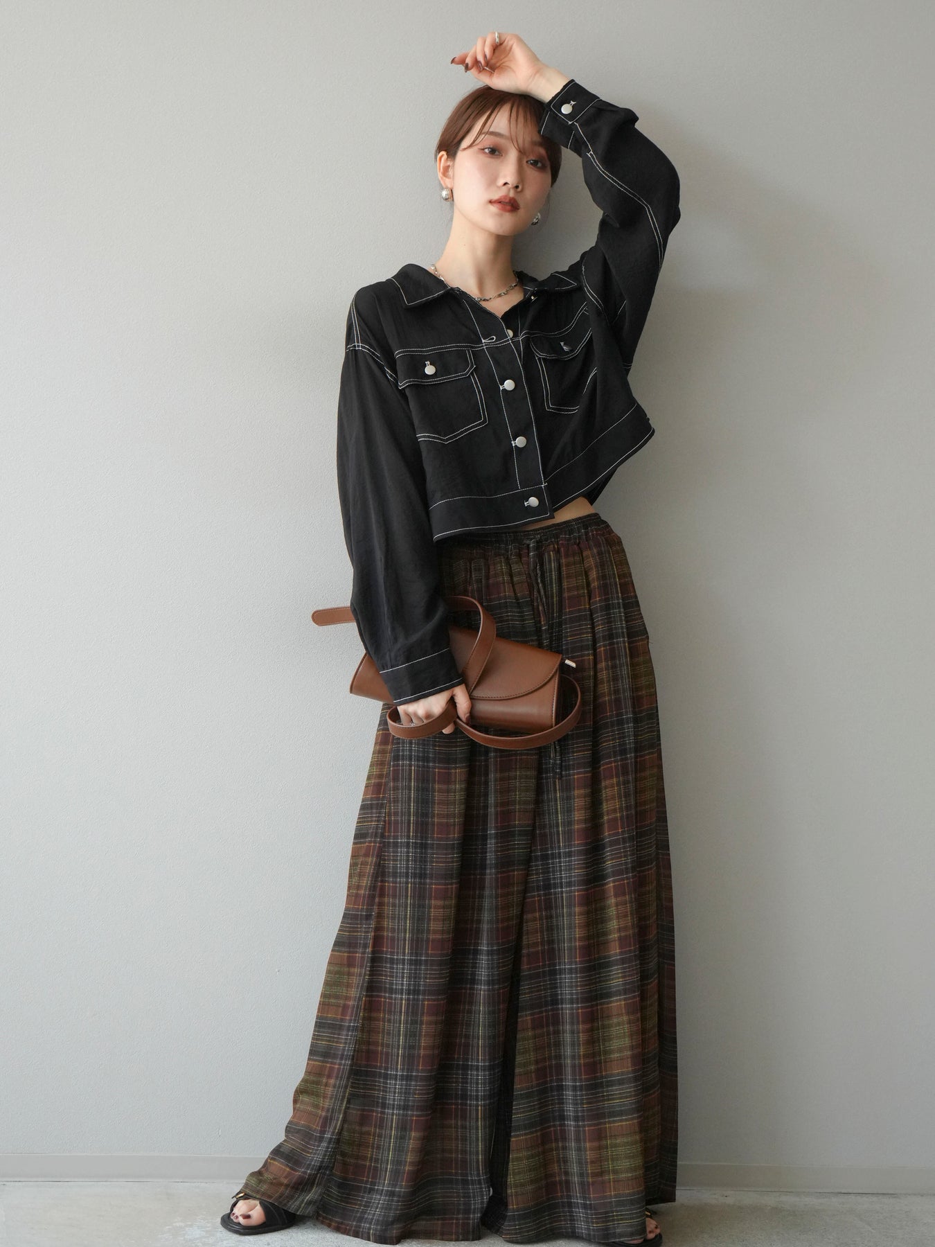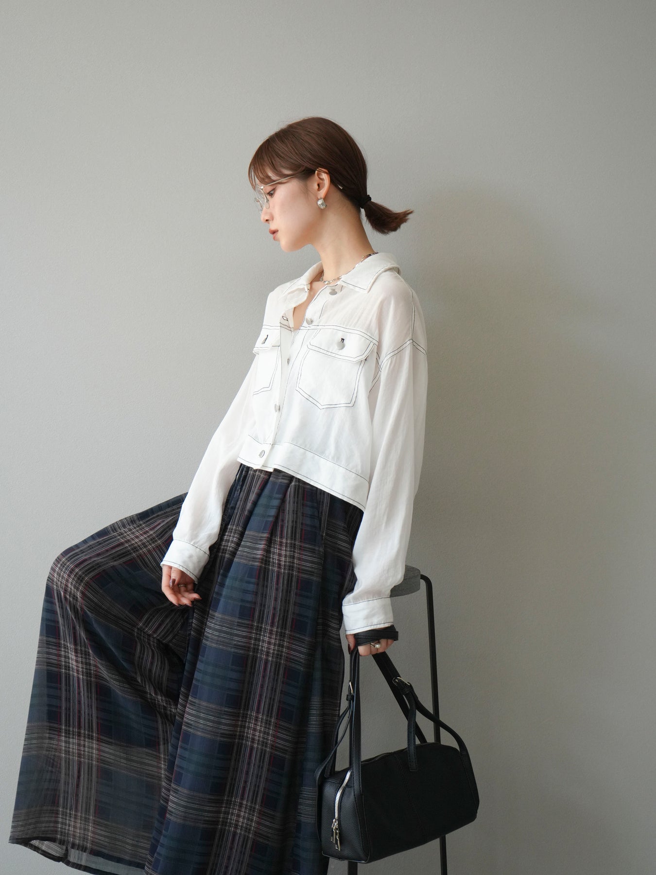 [SET]ステッチシアーショートジャケット+シアーチェックバギーパンツ(2set)