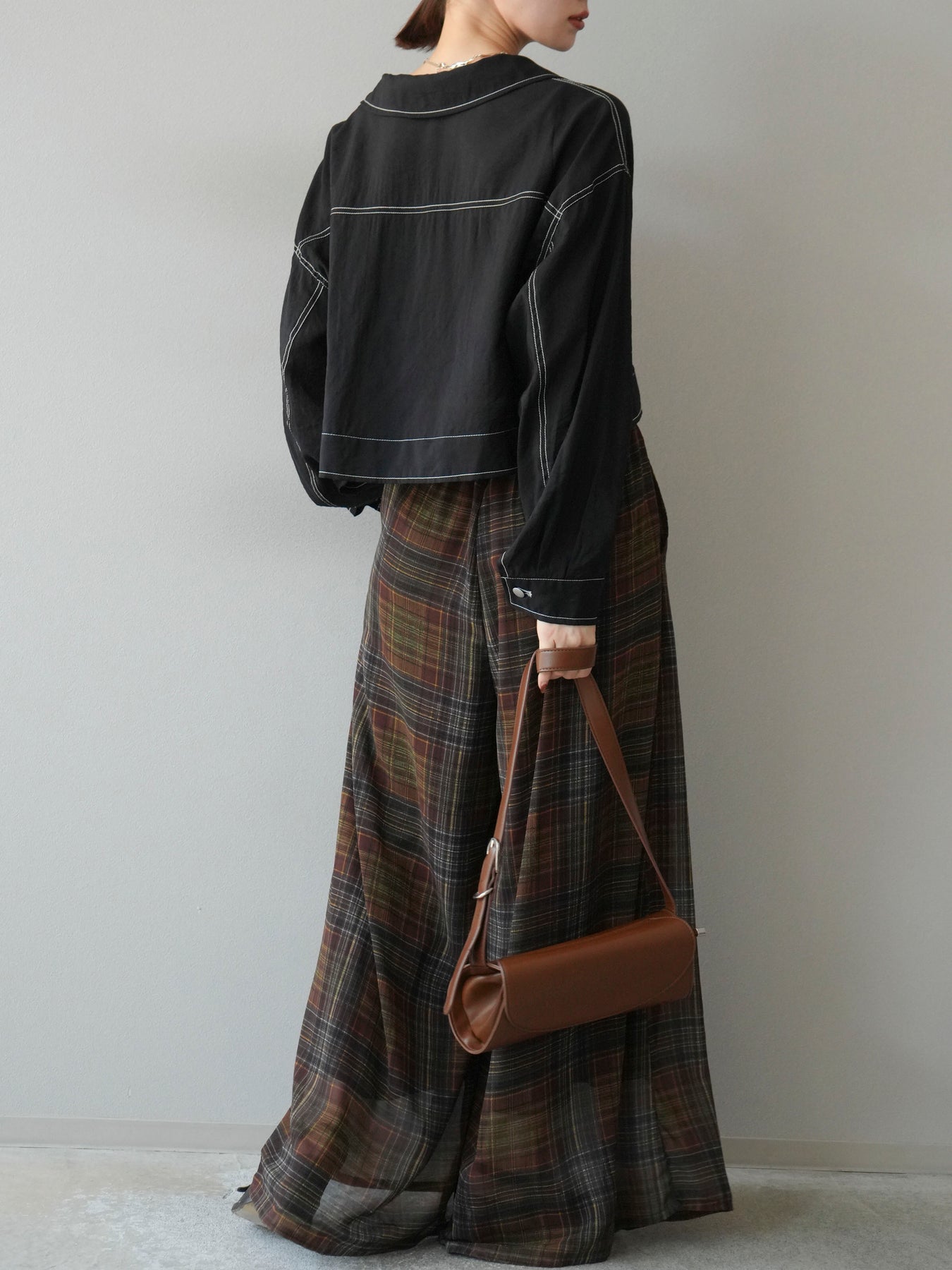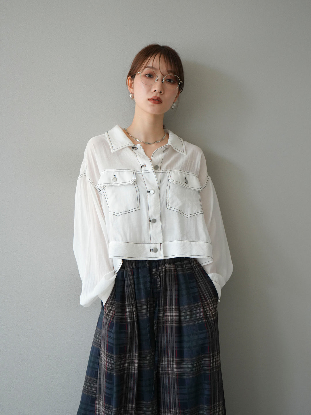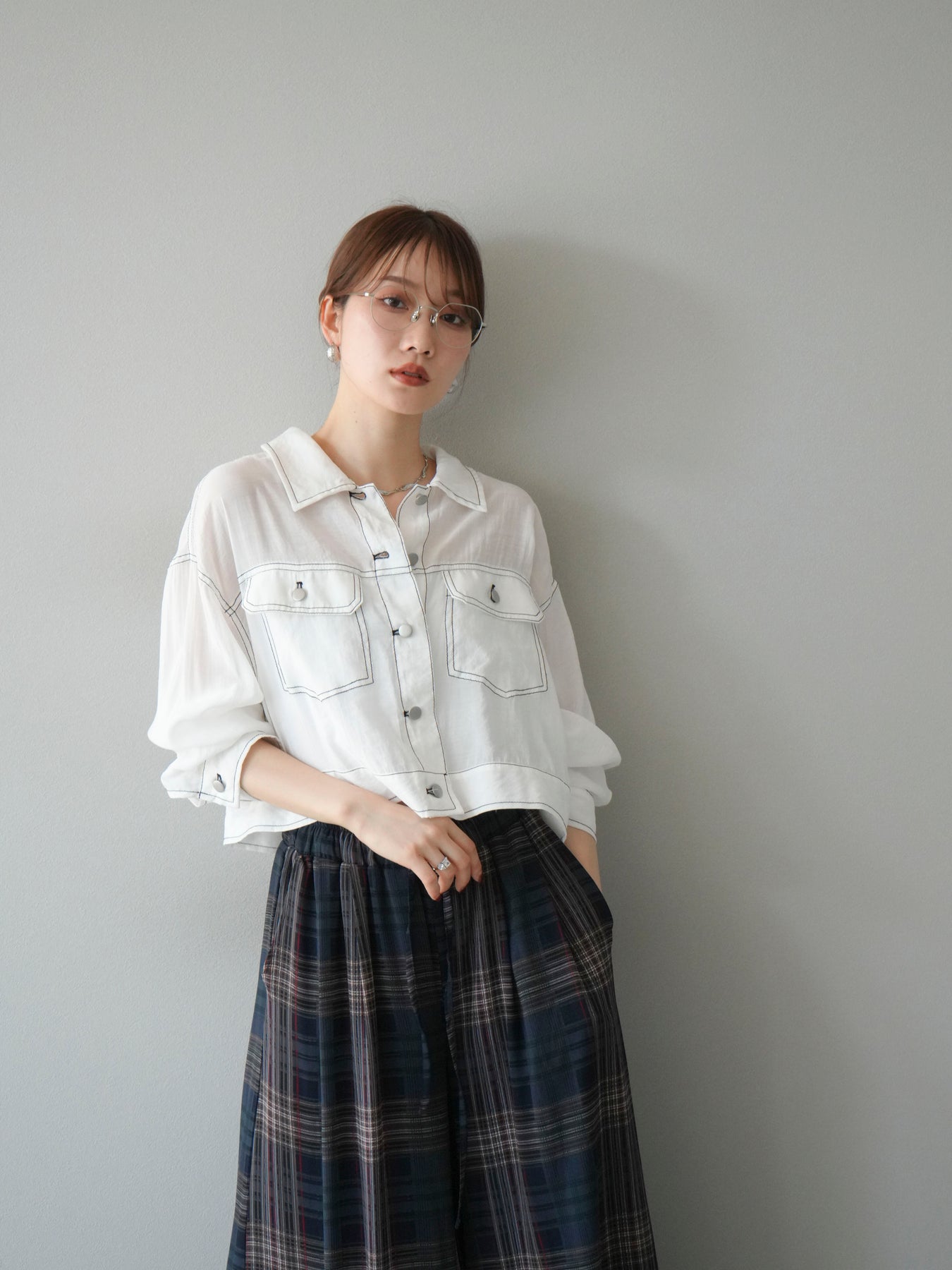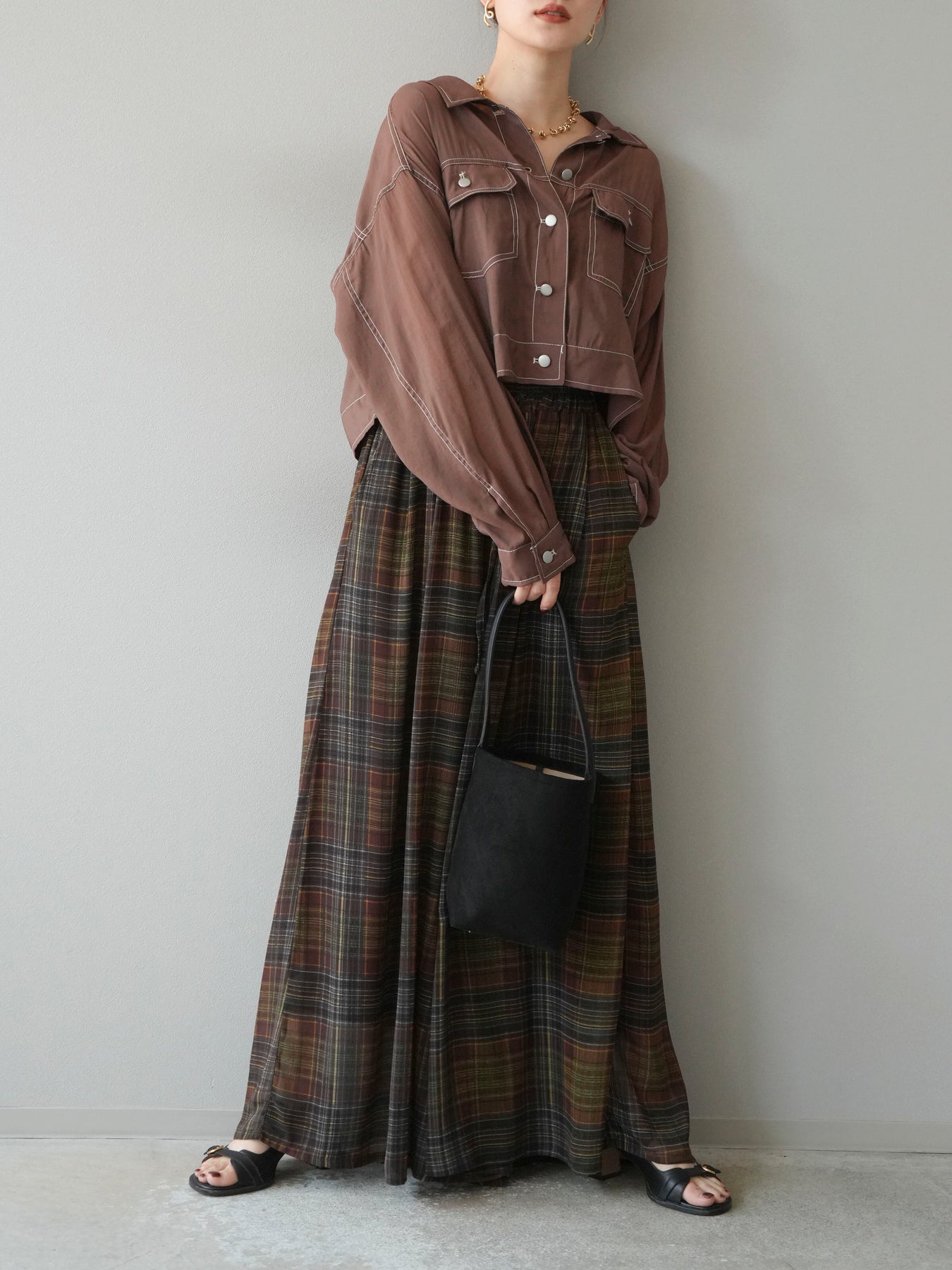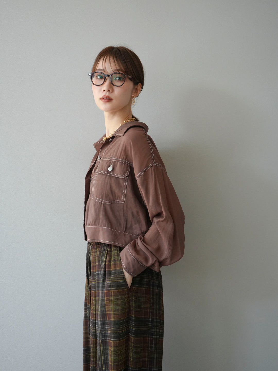 [SET]ステッチシアーショートジャケット+シアーチェックバギーパンツ(2set)