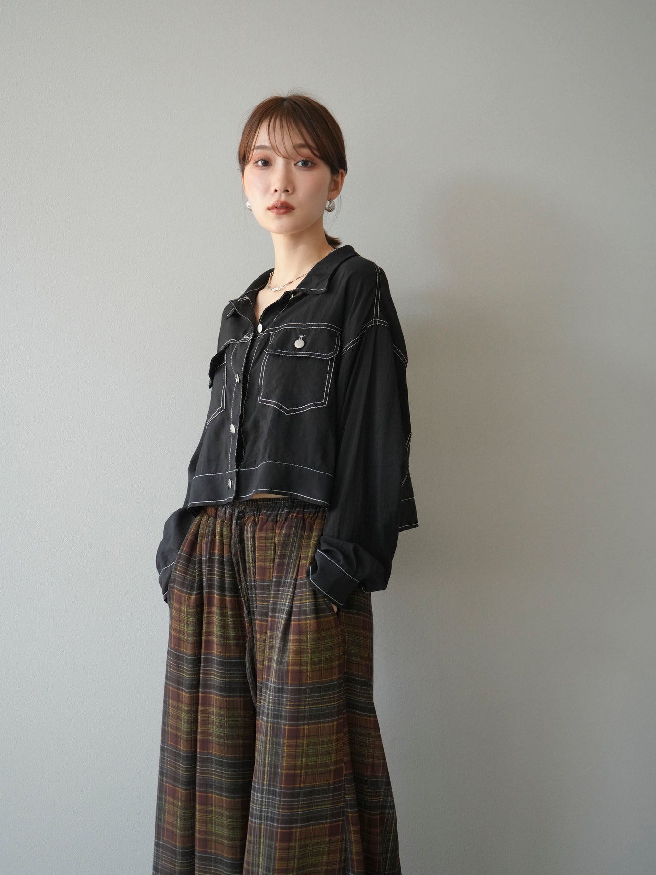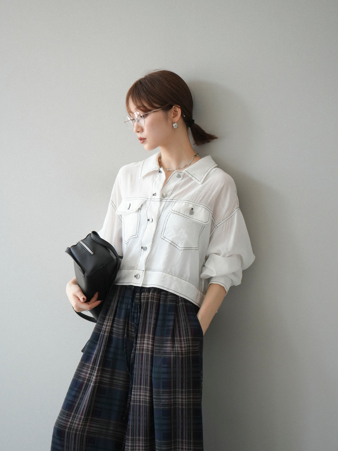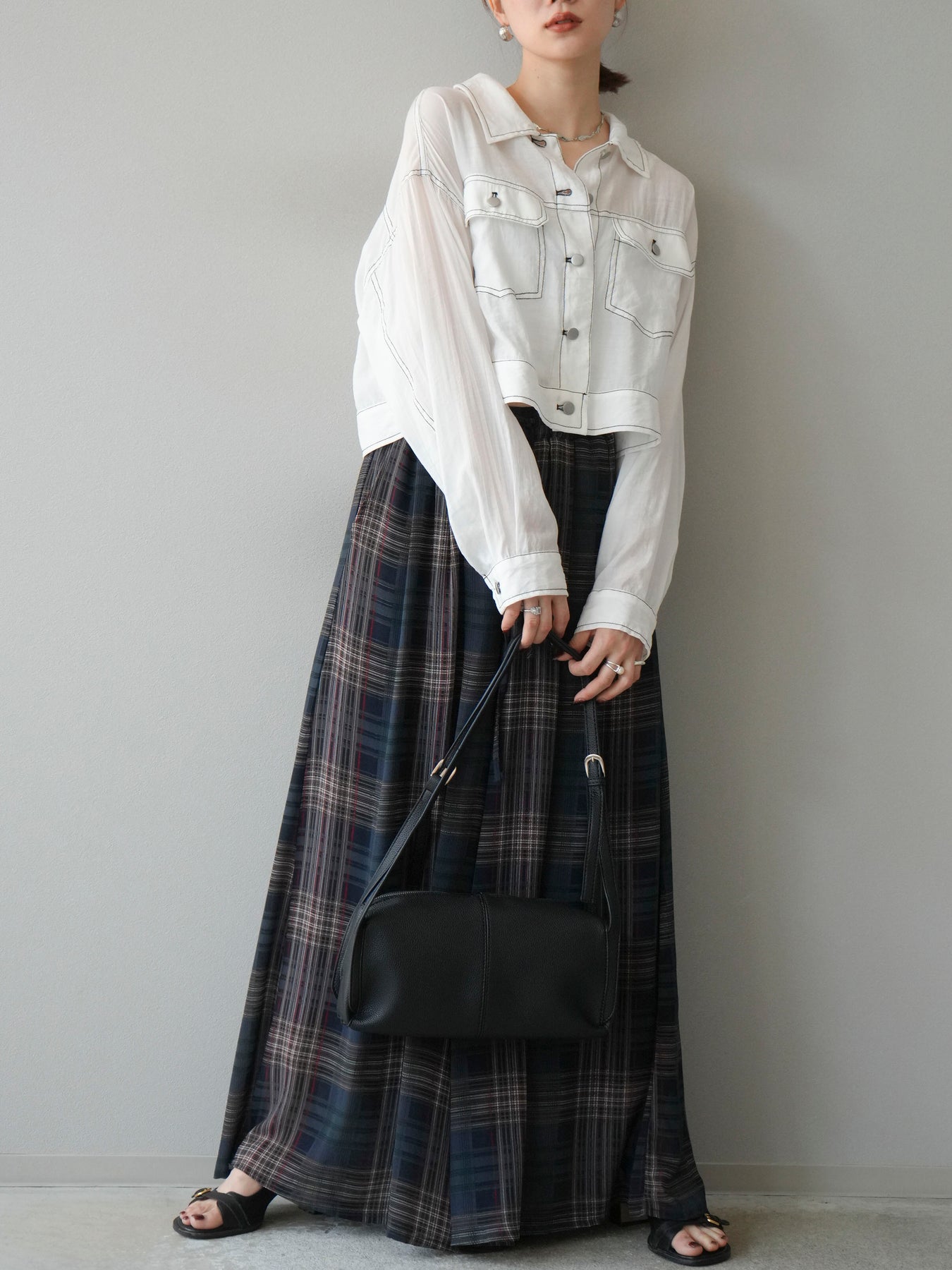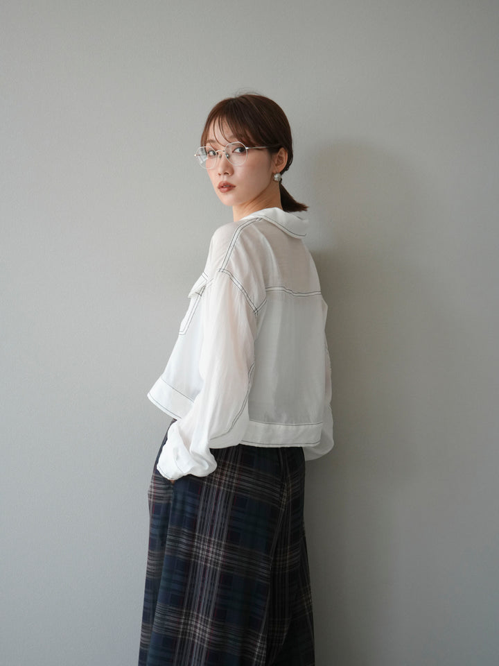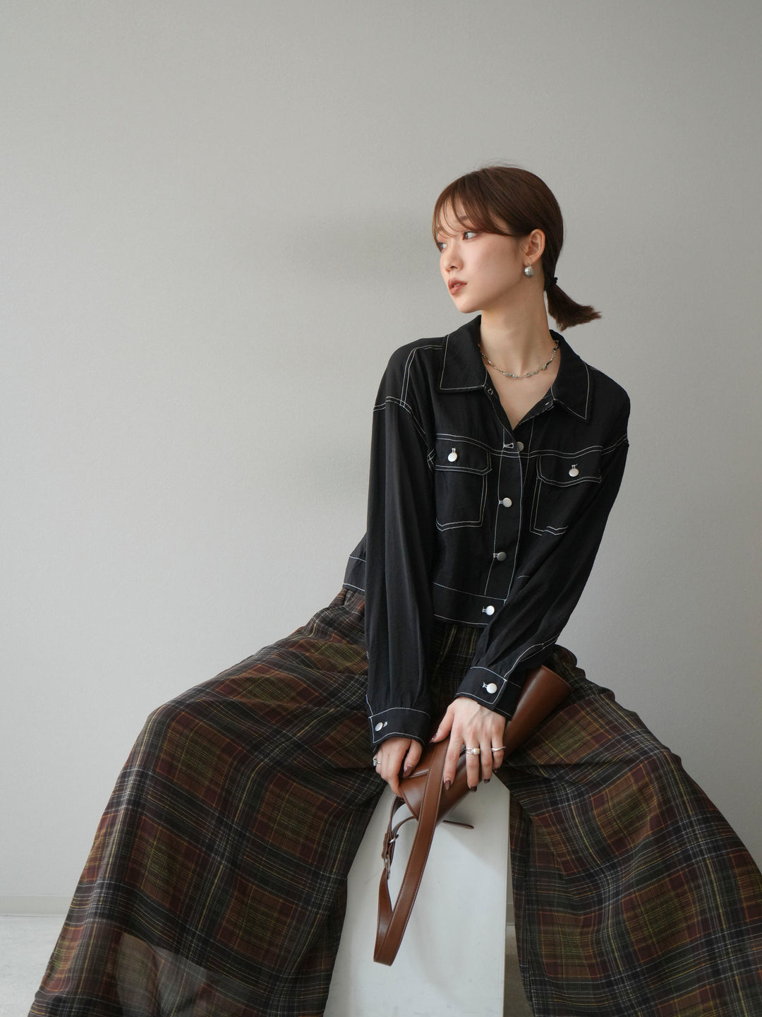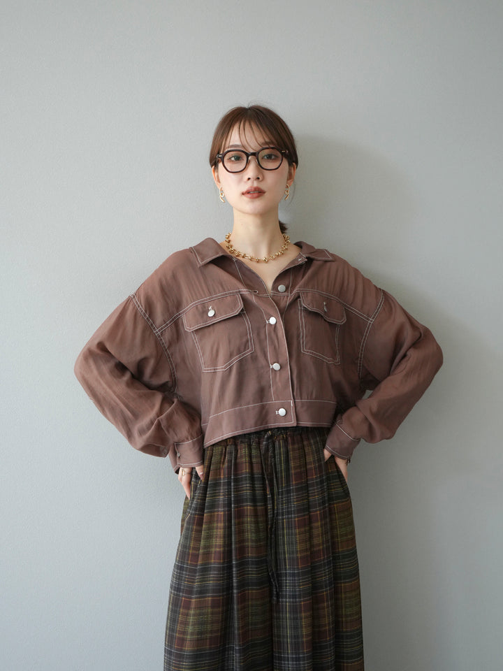 [SET]ステッチシアーショートジャケット+シアーチェックバギーパンツ(2set)