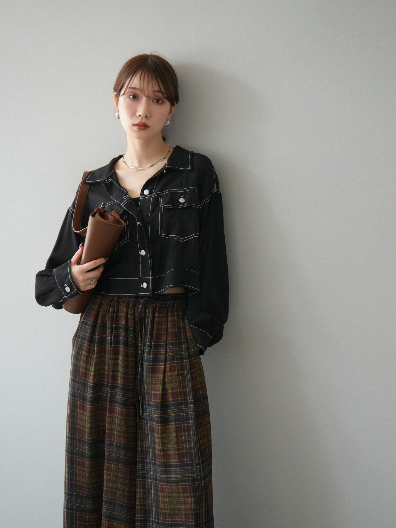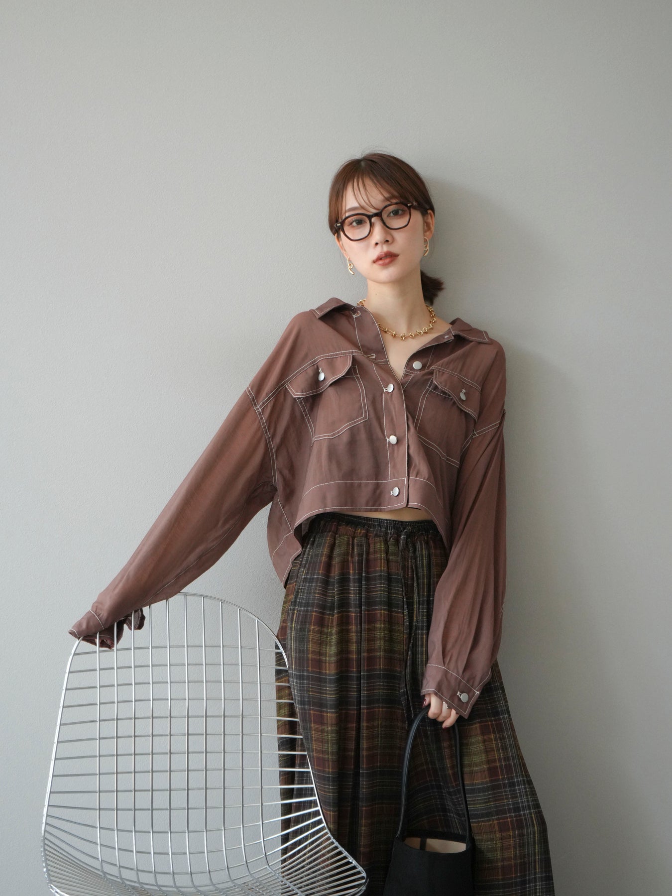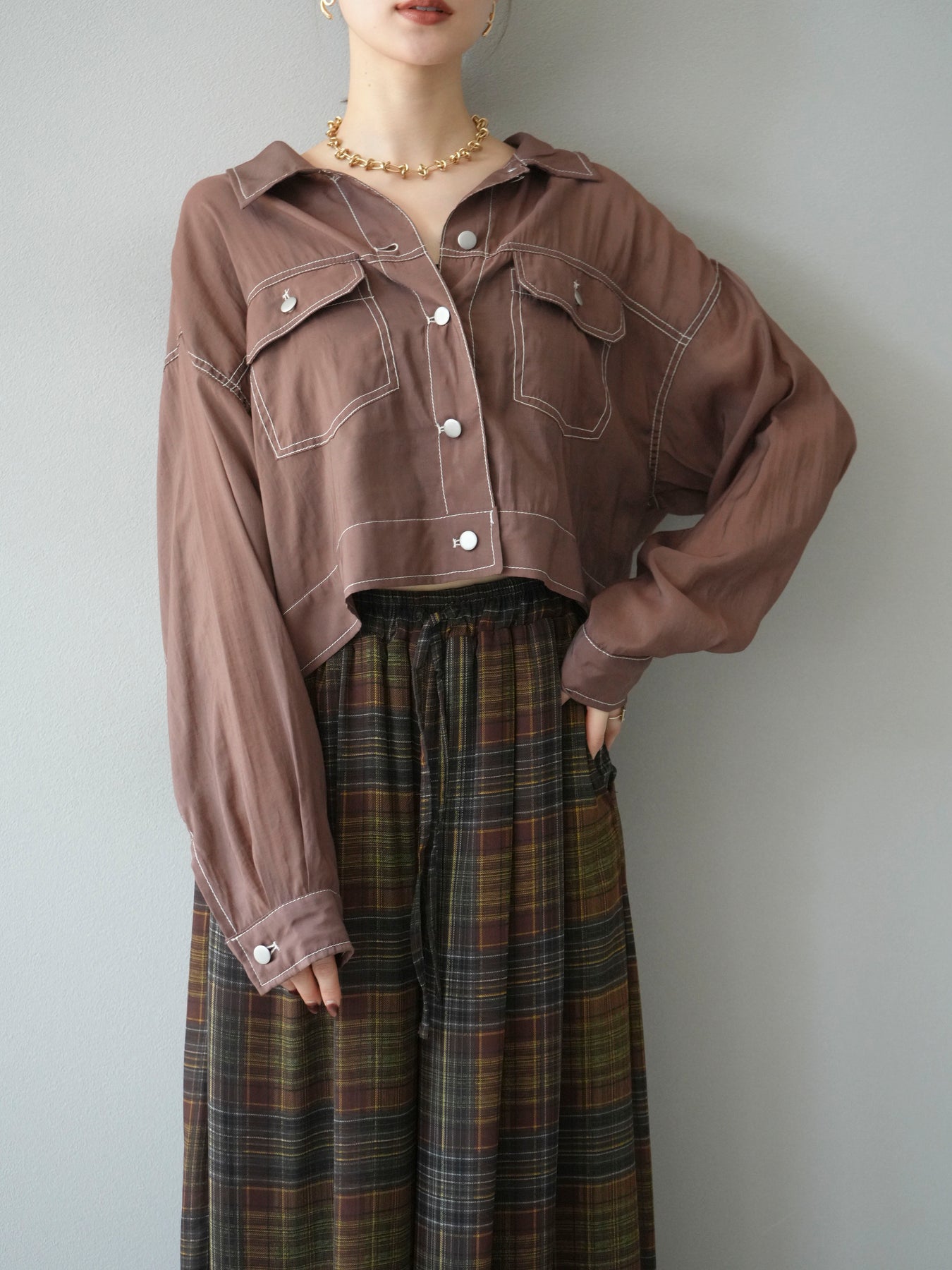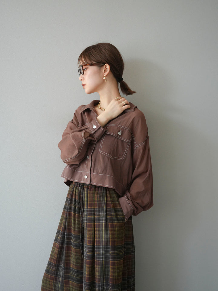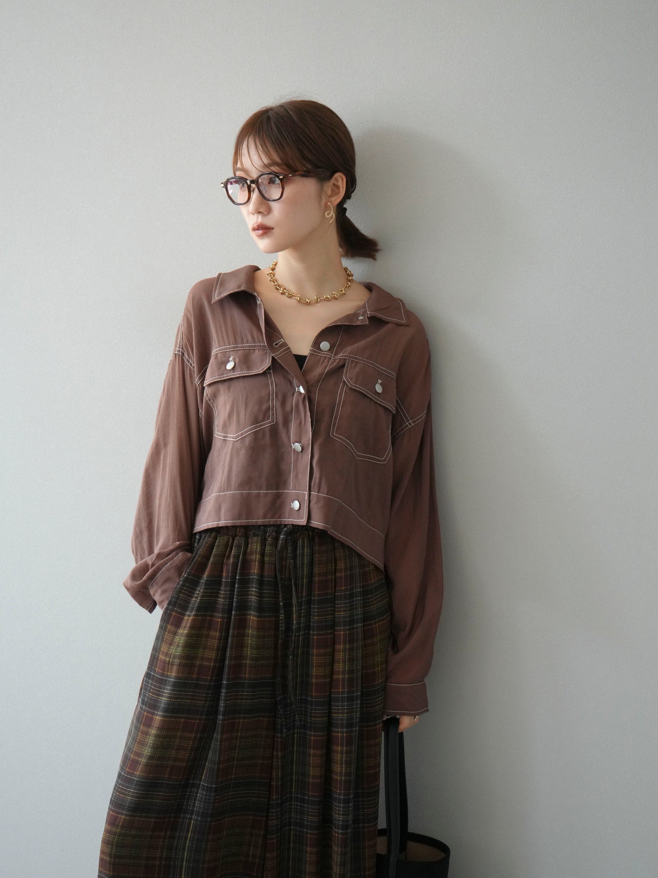 [SET]ステッチシアーショートジャケット+シアーチェックバギーパンツ(2set)