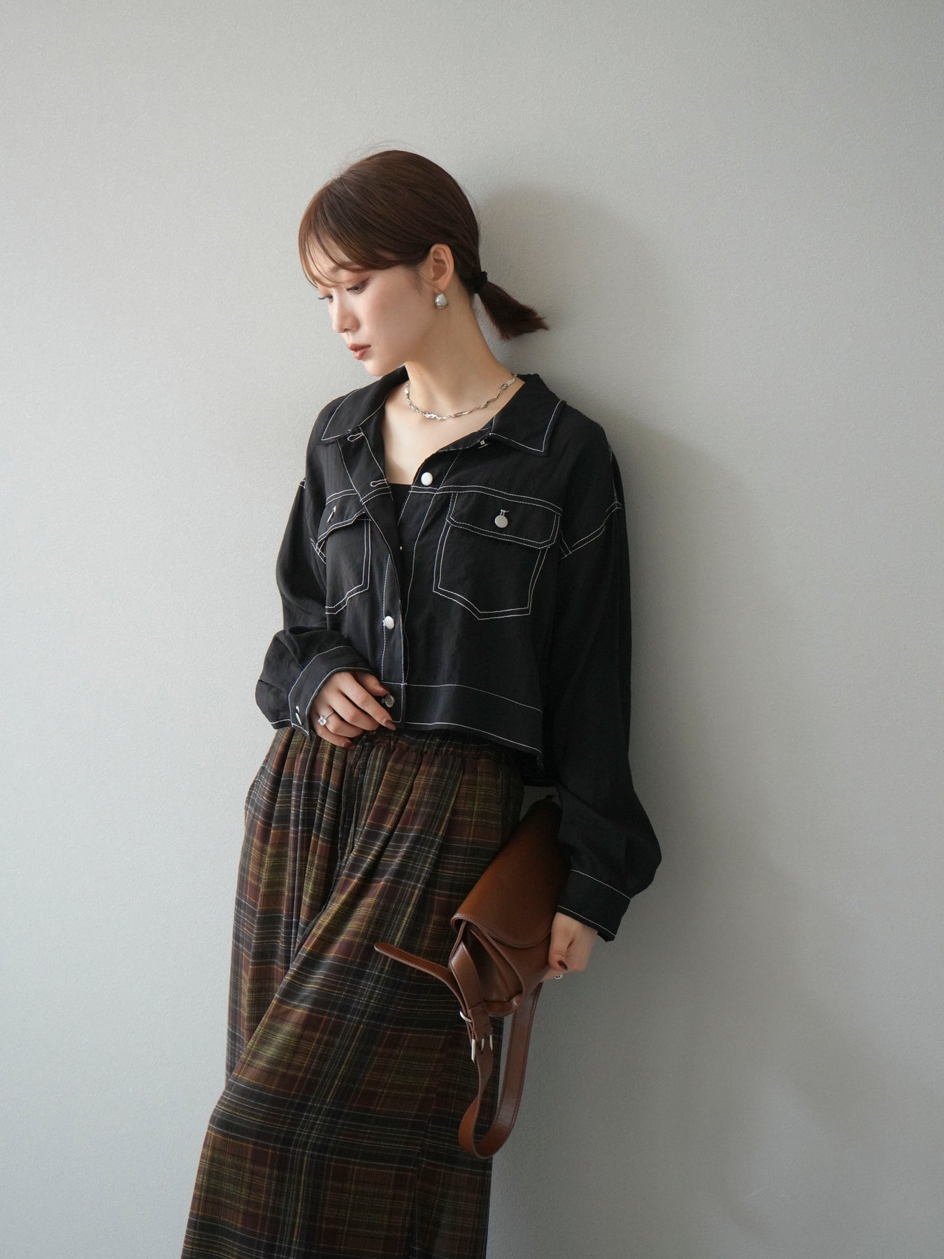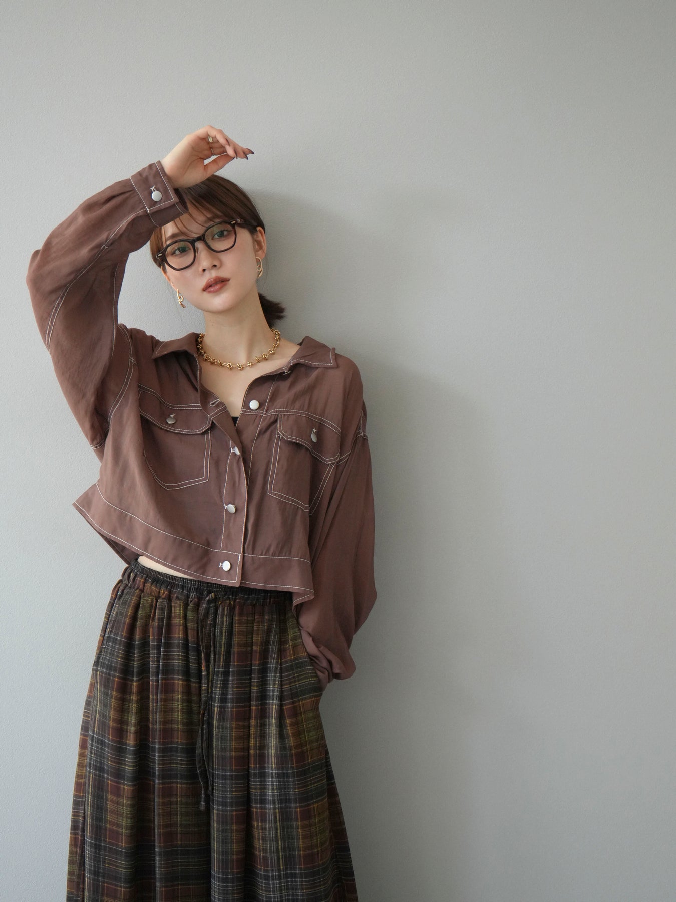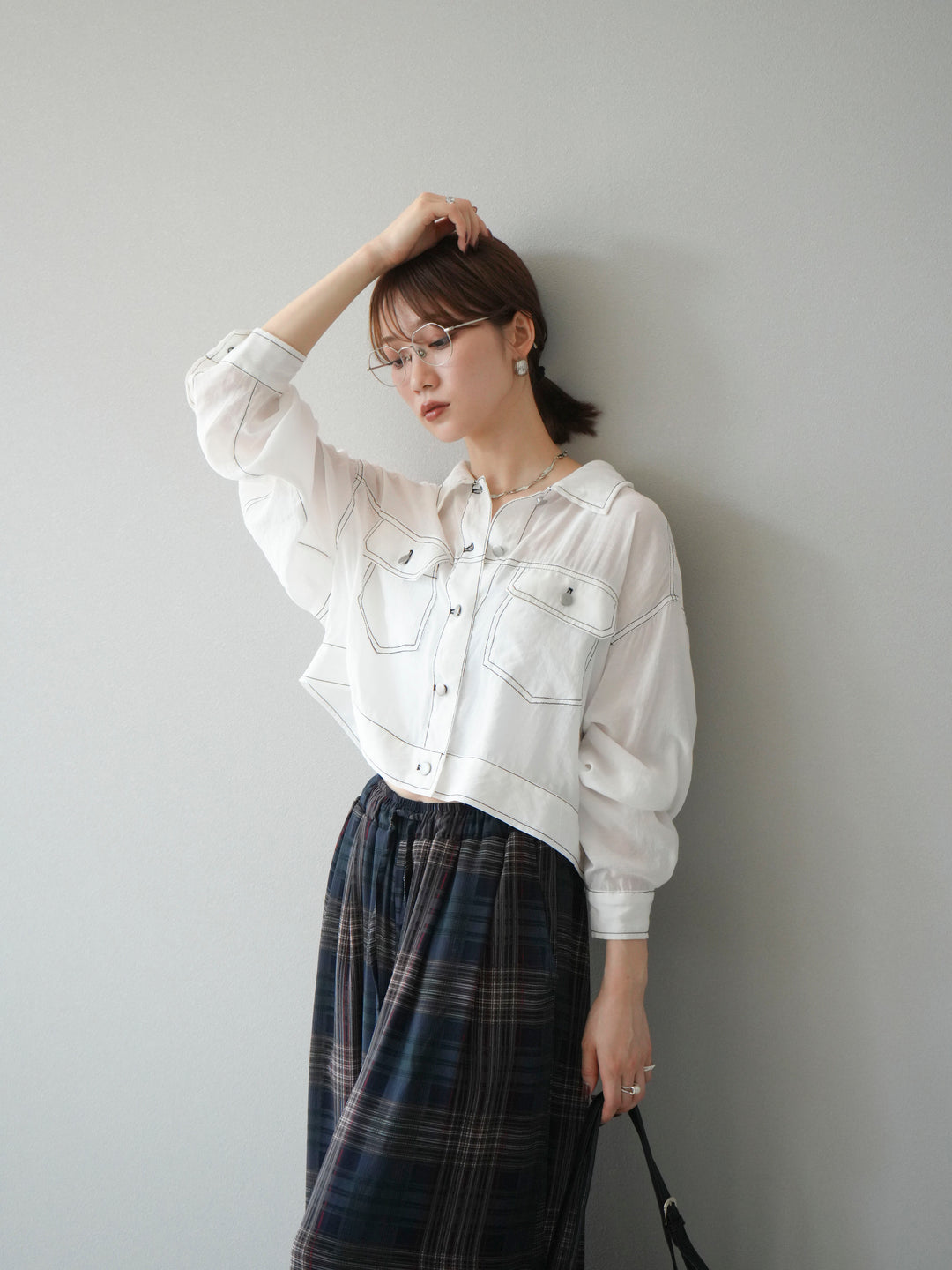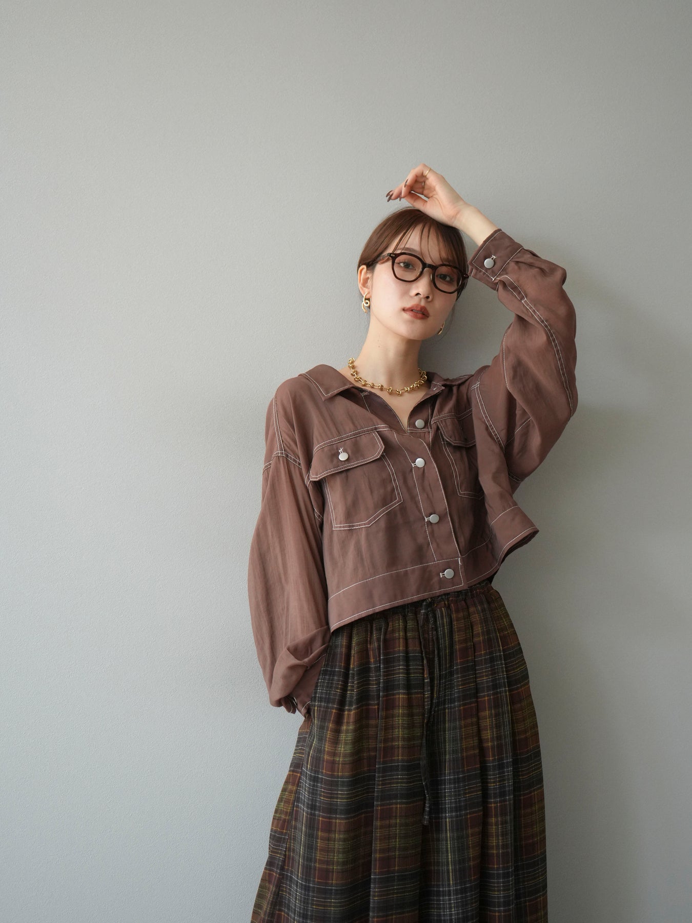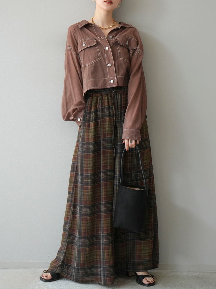 [SET]ステッチシアーショートジャケット+シアーチェックバギーパンツ(2set)