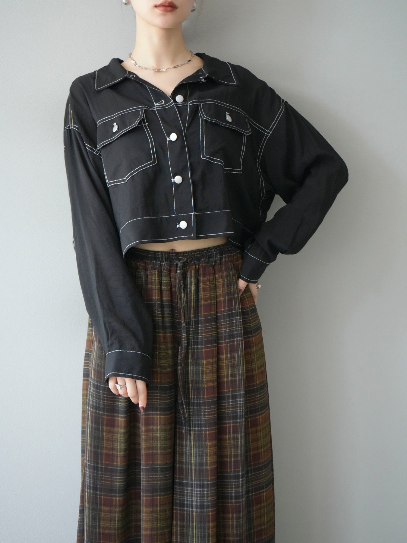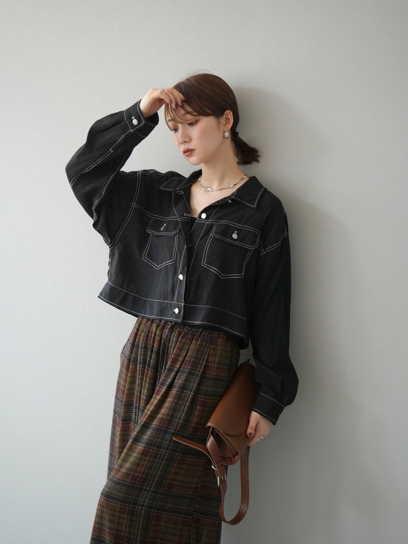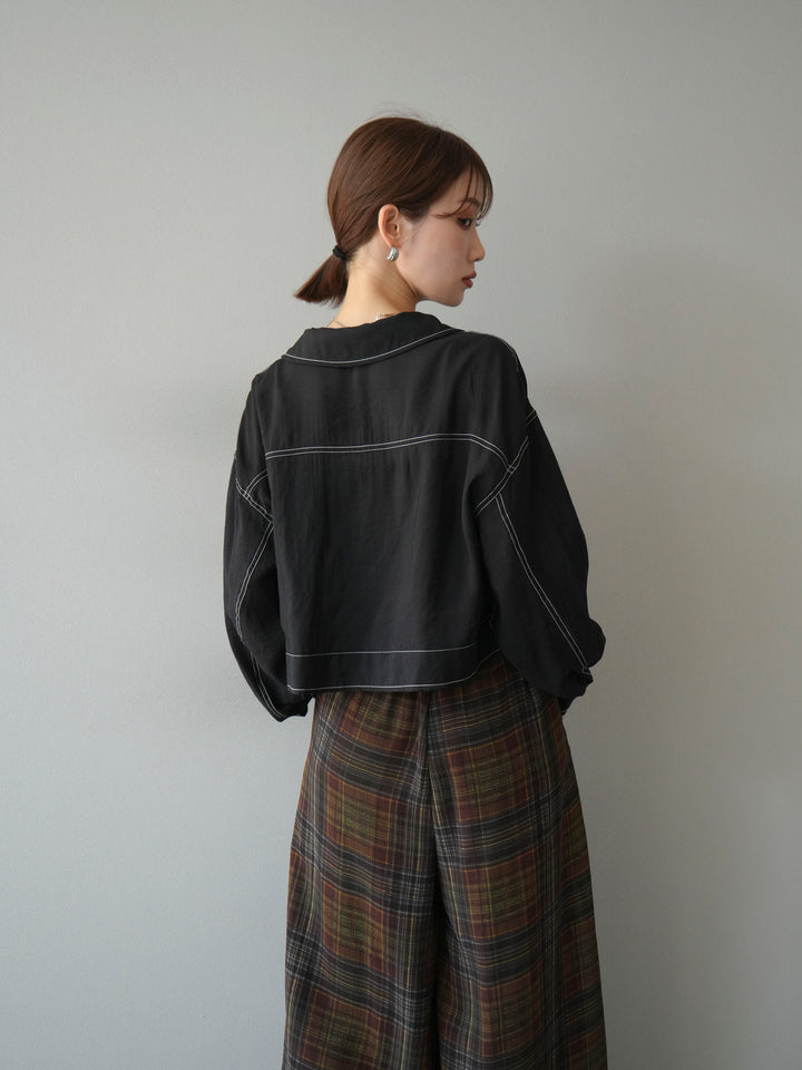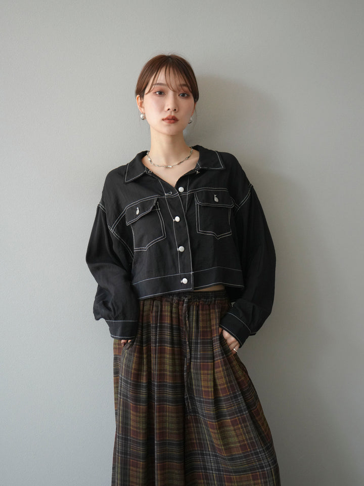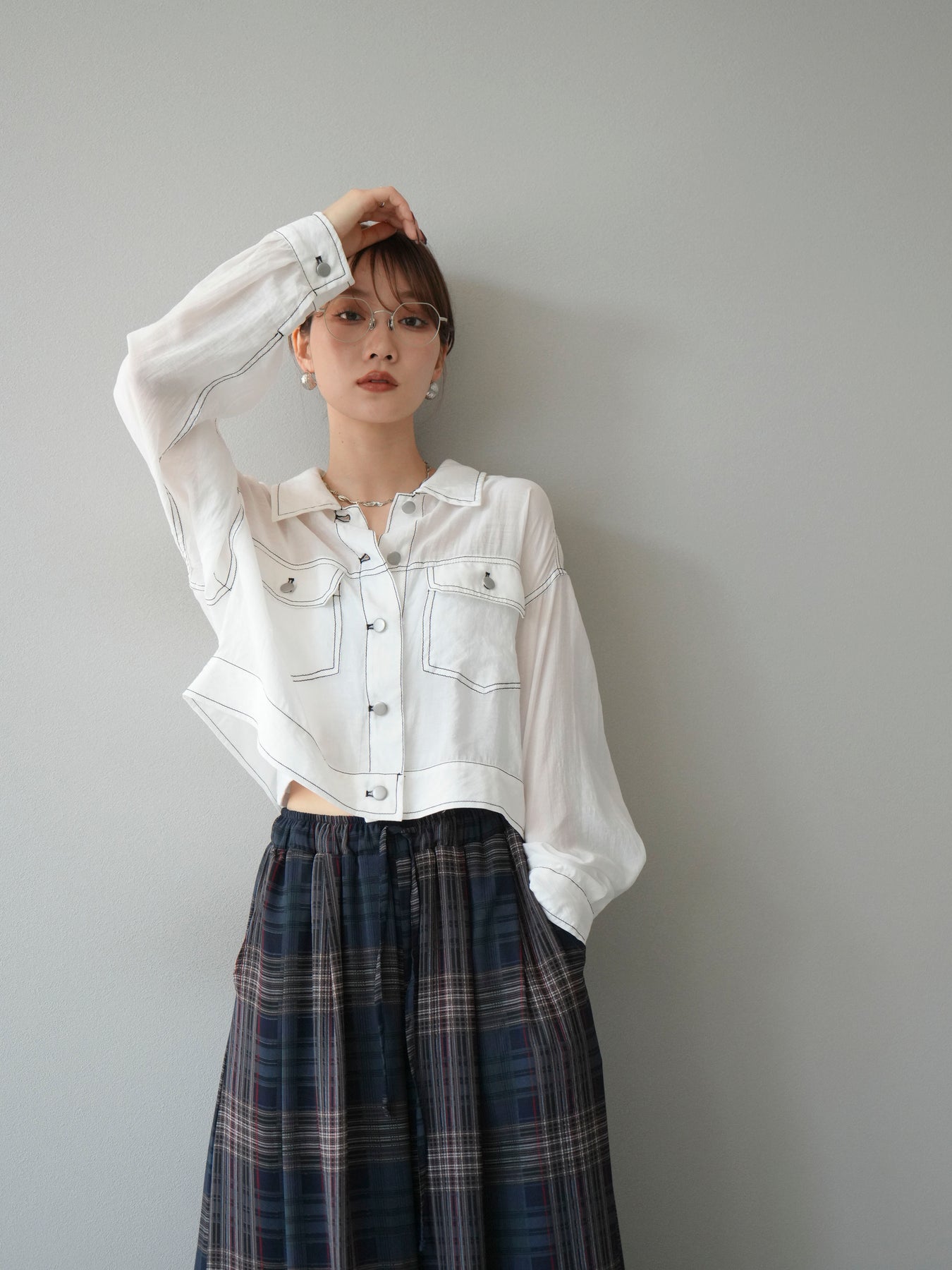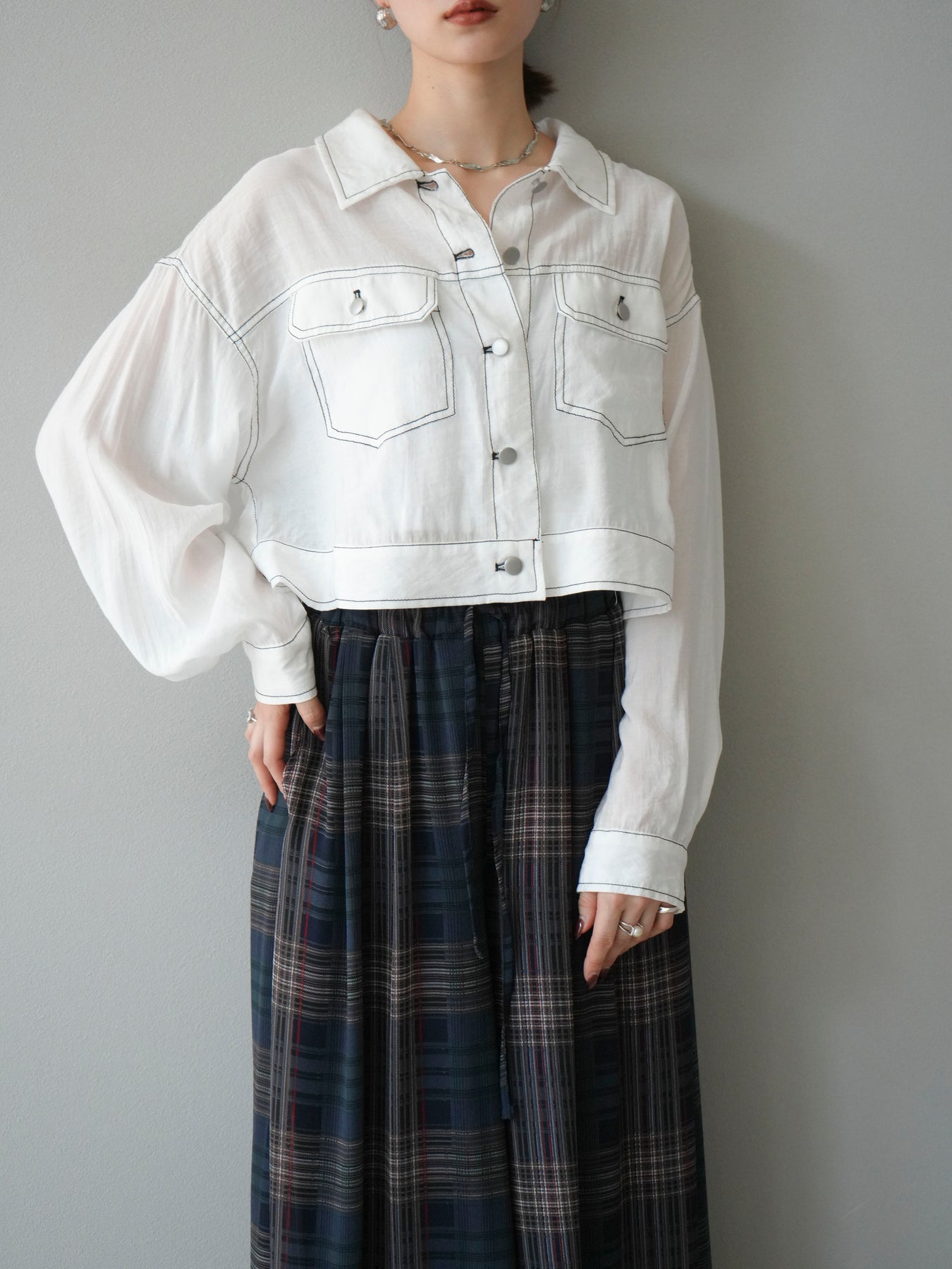 [SET]ステッチシアーショートジャケット+シアーチェックバギーパンツ(2set)