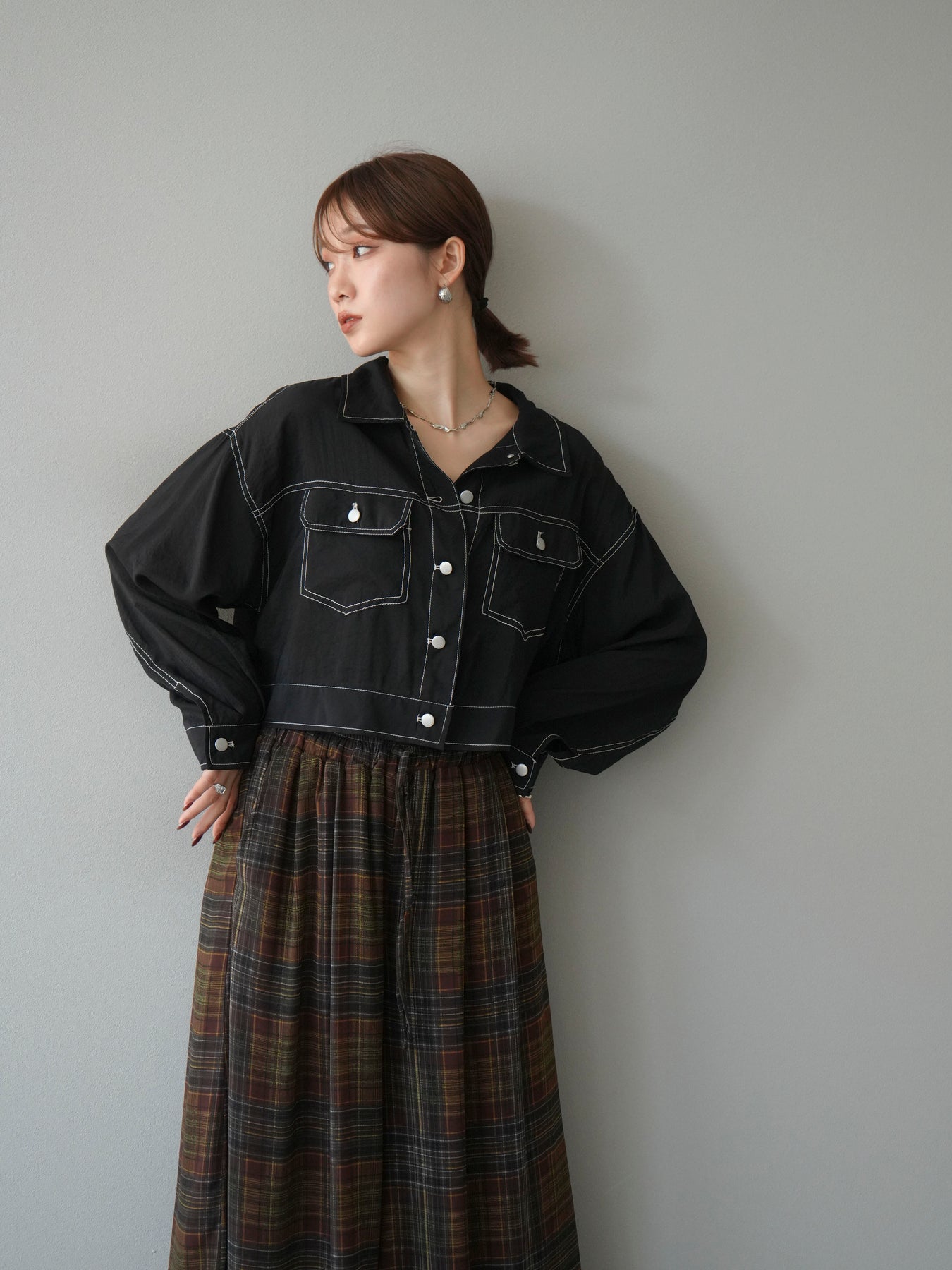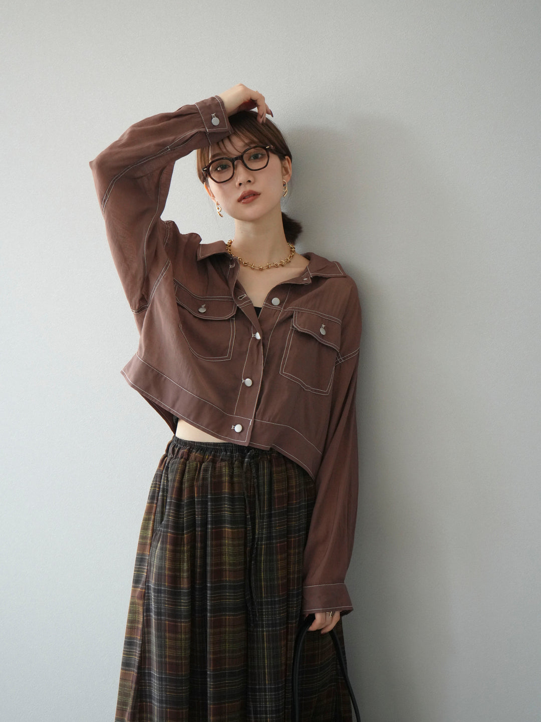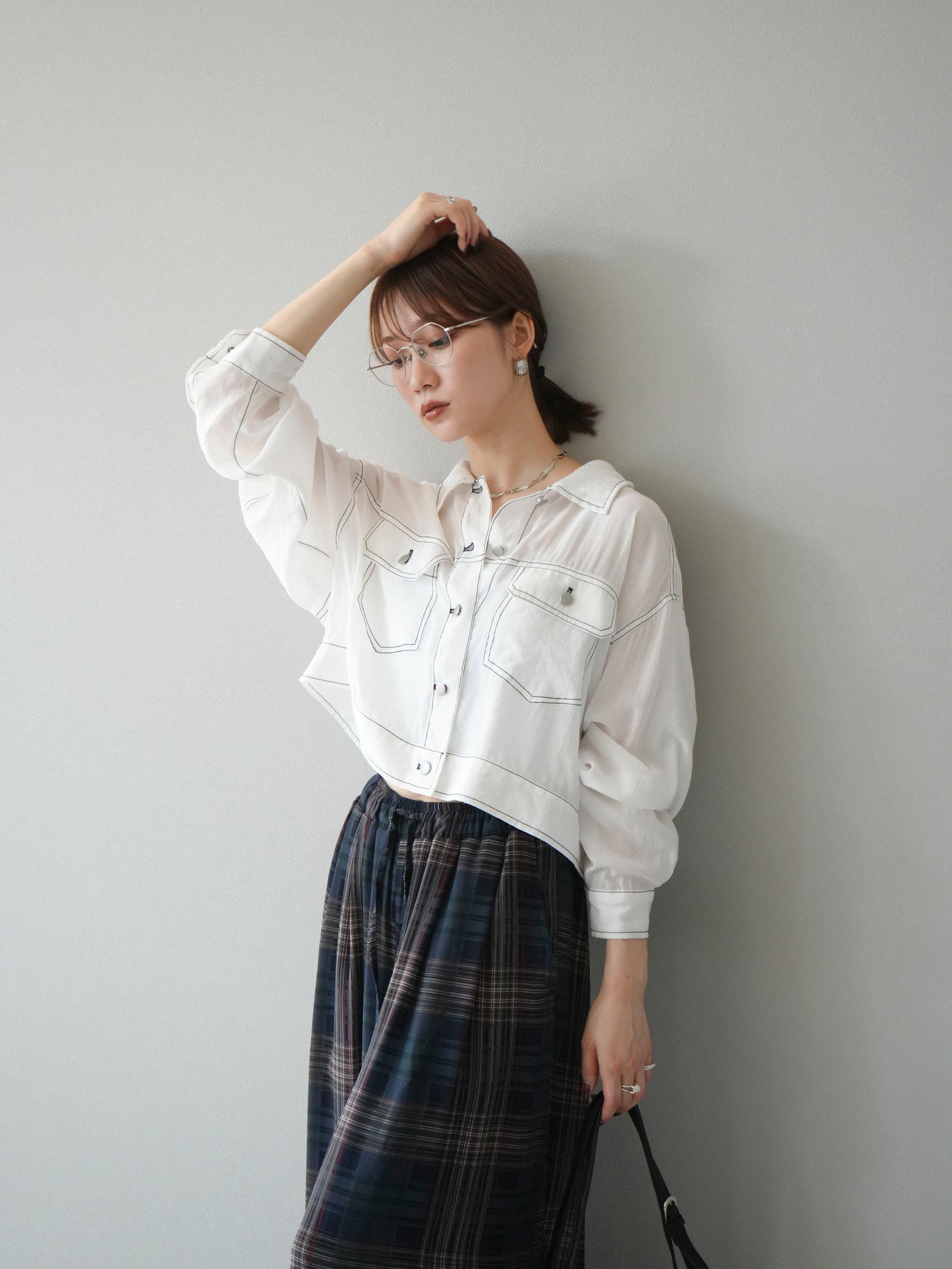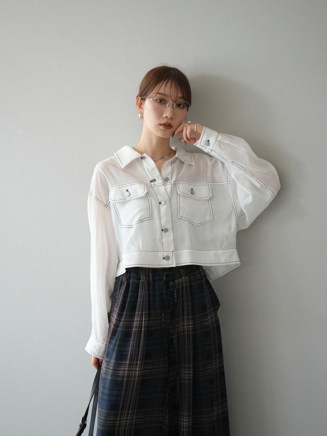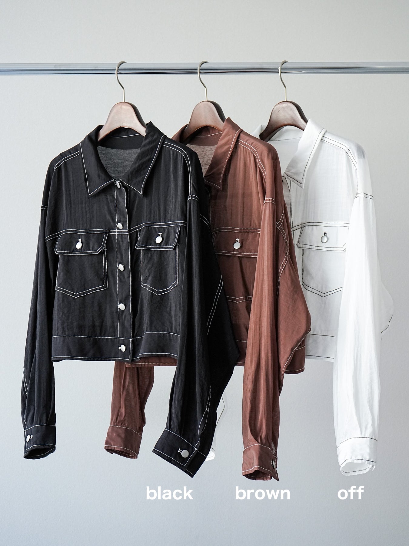 透け感のある軽やかな素材に、配色ステッチがアクセントになった旬のショート丈ジャケット。羽織るだけでコーデに立体感と抜け感をプラスしてくれるアイテムです。コンパクトな丈感は、ハイウエストボトムやワンピースとの相性抜群。春夏はタンクやキャミと合わせて涼しげに、秋口には長袖インナーとのレイヤードもおすすめ。軽い着心地で持ち運びやすく、冷房対策や日よけにも活躍します。 ※ボトムス、キャミソール(インナー)以外の商品は一律でインナーは付属していません。
