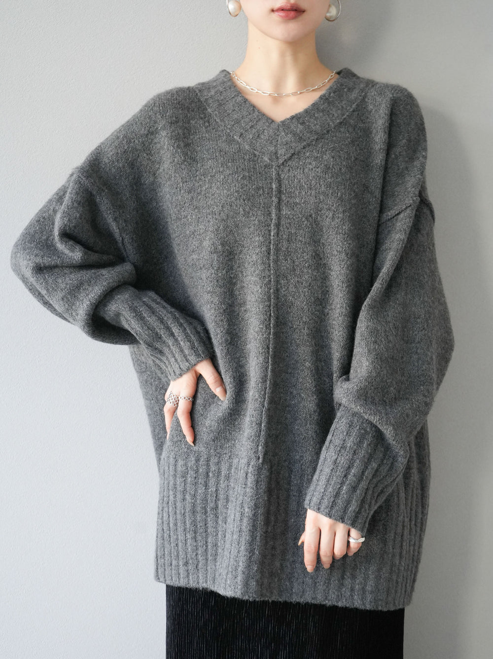 柔らかな質感とボリューム感のあるVネックニットプルオーバー。ゆったりとしたシルエットがリラックスした印象を演出し、デイリーからお出かけまで幅広く活躍。トレンドのカラー展開で秋冬コーデに最適です。 ※ボトムス、キャミソール(インナー)以外の商品は一律でインナーは付属していません。