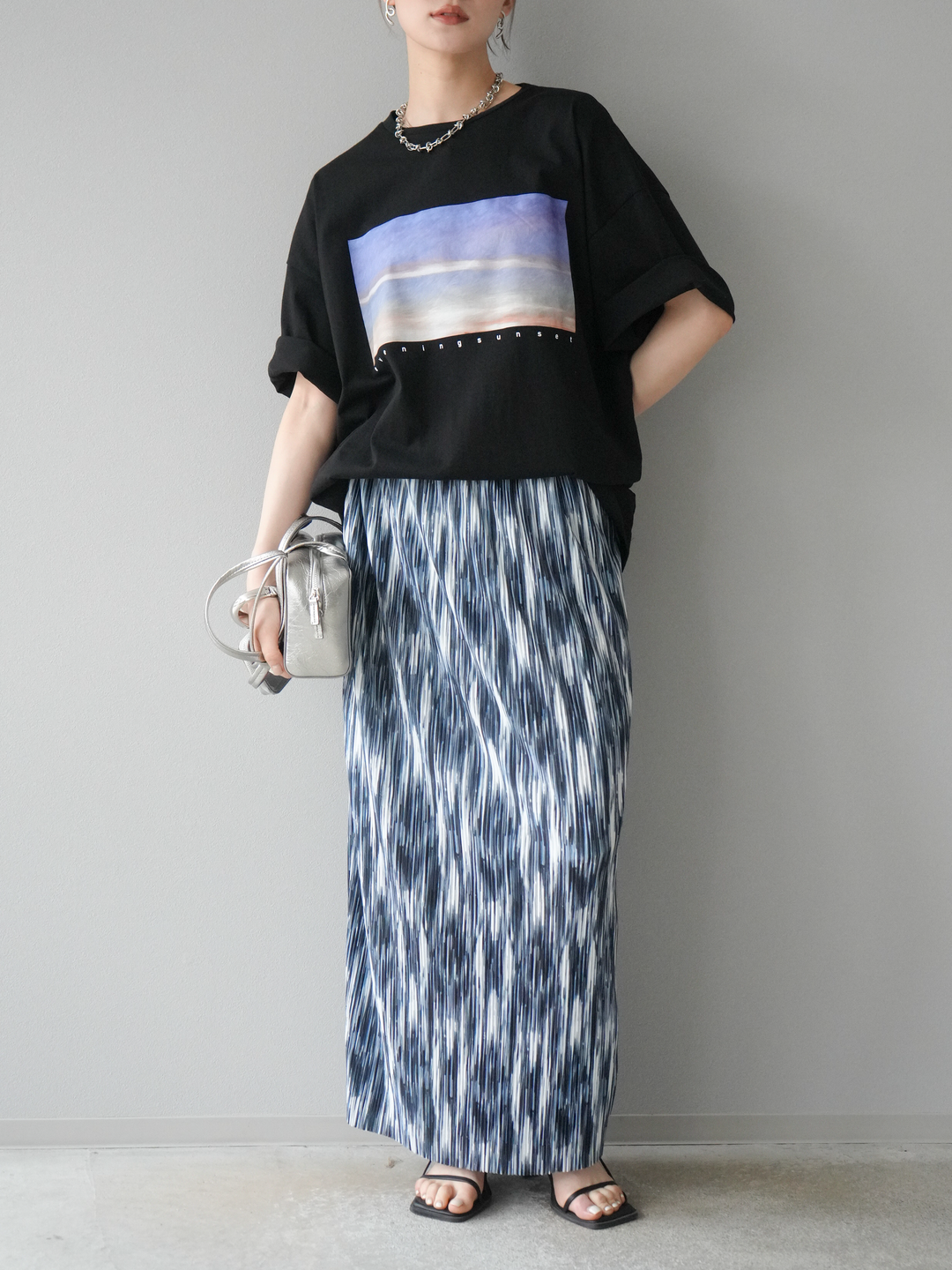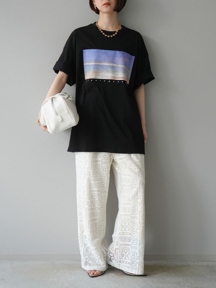 印象的なグラフィックが目を惹く、リラックス感あるビッグTシャツ。ゆったりとしたシルエットがこなれ感を演出し、トレンドのストリートライクなスタイルにマッチ。ヒップまで隠れる丈感で、体型カバーも叶います。モノトーンボトムや柄パンツとも相性◎な一枚です。 ※ボトムス、キャミソール(インナー)以外の商品は一律でインナーは付属していません