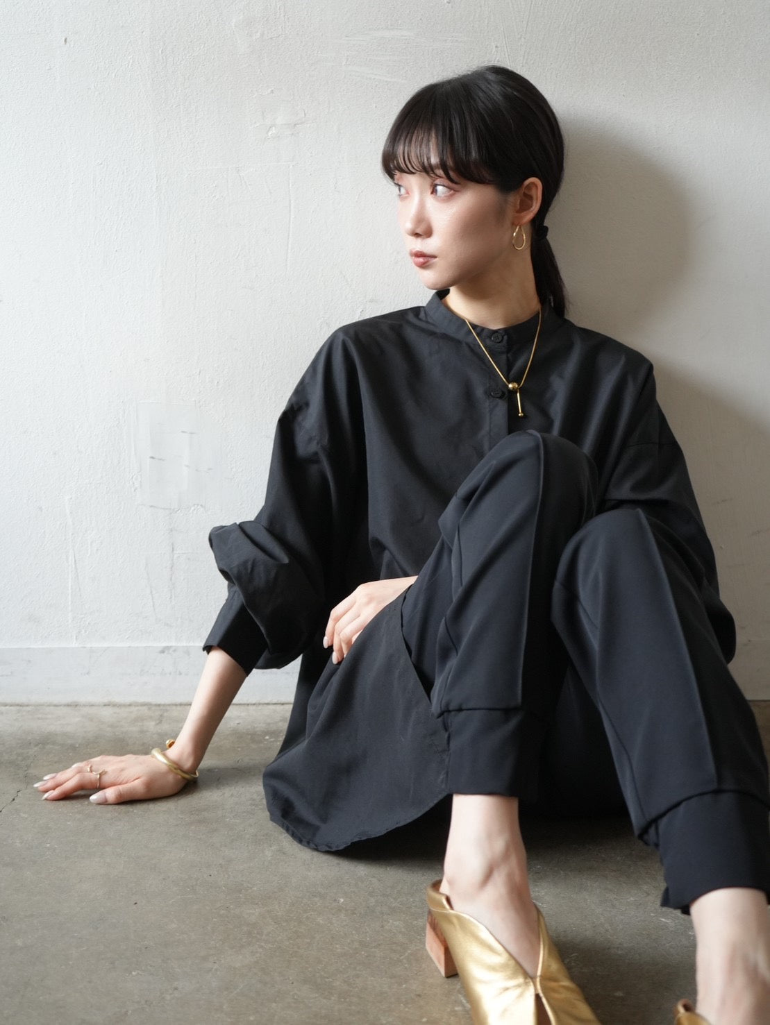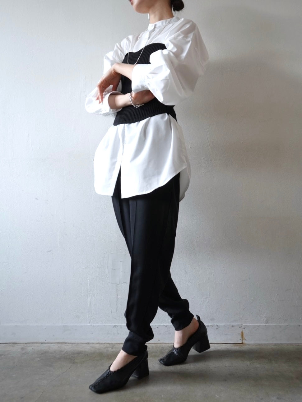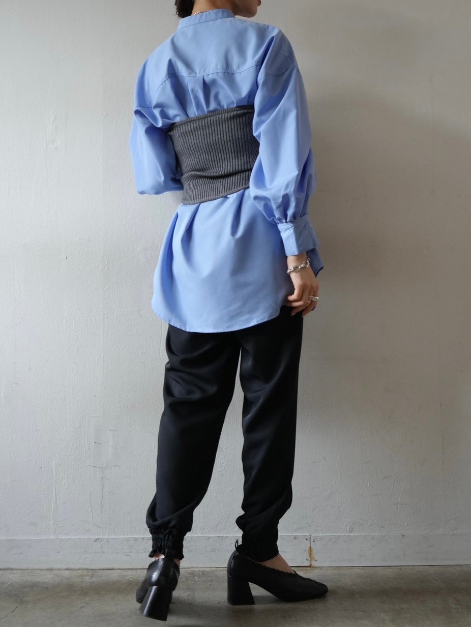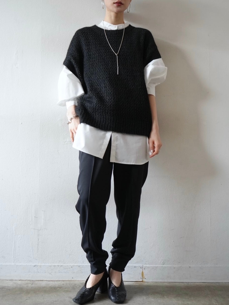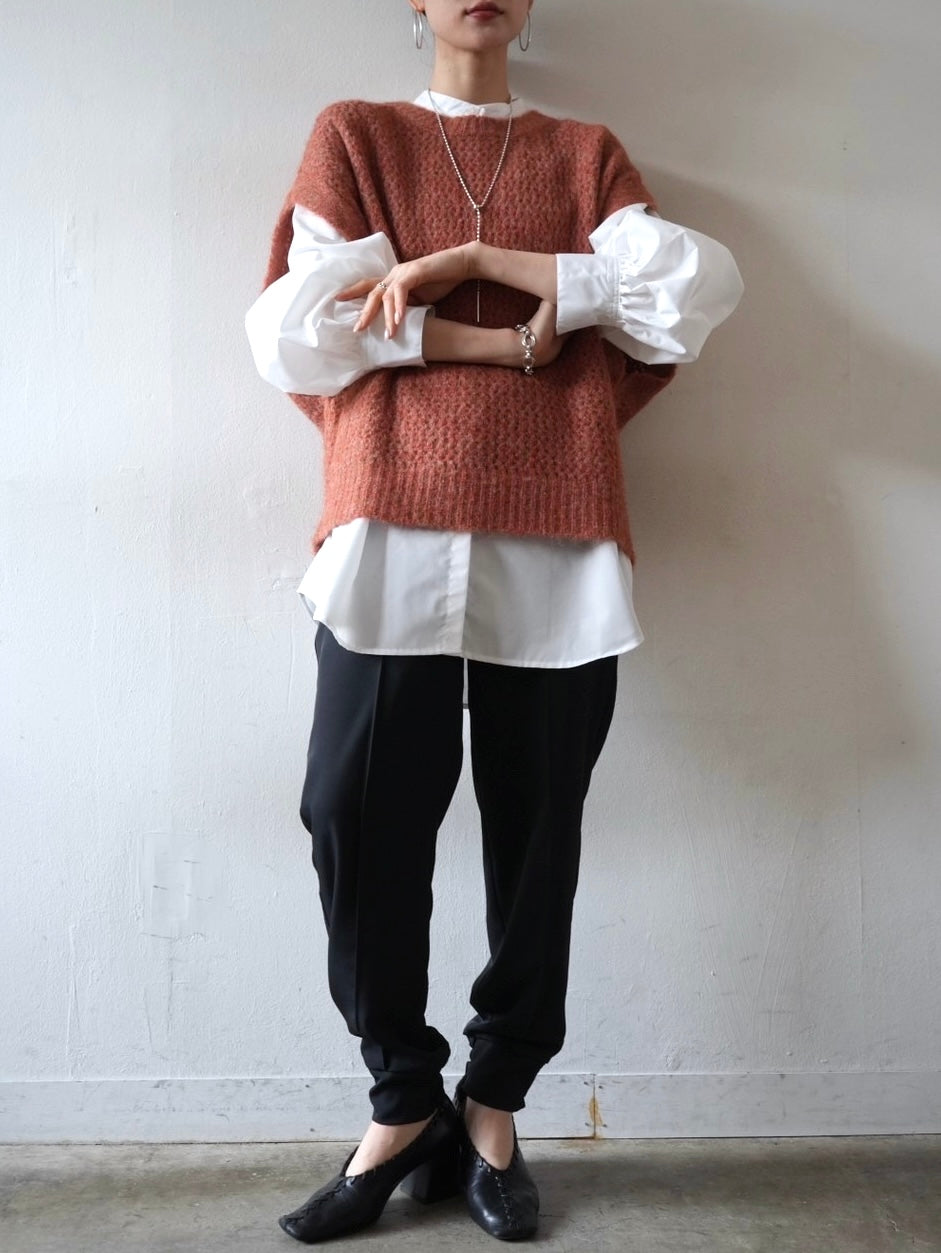 ゆとり加減が絶妙のジョガーパンツは、適度なハリ感と厚みのあるシワになりにくい素材感です。センターシーム入りで太もも部分、足のライン全体がスッキリと見えます。裾の後ろ側はシャーリングゴムを施したトレンド感のあるデザイン。ゆったりとしたヒップ周りに加え、ウエストはバックゴム仕様で動きやすく、エッジの効いたスタイリングを楽しめる1本です。
