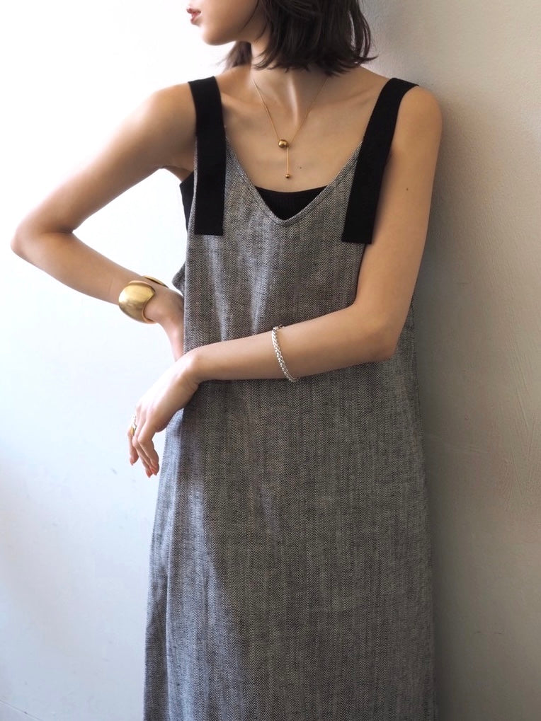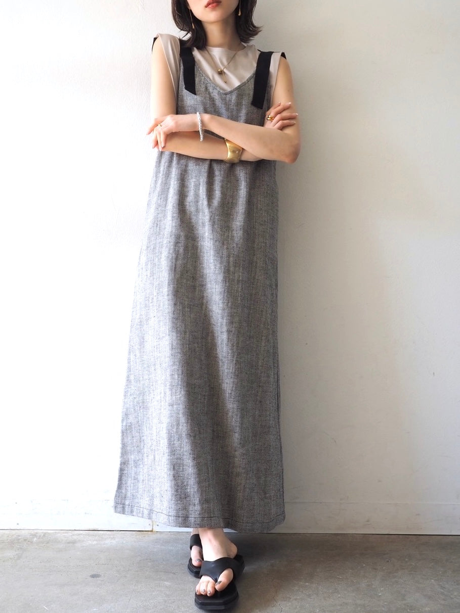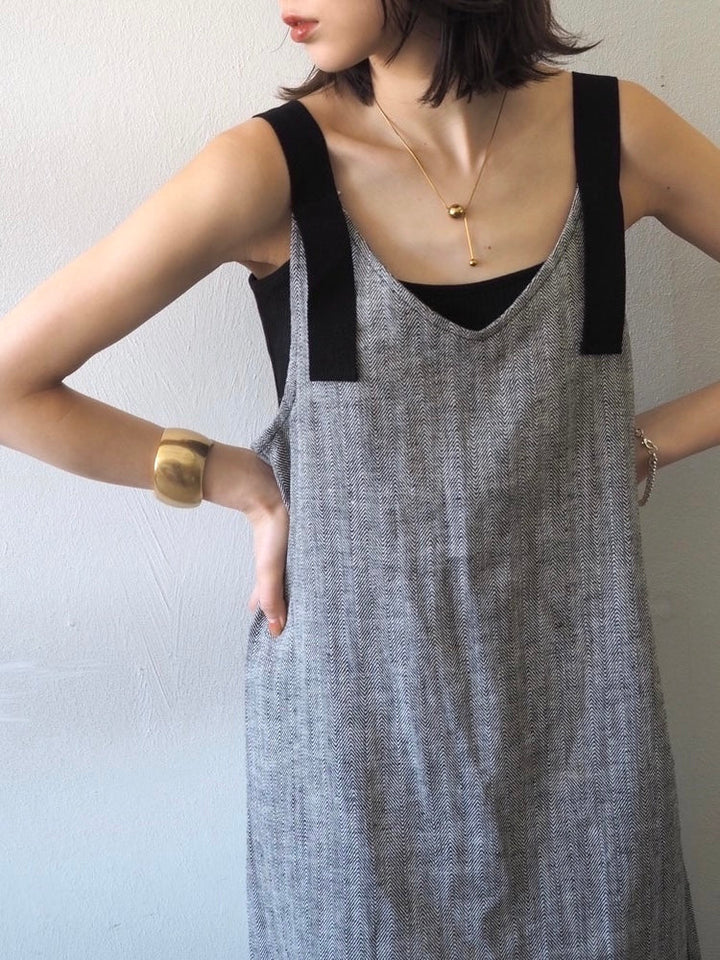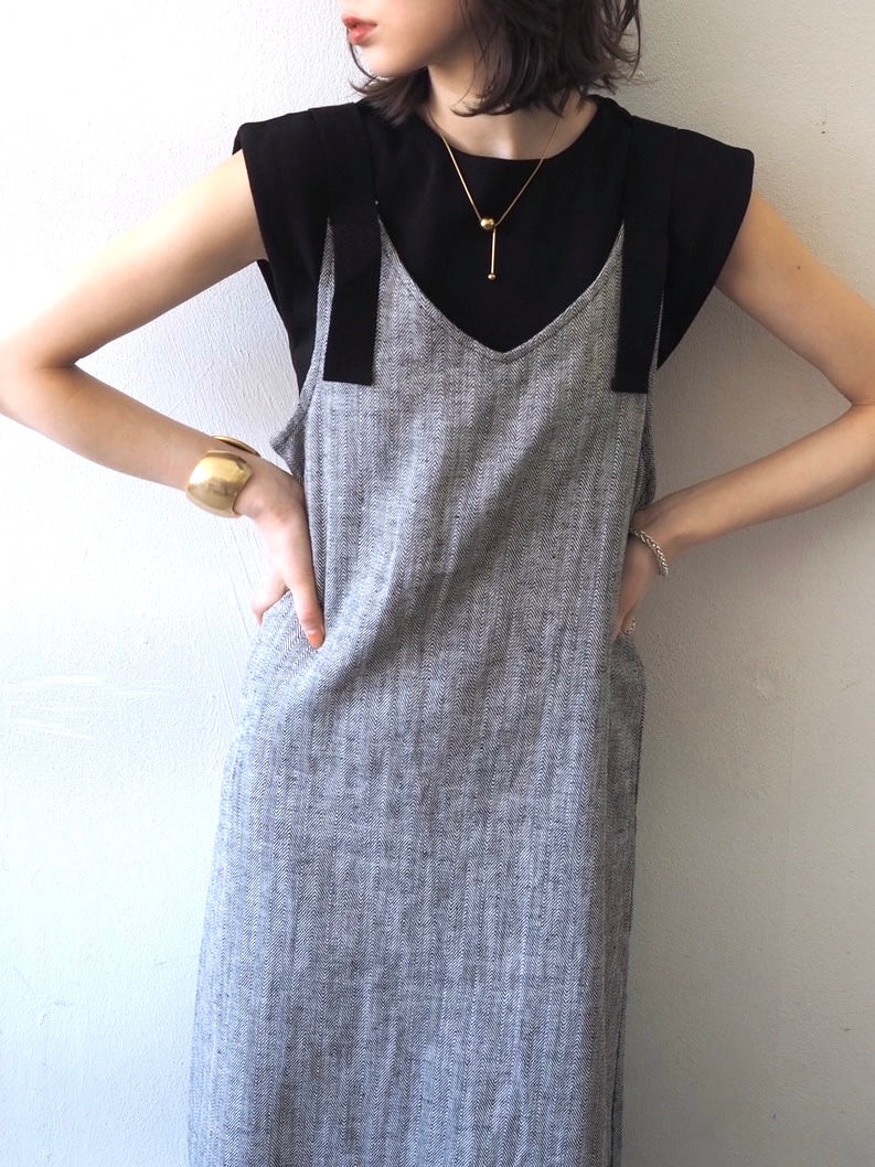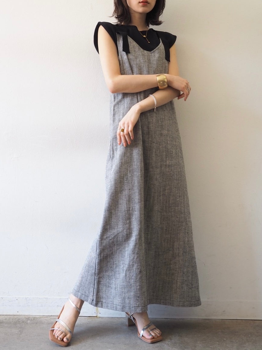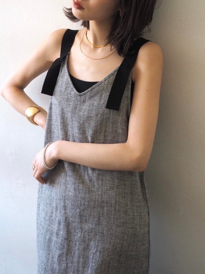 [予約]ヘリンボーンキャミワンピース/ブラック