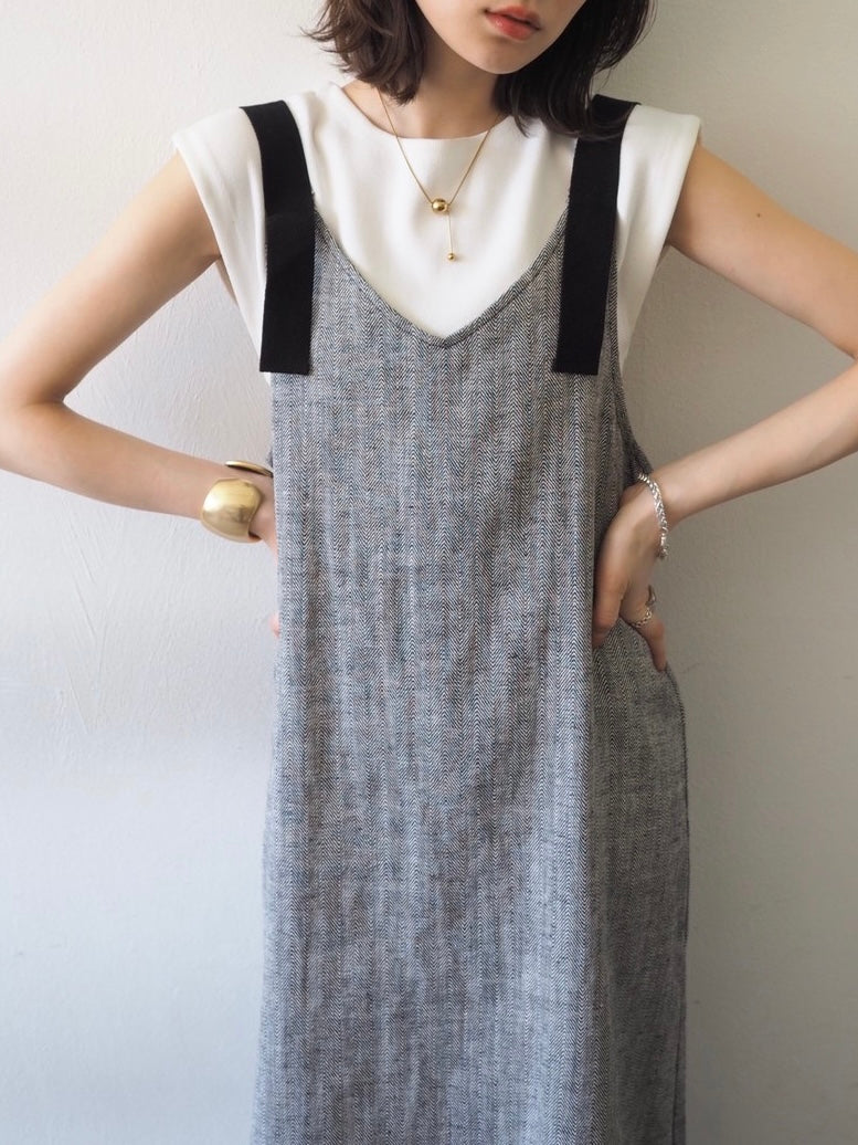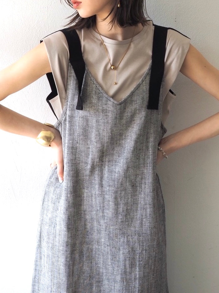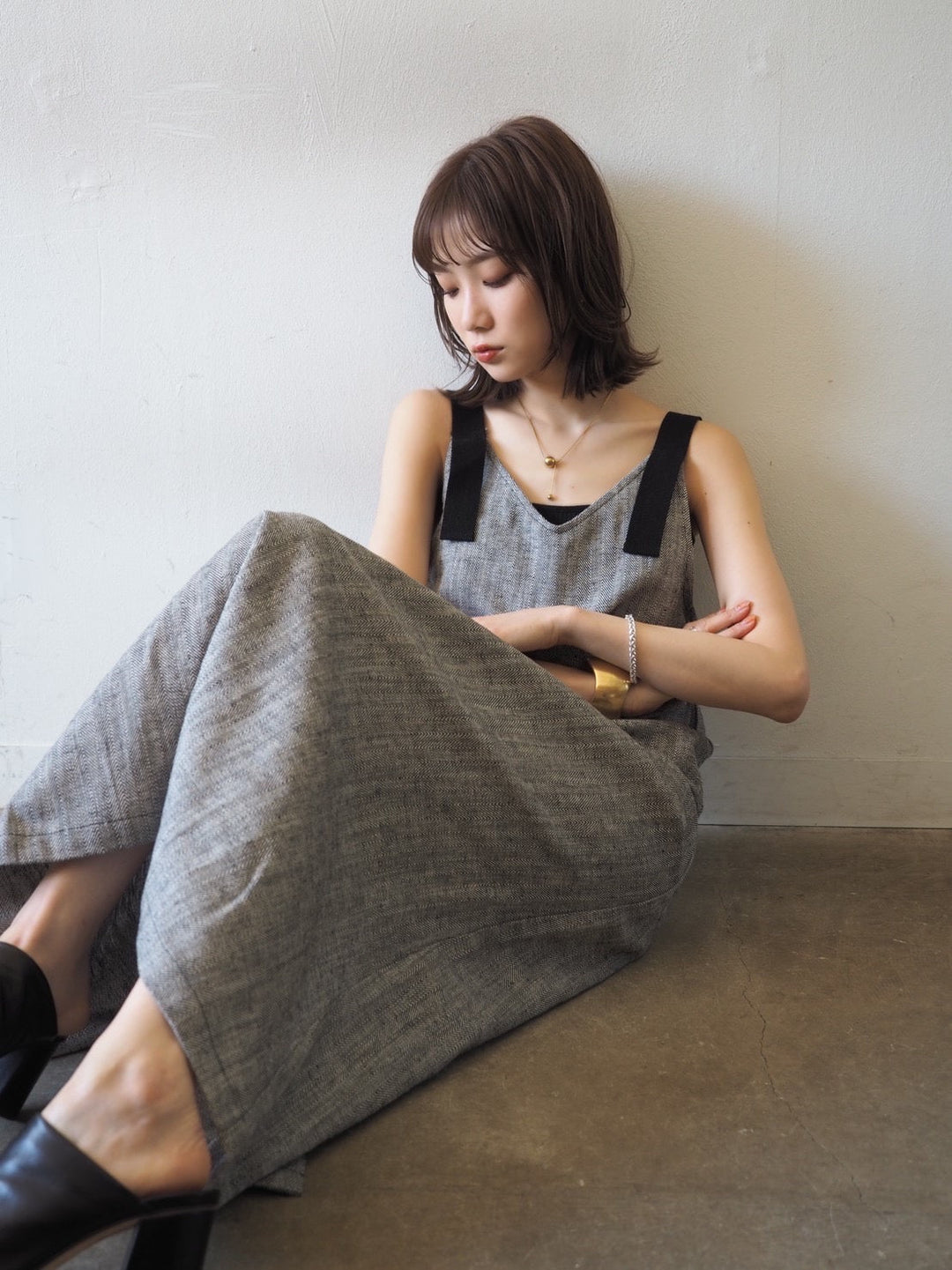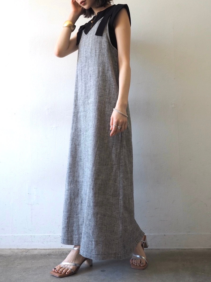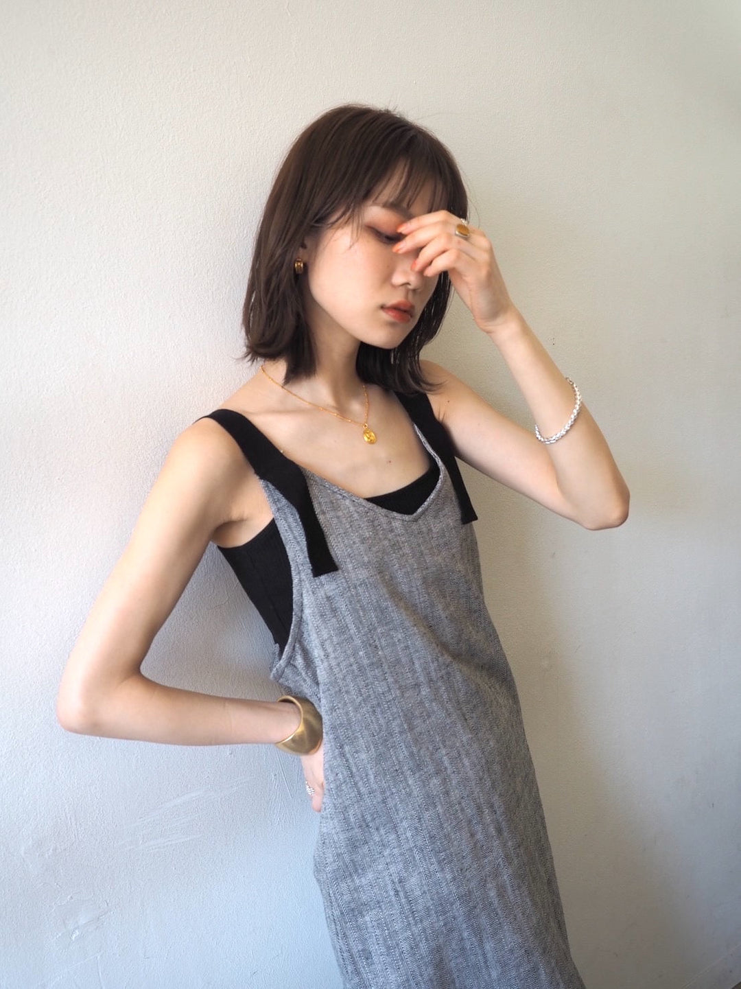 [予約]ヘリンボーンキャミワンピース/ブラック