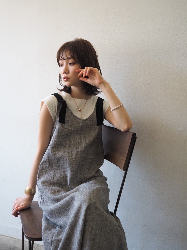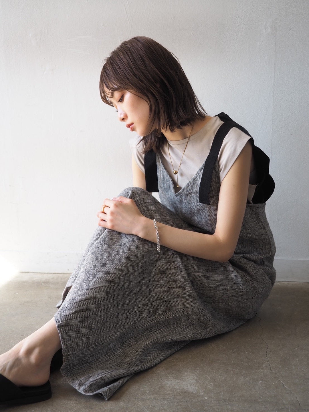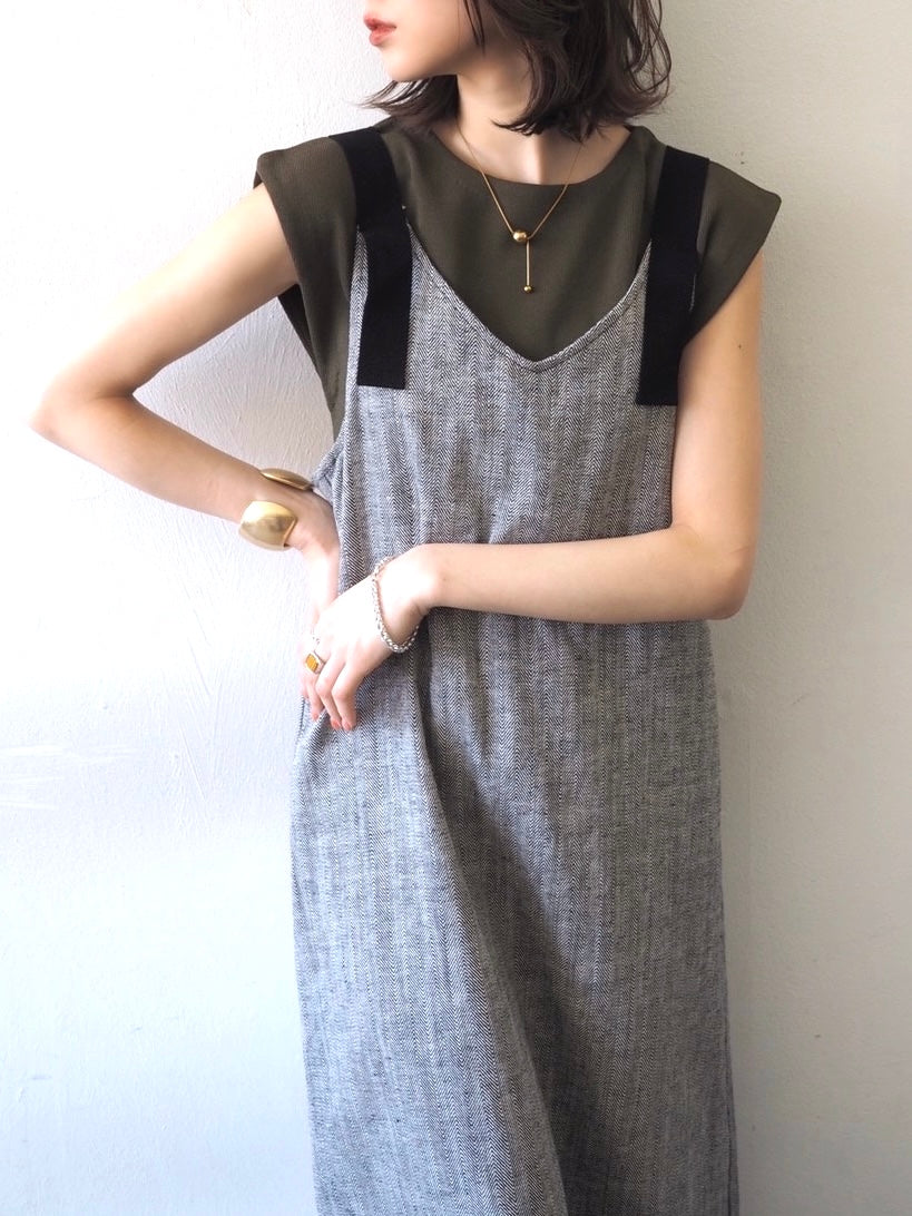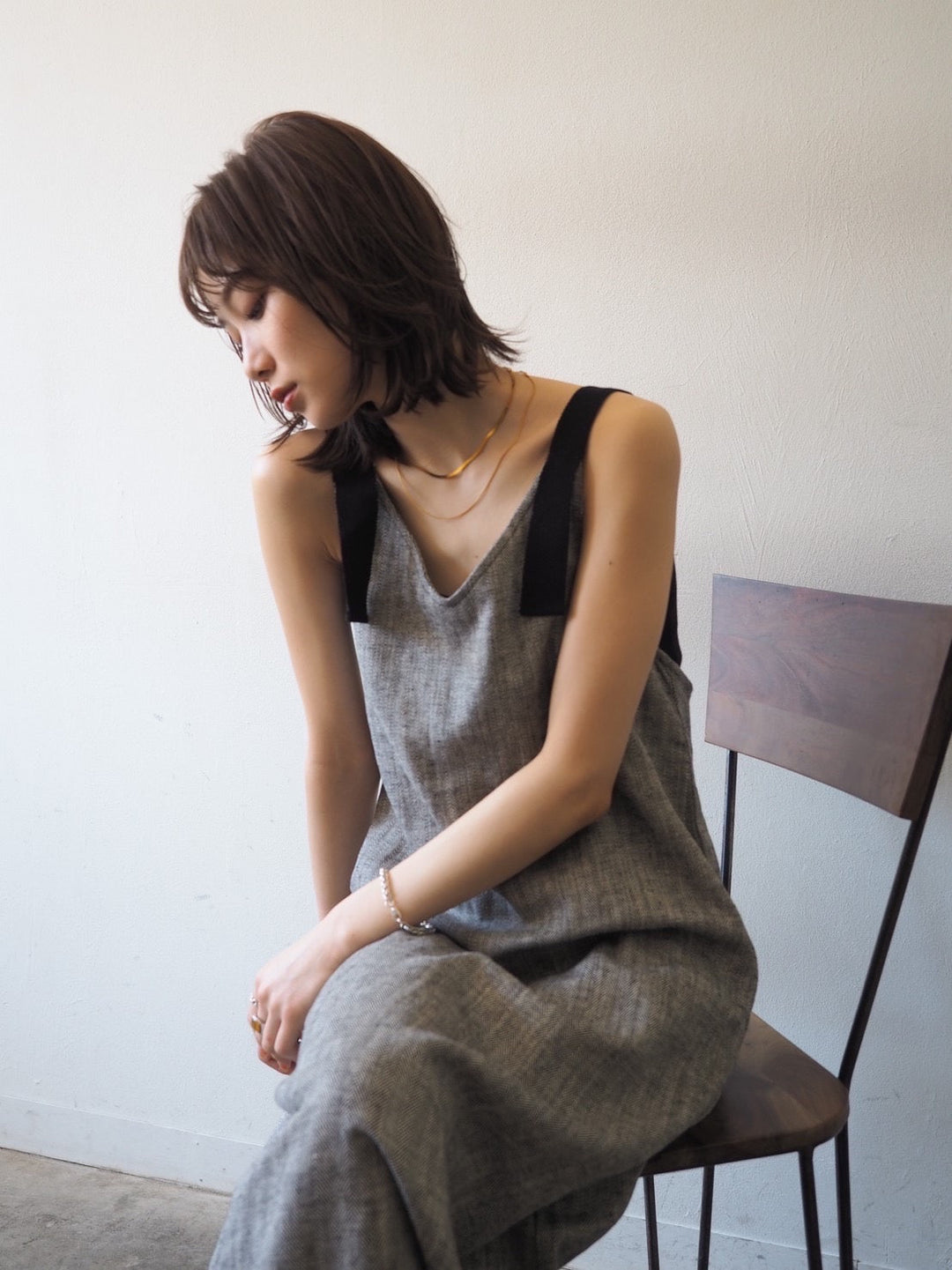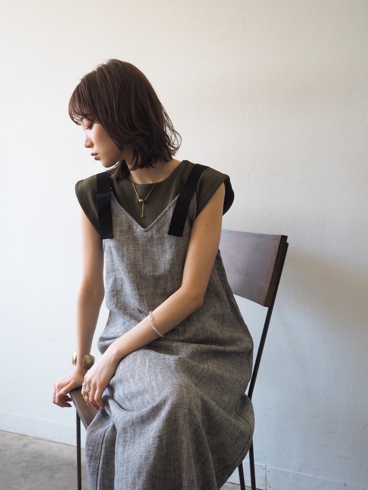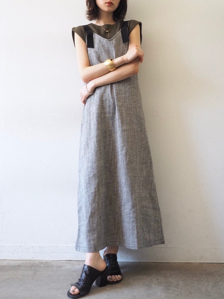 [予約]ヘリンボーンキャミワンピース/ブラック
