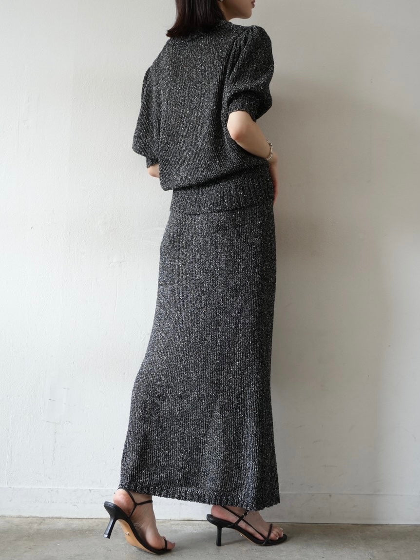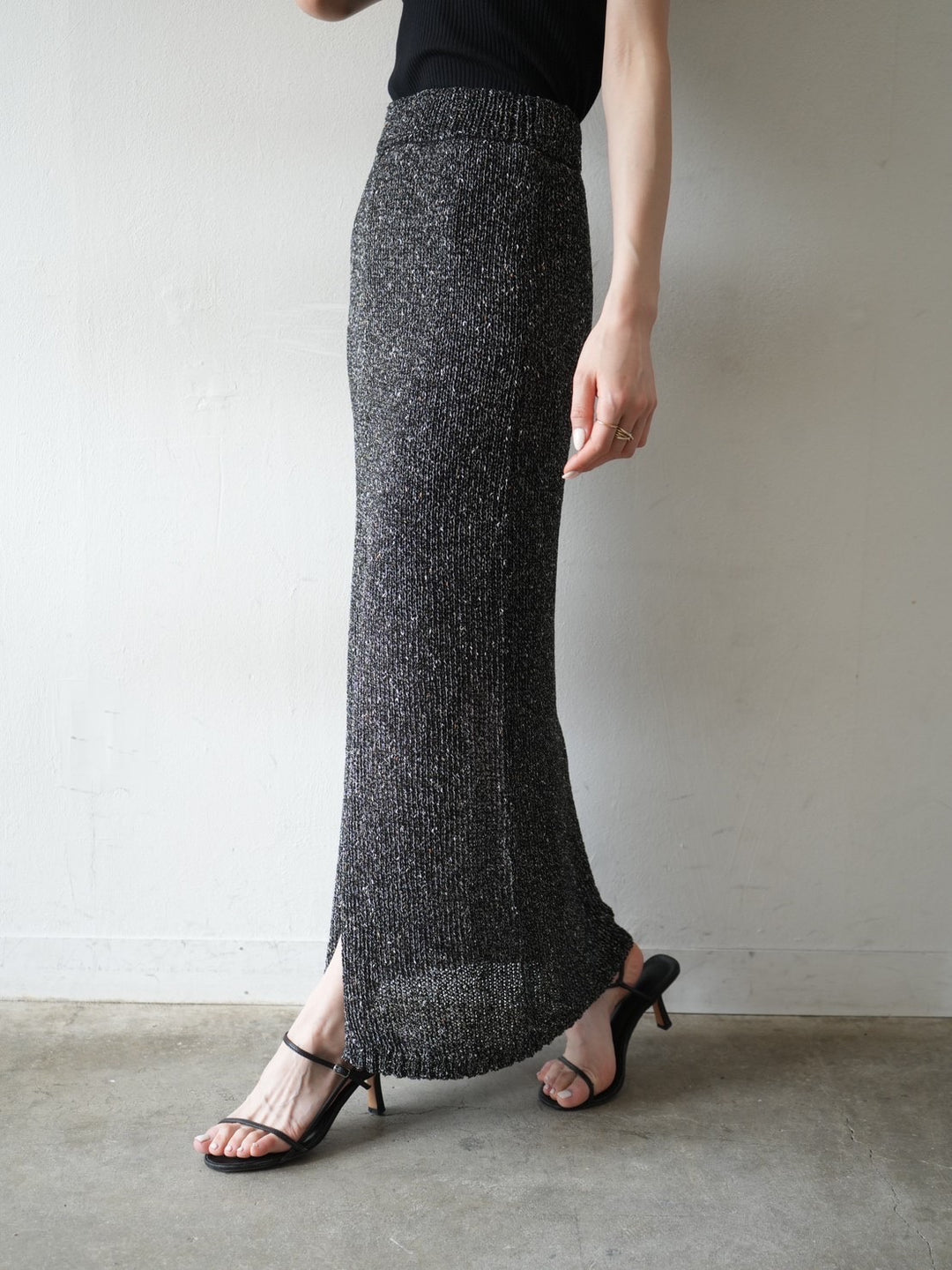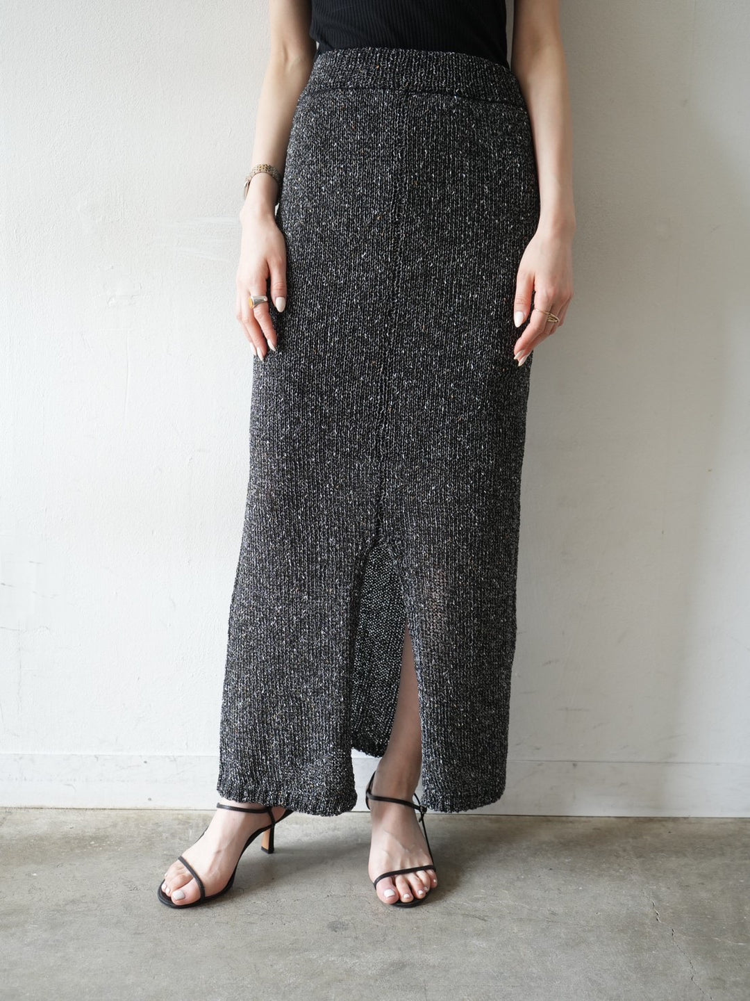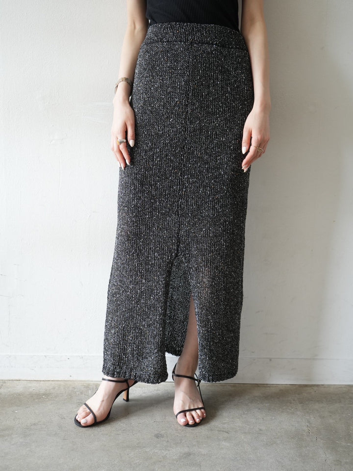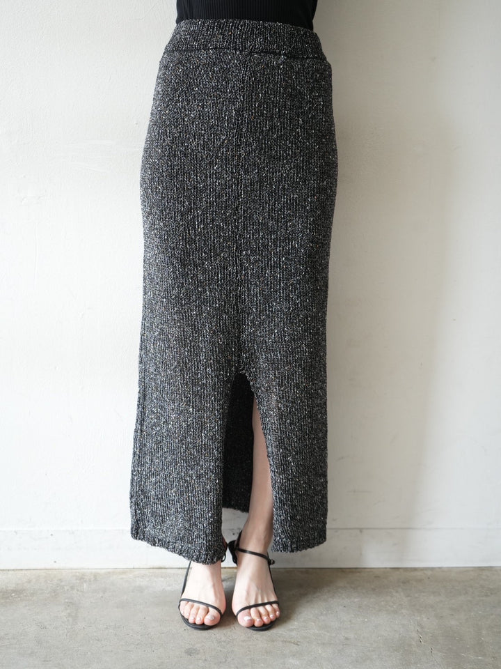[予約]リネンタッチネップニットタイトスカート/ブラック