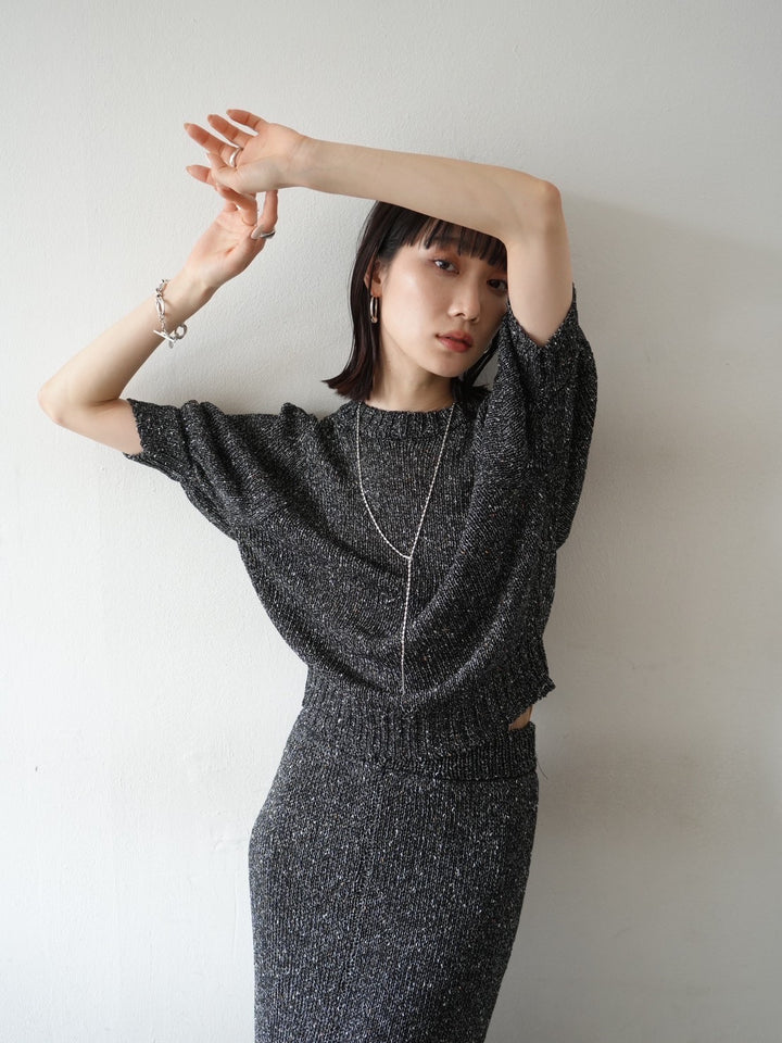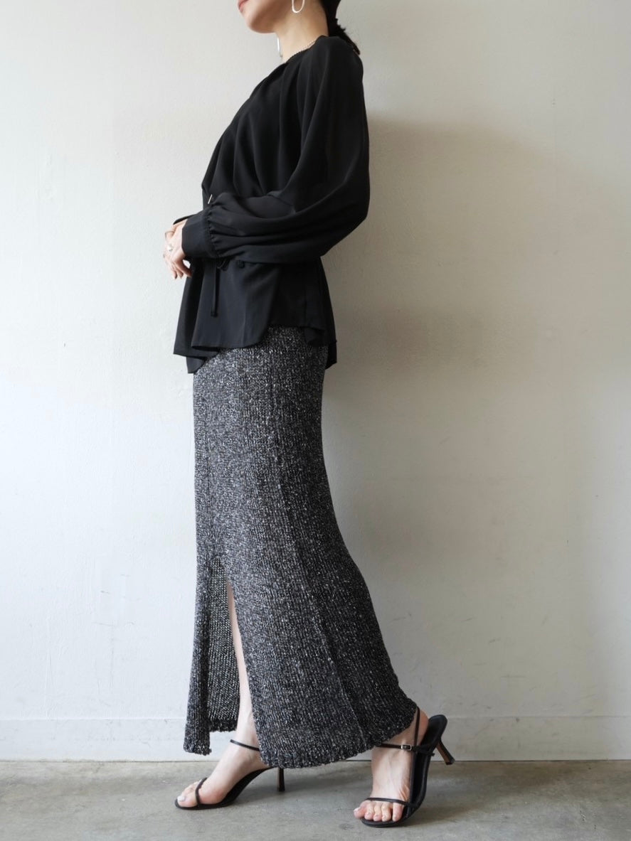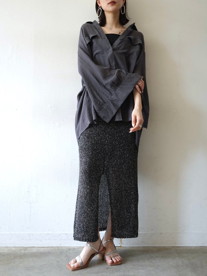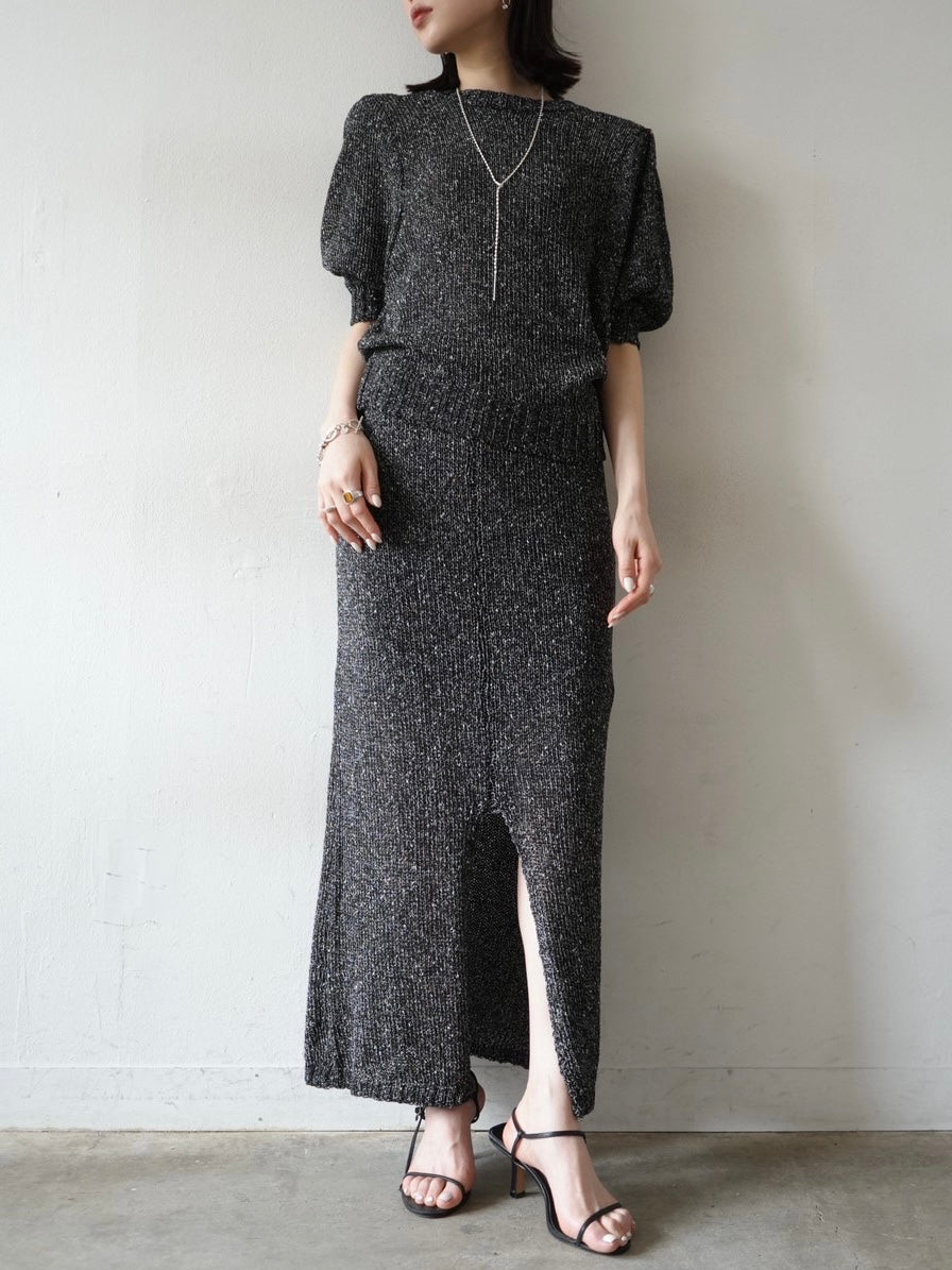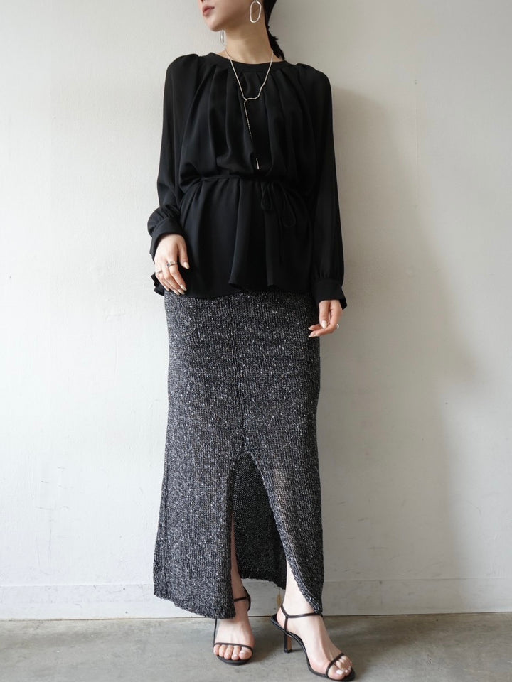 [予約]リネンタッチネップニットタイトスカート/ブラック
