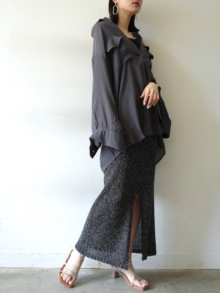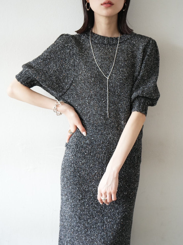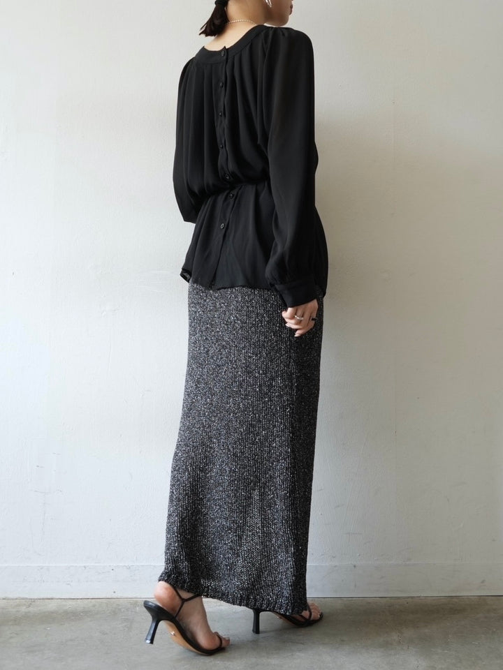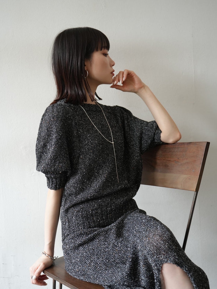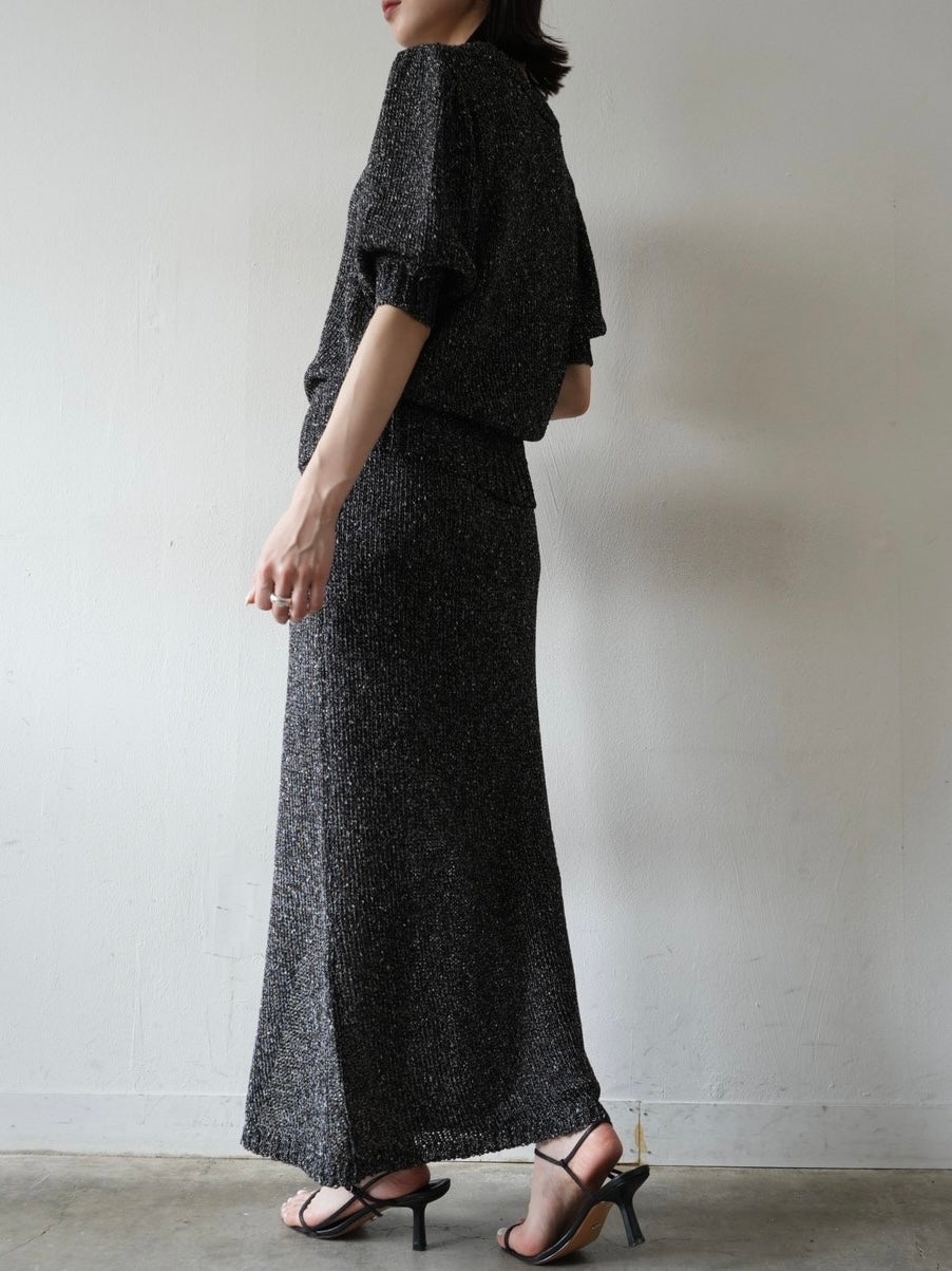 [予約]リネンタッチネップニットタイトスカート/ブラック