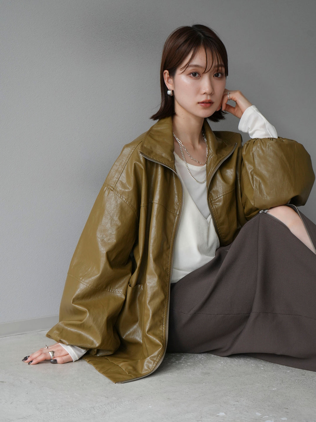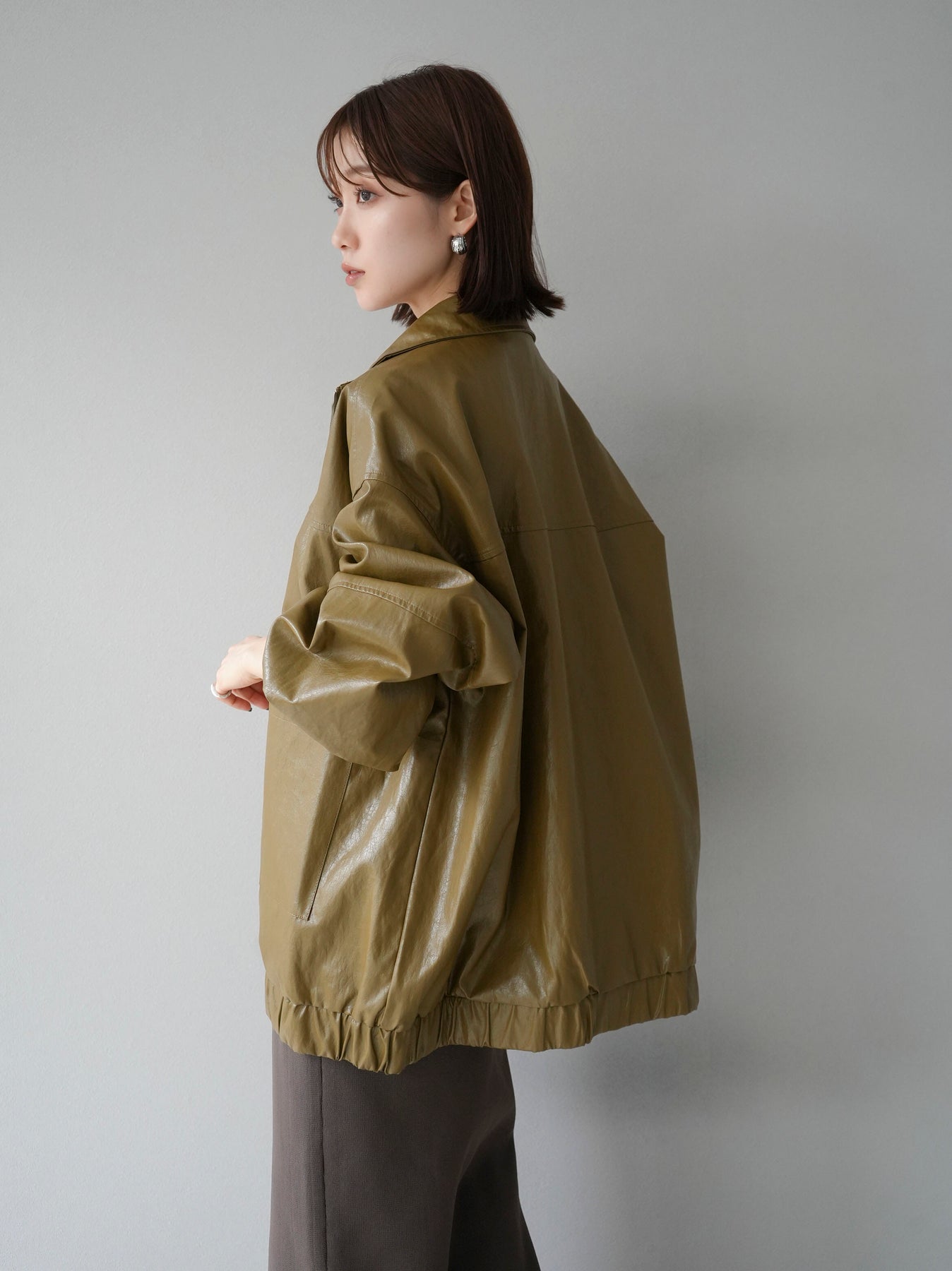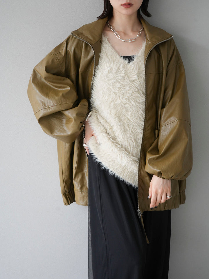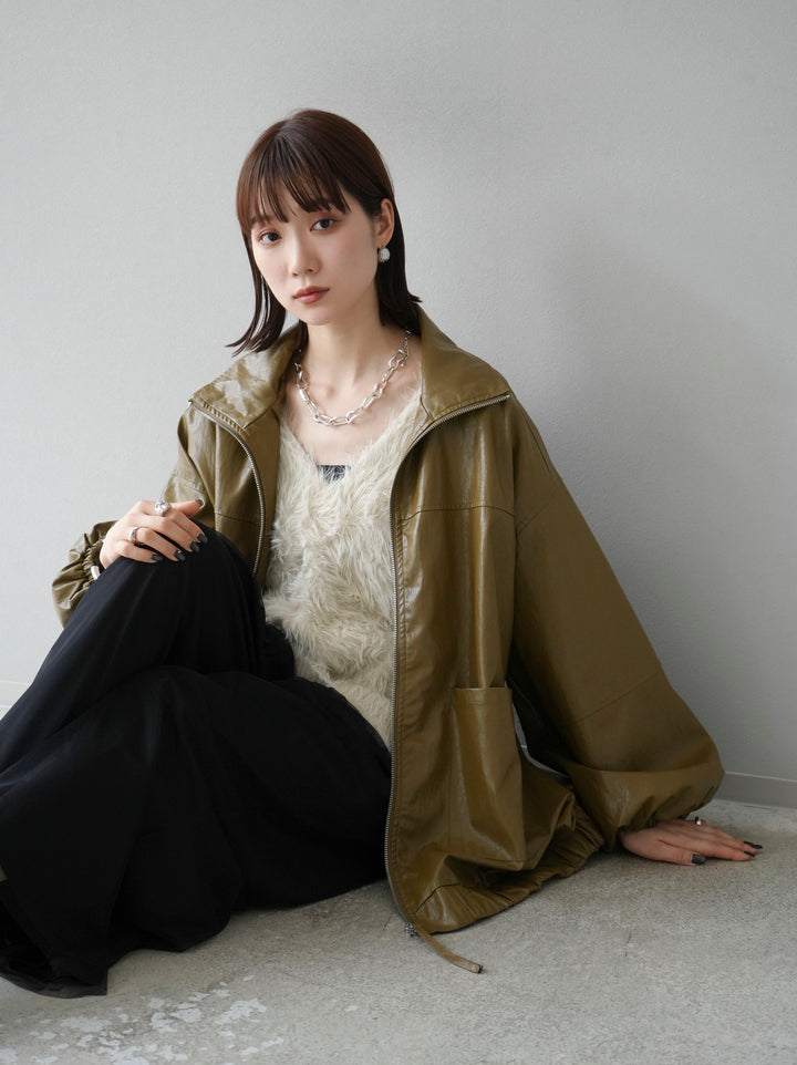 [予約]フェイクレザーオーバーブルゾン/オリーブ