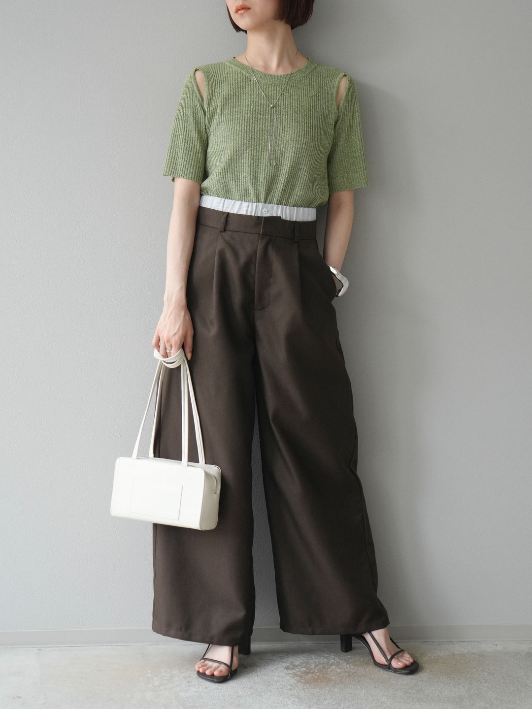 [予約]ヘザーツイルダブルウエストワイドパンツに関連する商品を探す↓