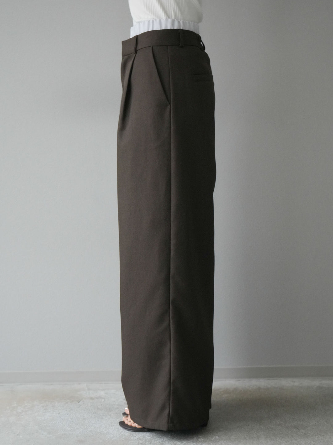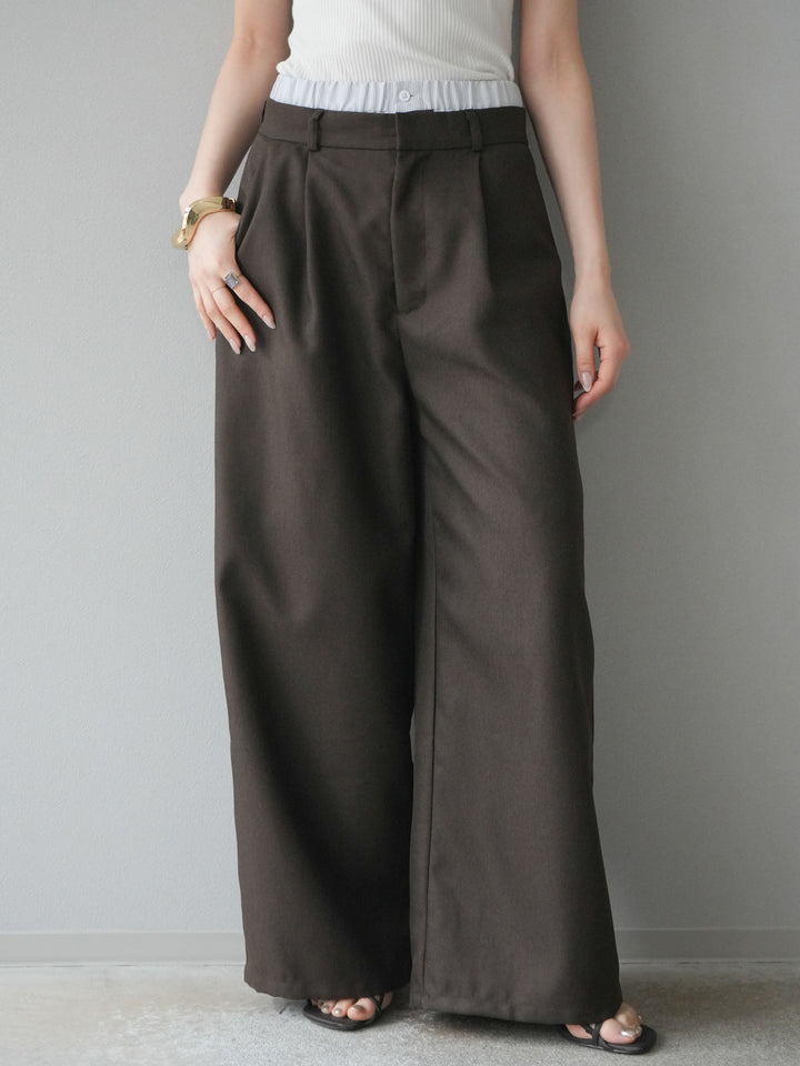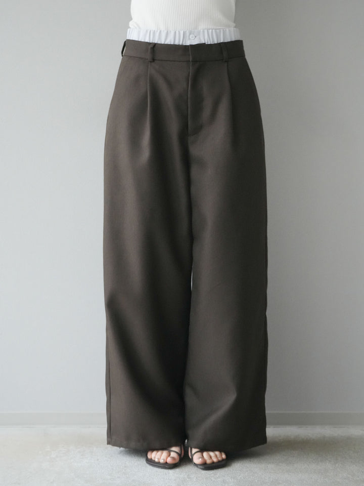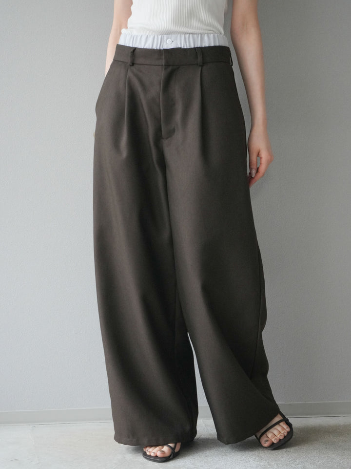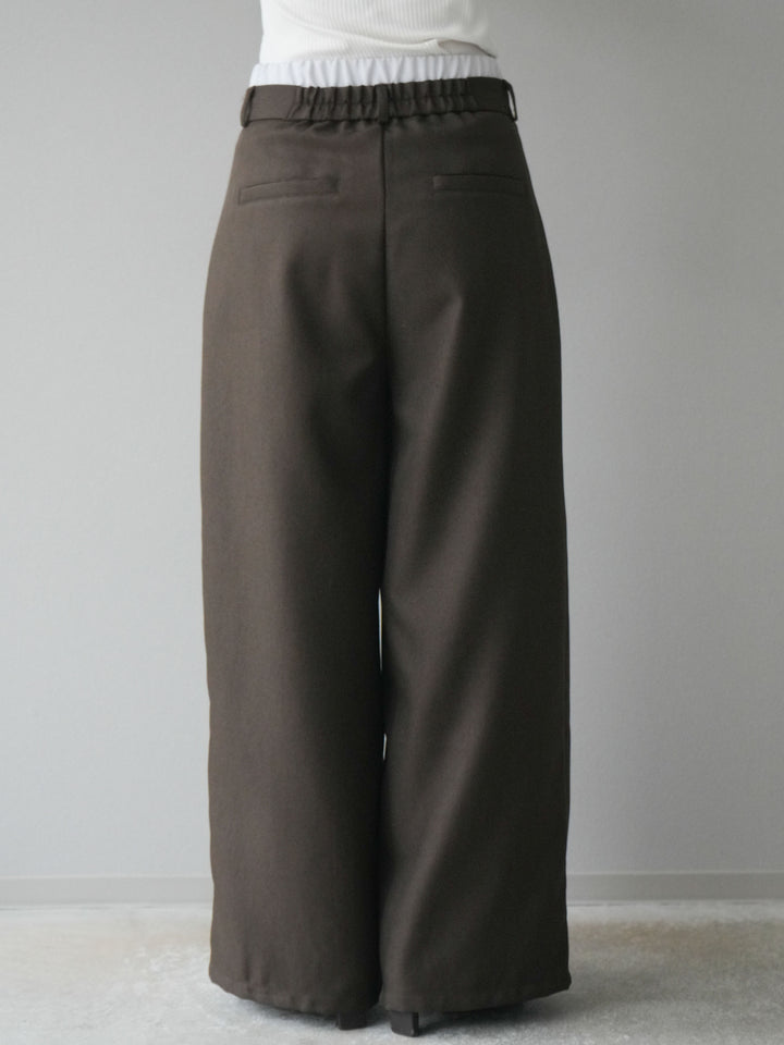 [予約]ヘザーツイルダブルウエストワイドパンツ/ブラウン