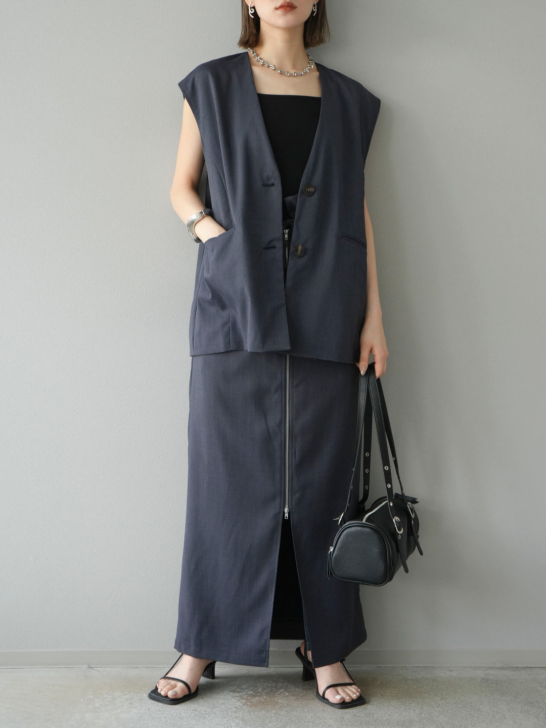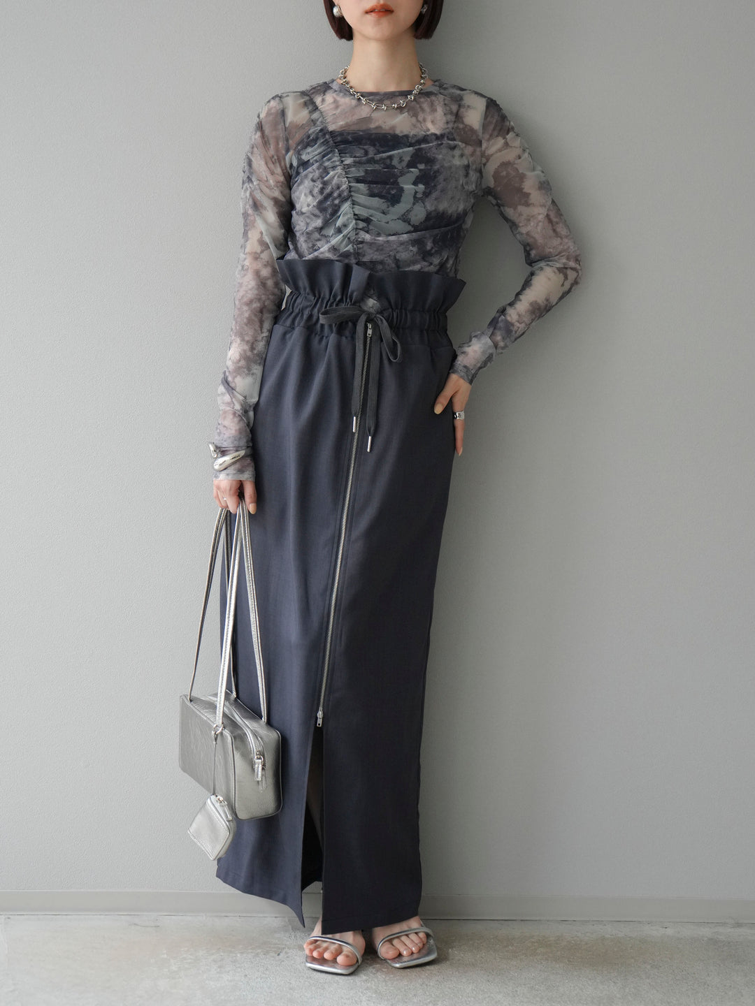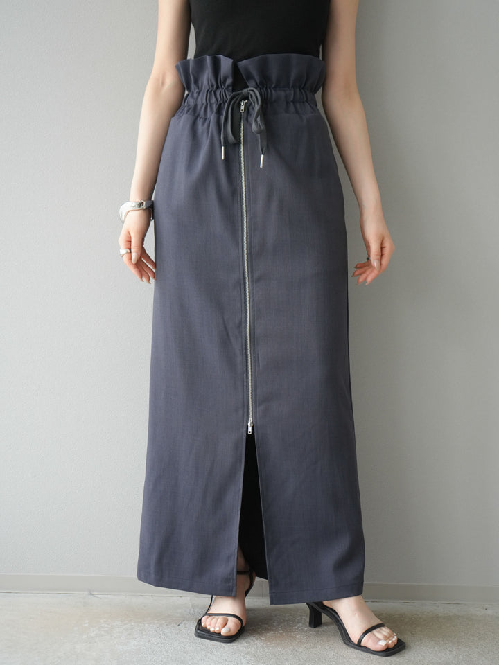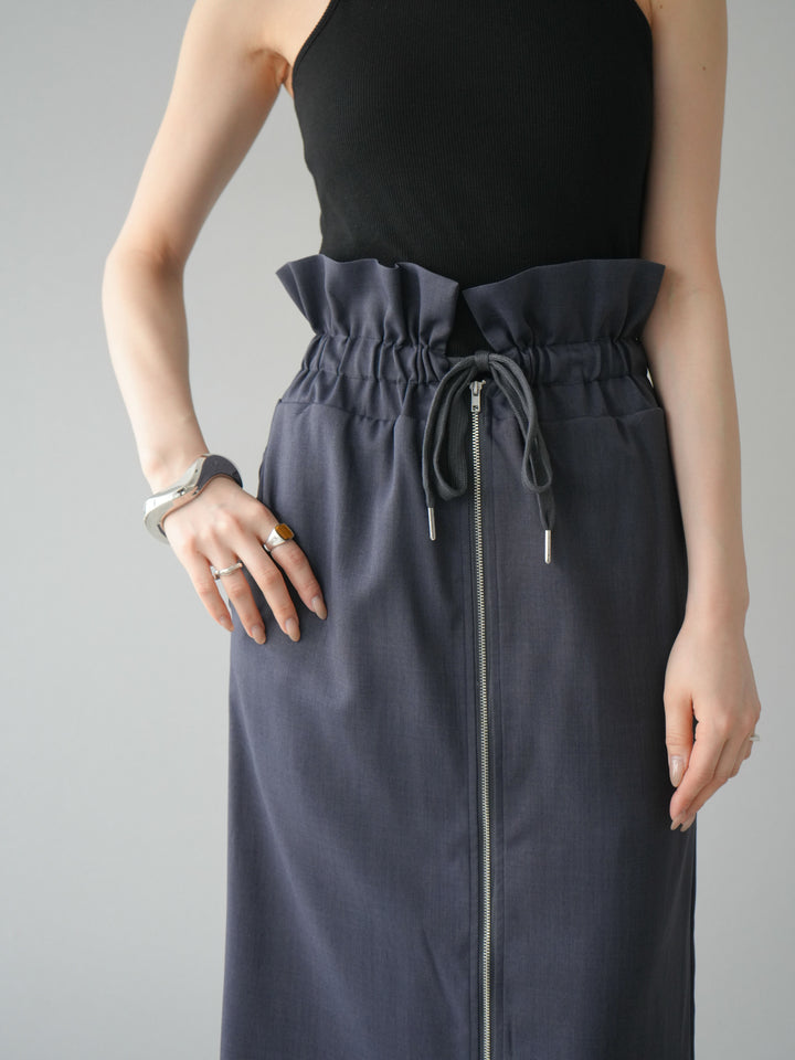 [予約]ヘザーエステルギャザージップスカート/チャコール